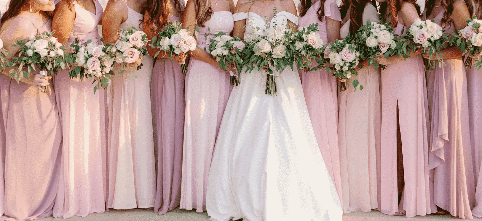 The second option is to choose the same style of dress for all your bridesmaids, but allow them to choose different colors within the same color palette. For example, you could choose a flowy chiffon dress with a sweetheart neckline and allow your bridesmaids to choose from different shades of pink, like blush, rose, and dusty pink.