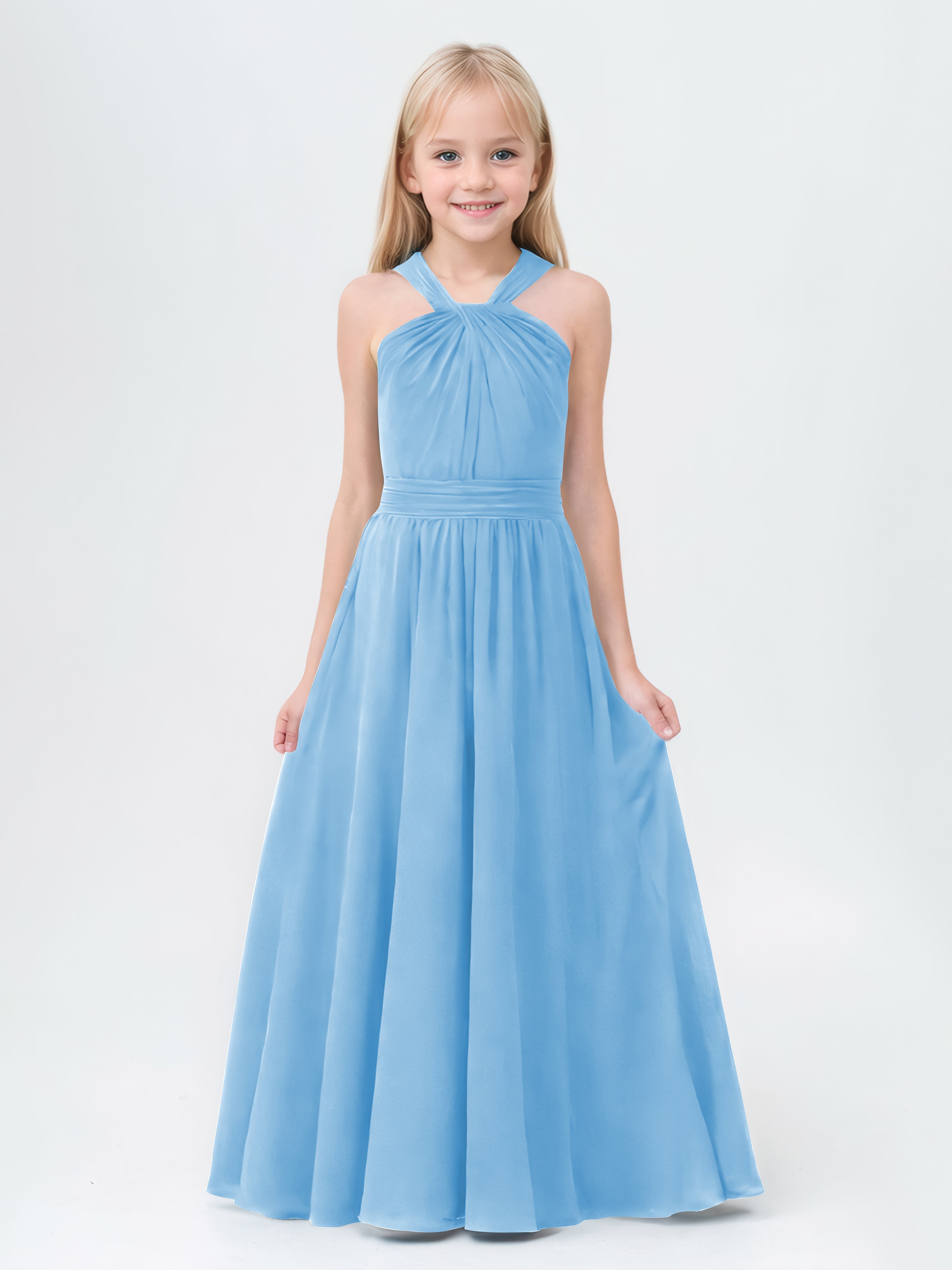A-Line Halter Floor Length Chiffon Junior Bridesmaid Dresses