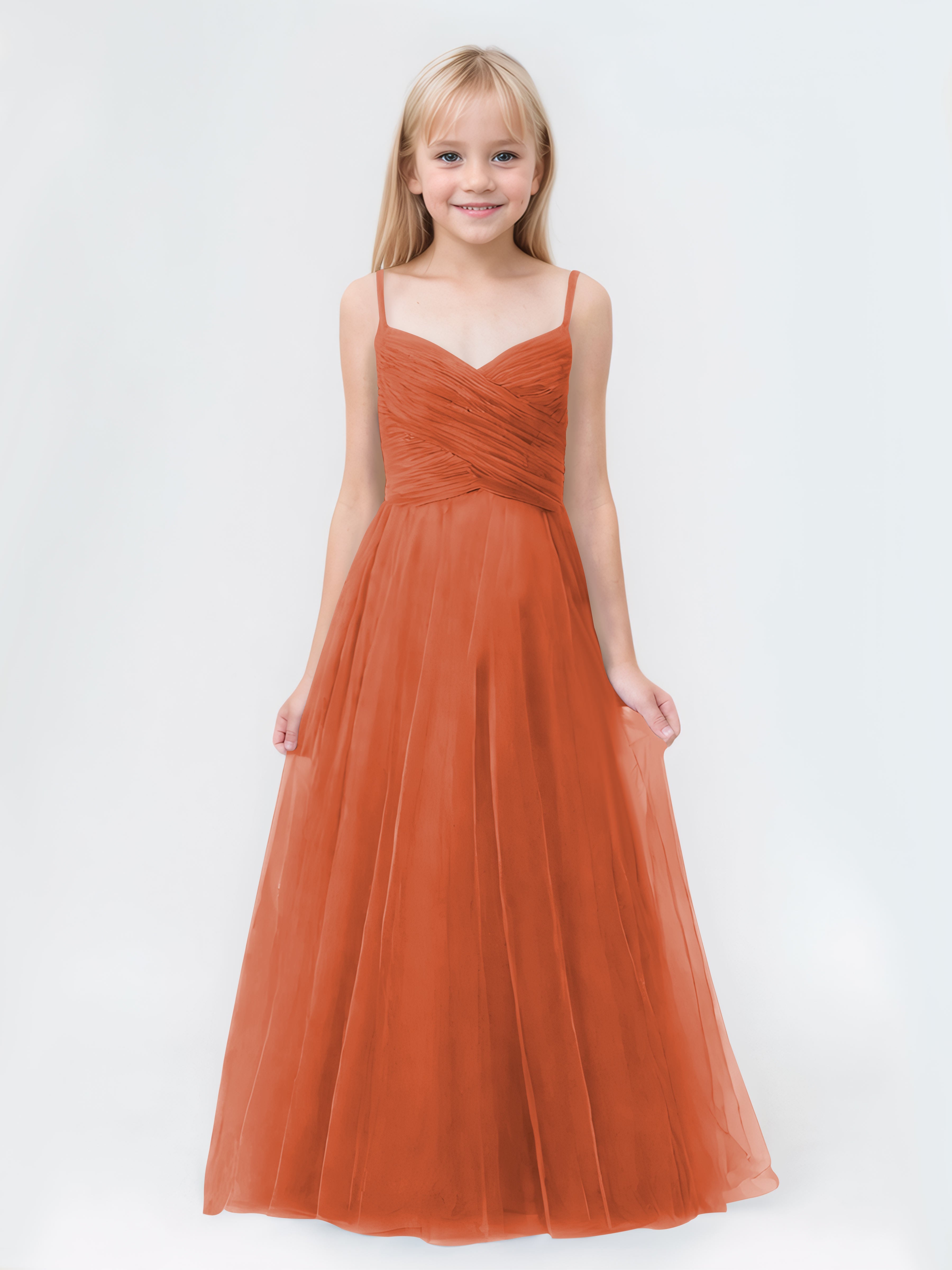 A-Line V Neck Floor Length Tulle Junior Bridesmaid Dresses