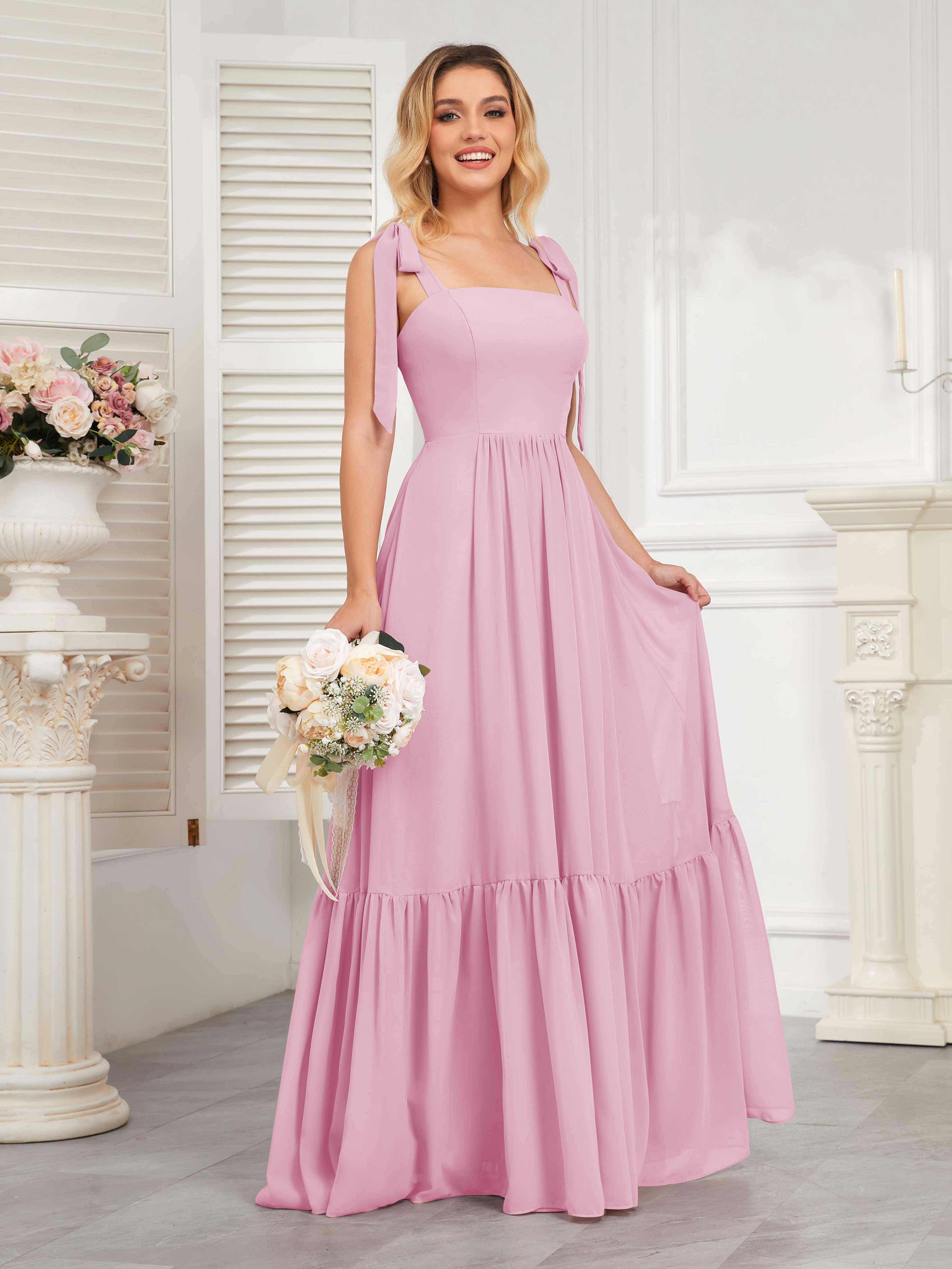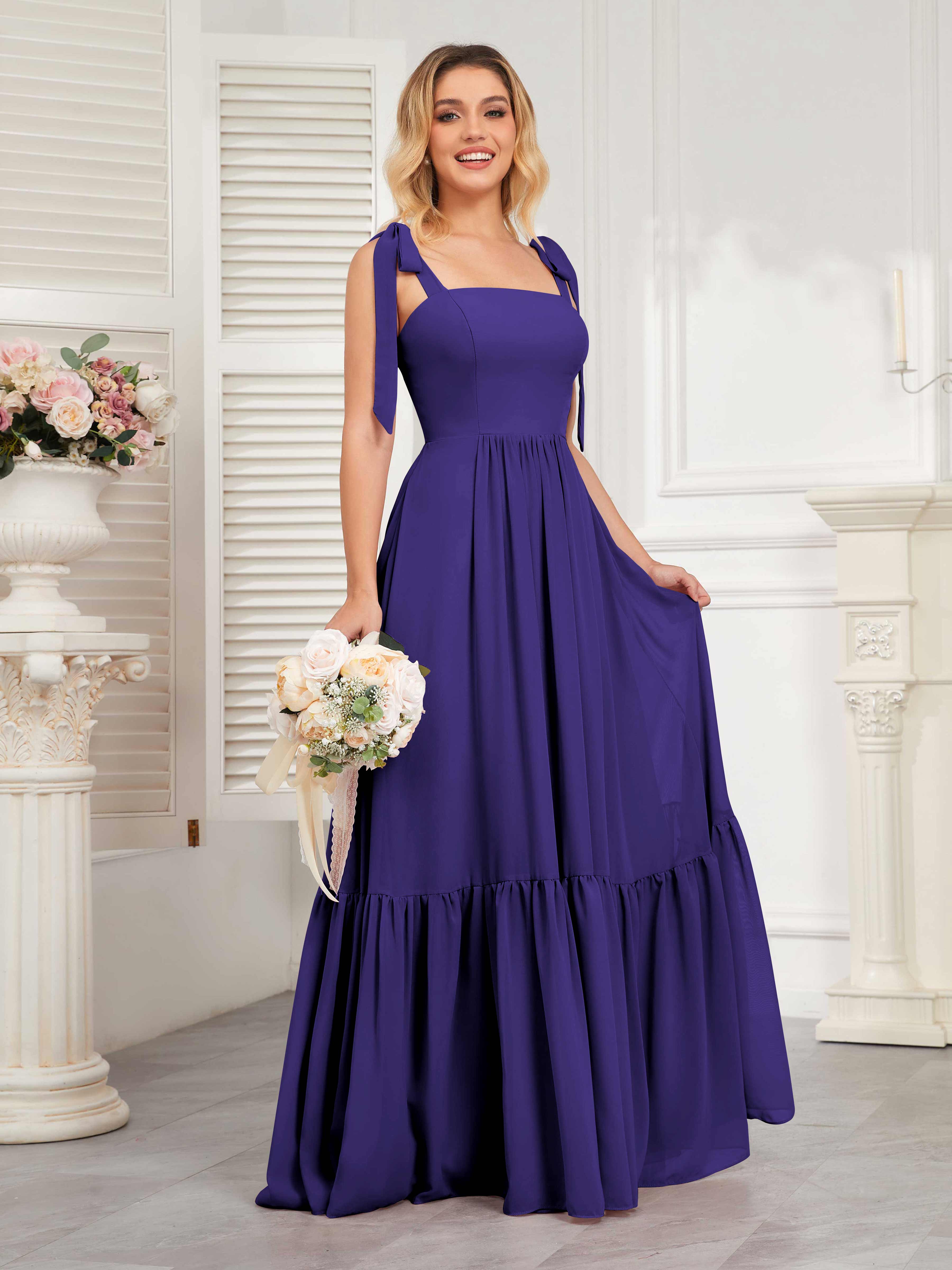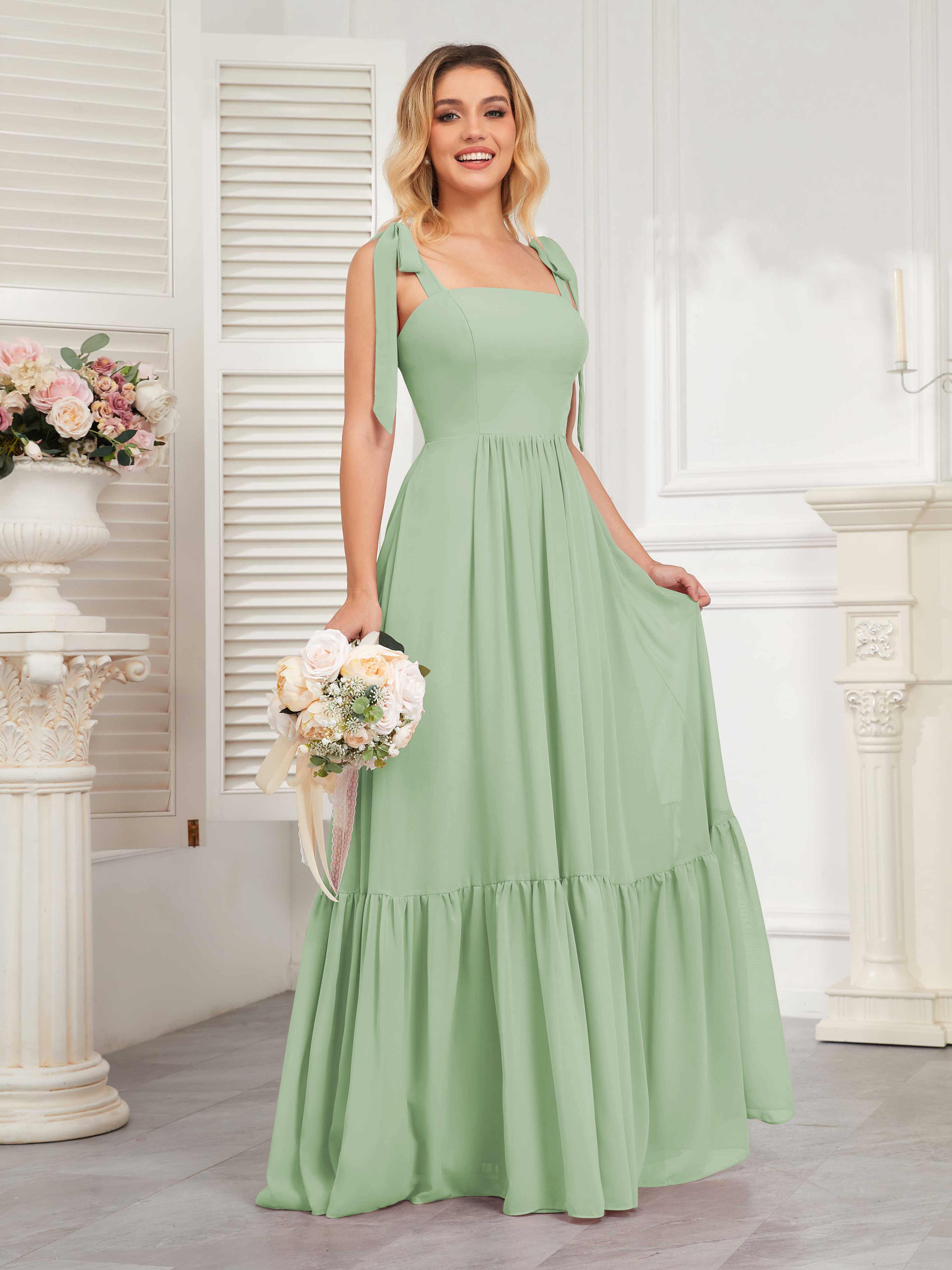 Aitana Flowing Square Neckline Long Chiffon Bridesmaid Dresses