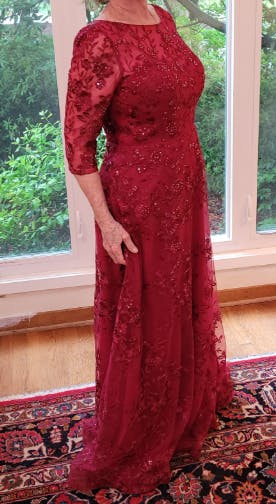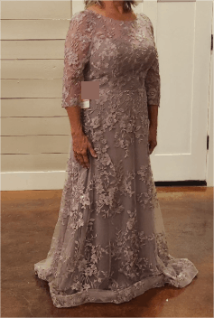 Stand out with the Althea Mother of the Bride dress, featuring a daring A-line silhouette enhanced by delicate illusion lace appliques and elegant sleeves. This gown blends timeless grace with a bold, modern edge, perfect for making a confident statement at any wedding.