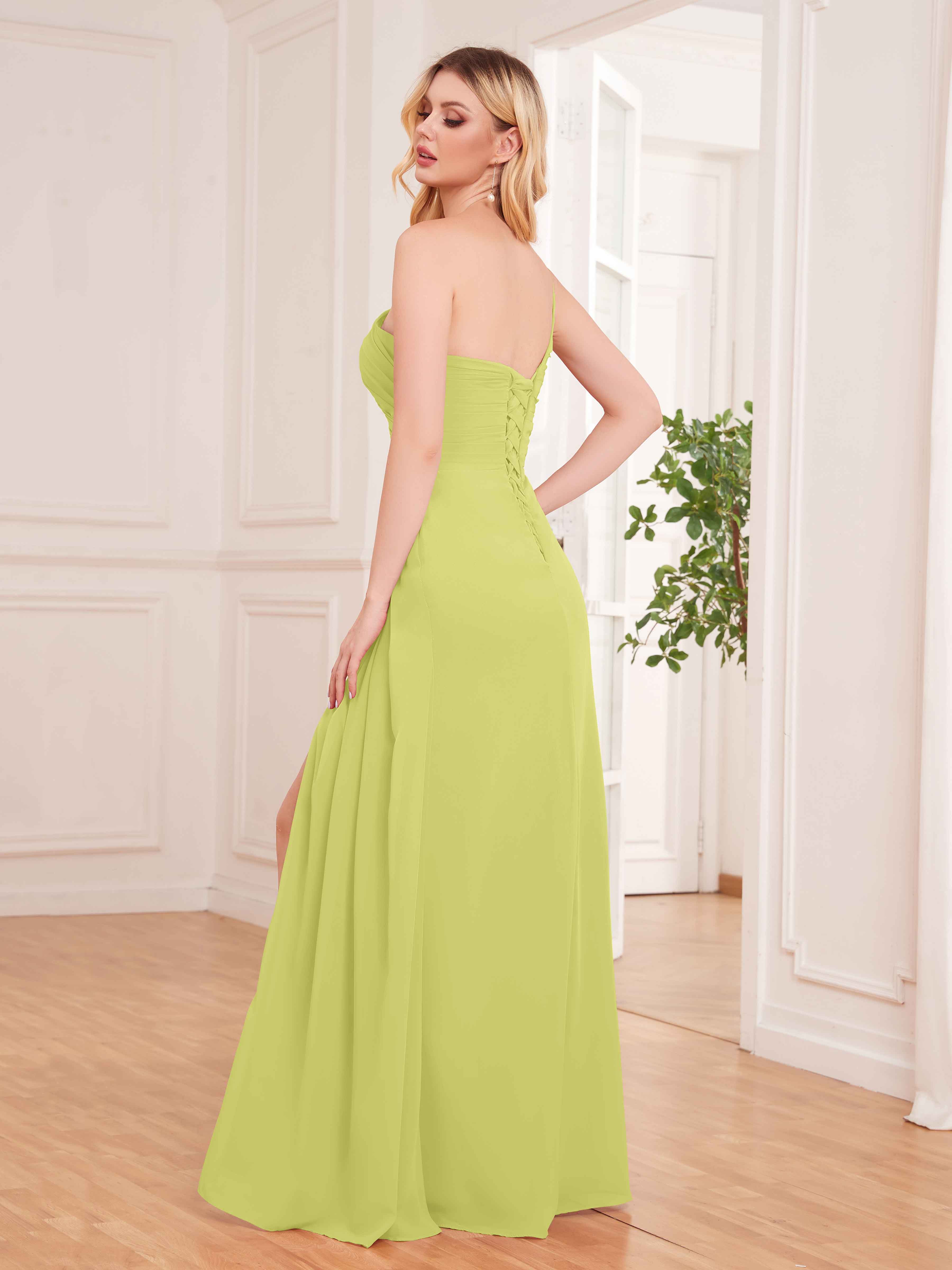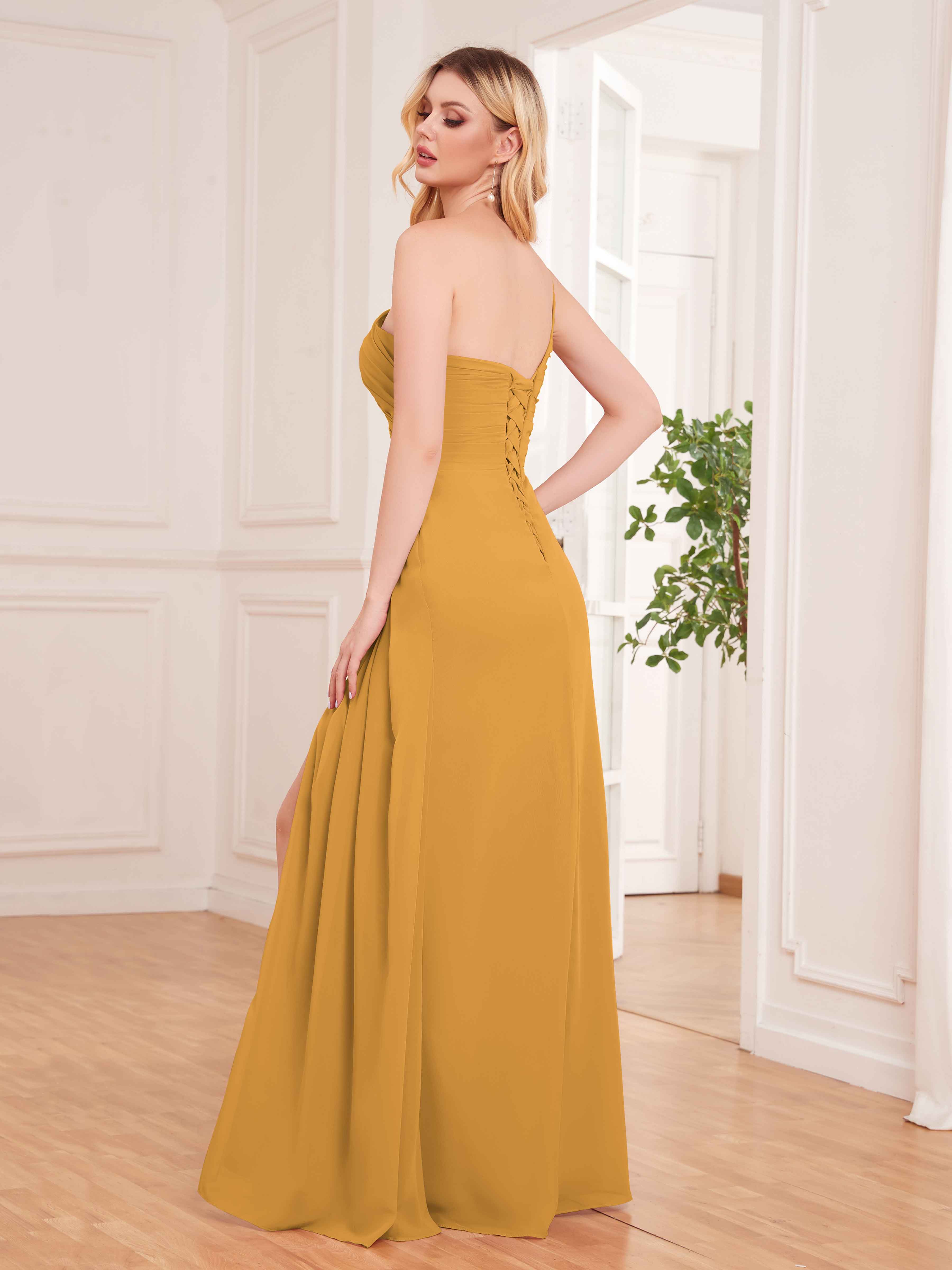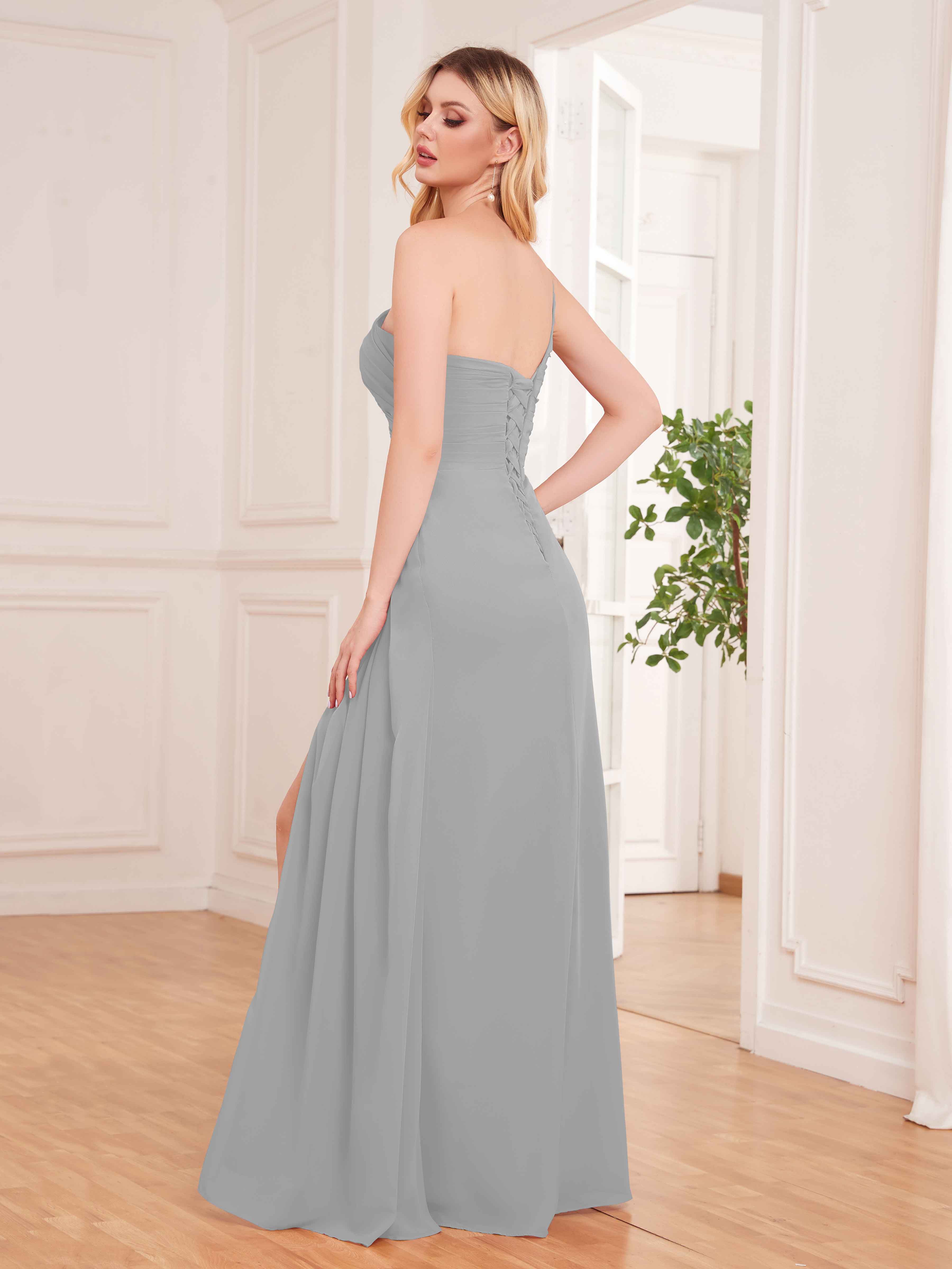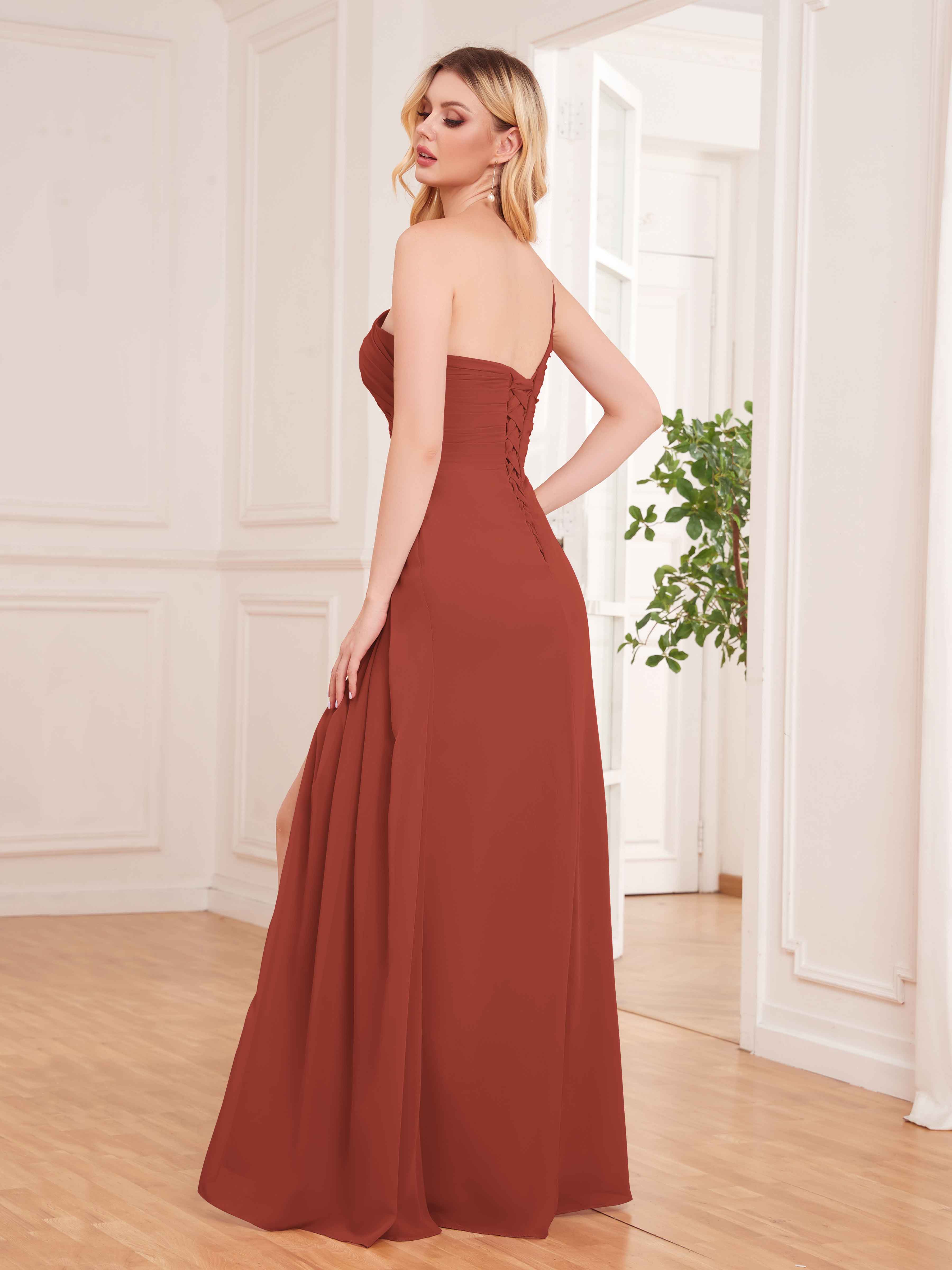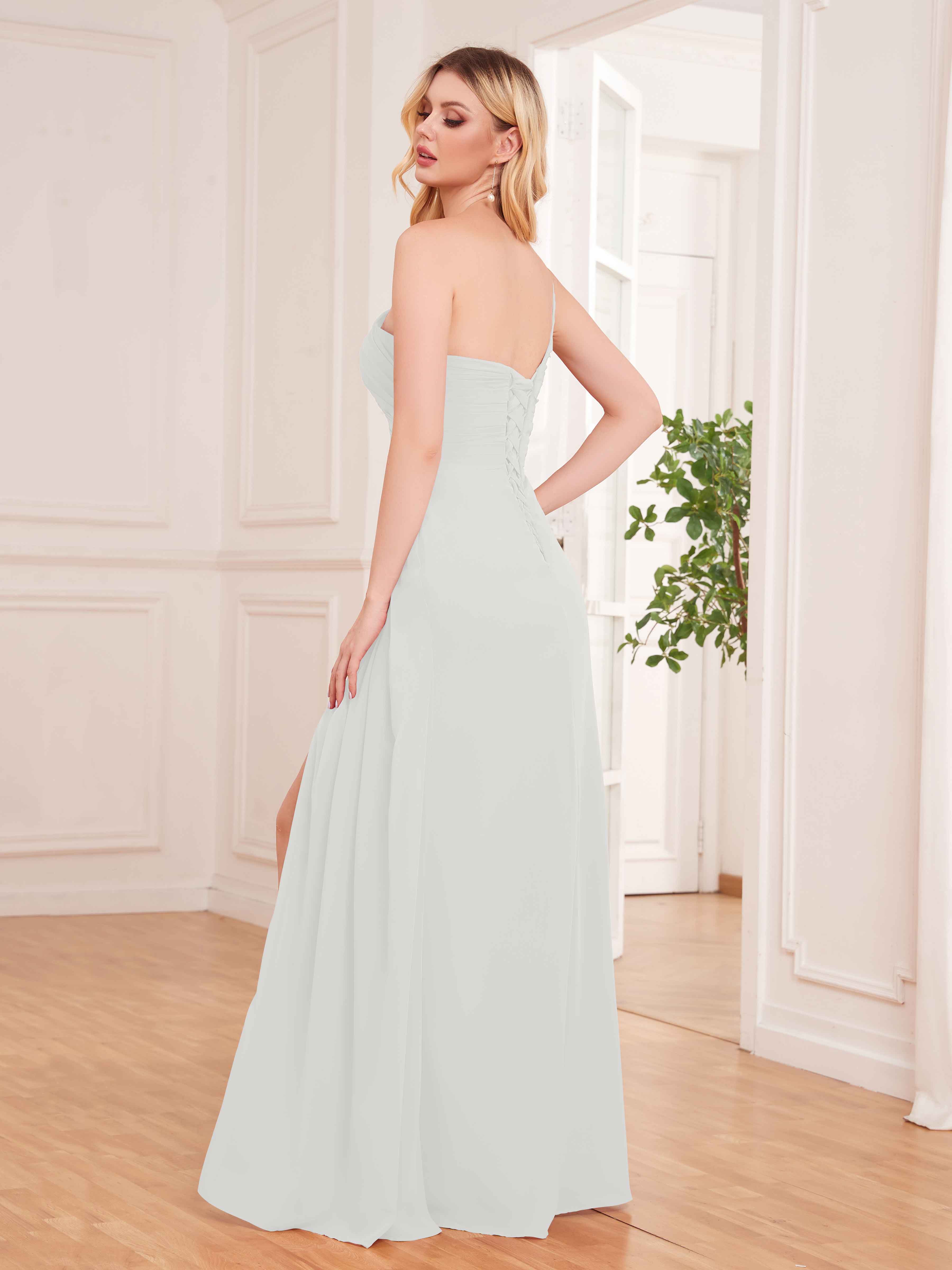 Amara Simple One Shoulder Ruched Slit Long Chiffon Bridesmaid Dresses
