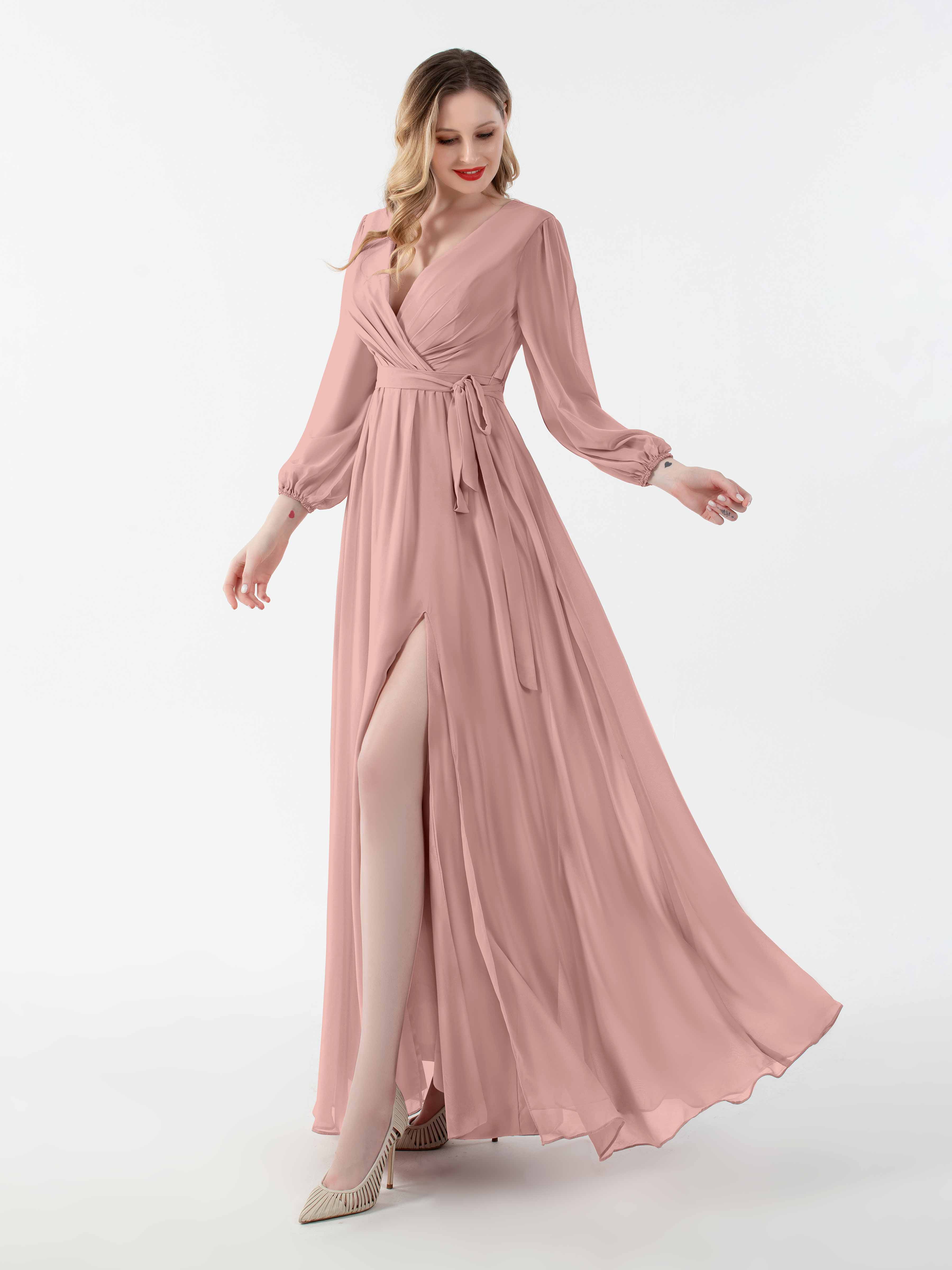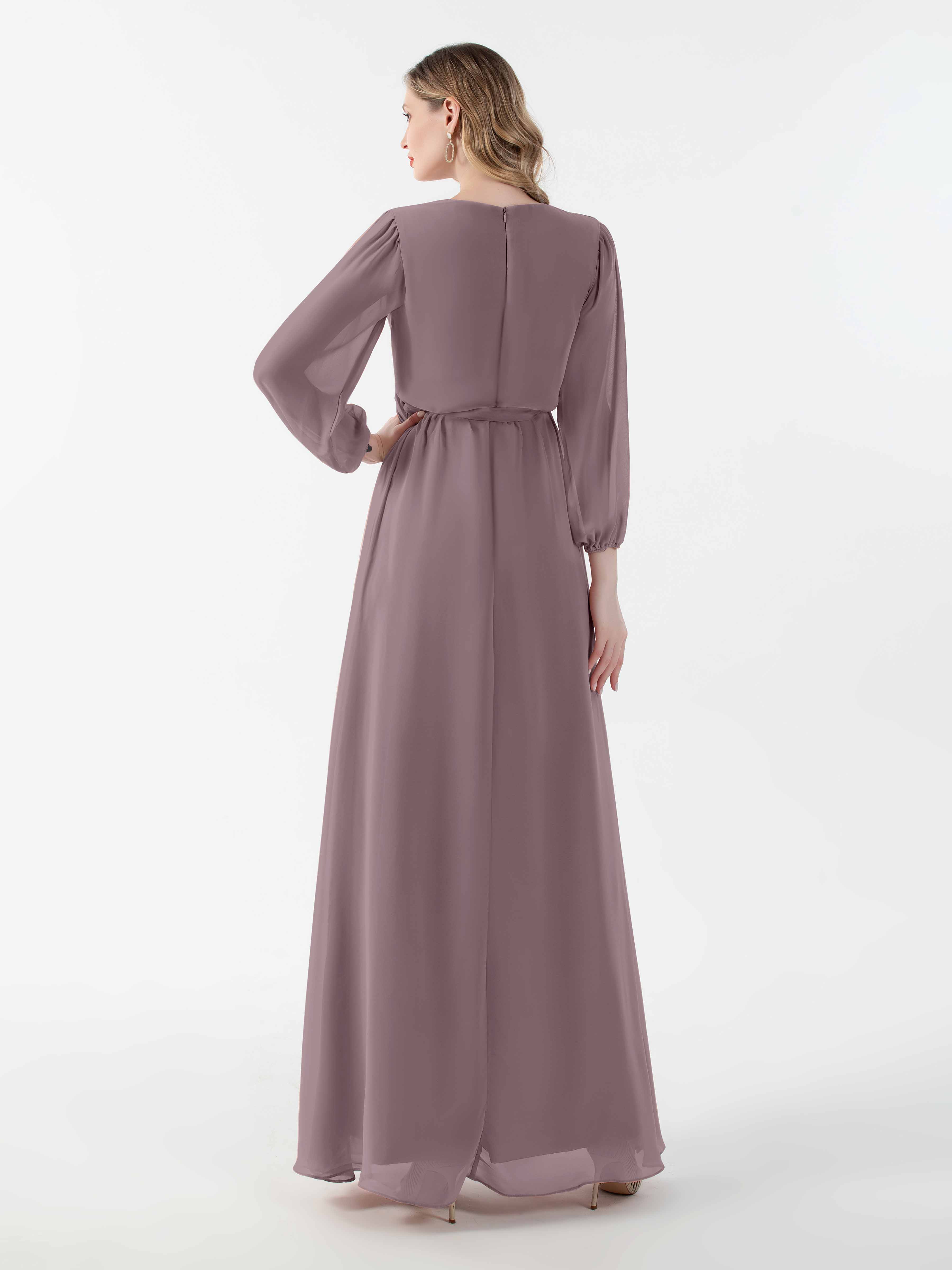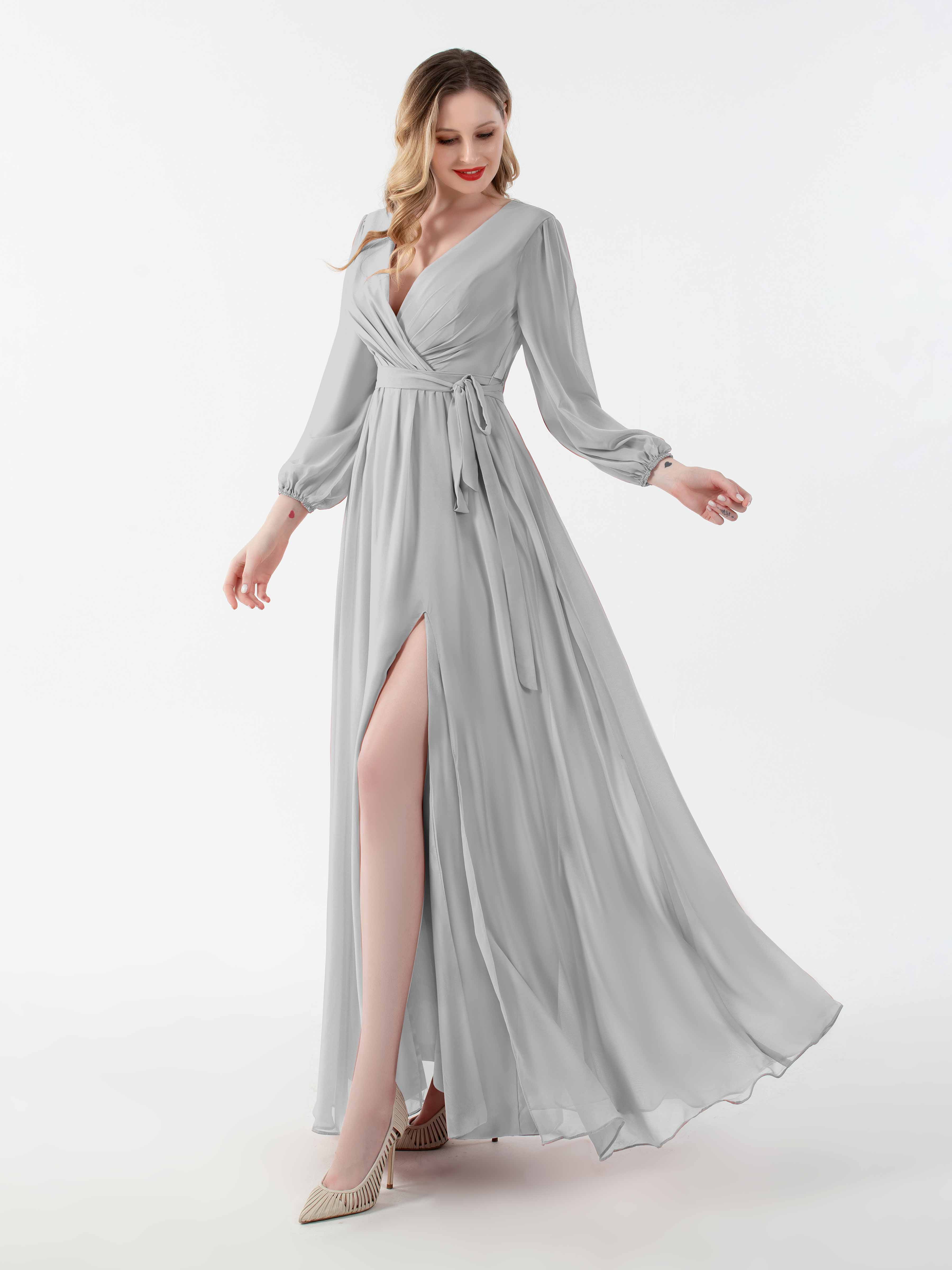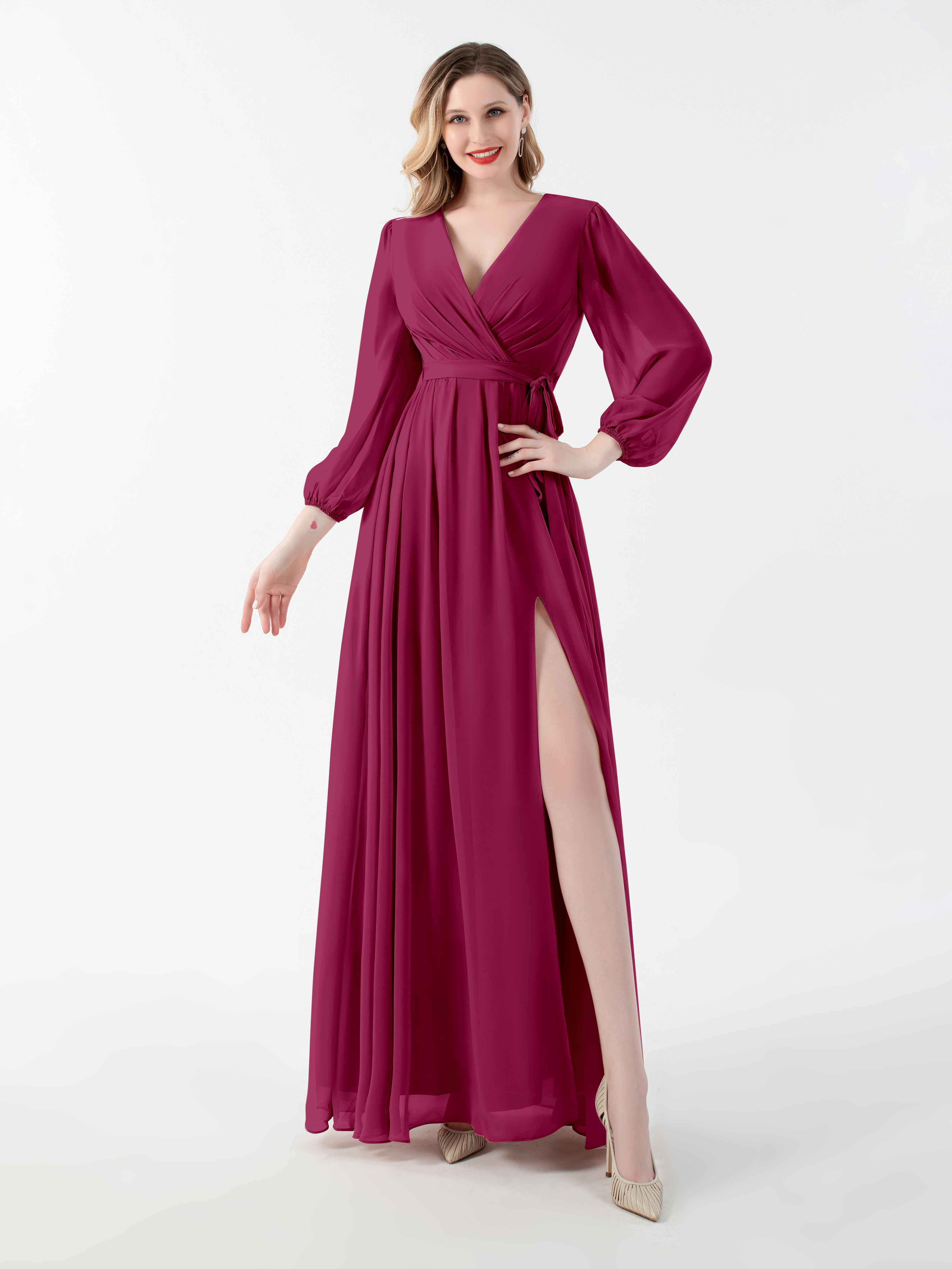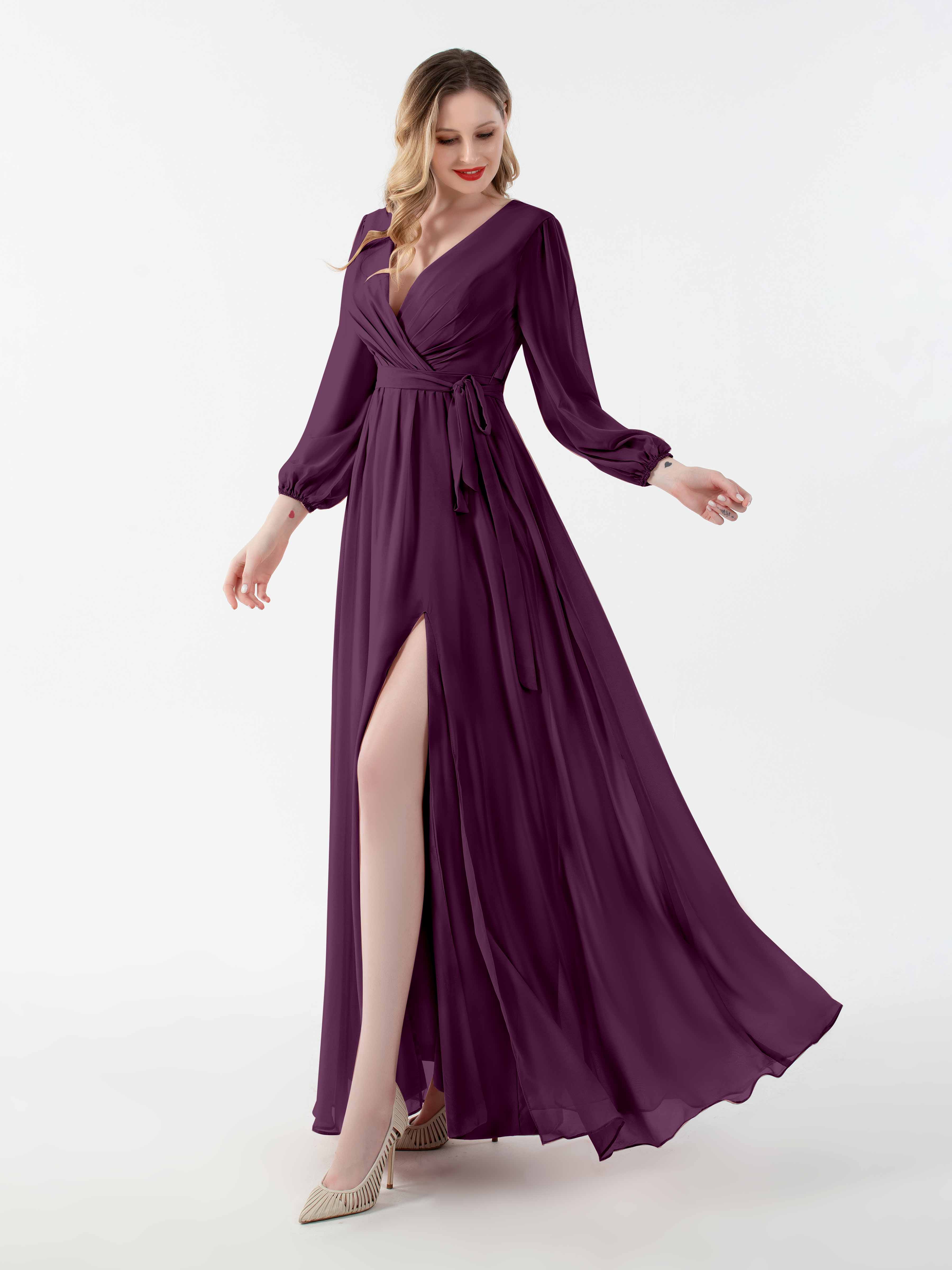 Annabella V Neck Long Sleeves Chiffon Mother Of The Bride Dresses