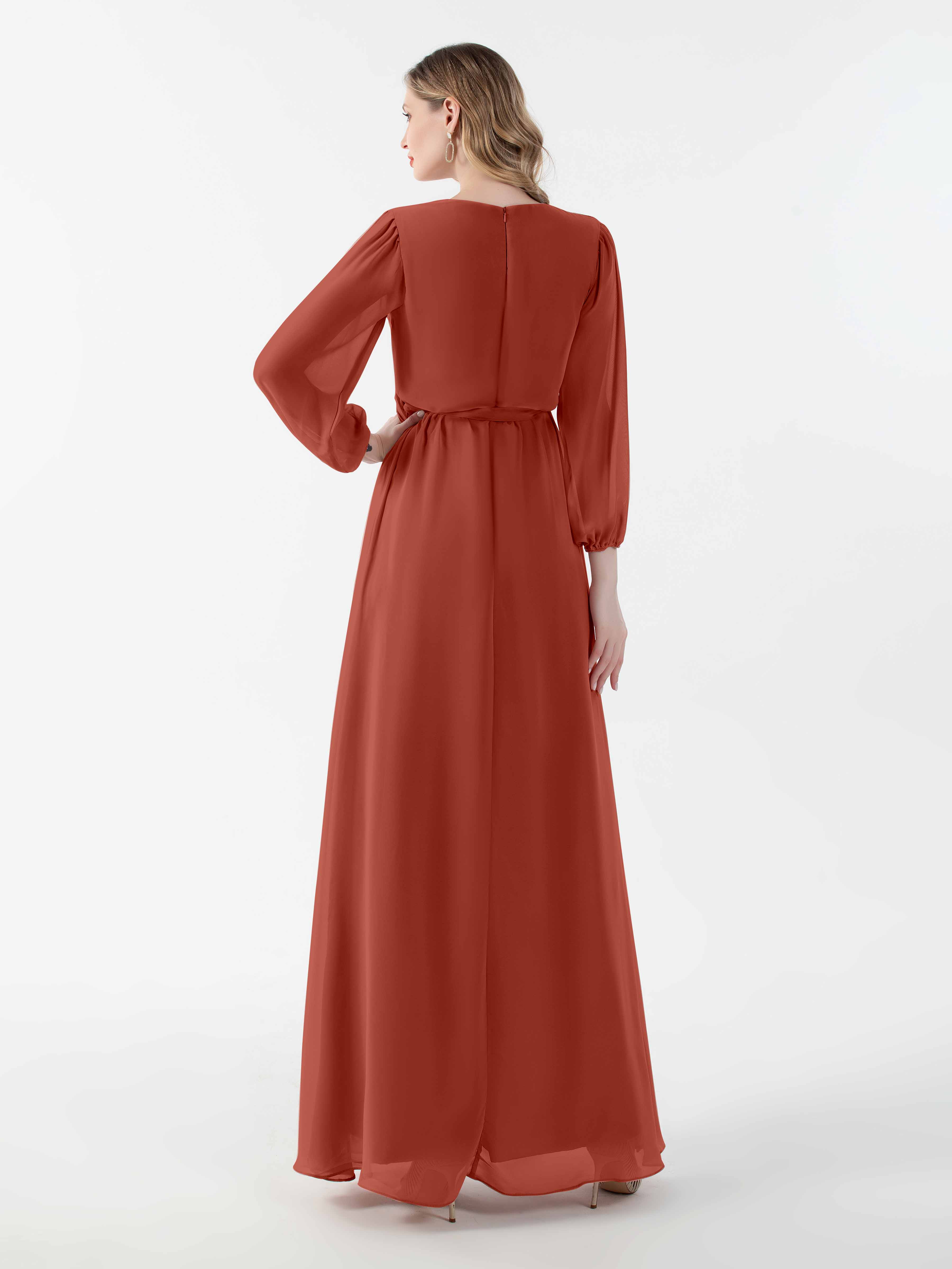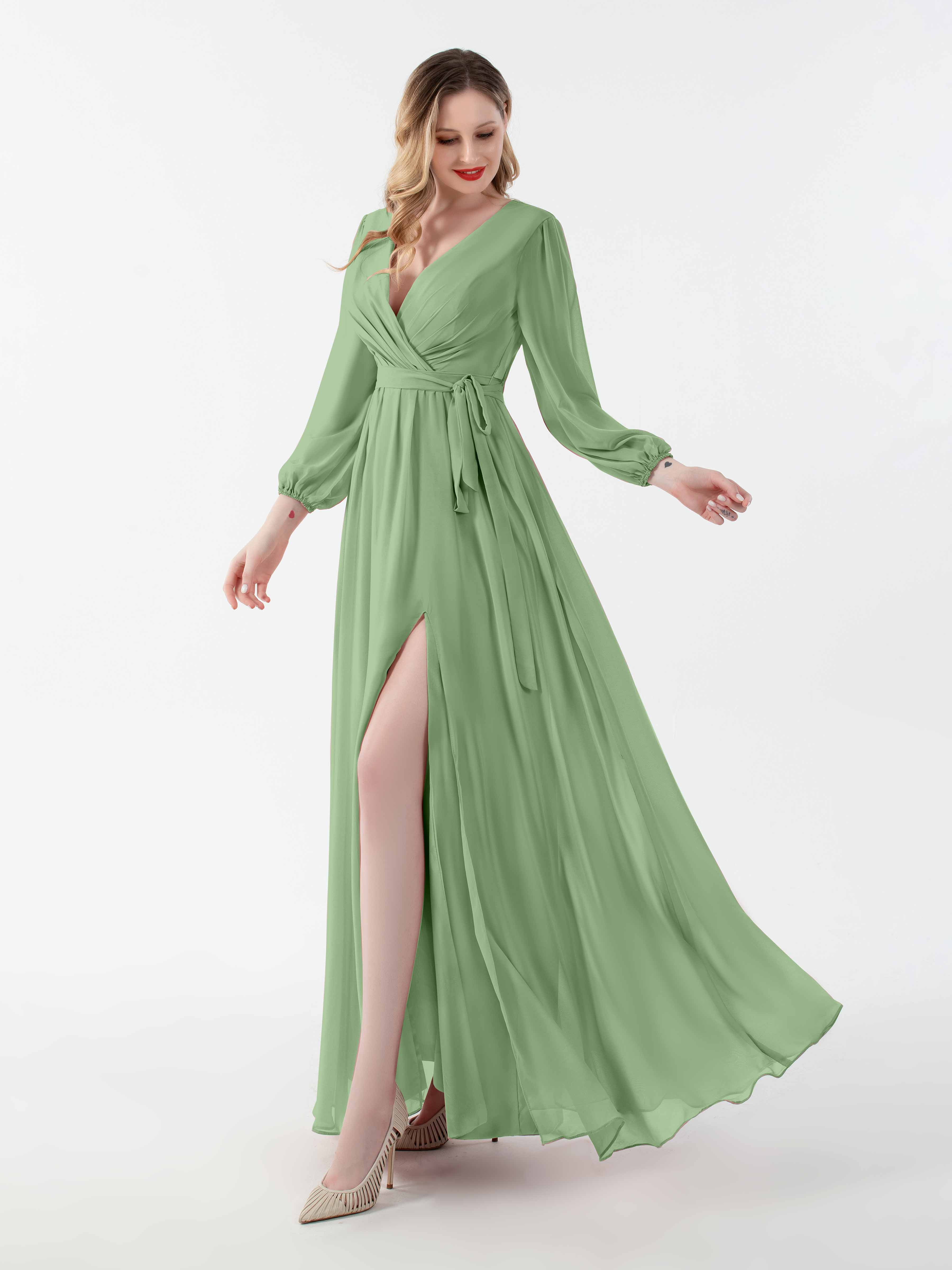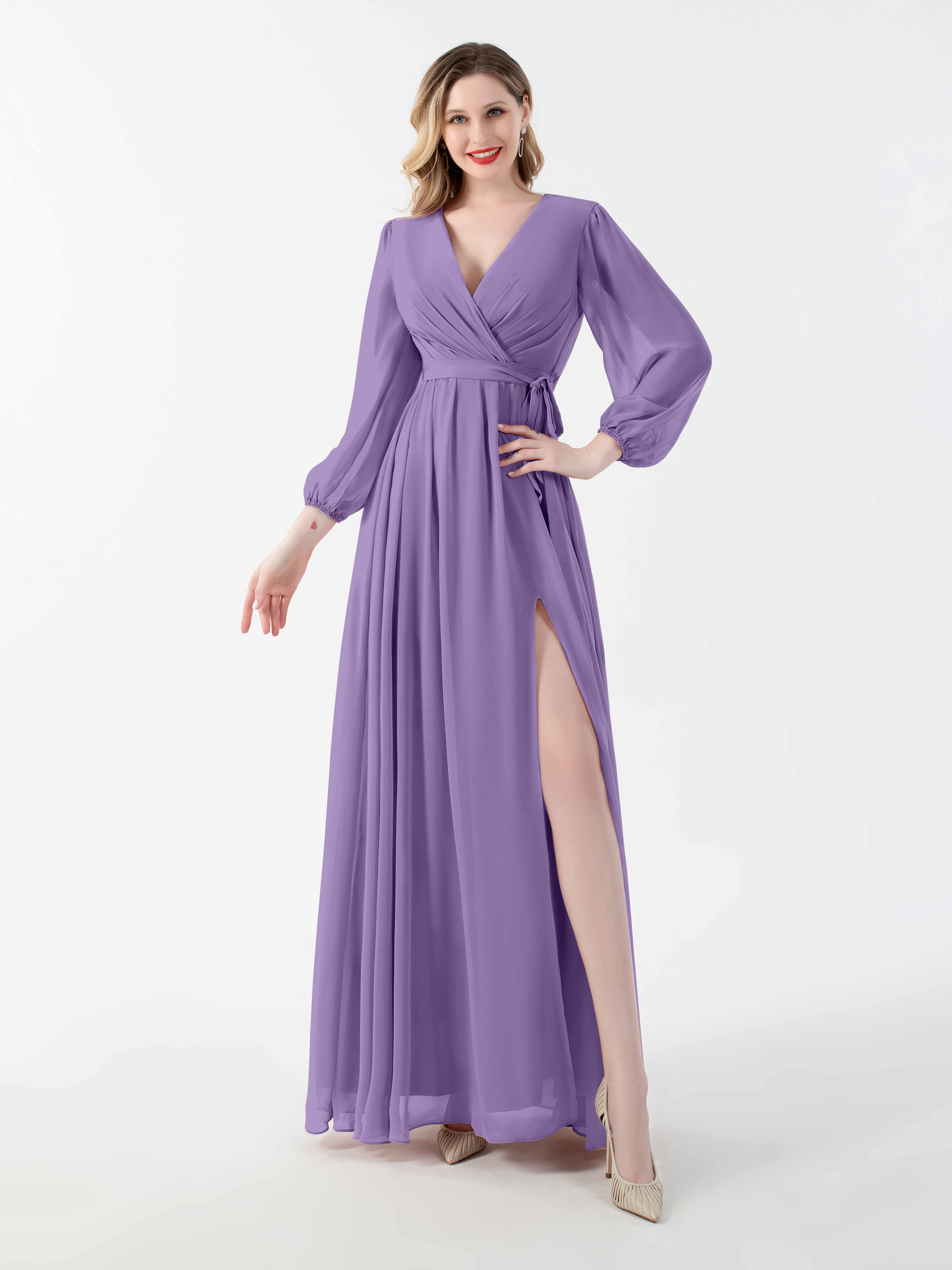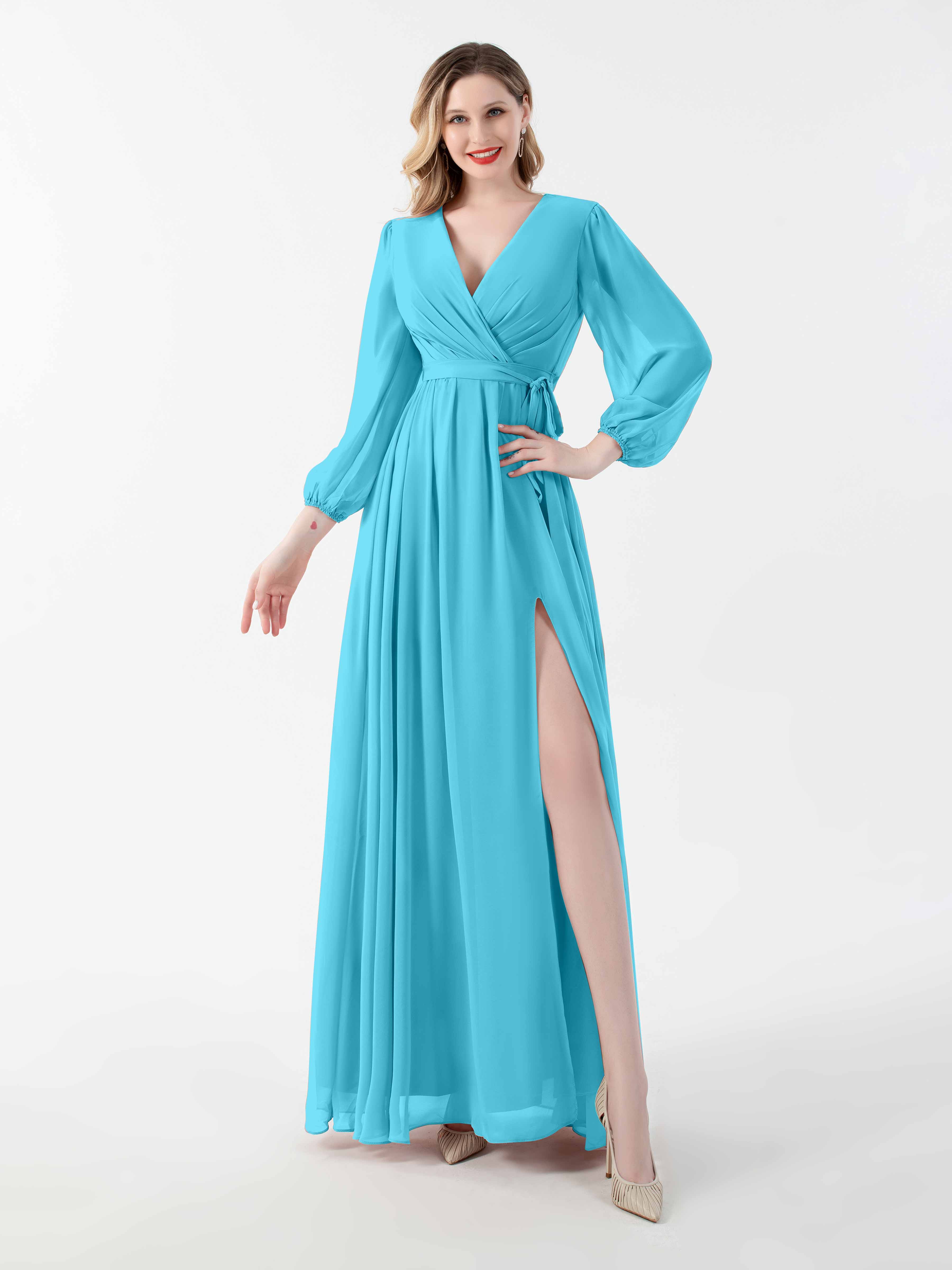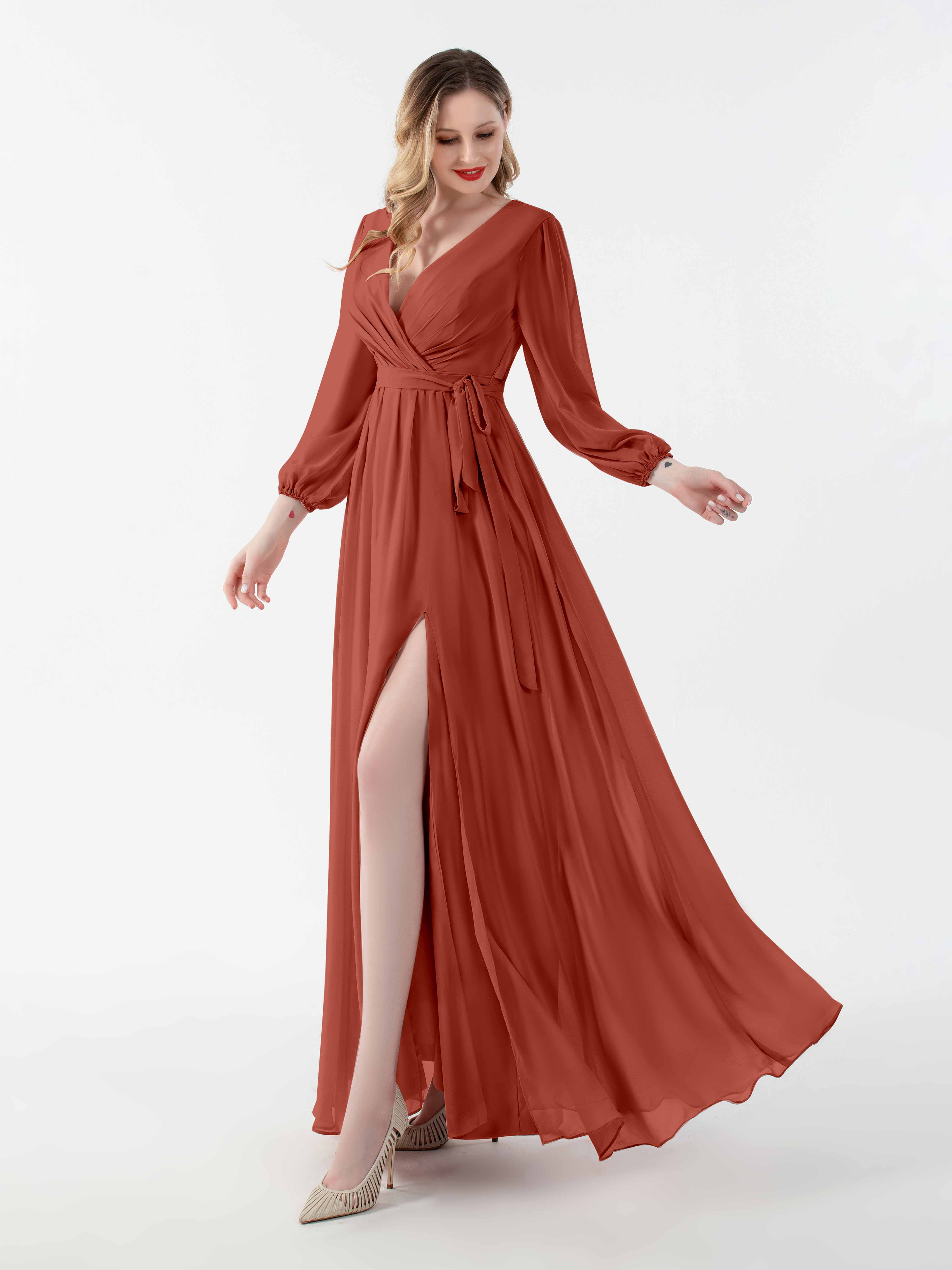 Annabella V Neck Long Sleeves Chiffon Mother Of The Bride Dresses