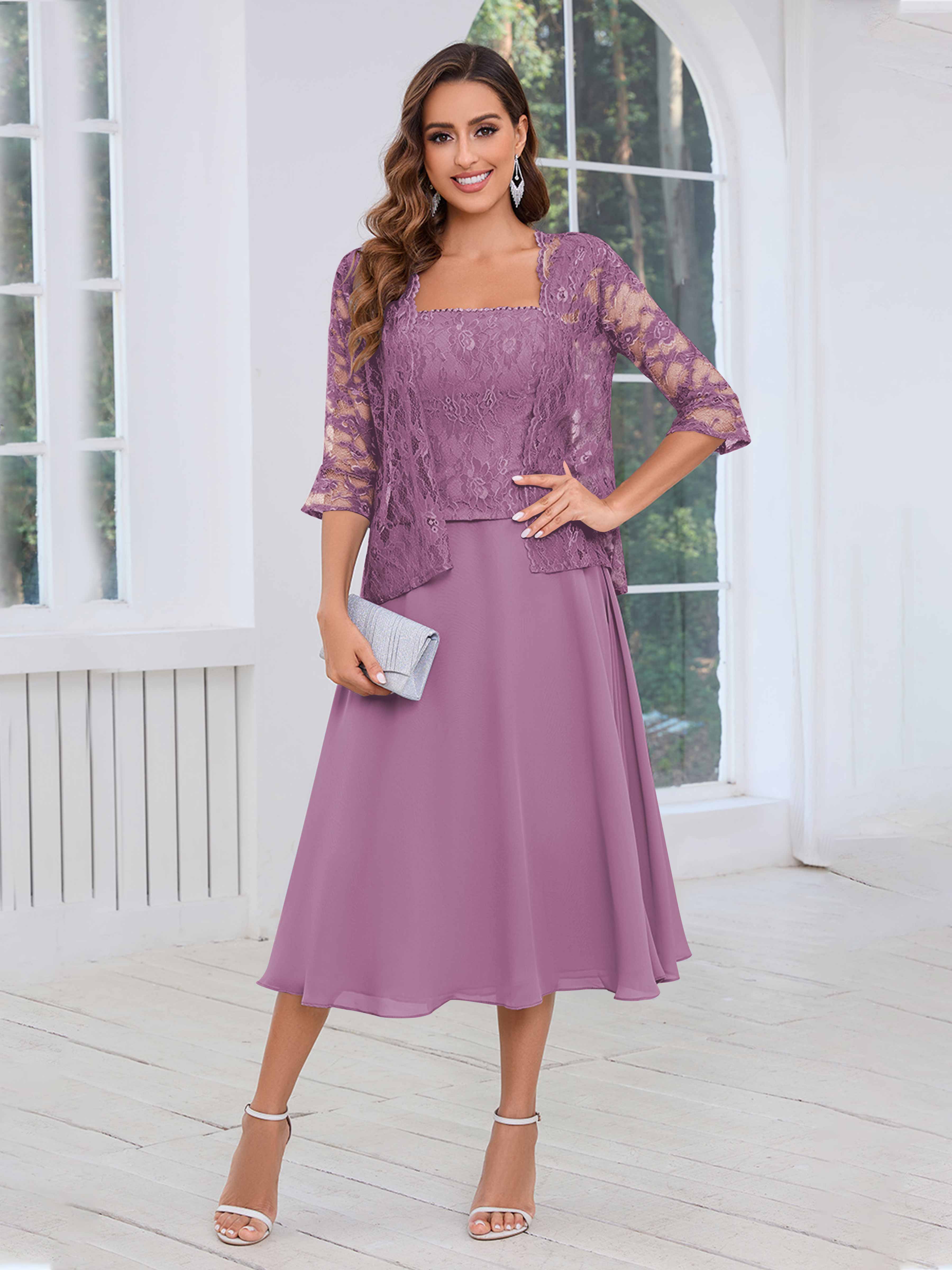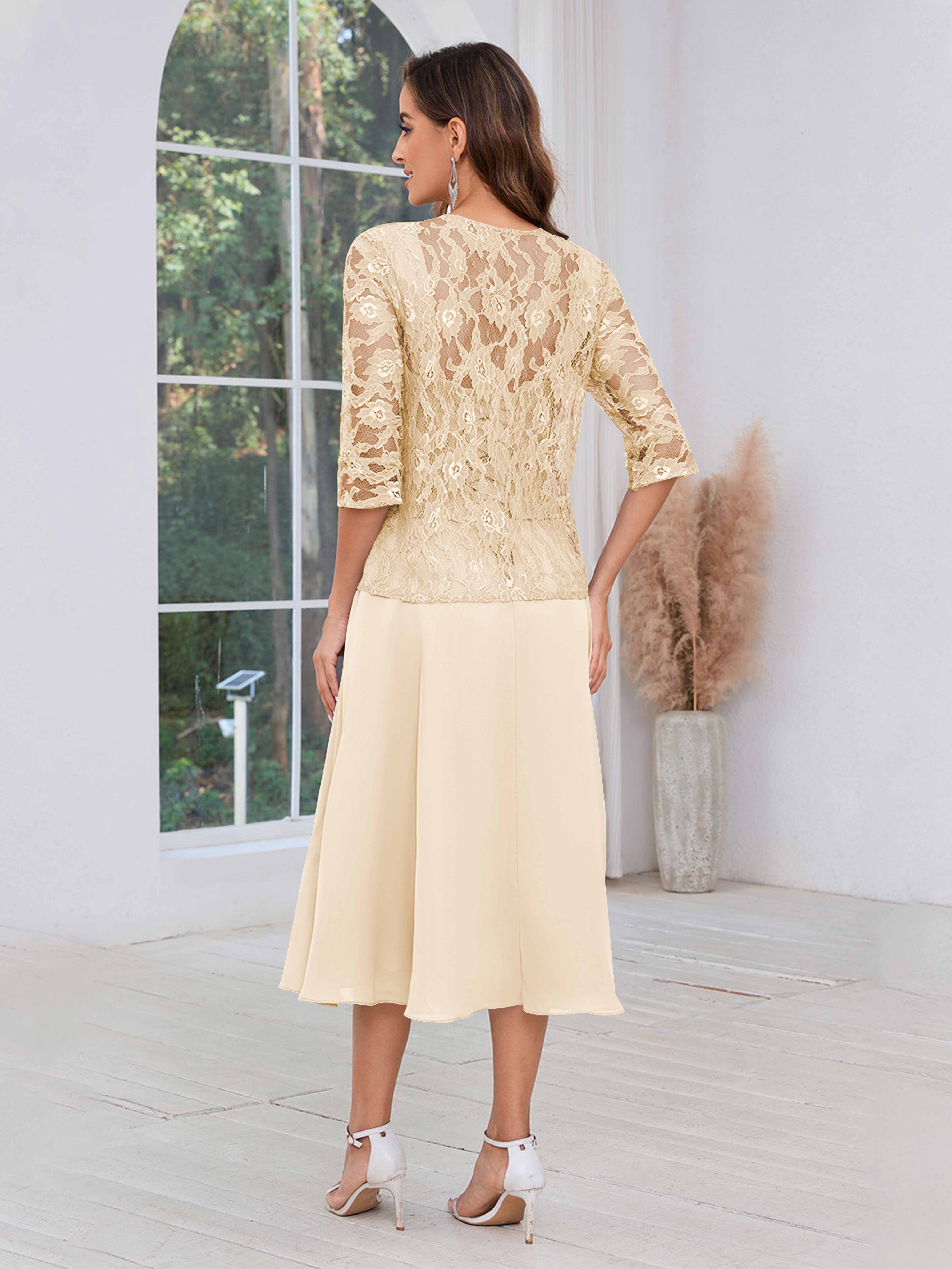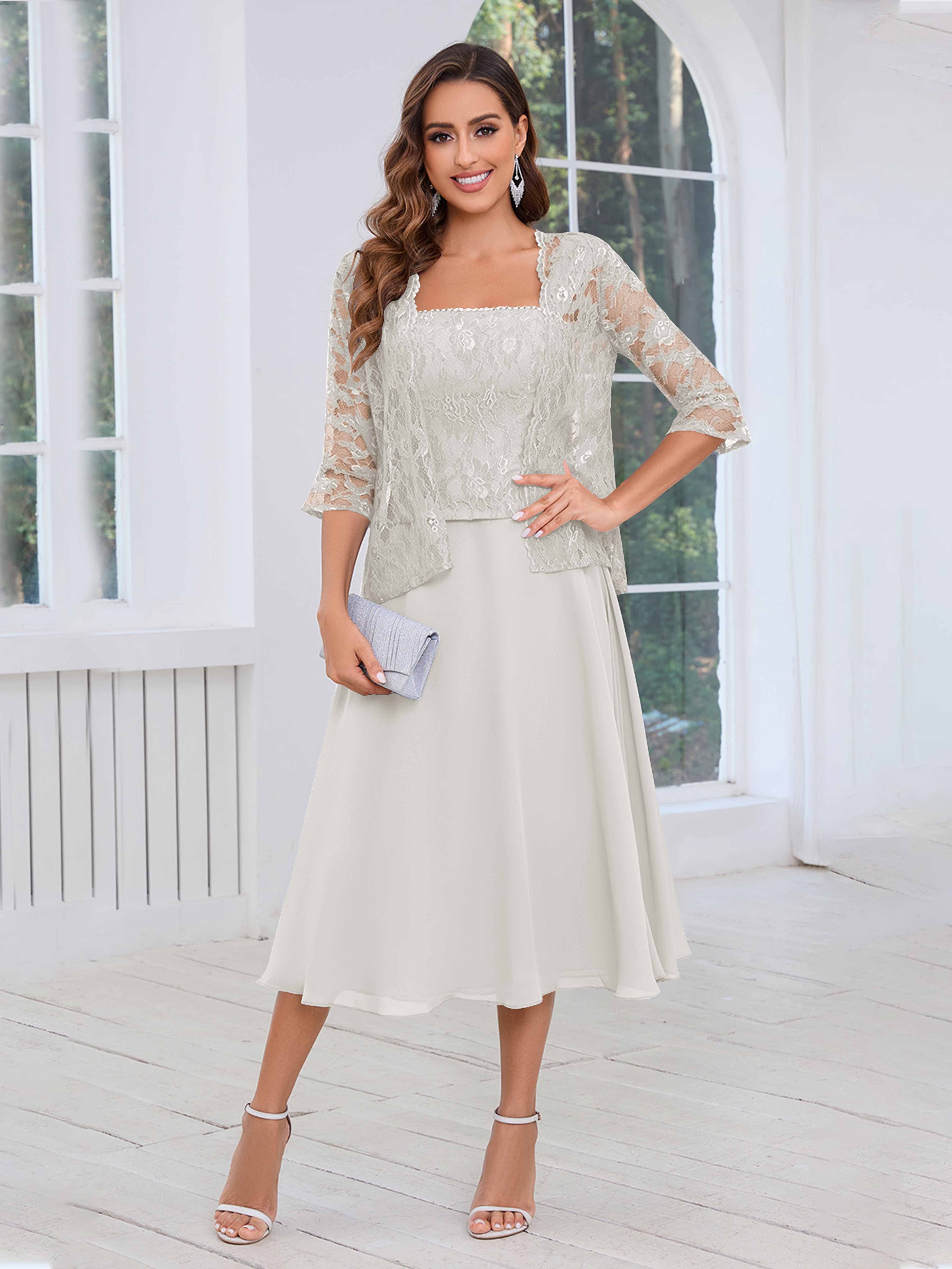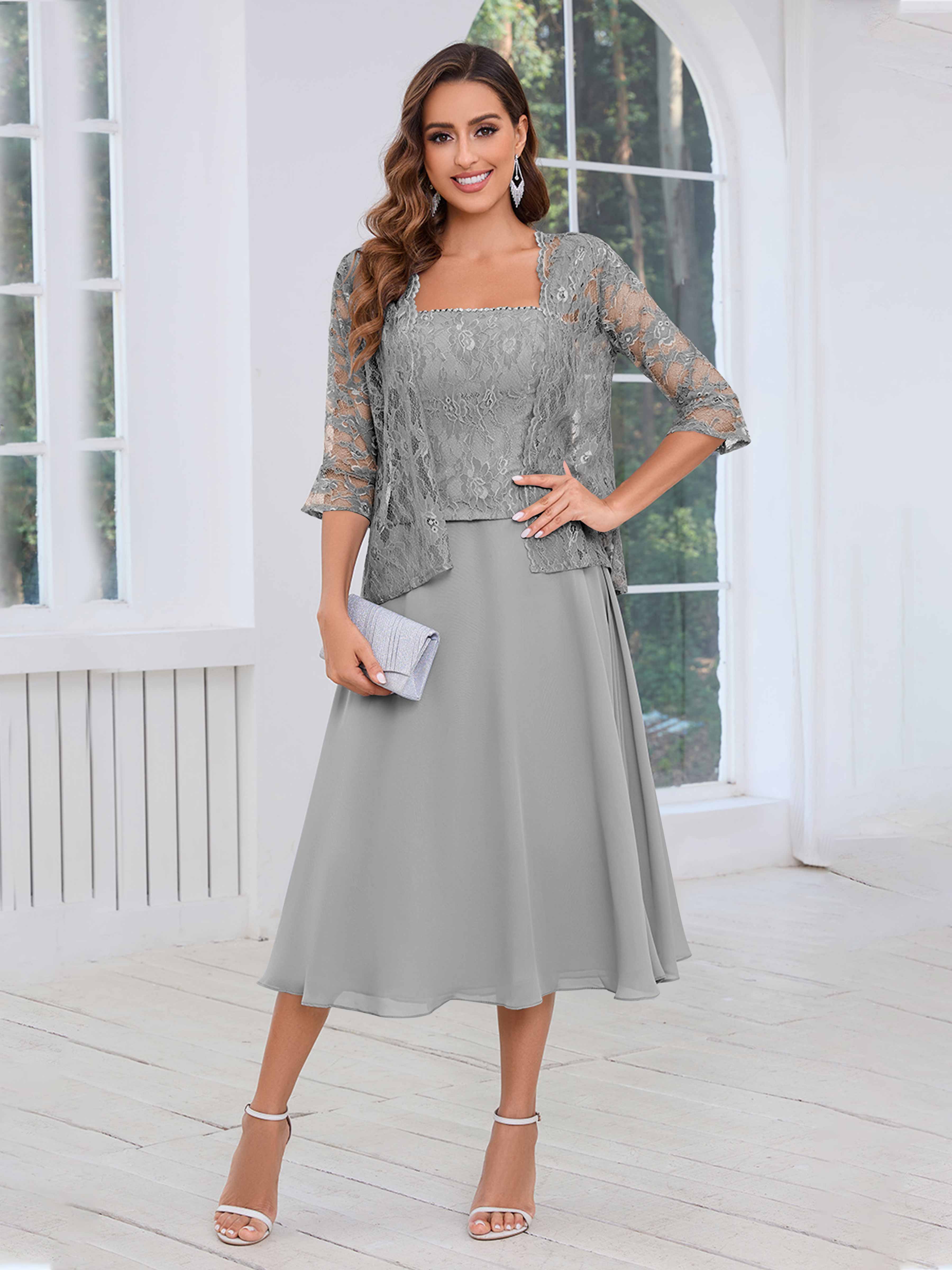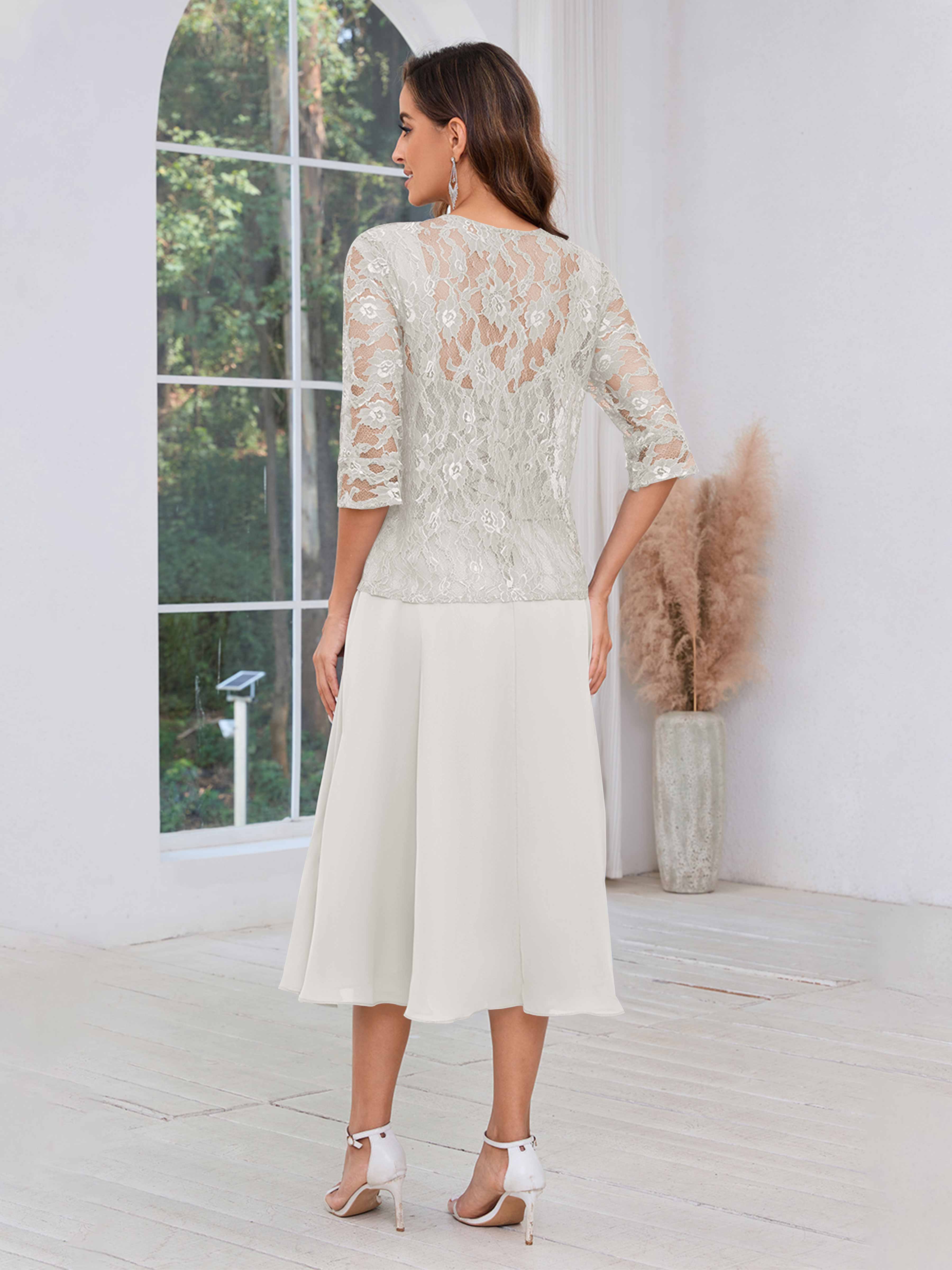 Aurelia Delicate Two Pieces Beading Lace Appliques Midi Chiffon Mother Of The Bride Dresses