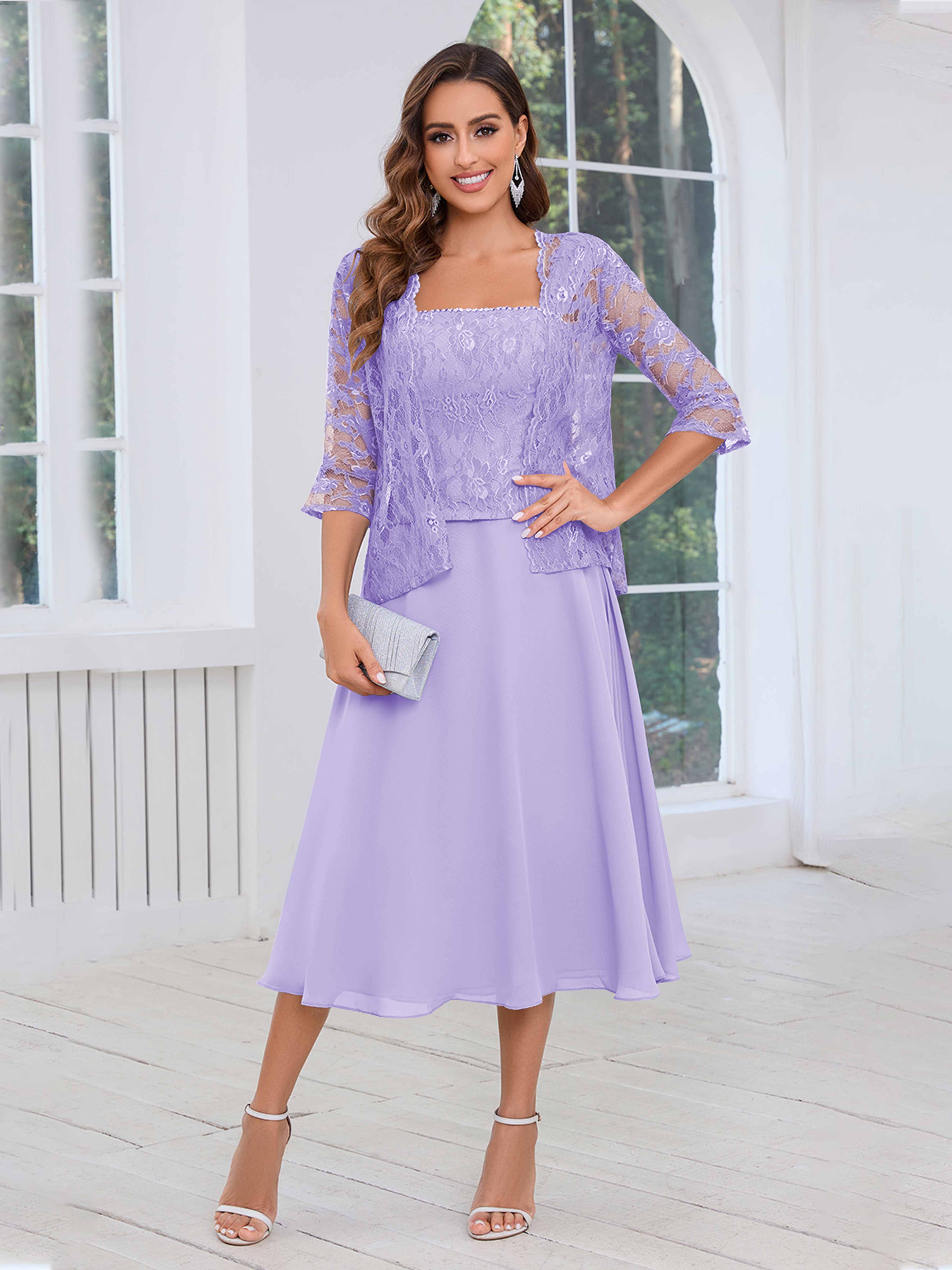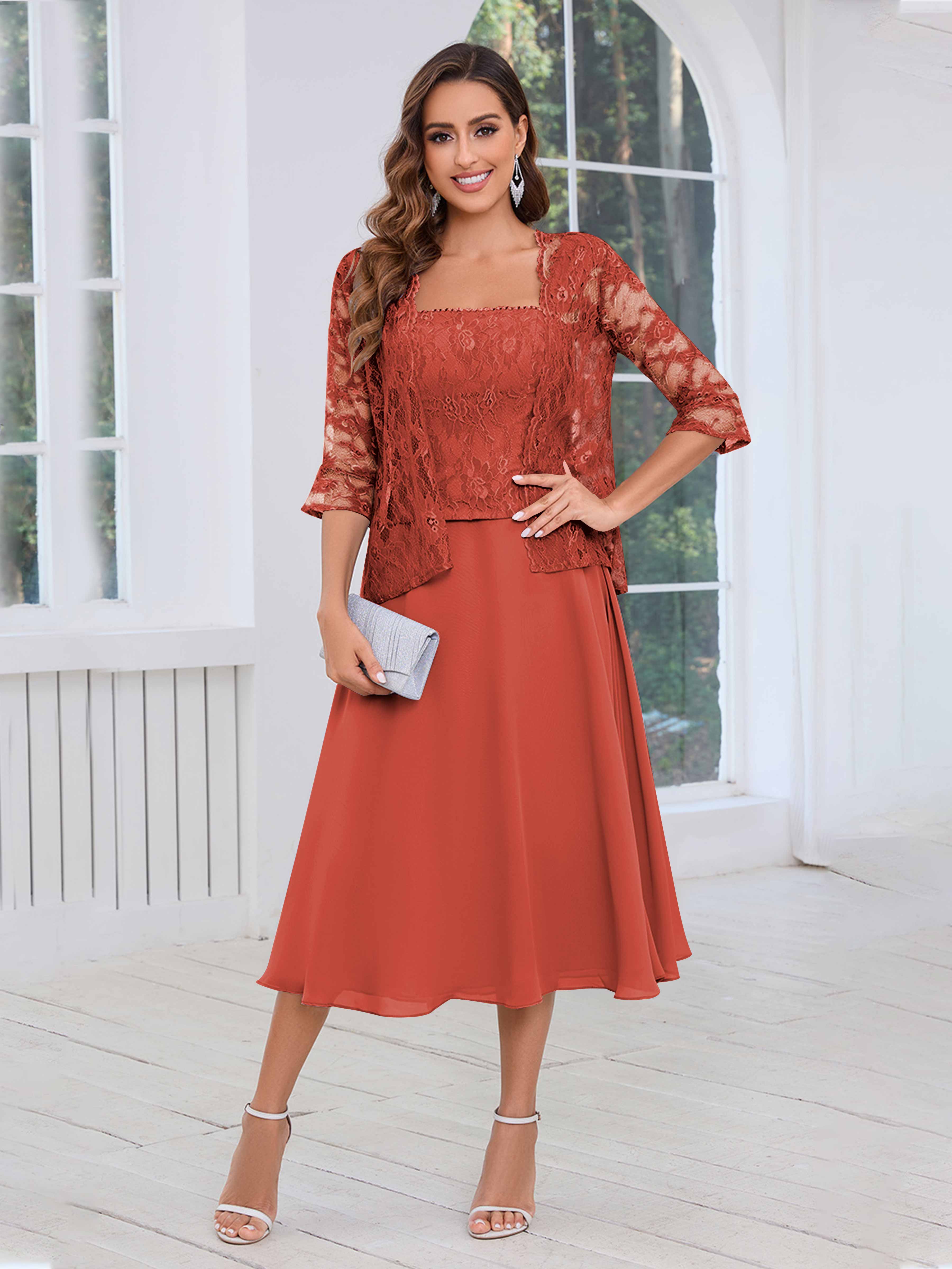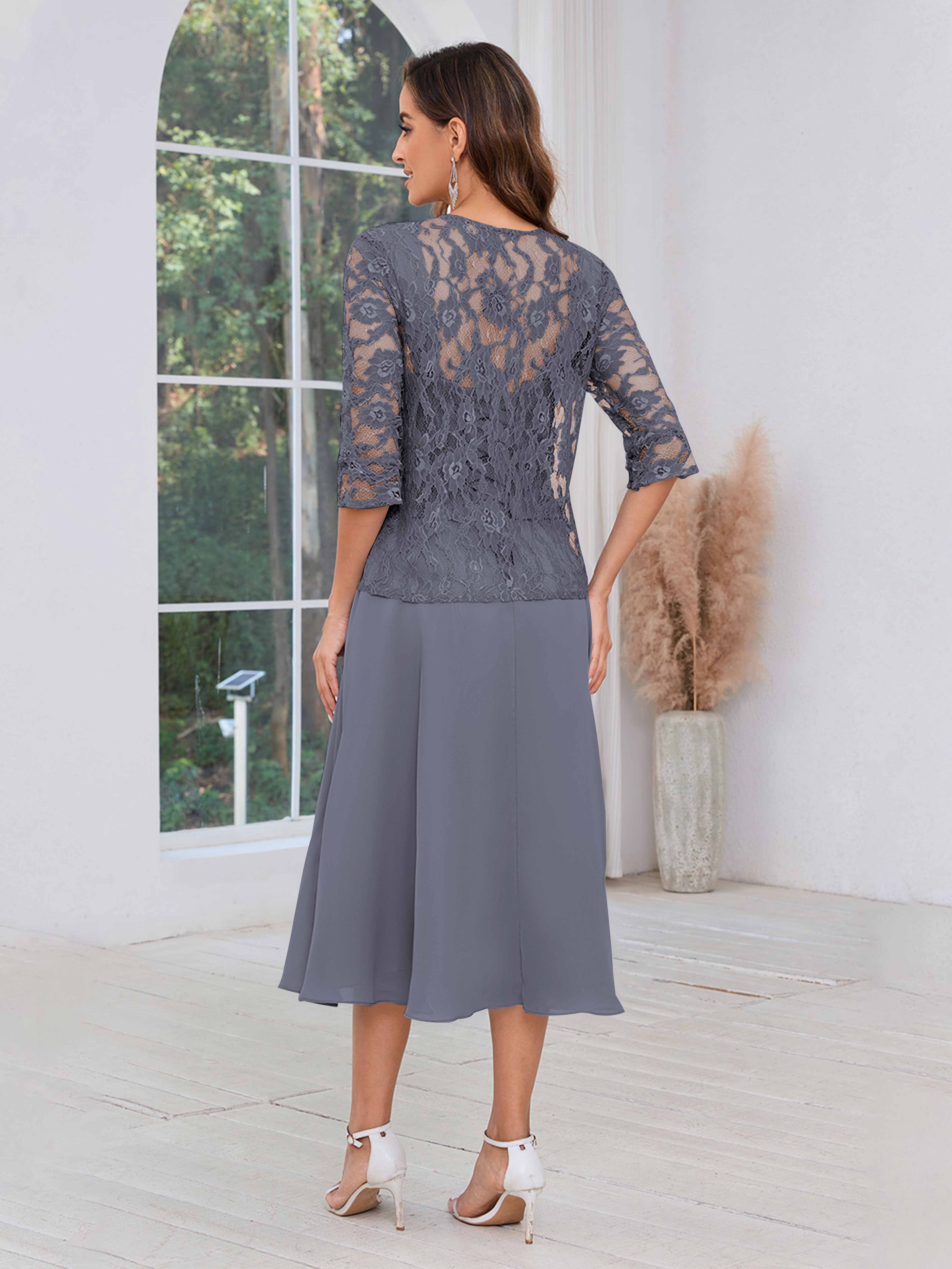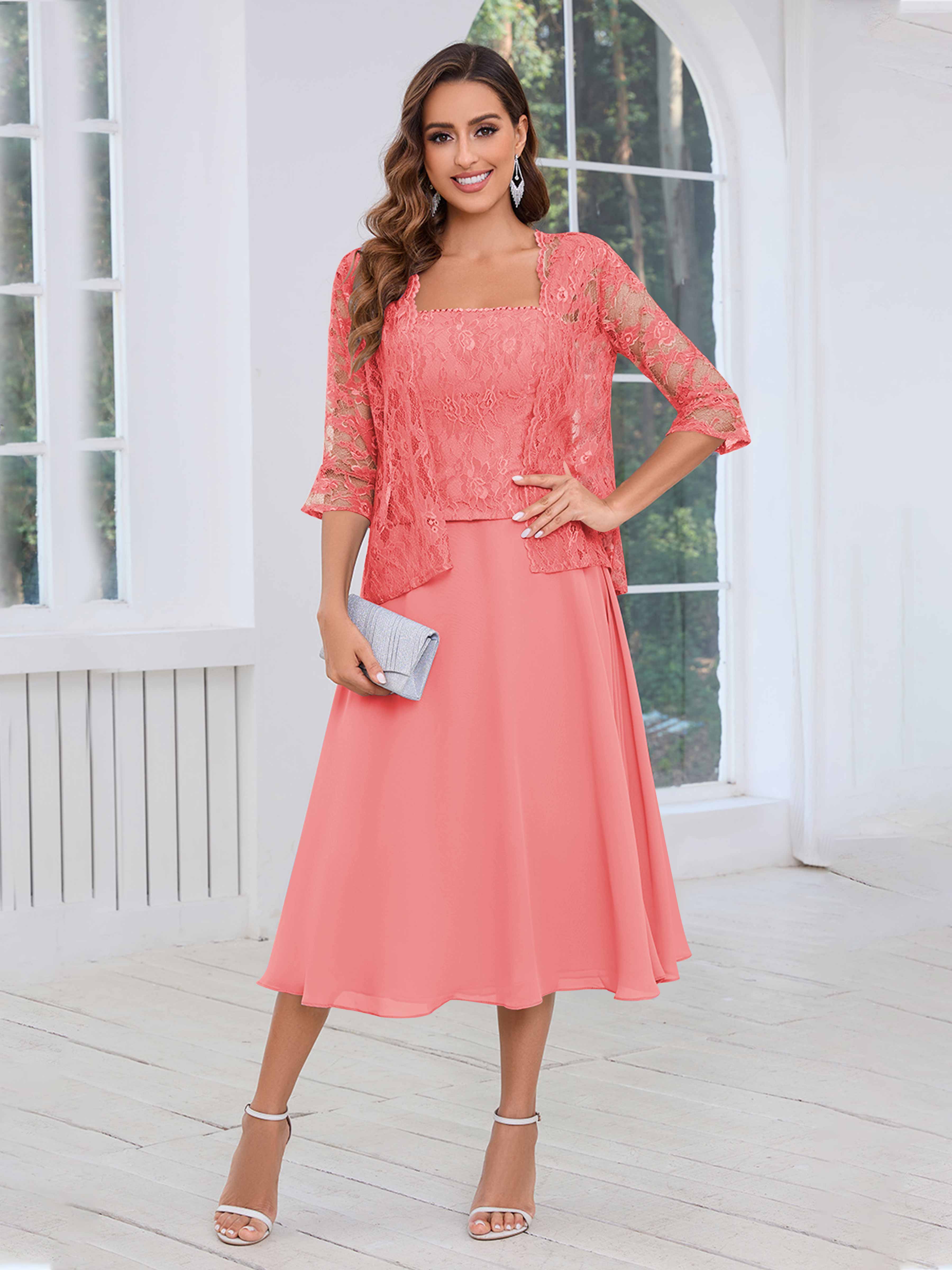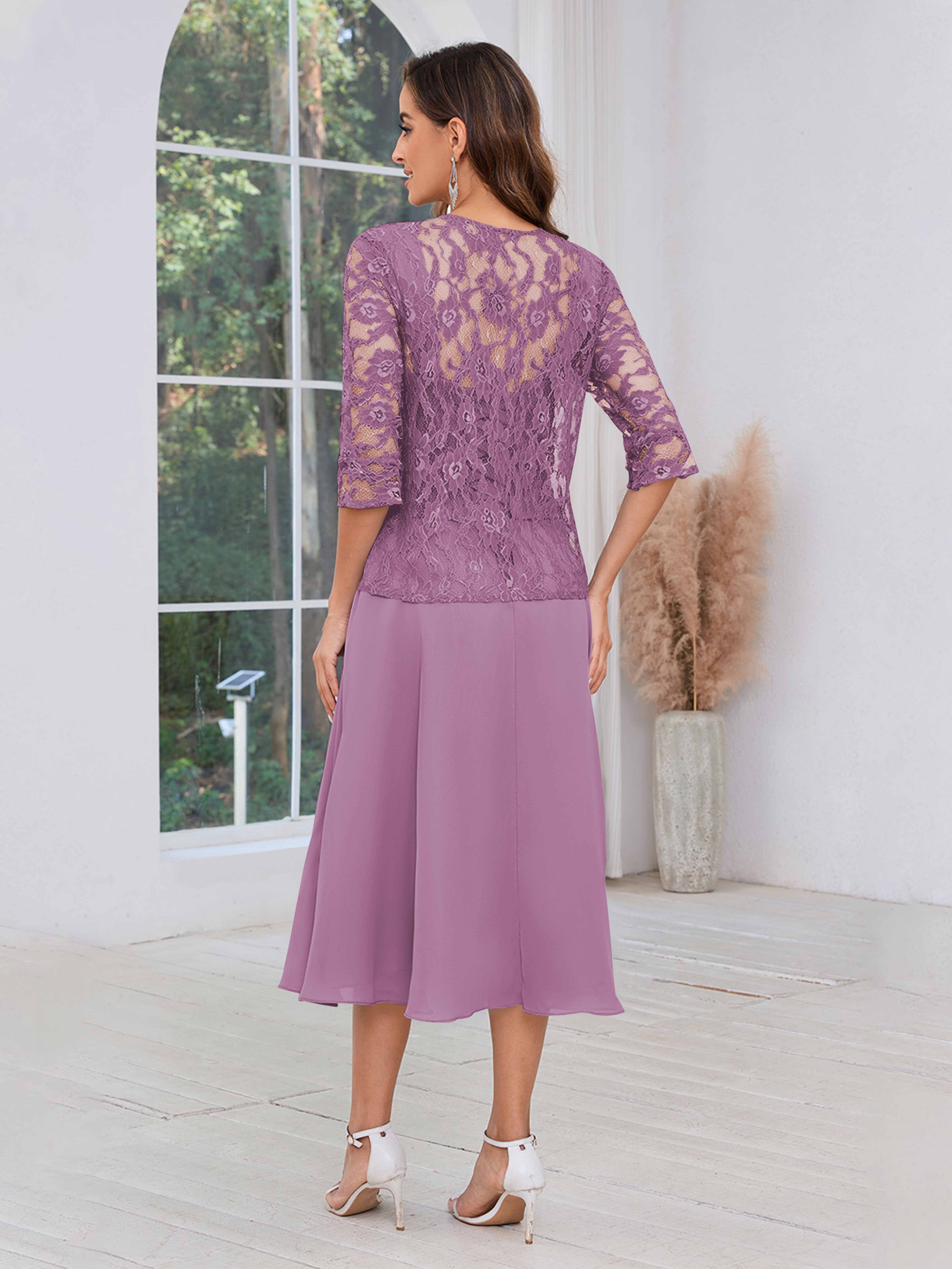 Aurelia Delicate Two Pieces Beading Lace Appliques Midi Chiffon Mother Of The Bride Dresses