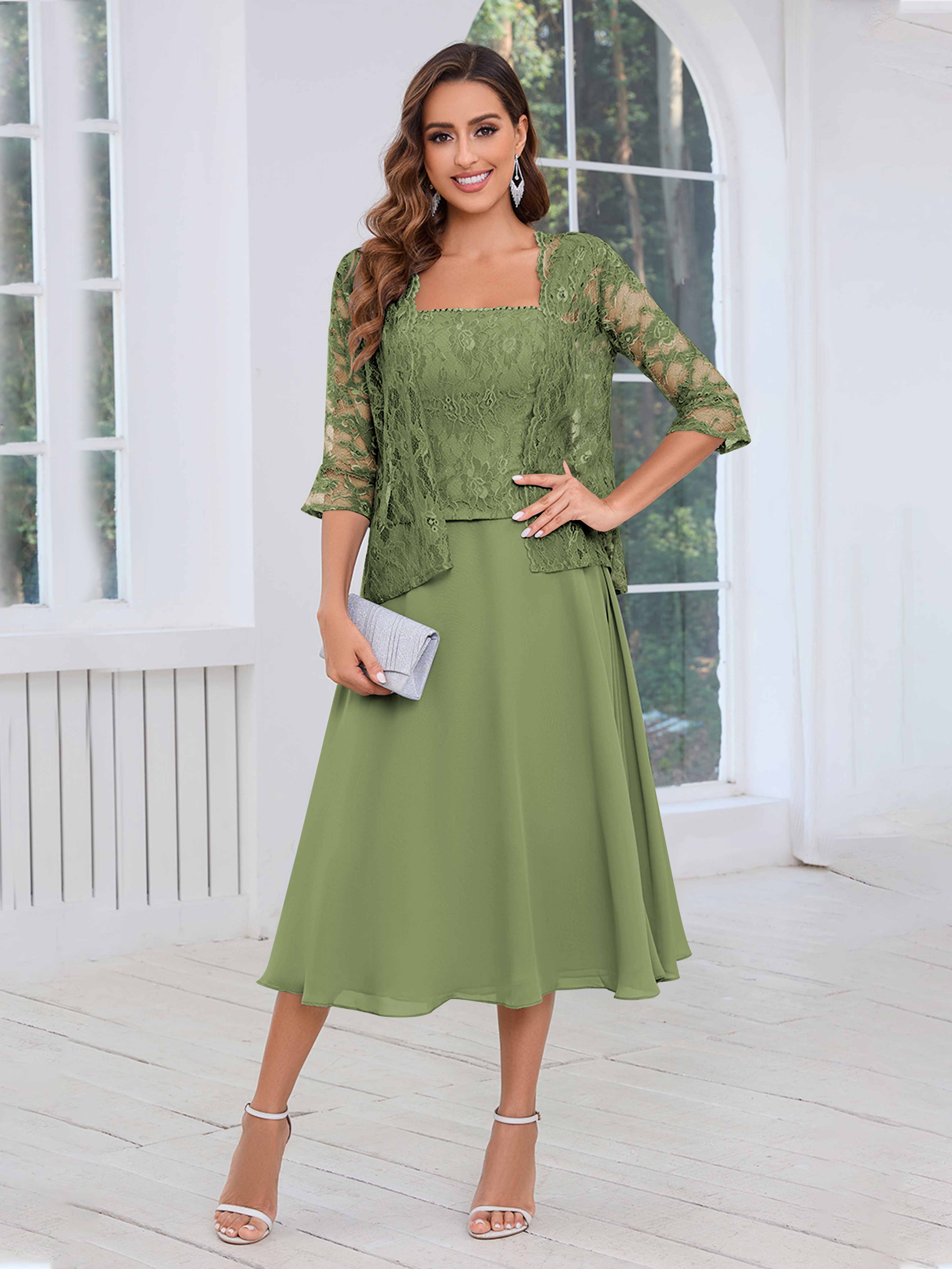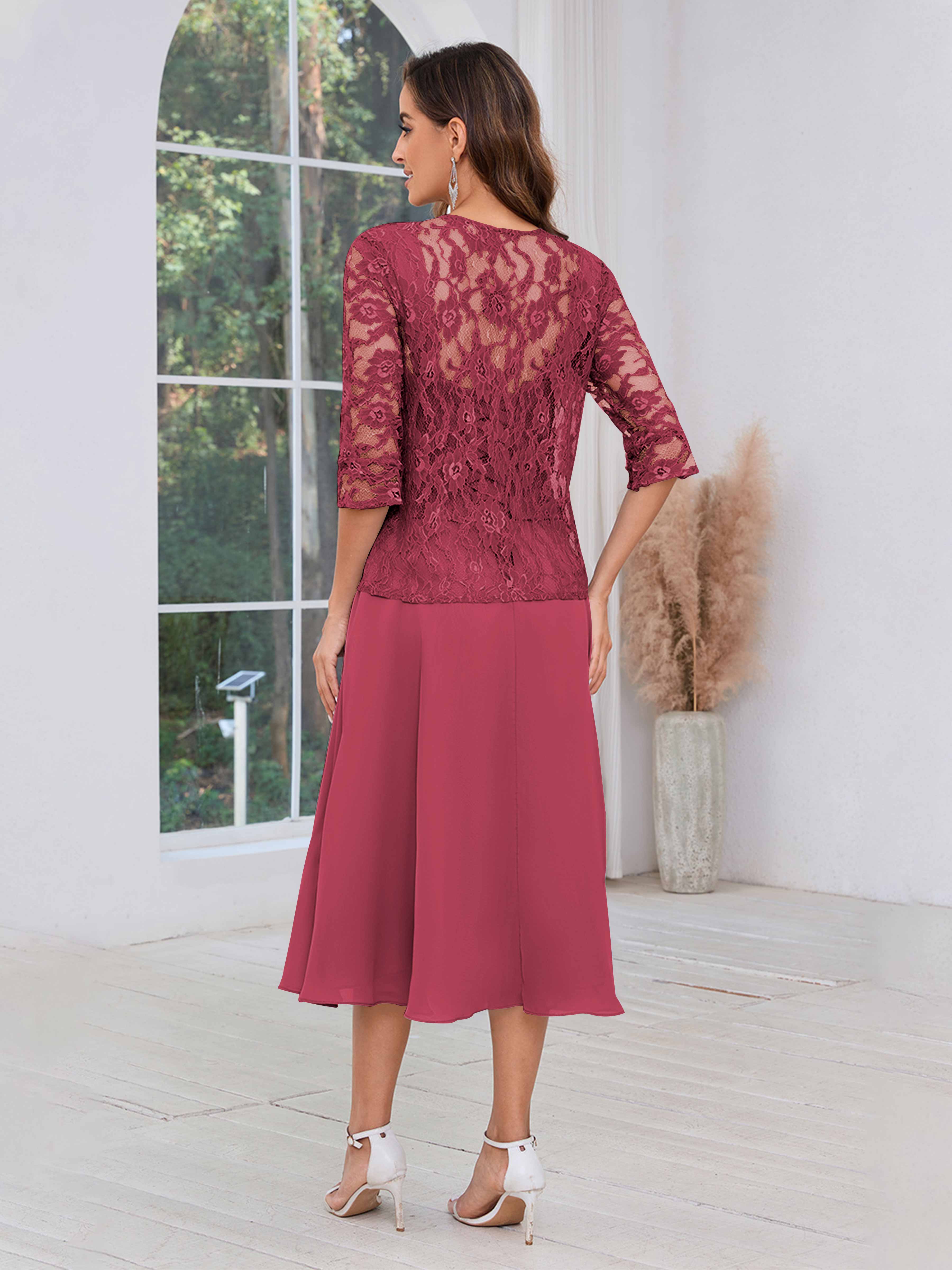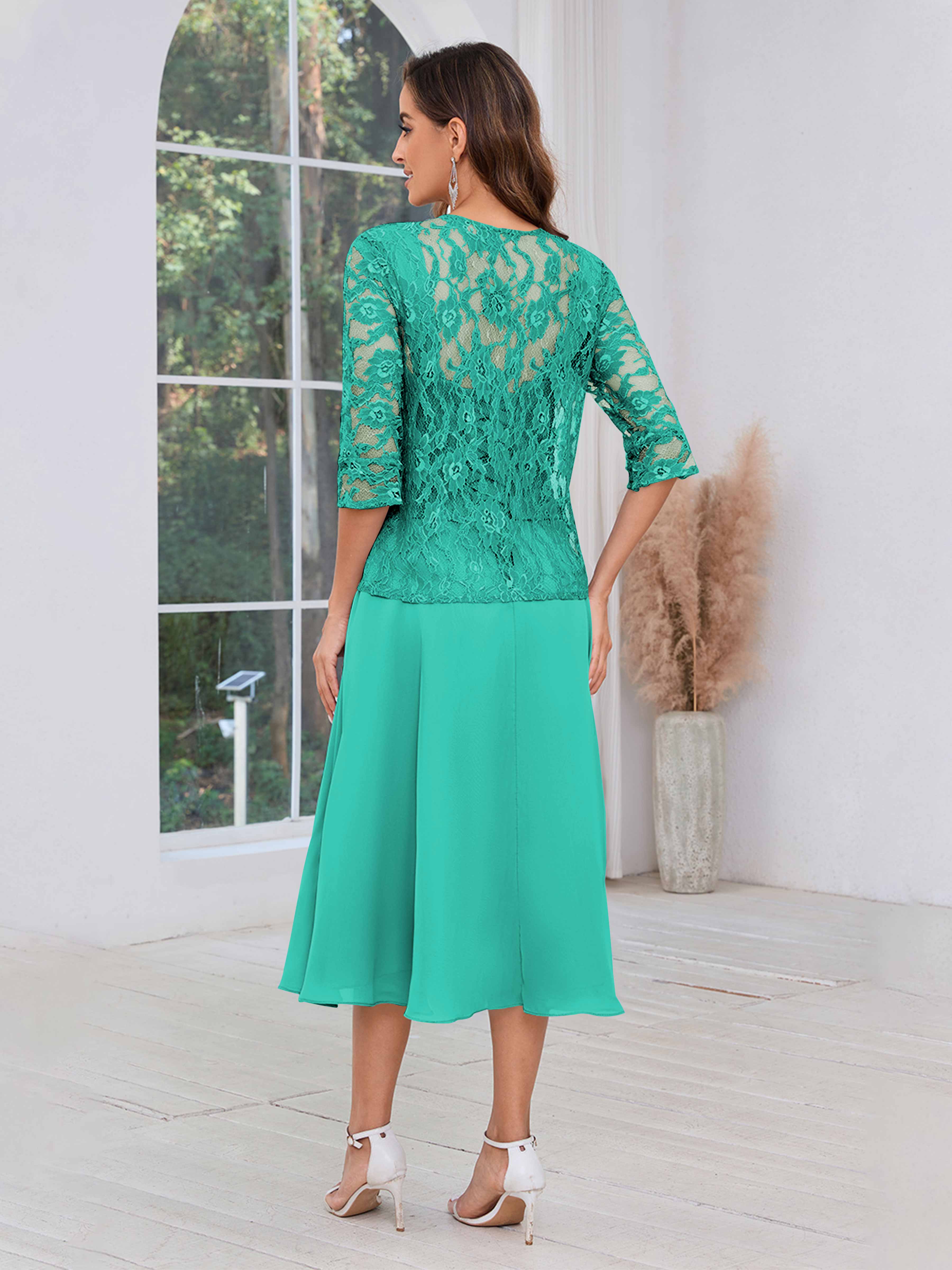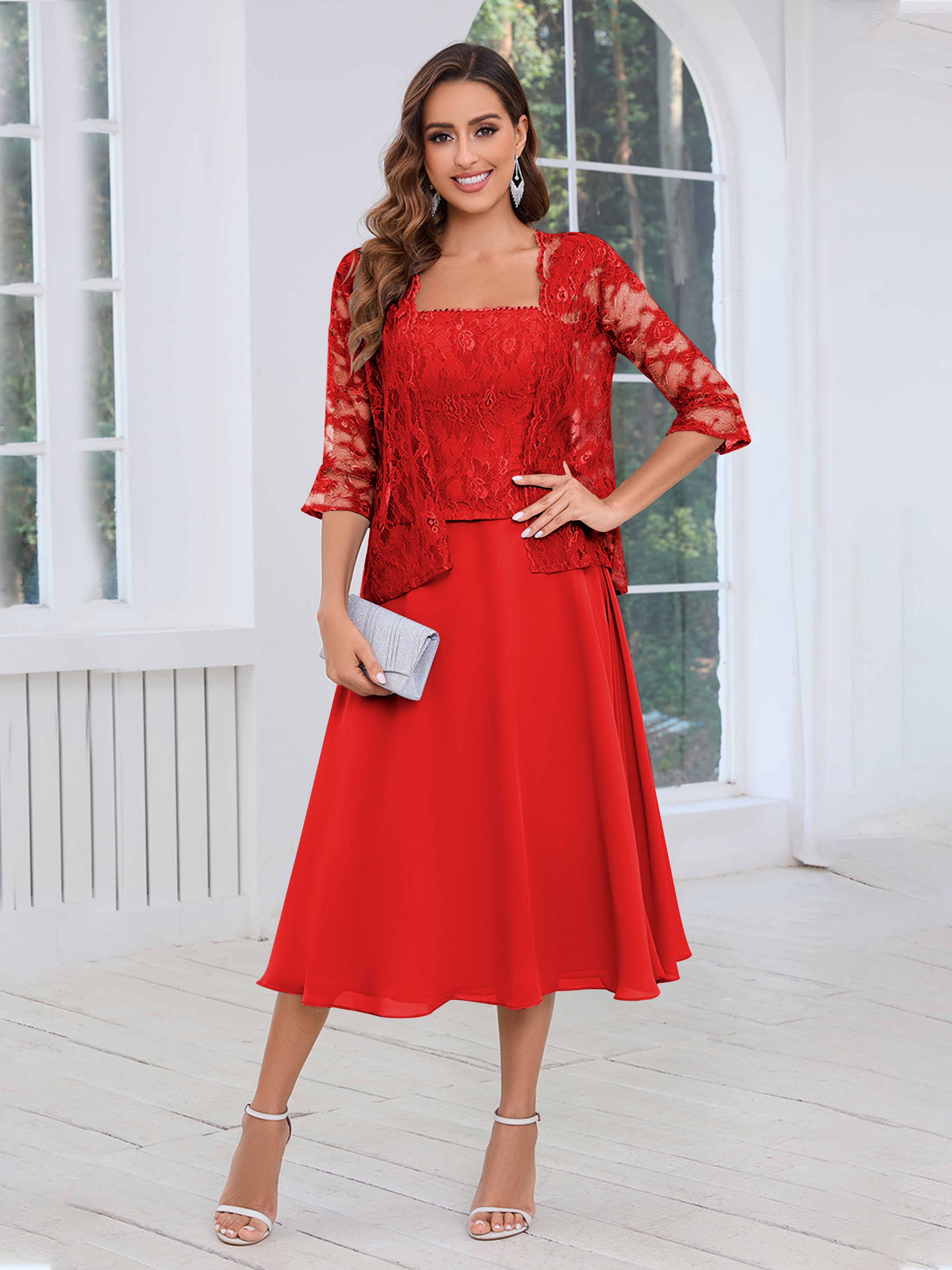 Aurelia Delicate Two Pieces Beading Lace Appliques Midi Chiffon Mother Of The Bride Dresses