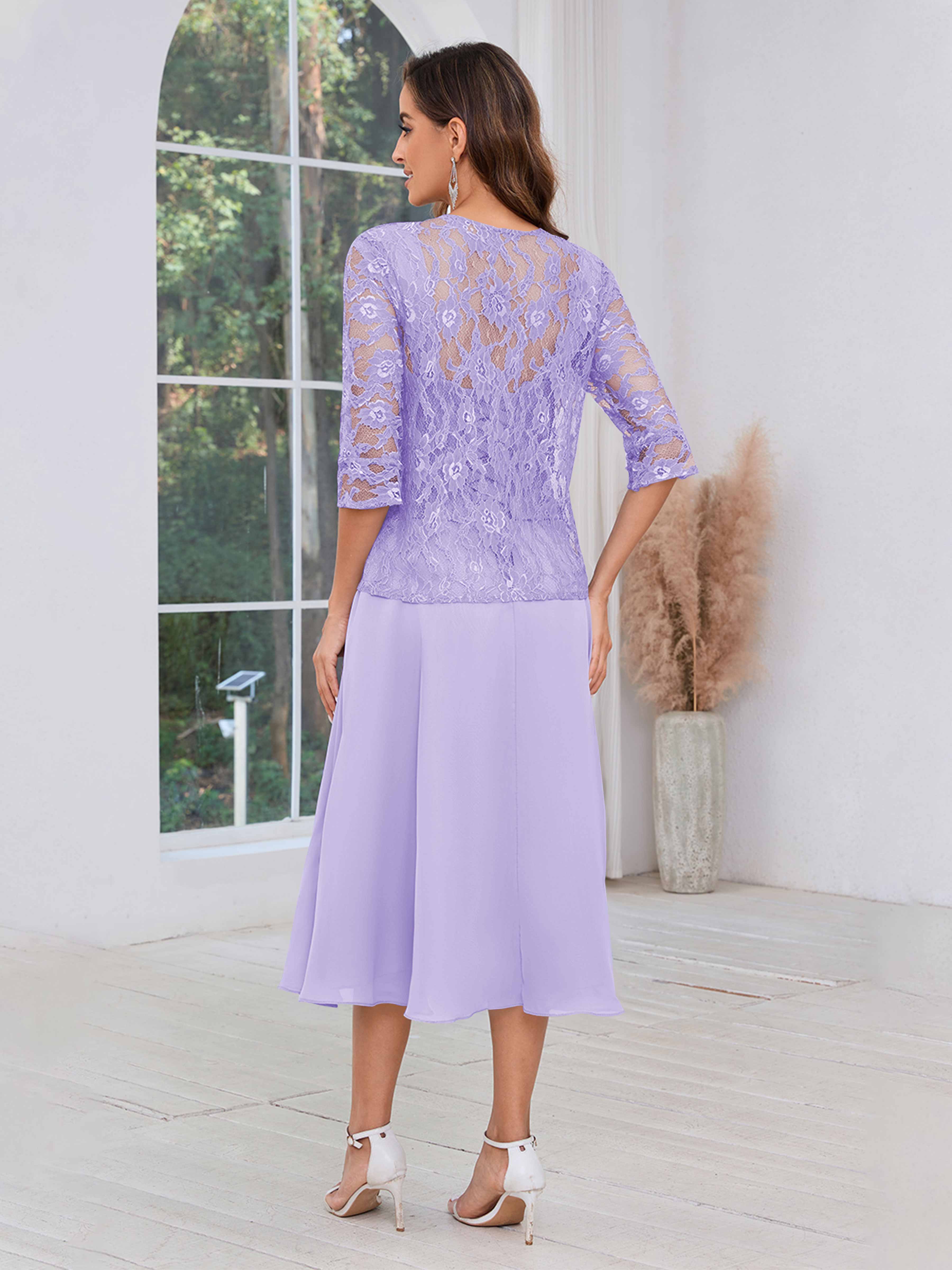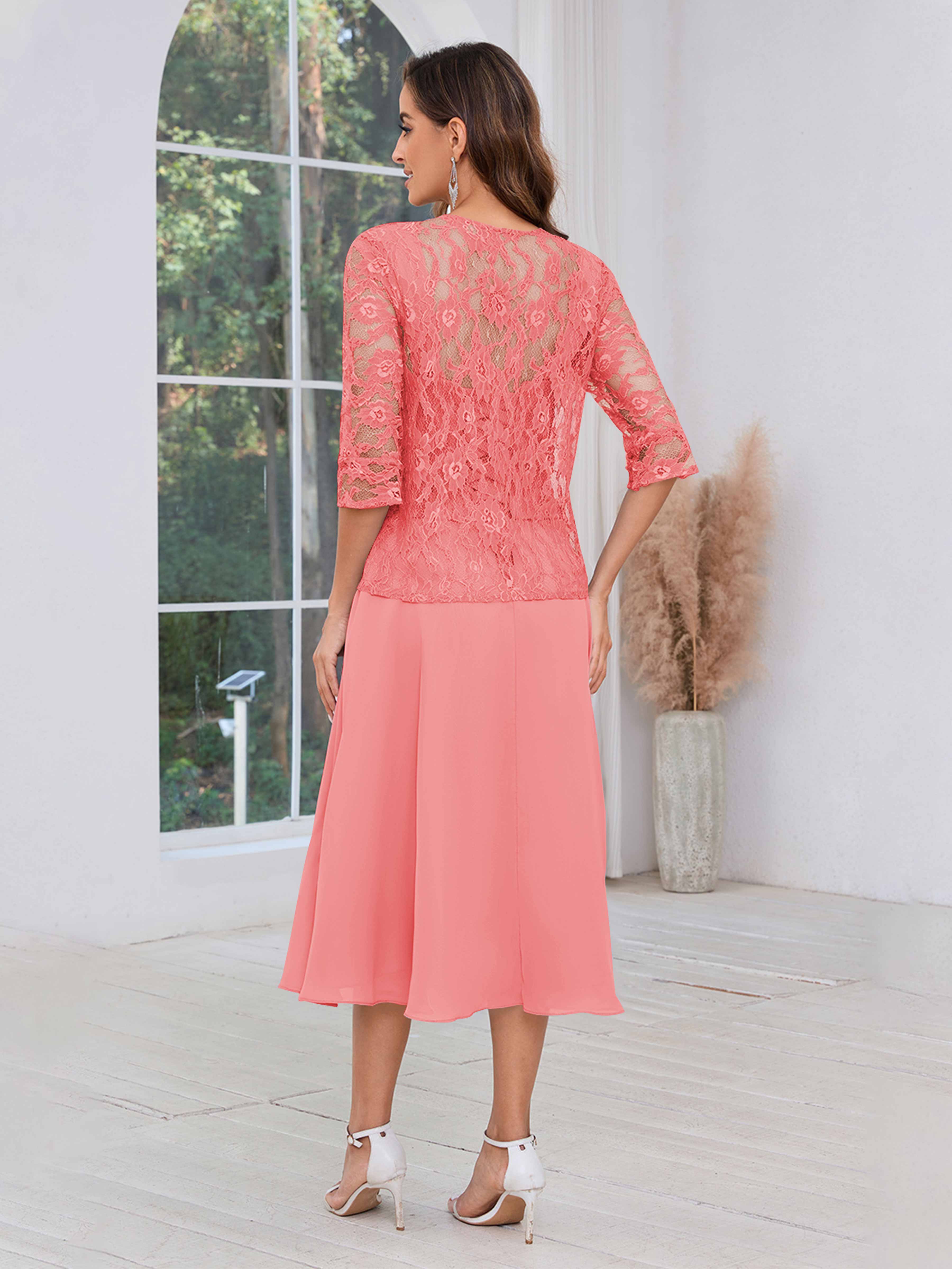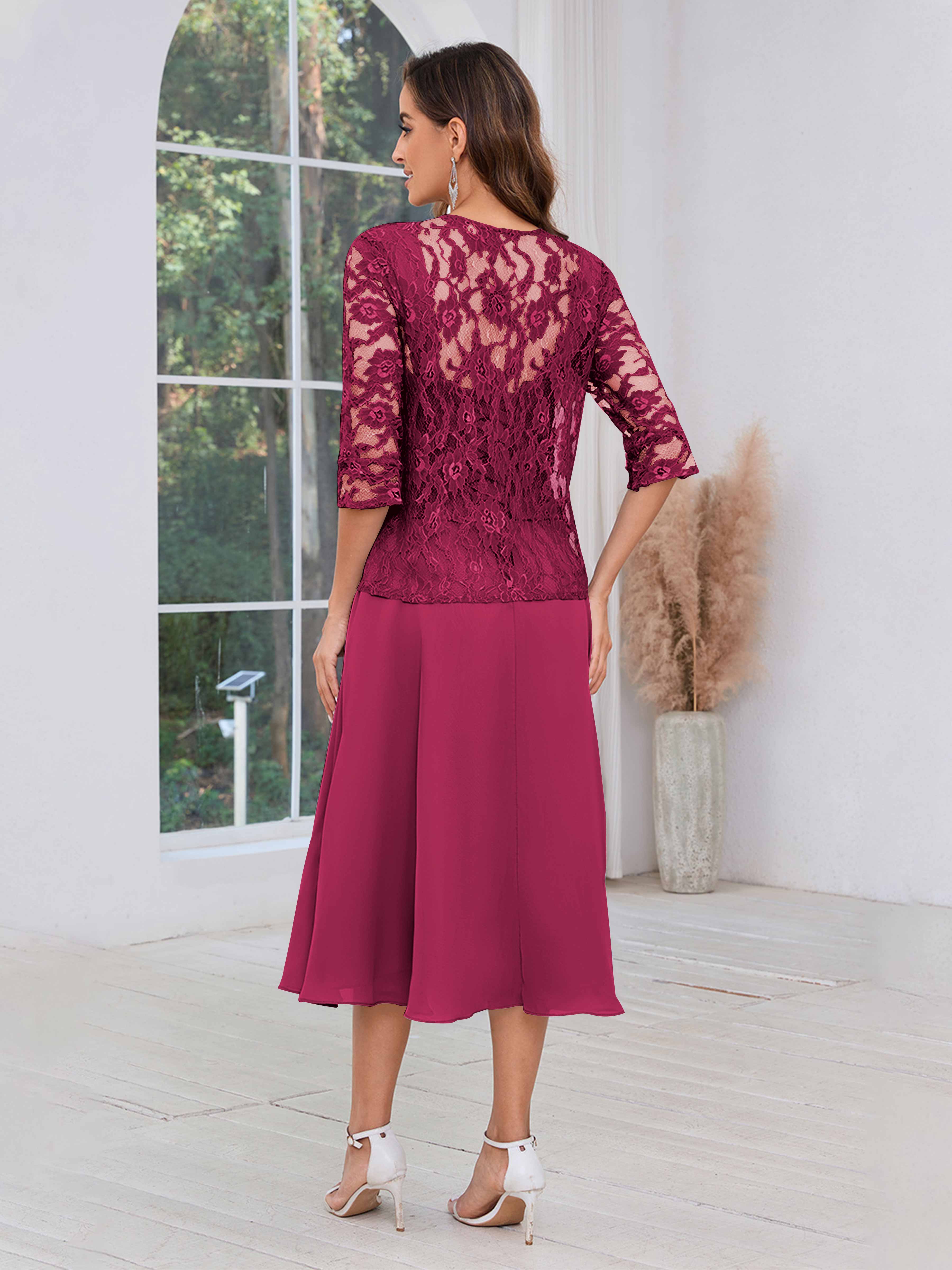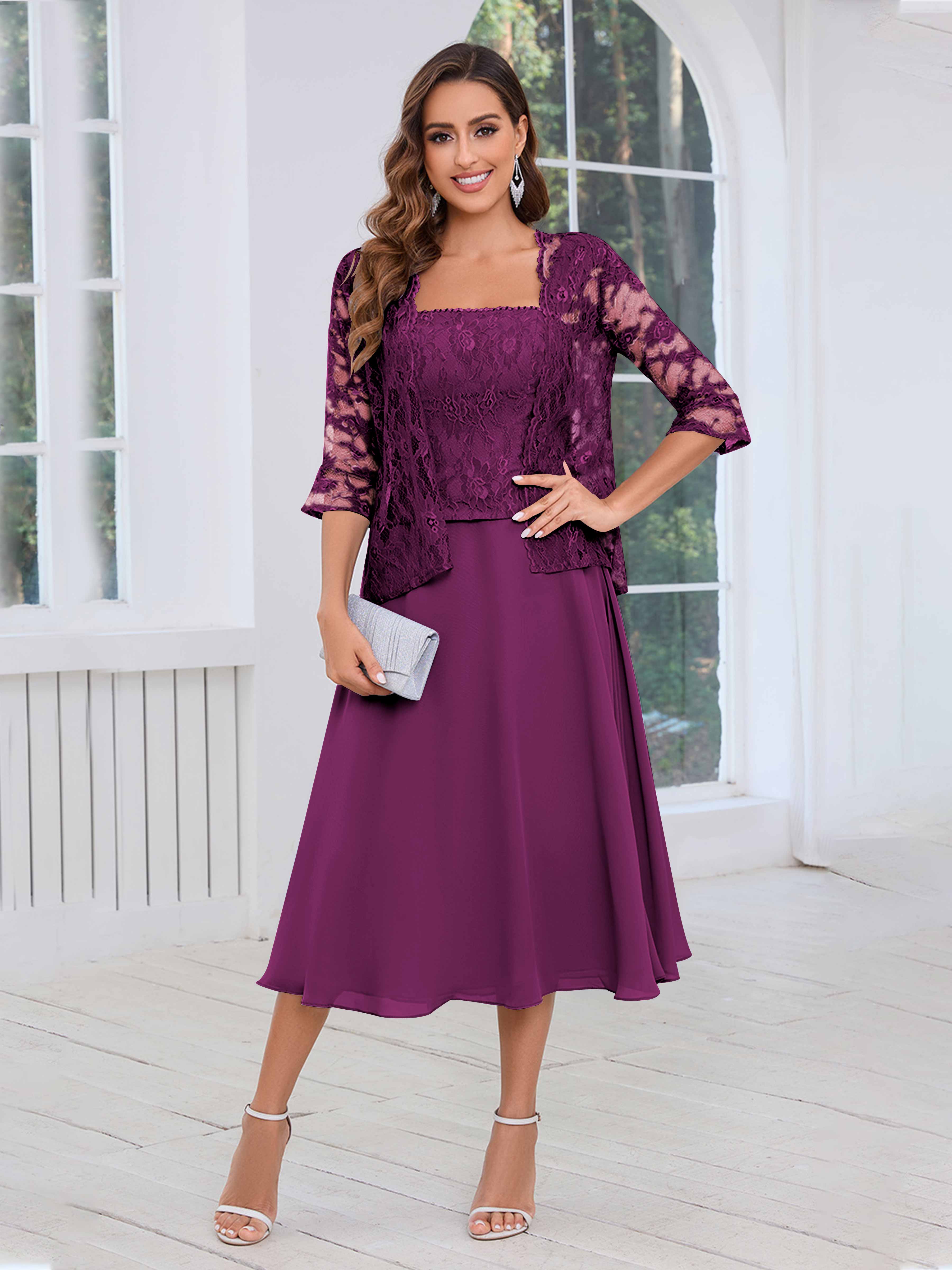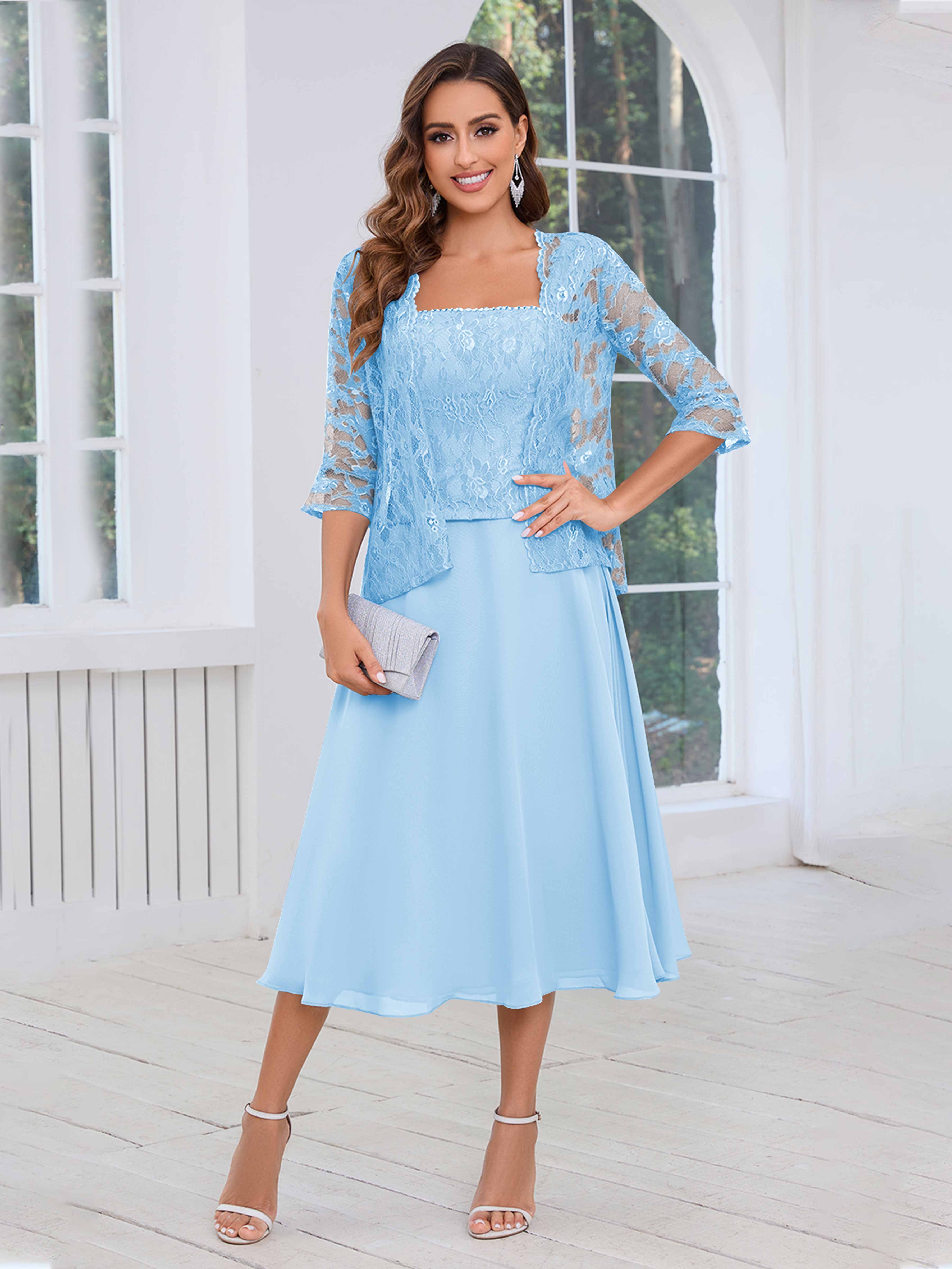 Aurelia Delicate Two Pieces Beading Lace Appliques Midi Chiffon Mother Of The Bride Dresses