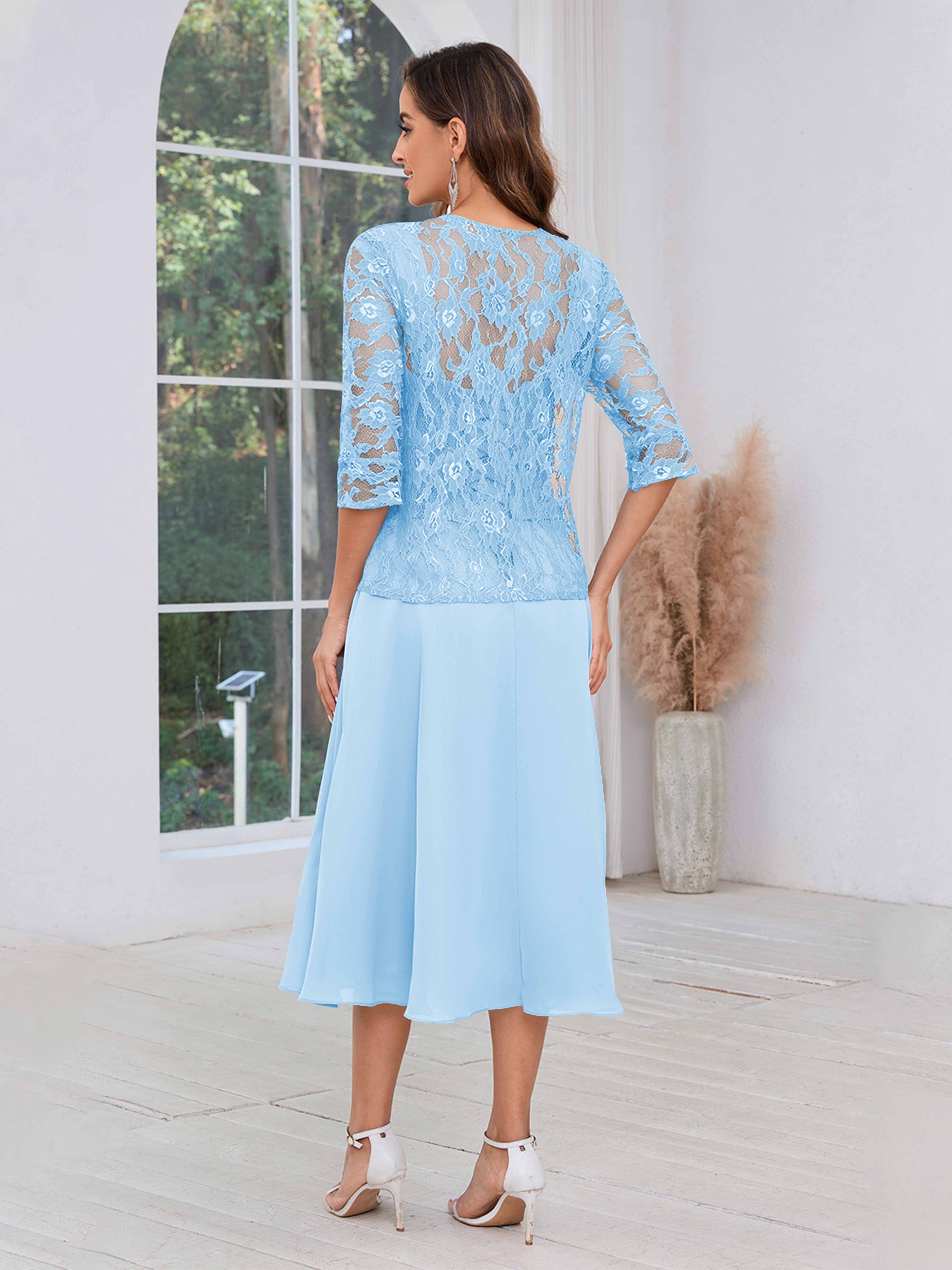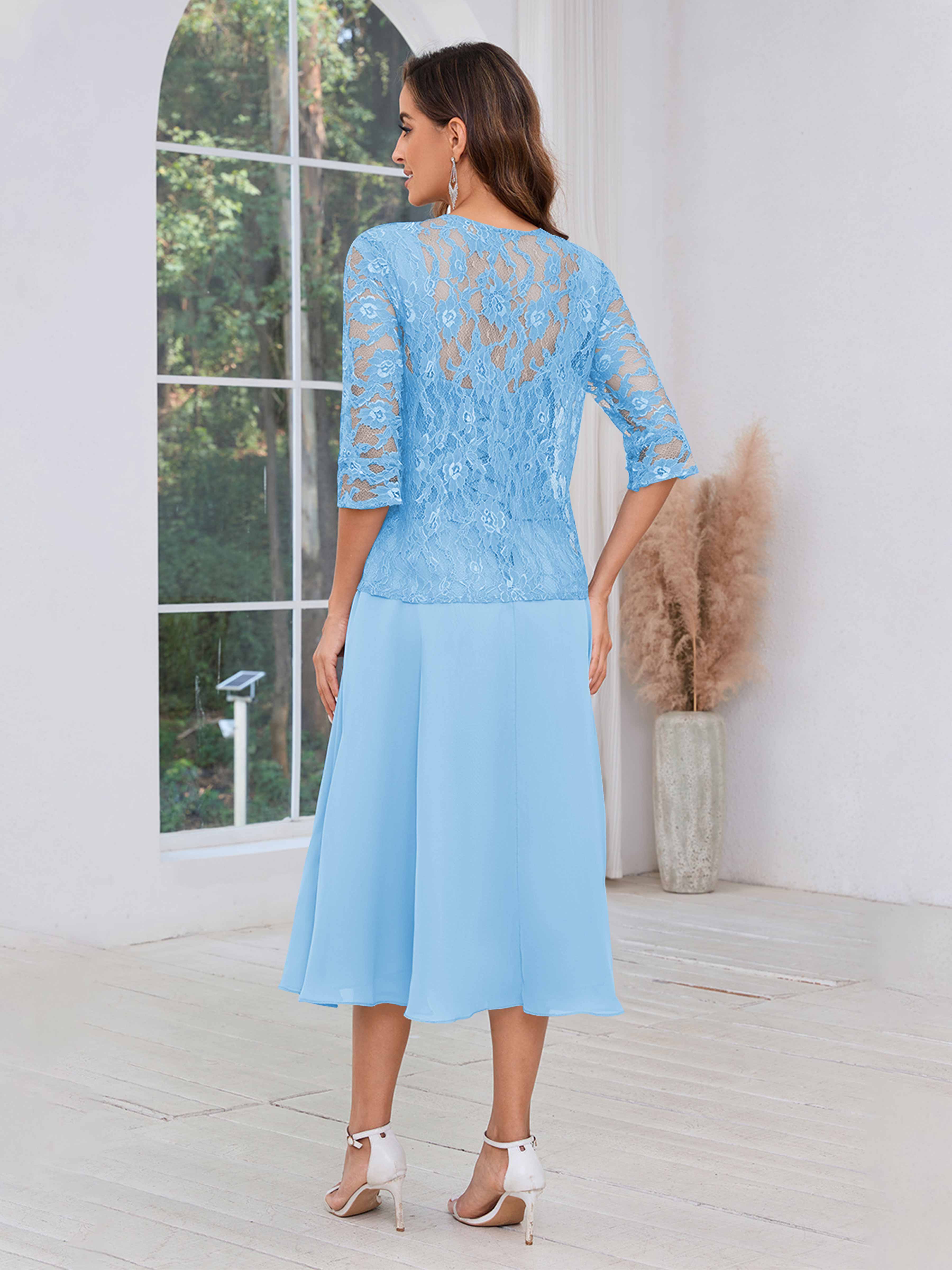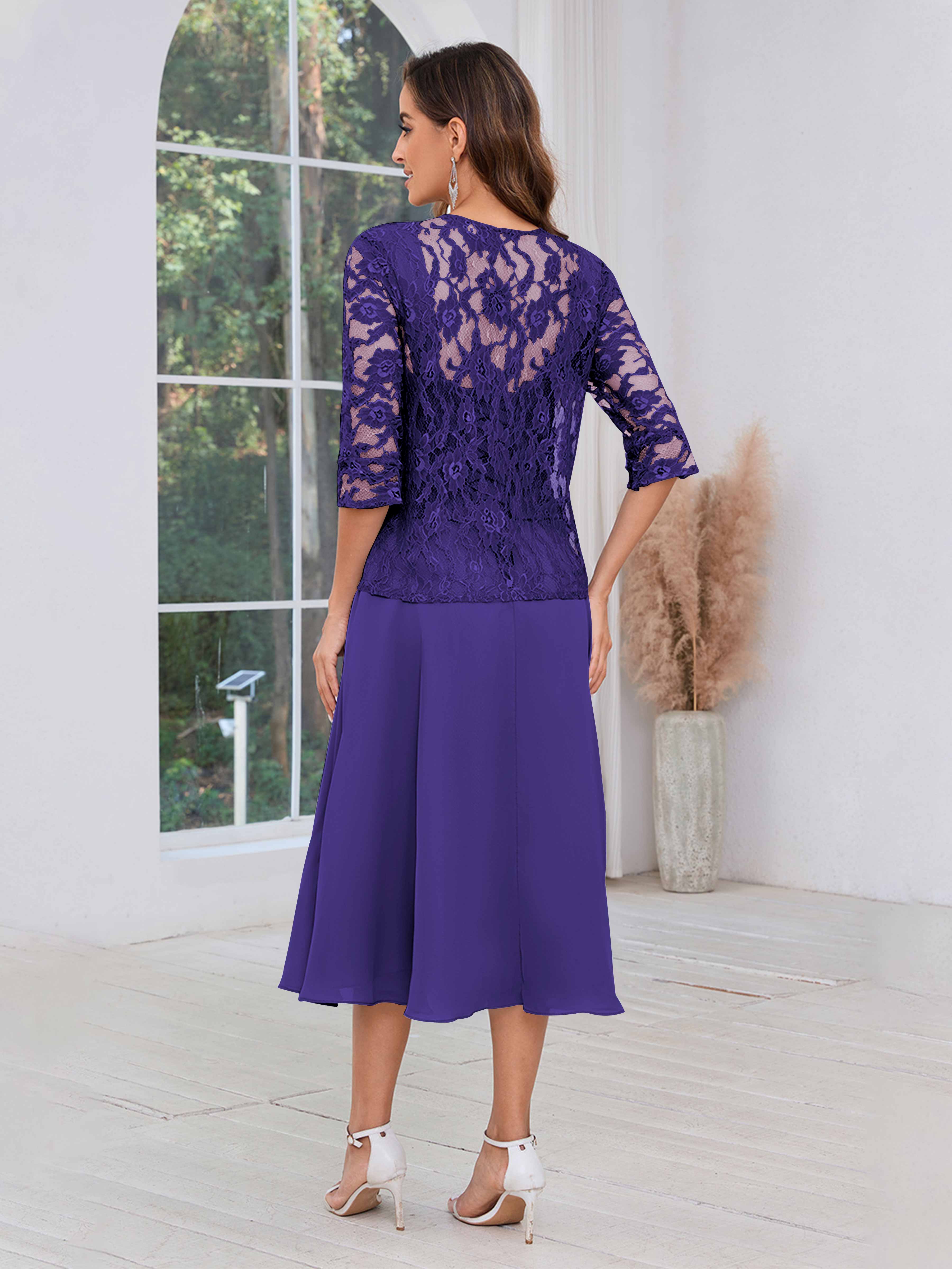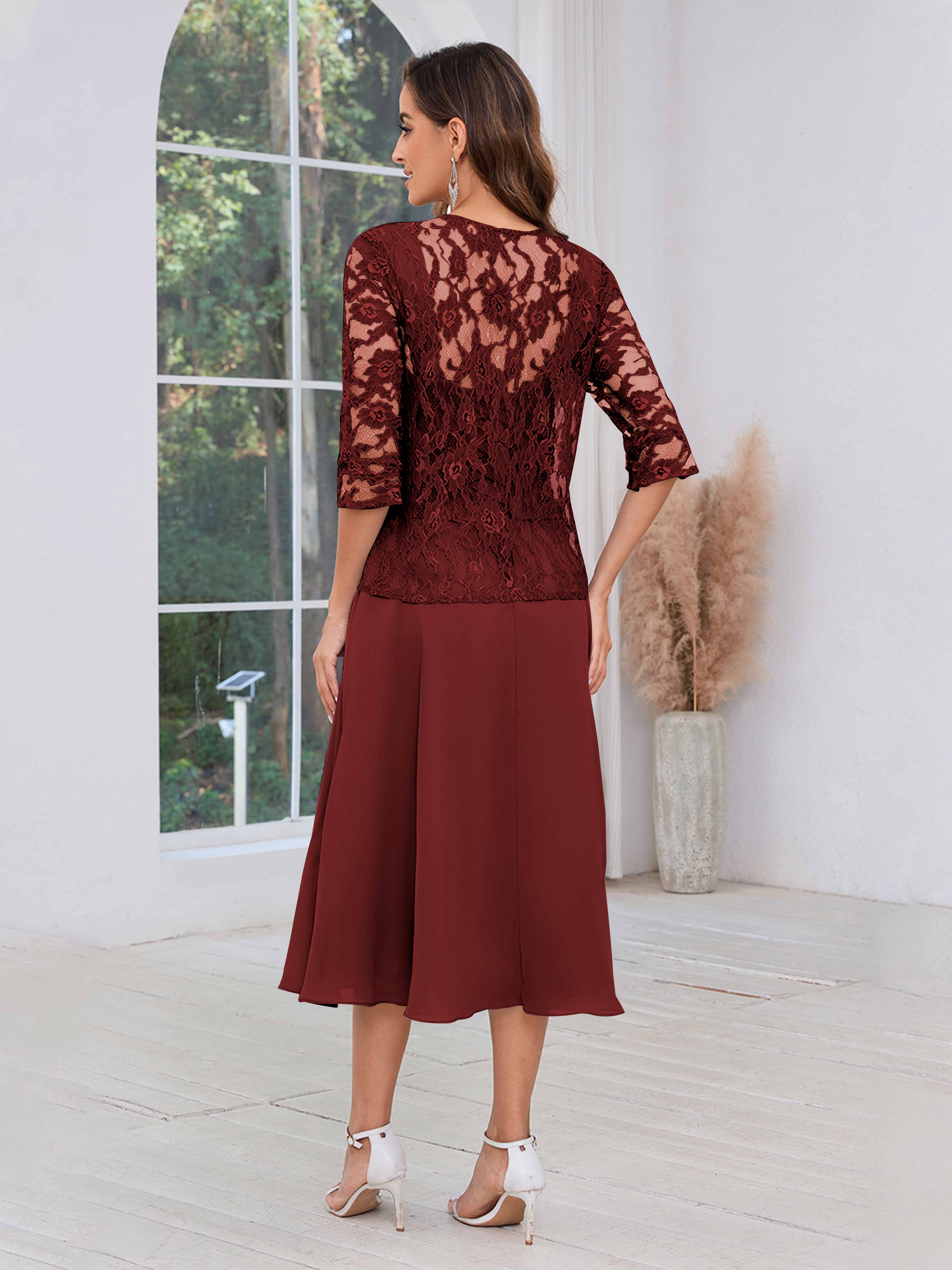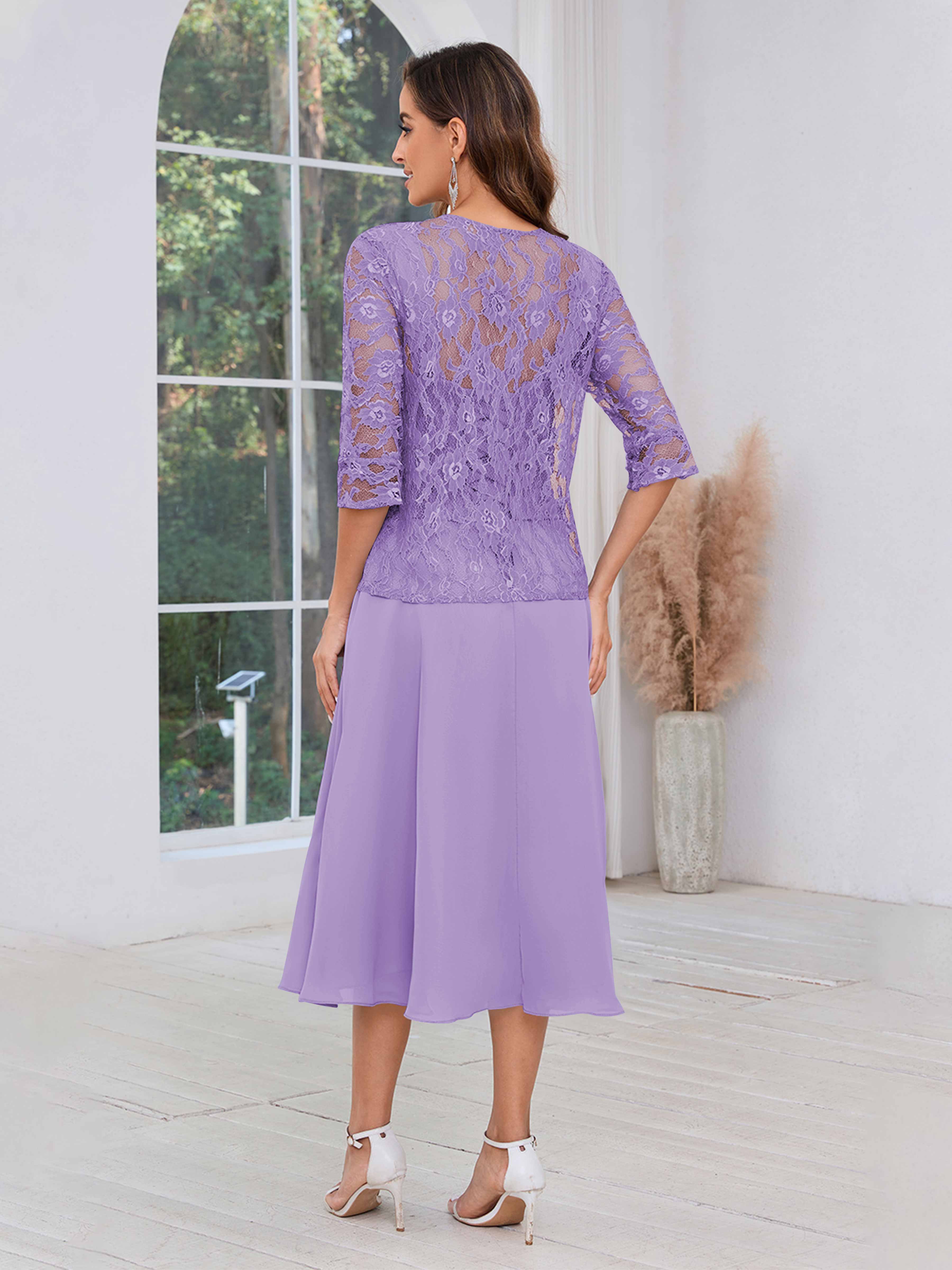 Aurelia Delicate Two Pieces Beading Lace Appliques Midi Chiffon Mother Of The Bride Dresses
