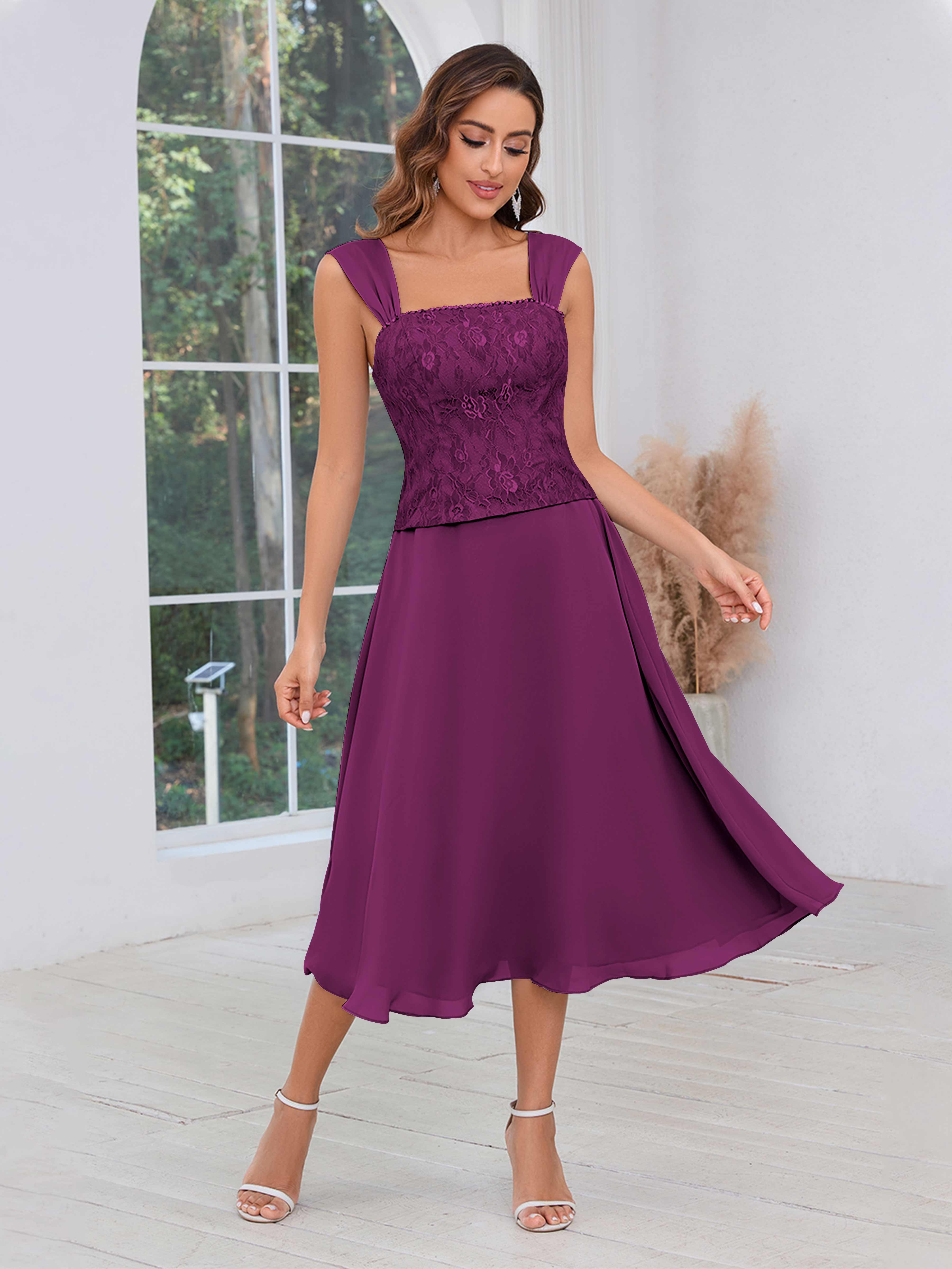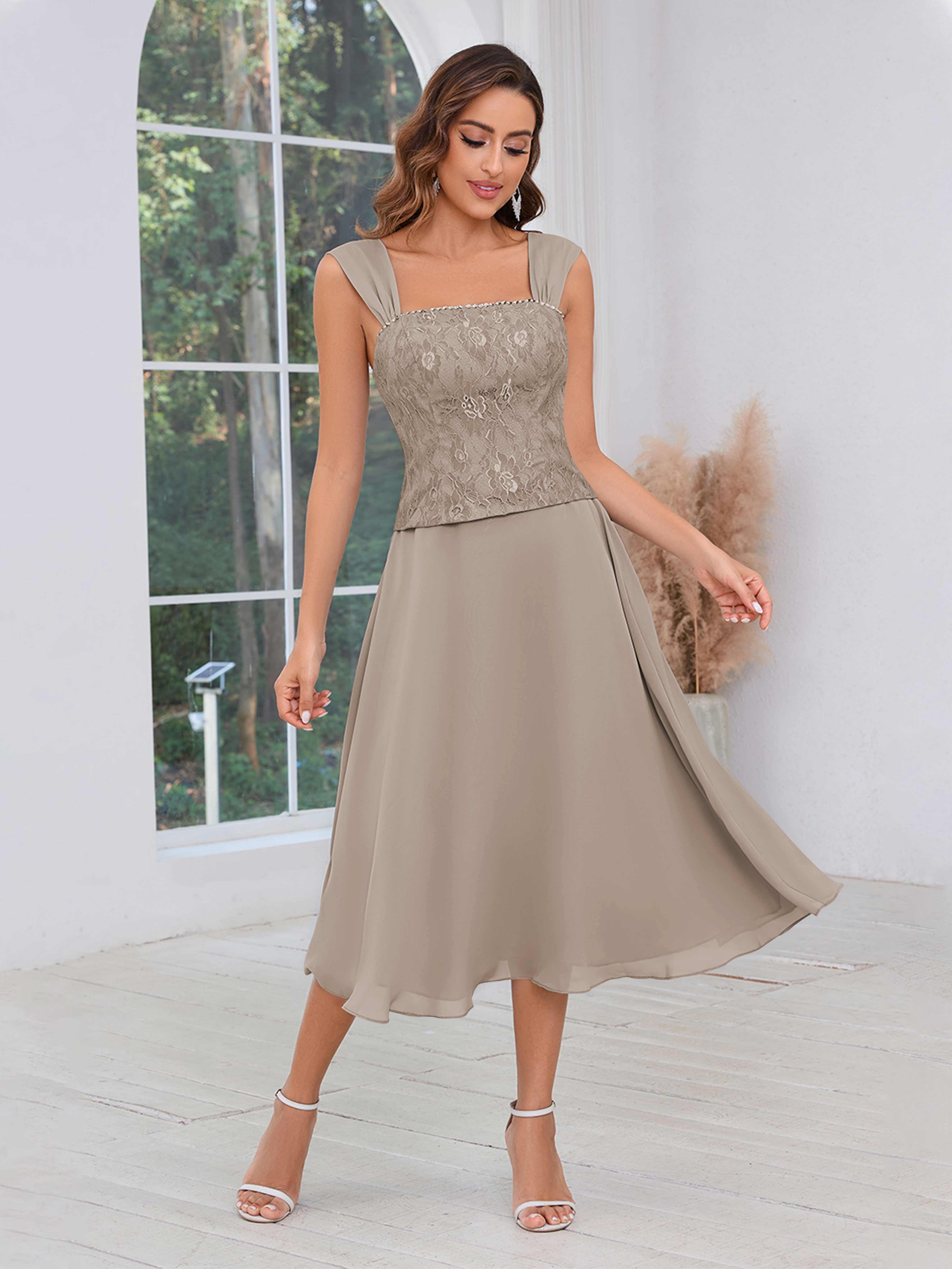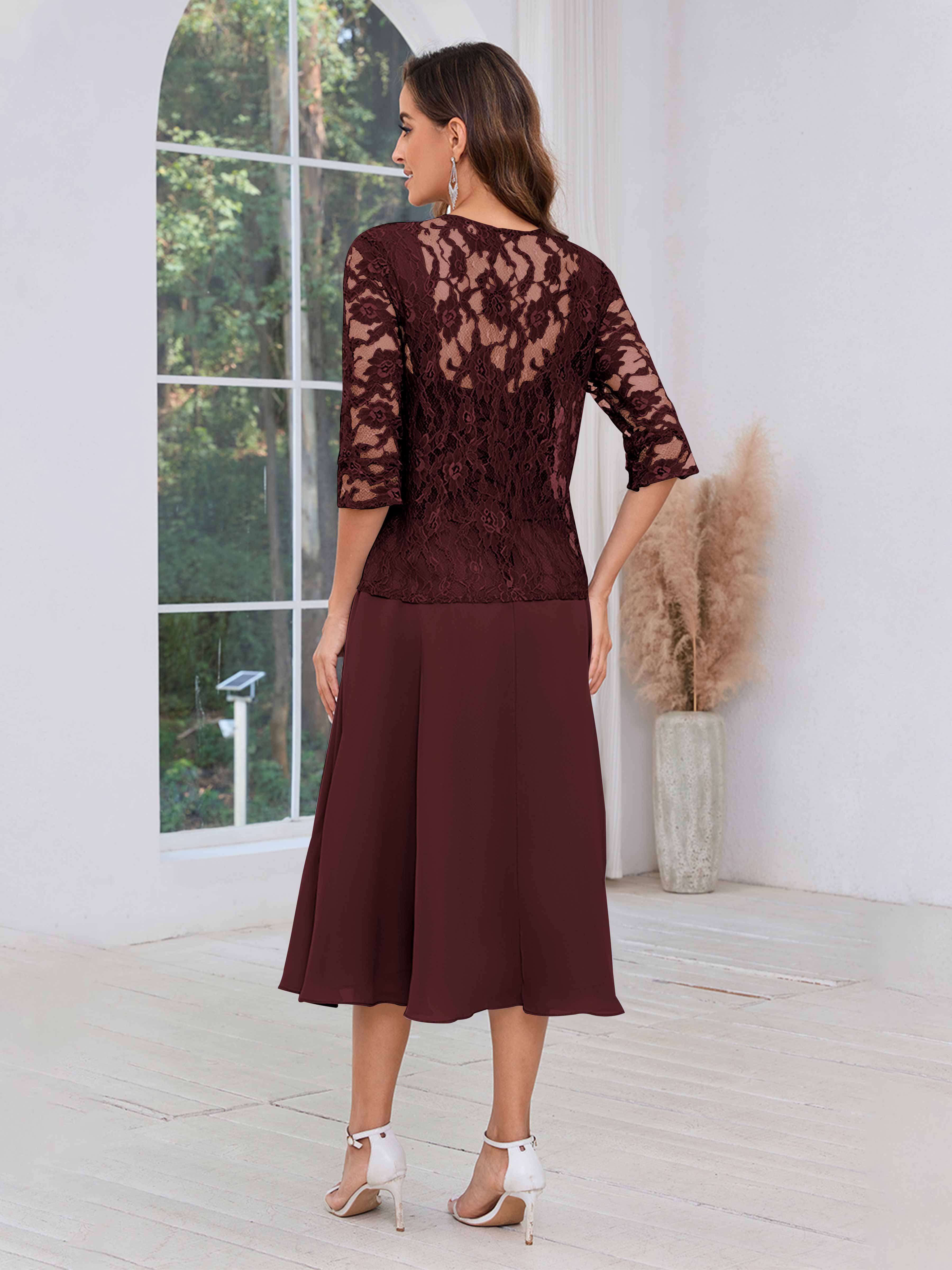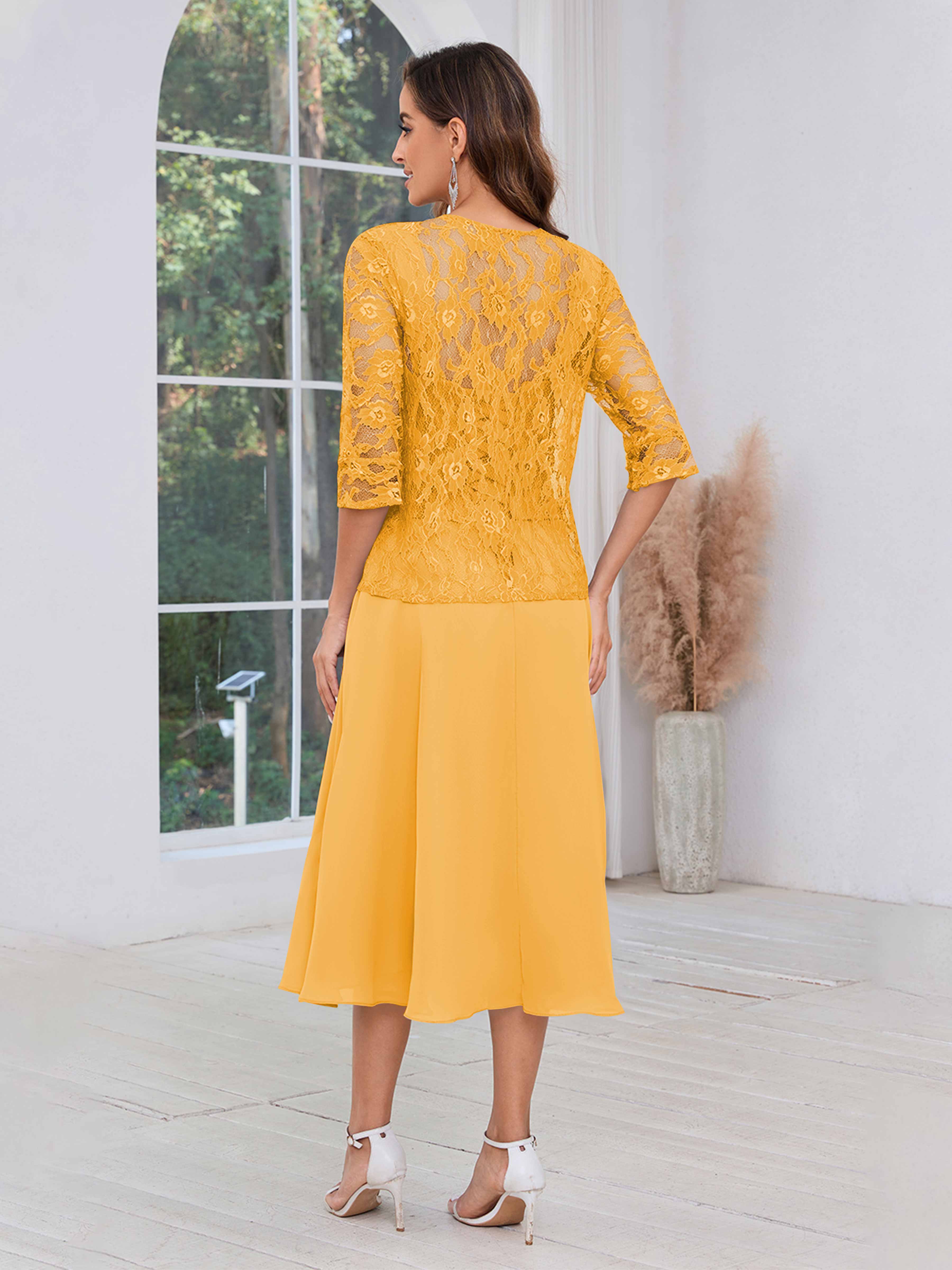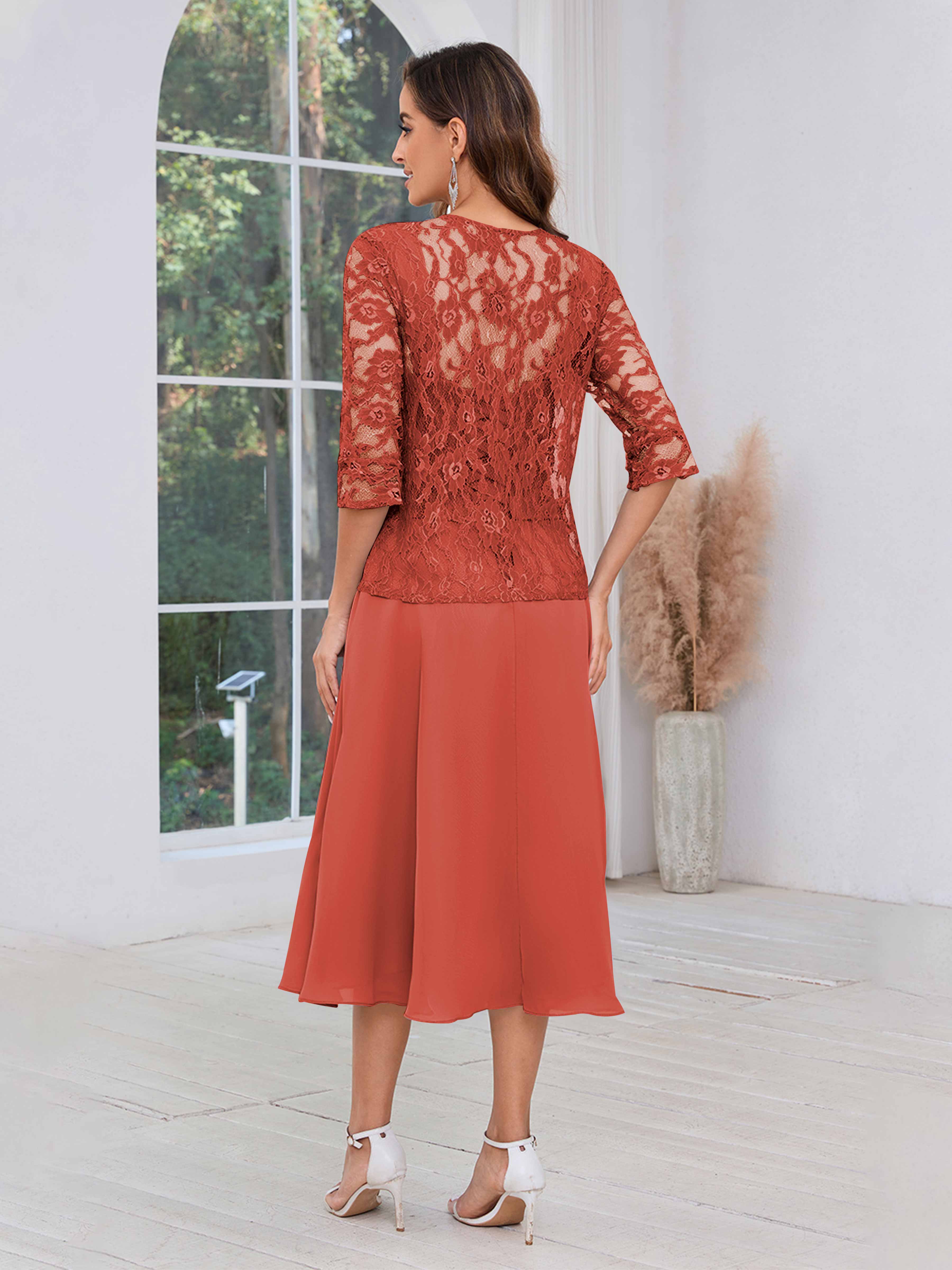 Aurelia Delicate Two Pieces Beading Lace Appliques Midi Chiffon Mother Of The Bride Dresses