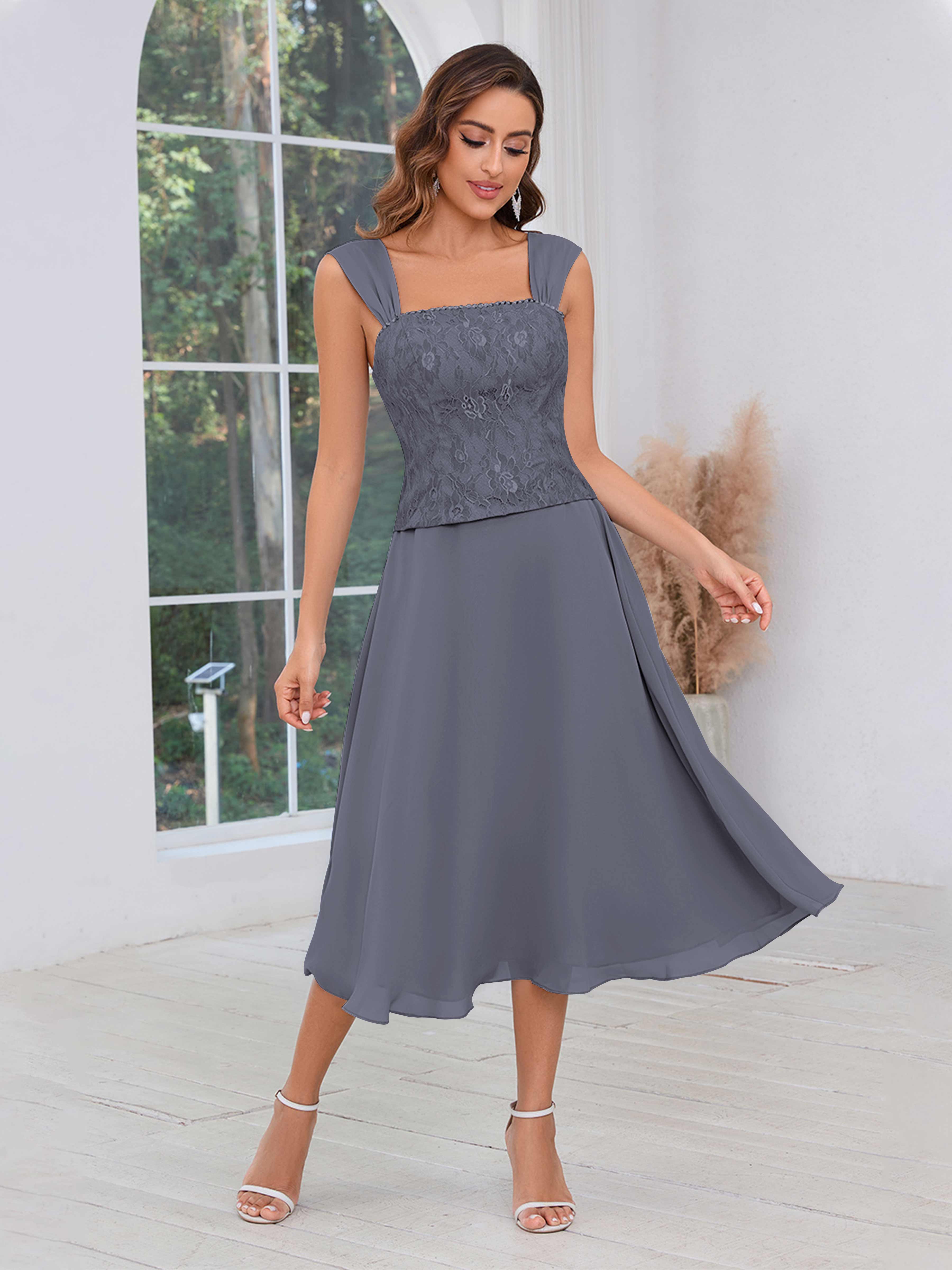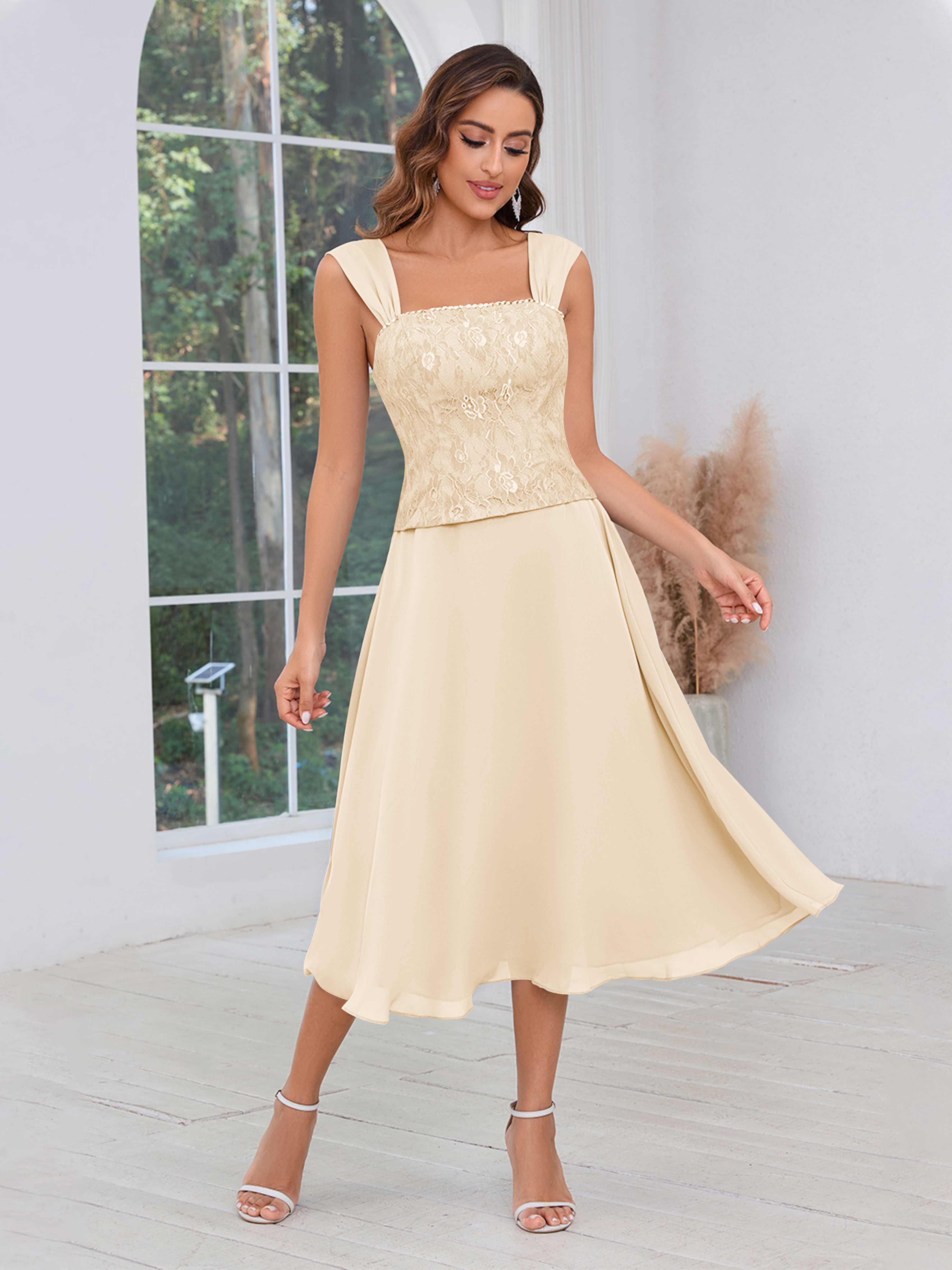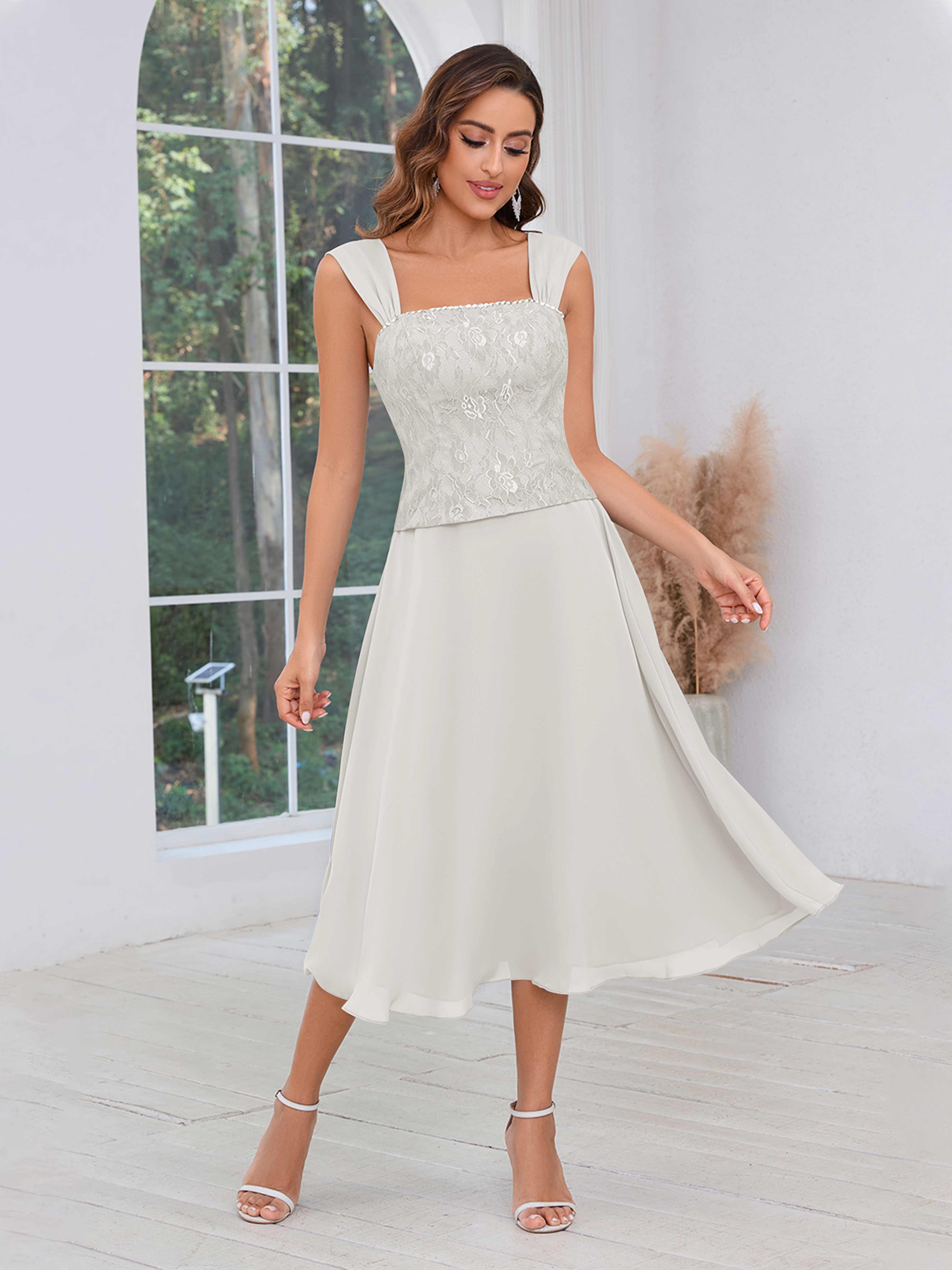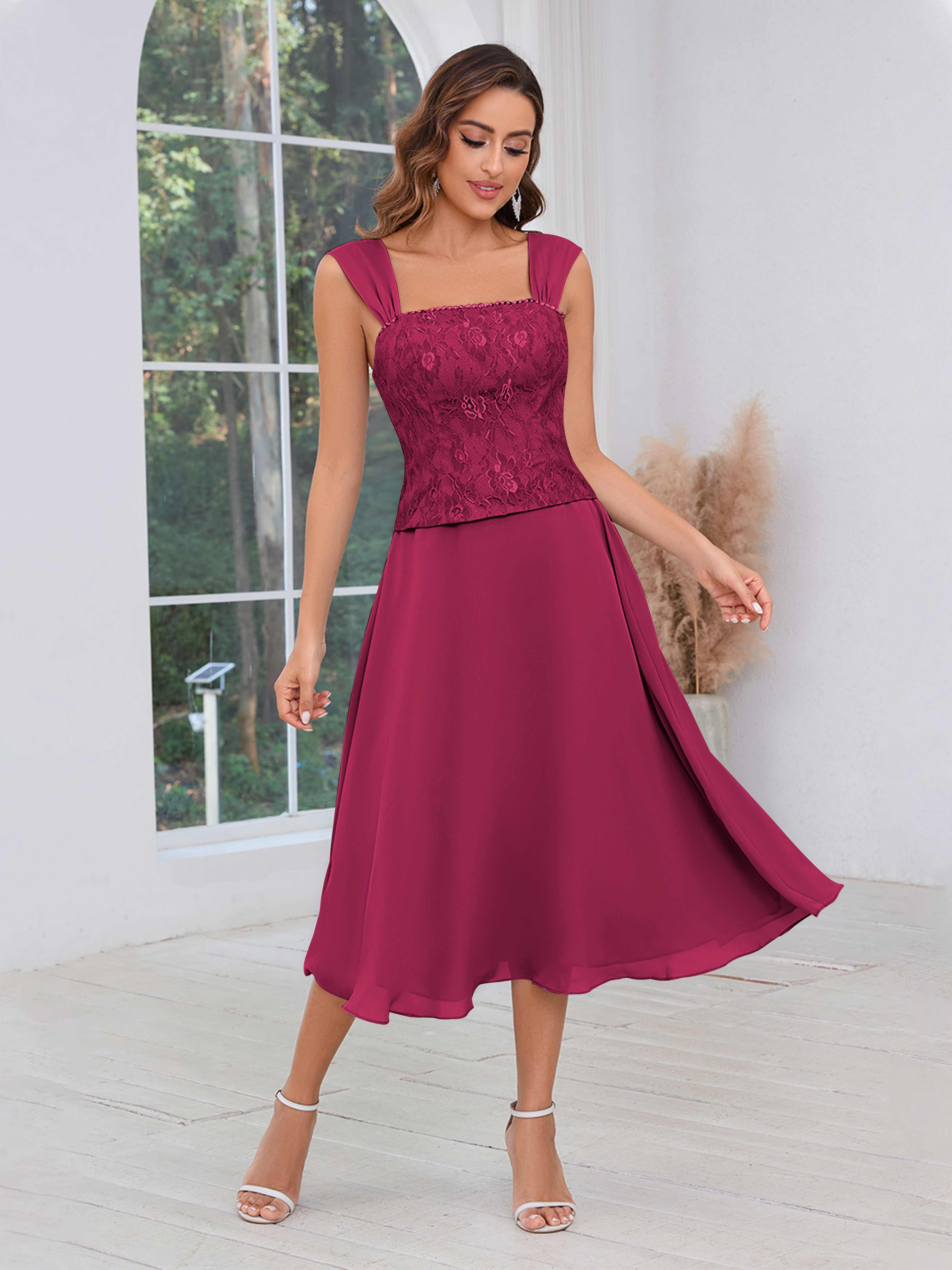 Aurelia Delicate Two Pieces Beading Lace Appliques Midi Chiffon Mother Of The Bride Dresses
