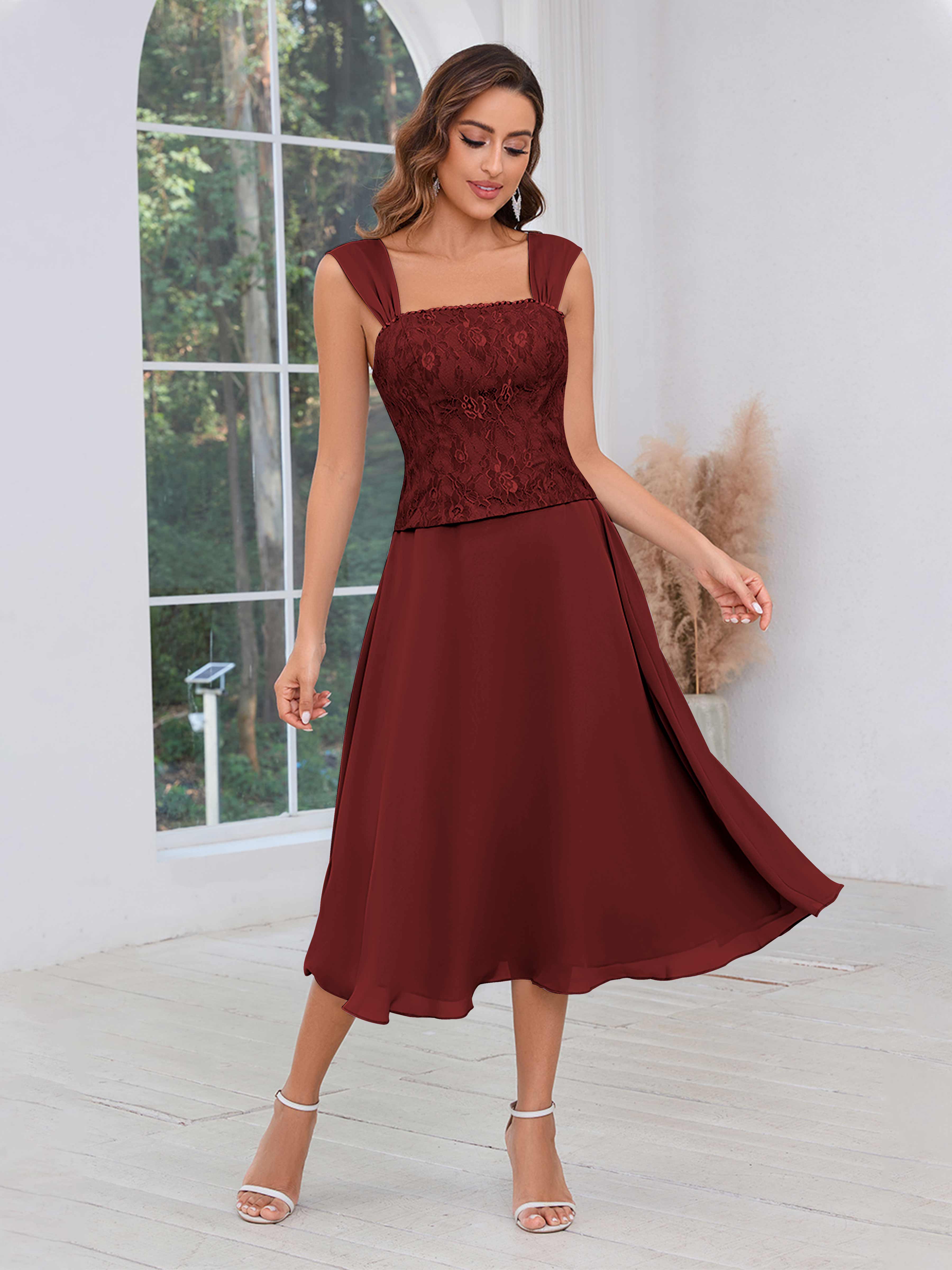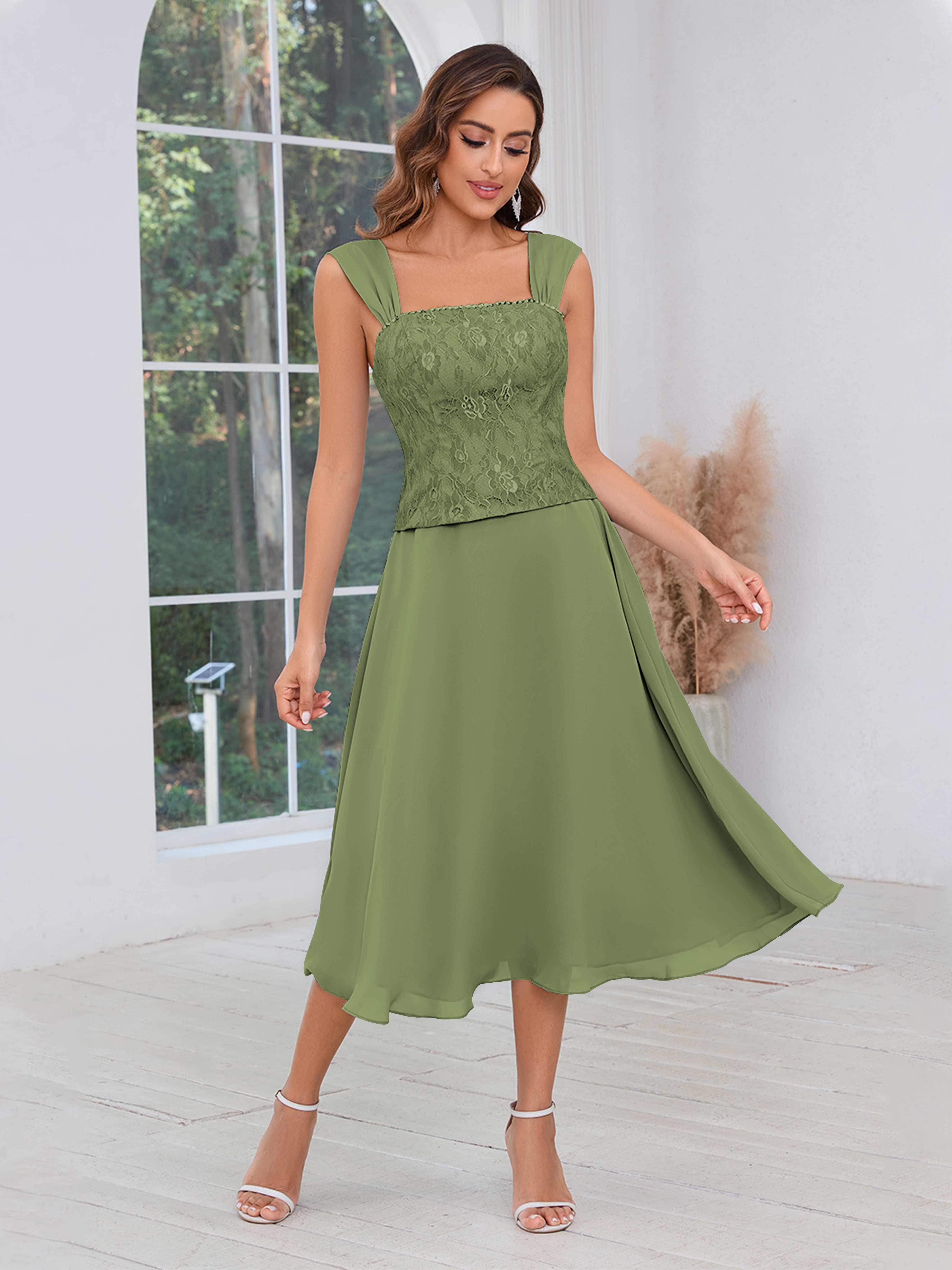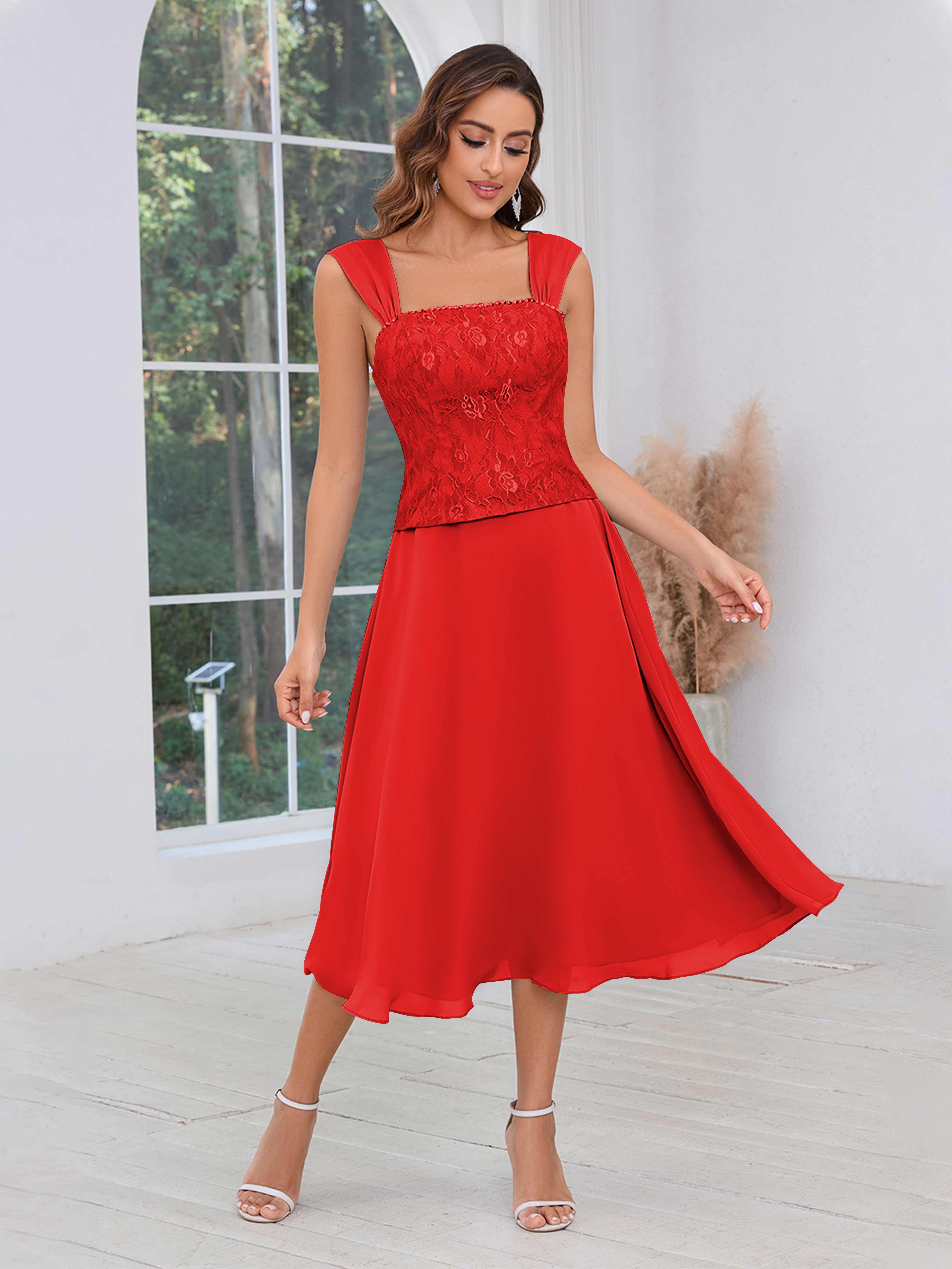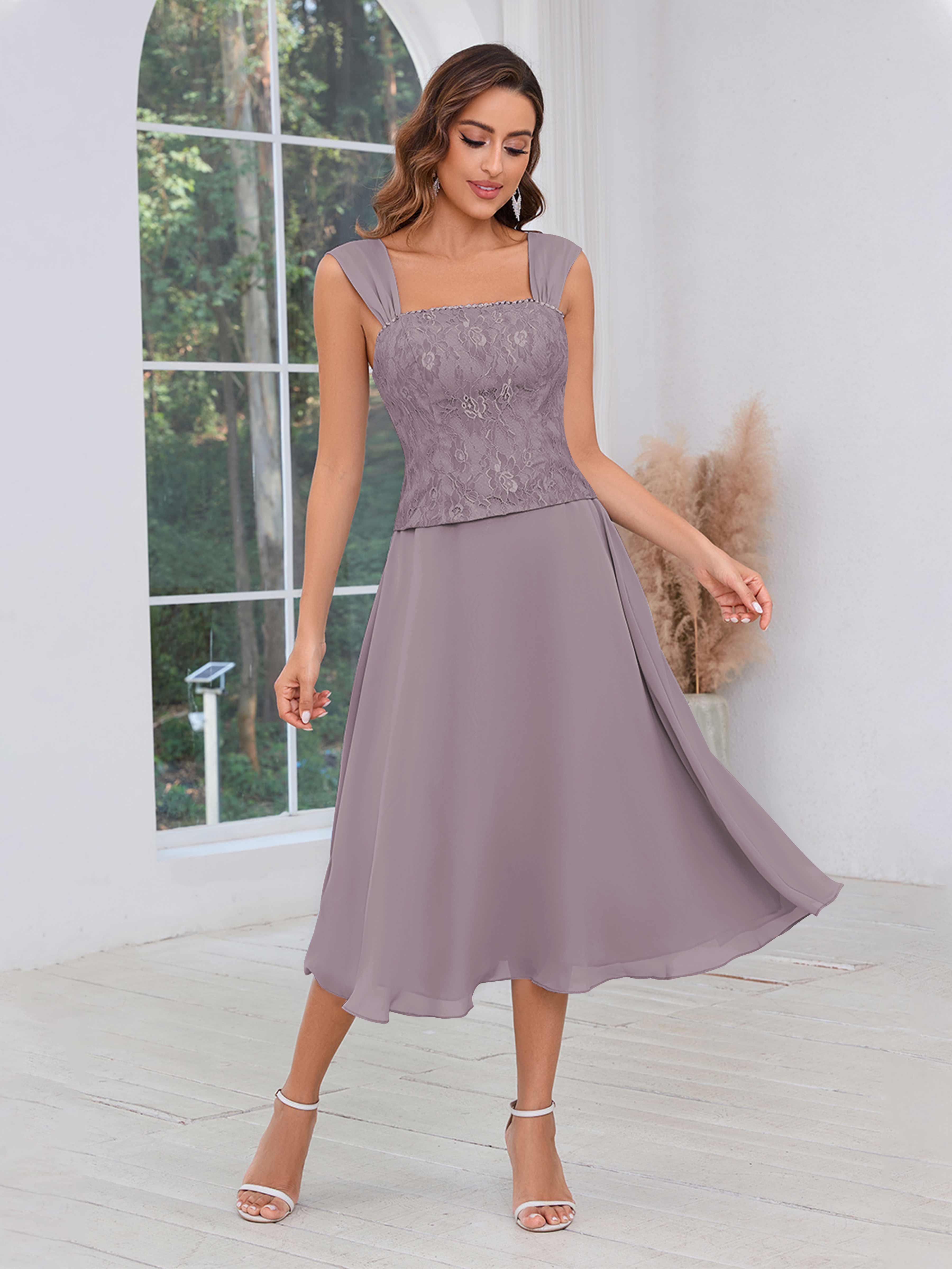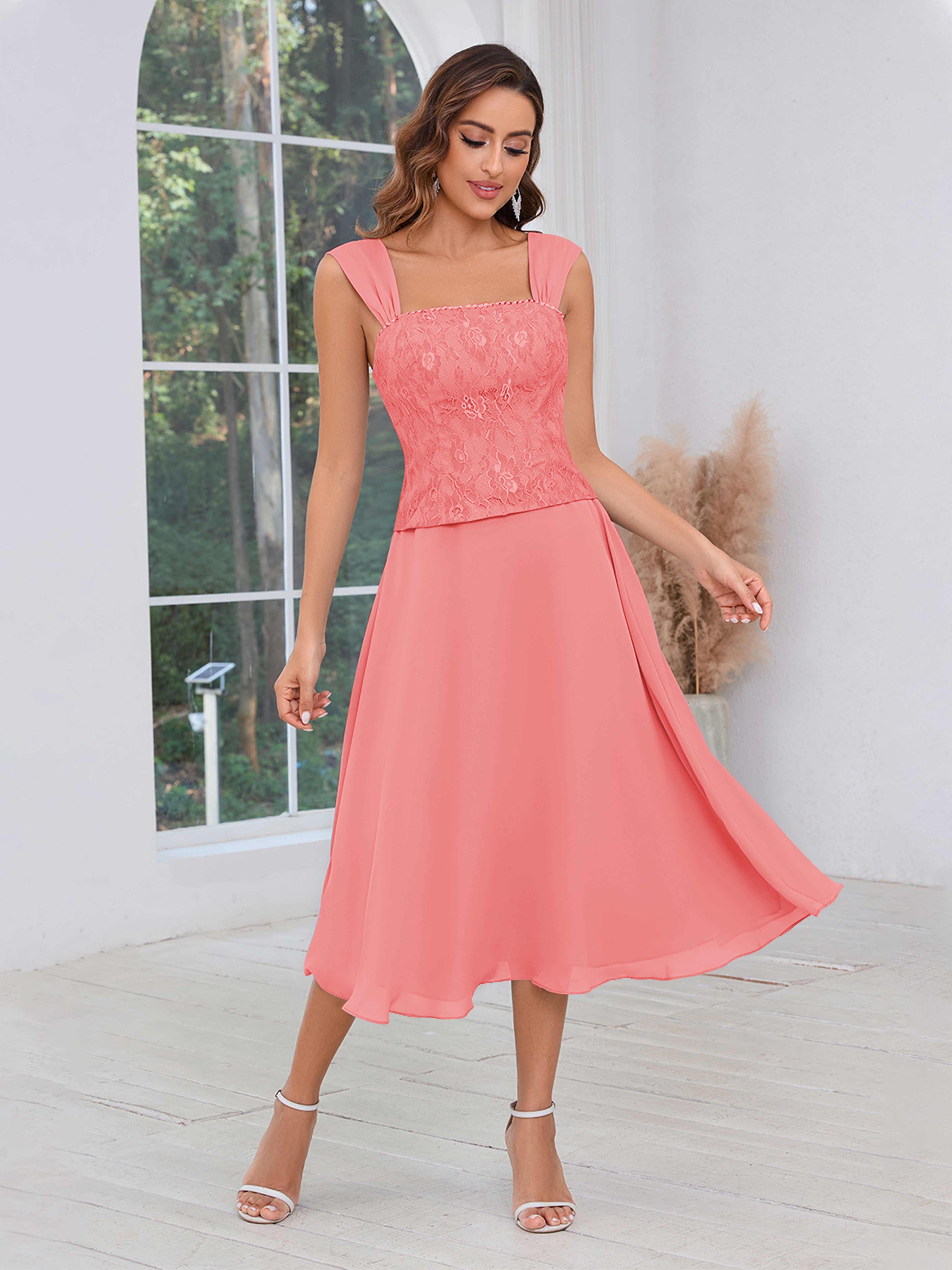 Aurelia Delicate Two Pieces Beading Lace Appliques Midi Chiffon Mother Of The Bride Dresses