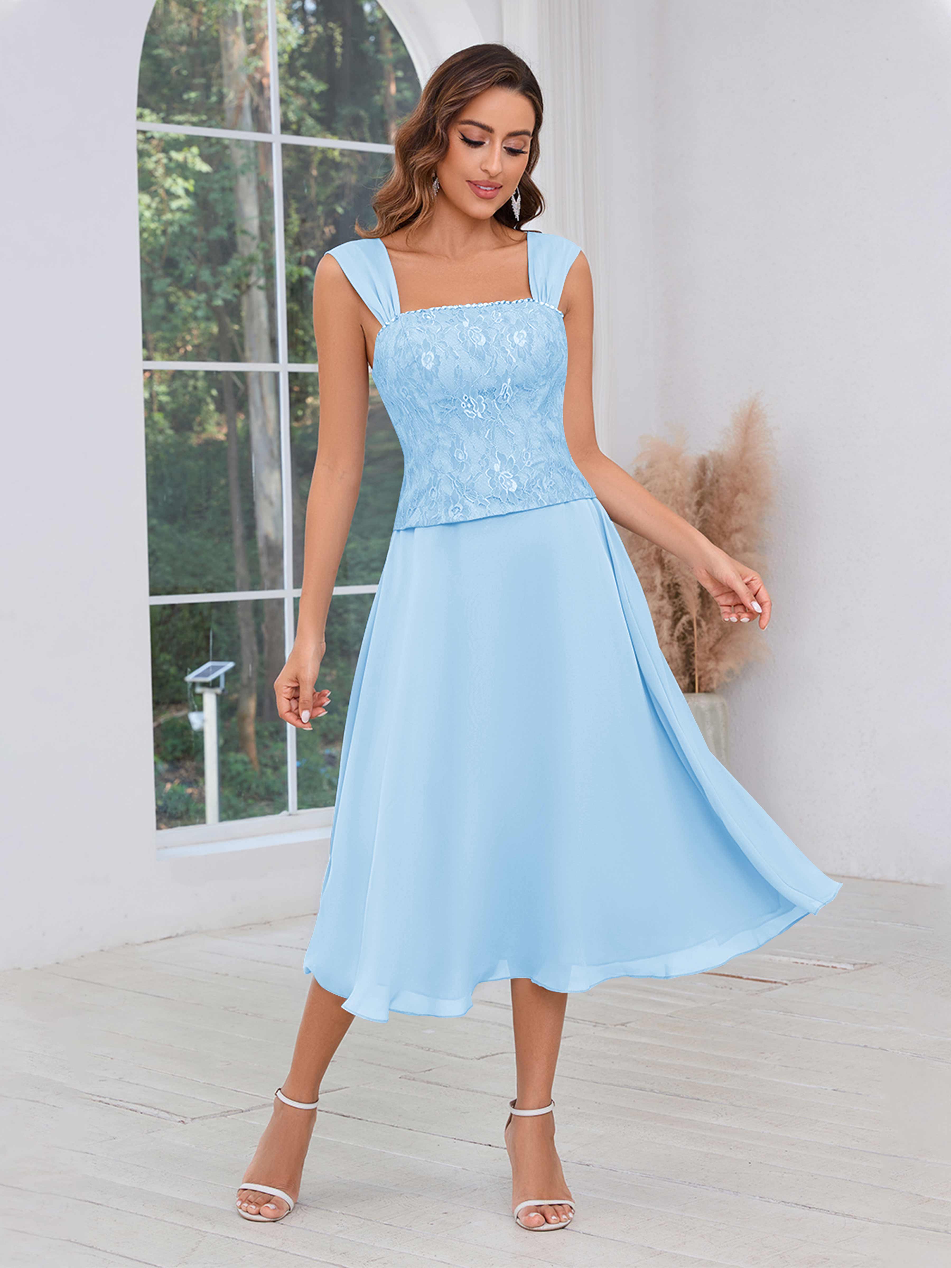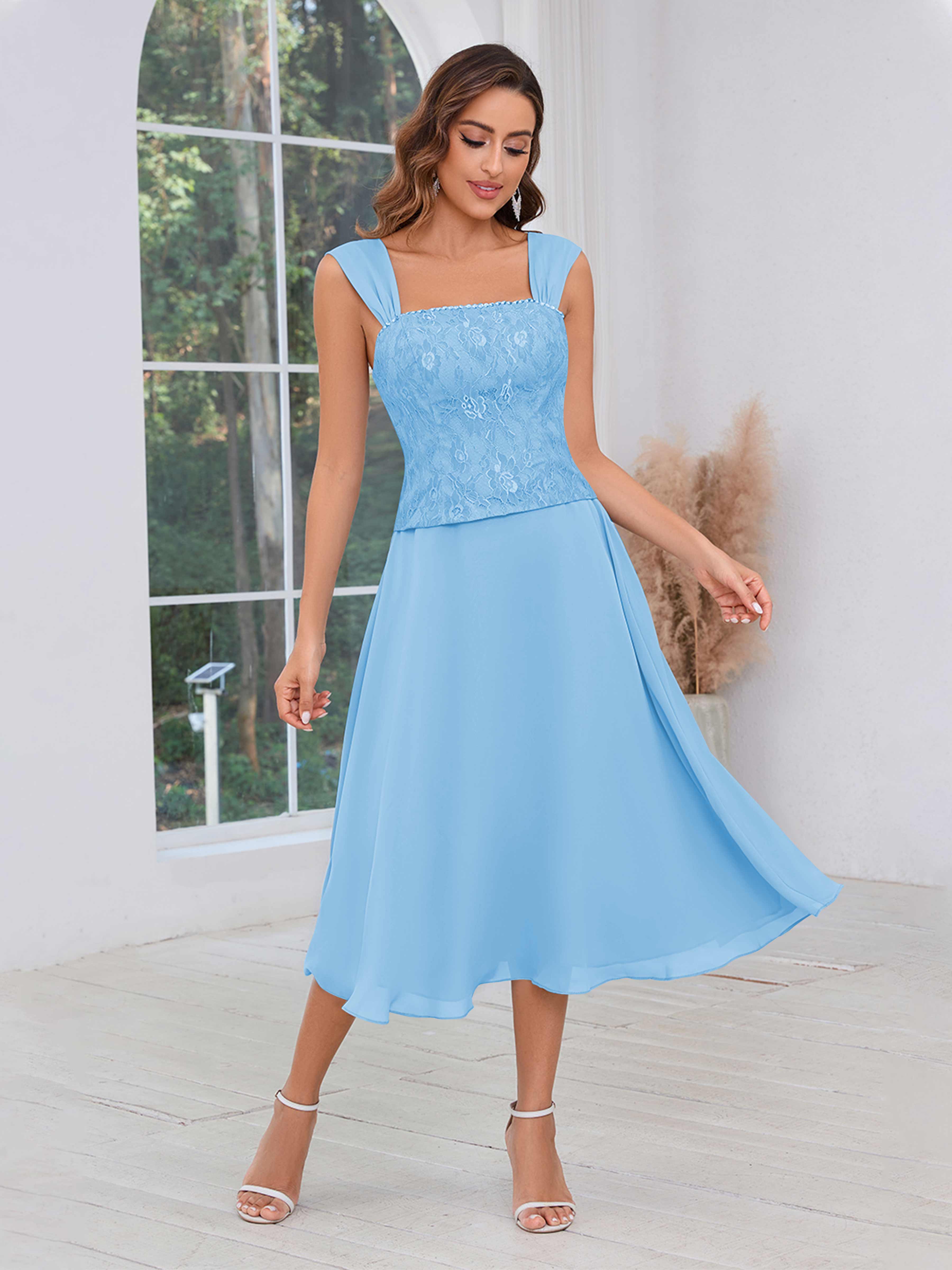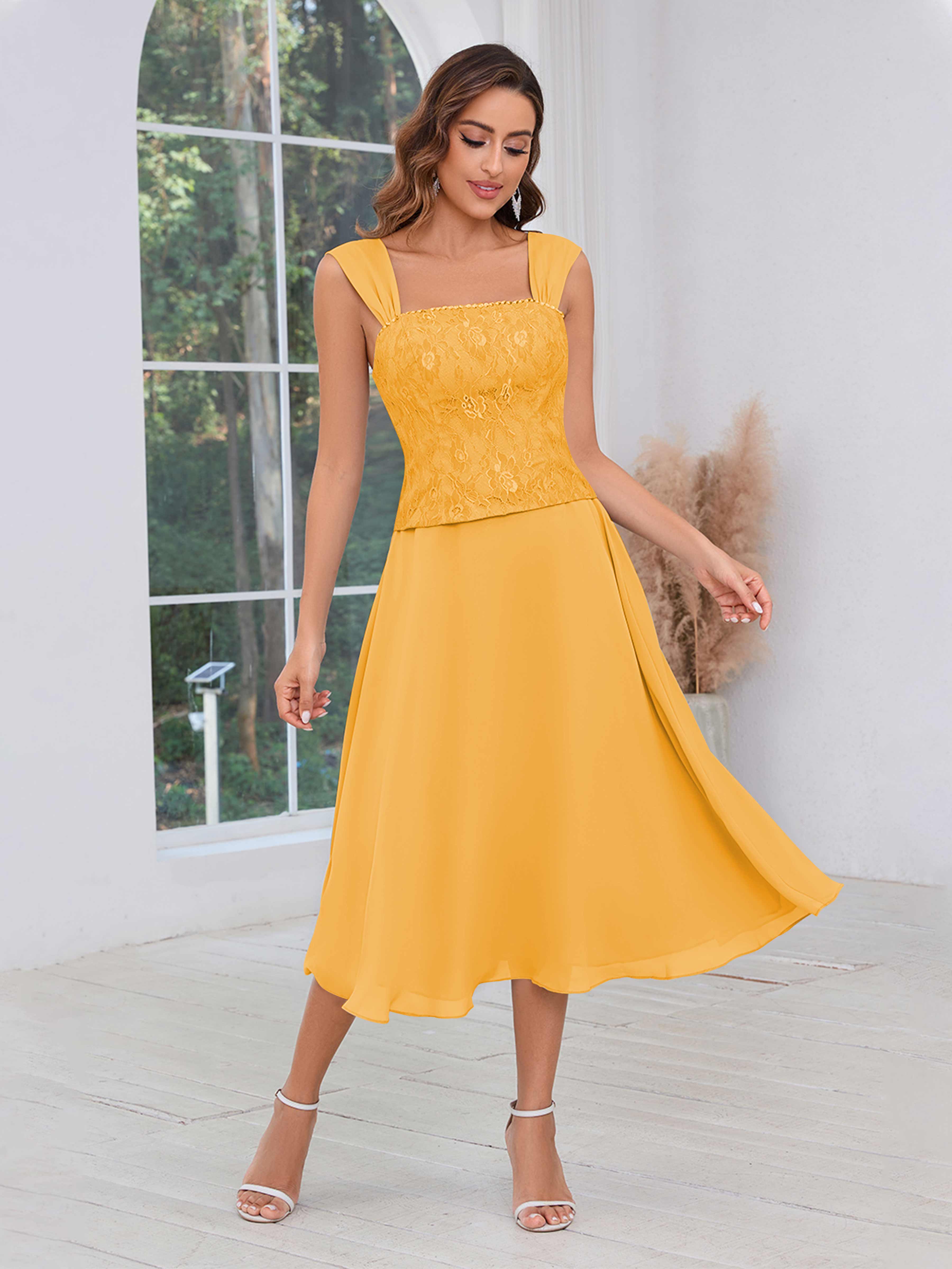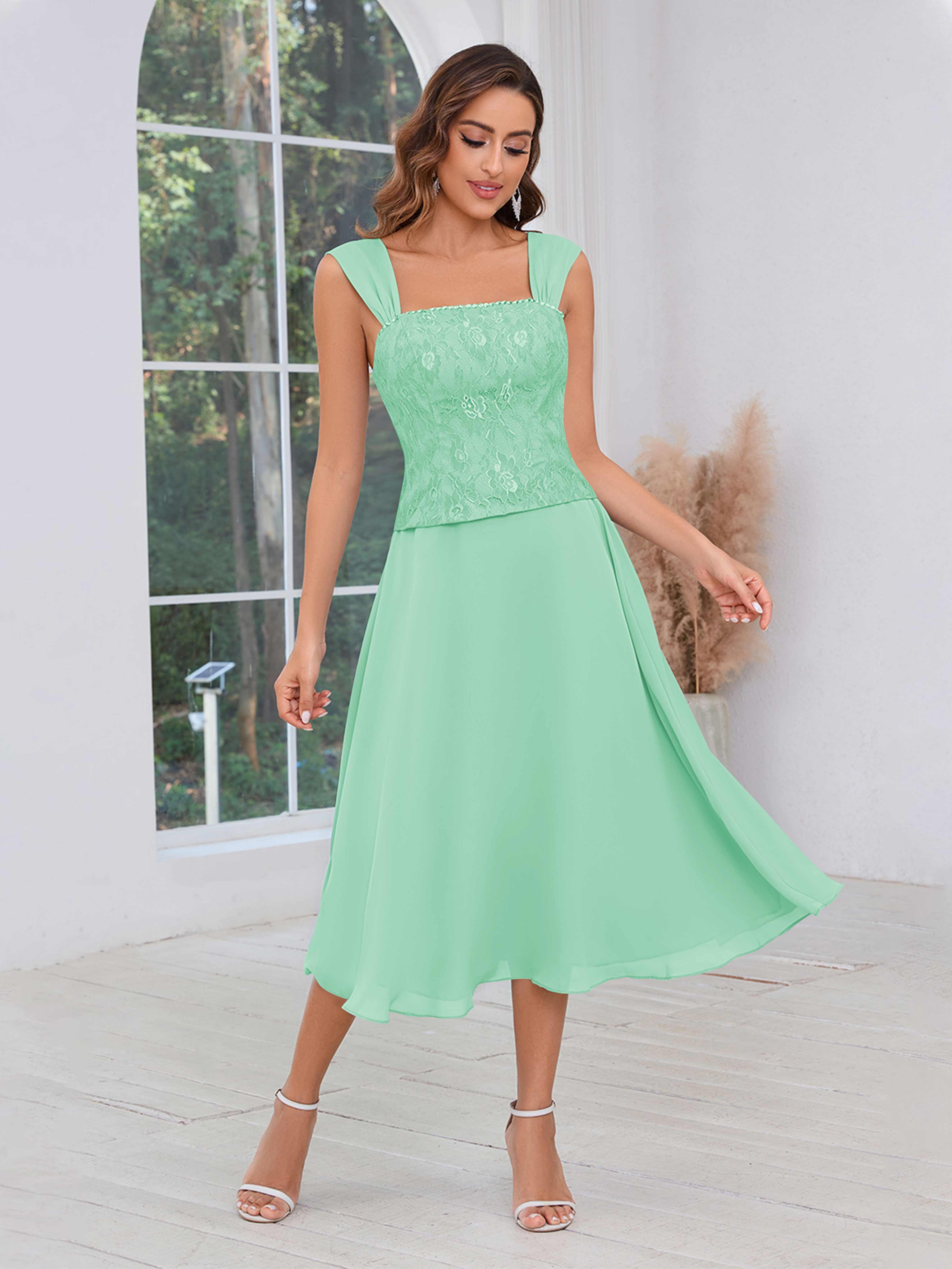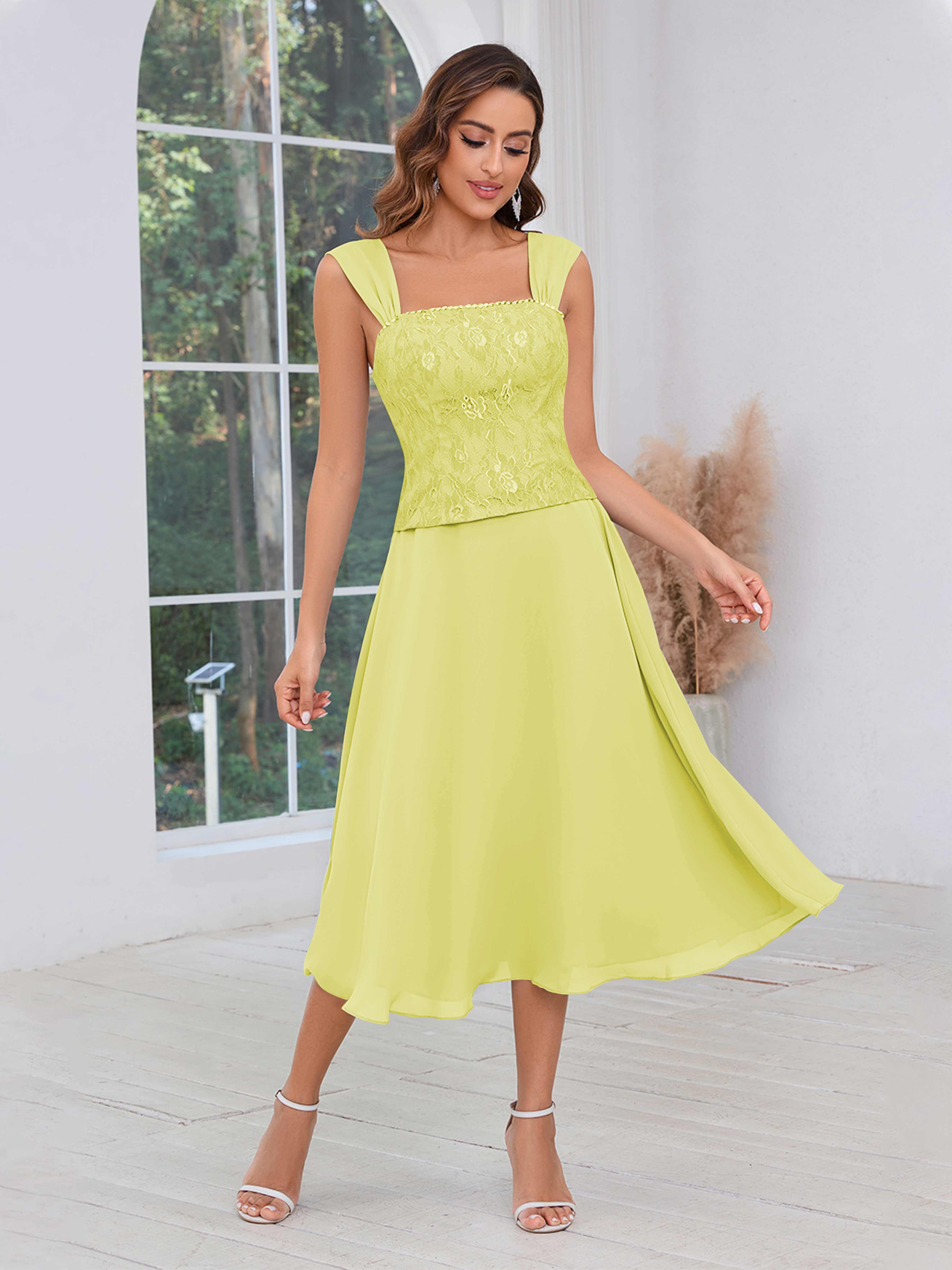 Aurelia Delicate Two Pieces Beading Lace Appliques Midi Chiffon Mother Of The Bride Dresses