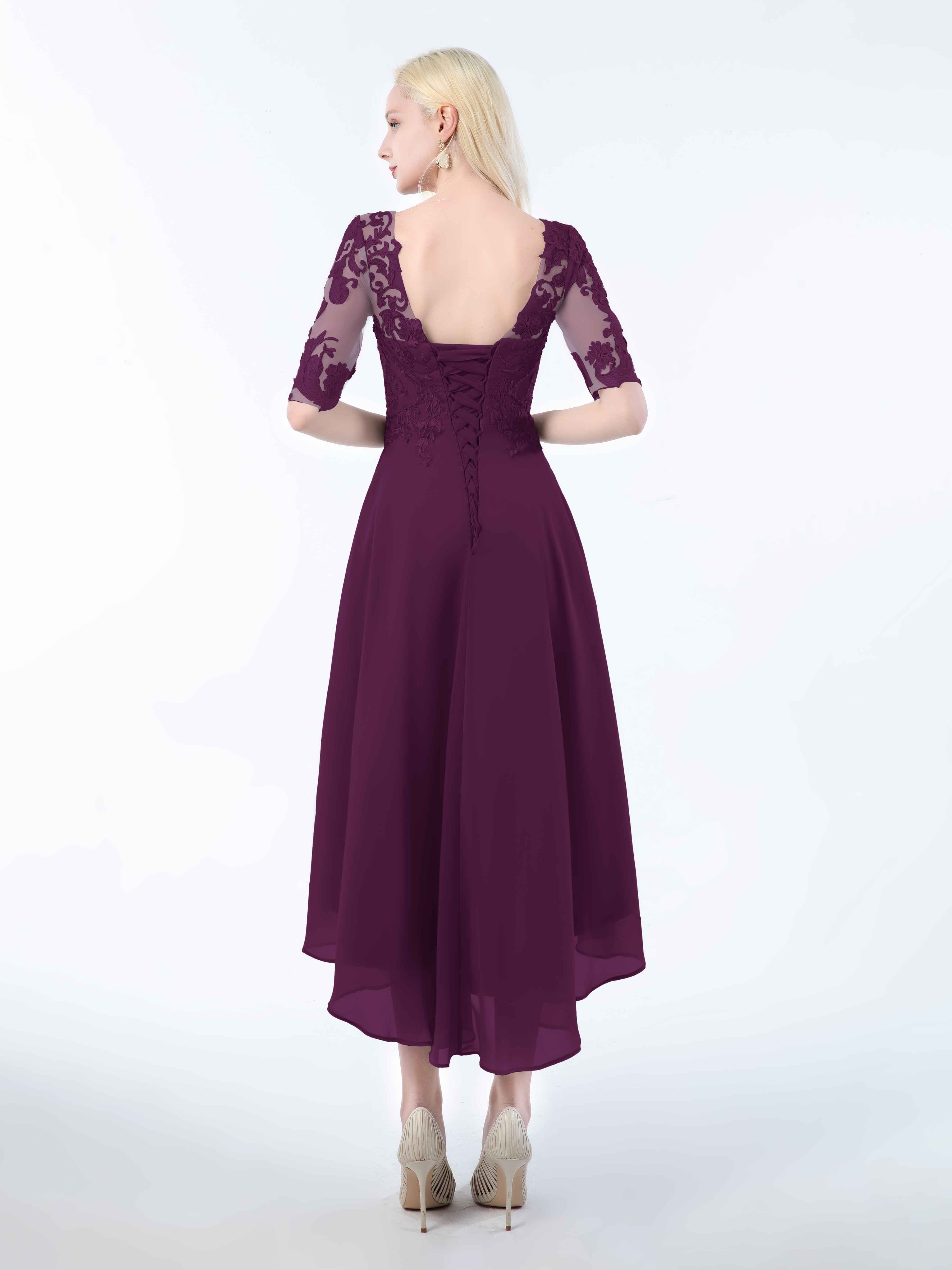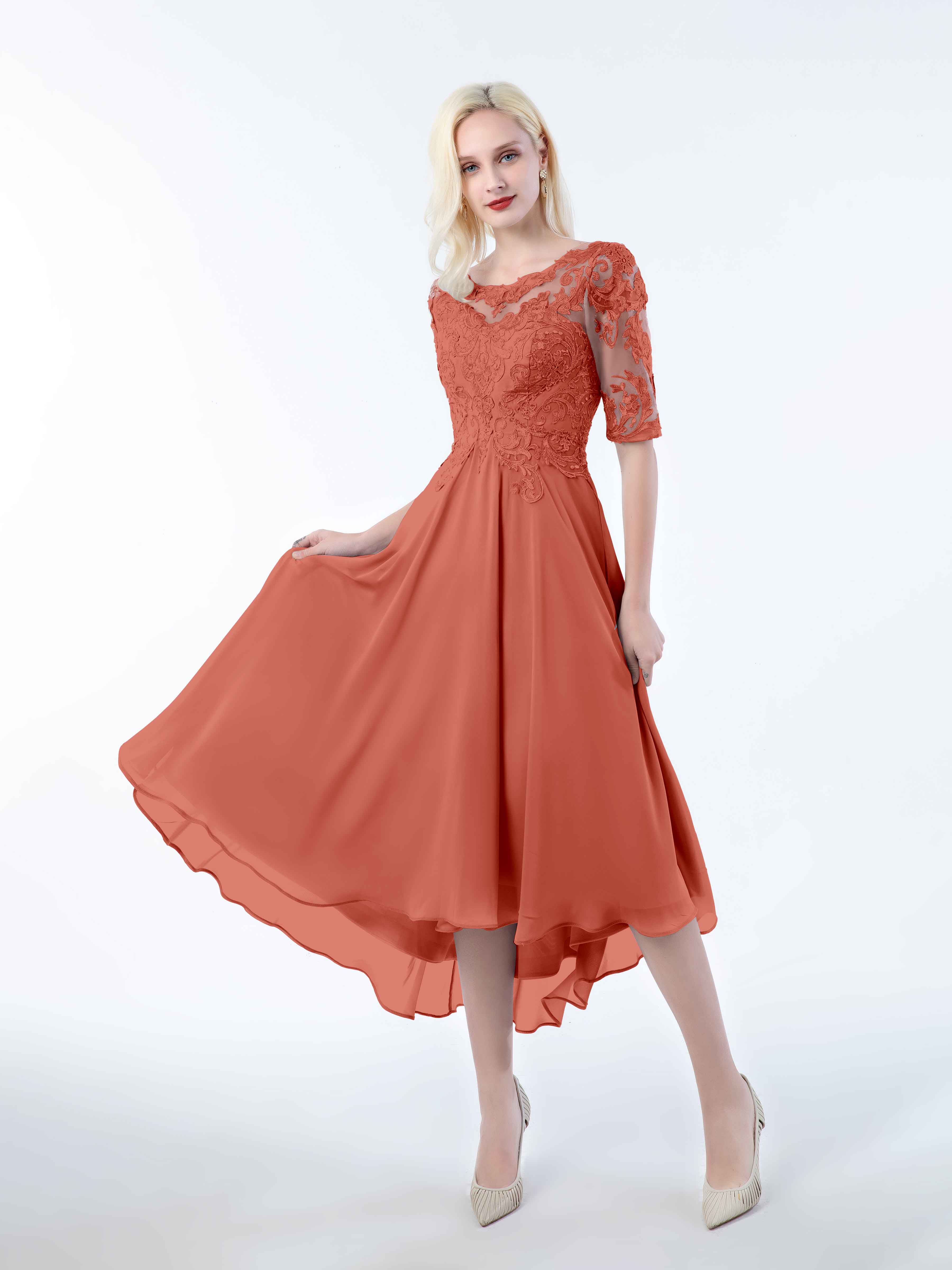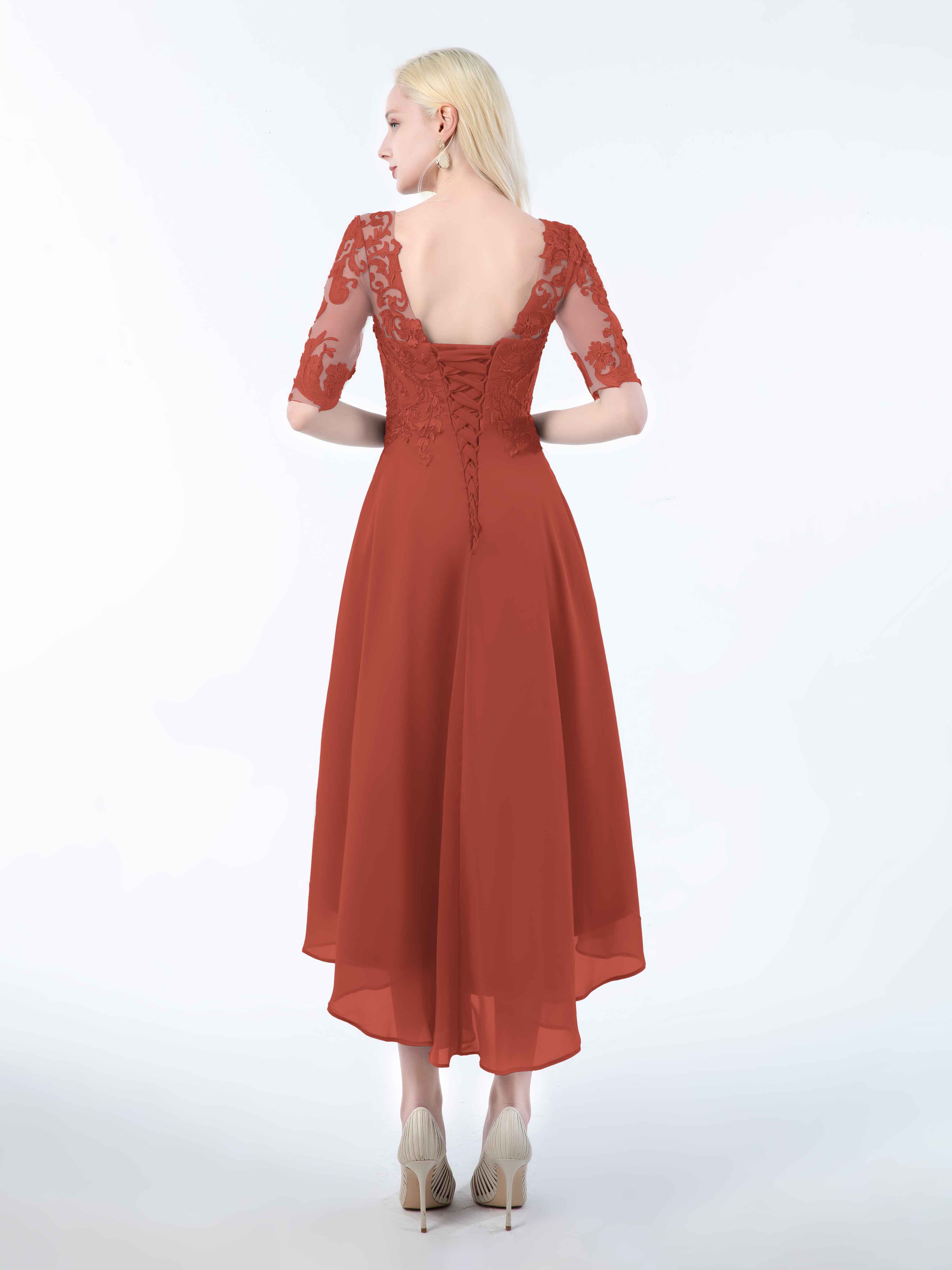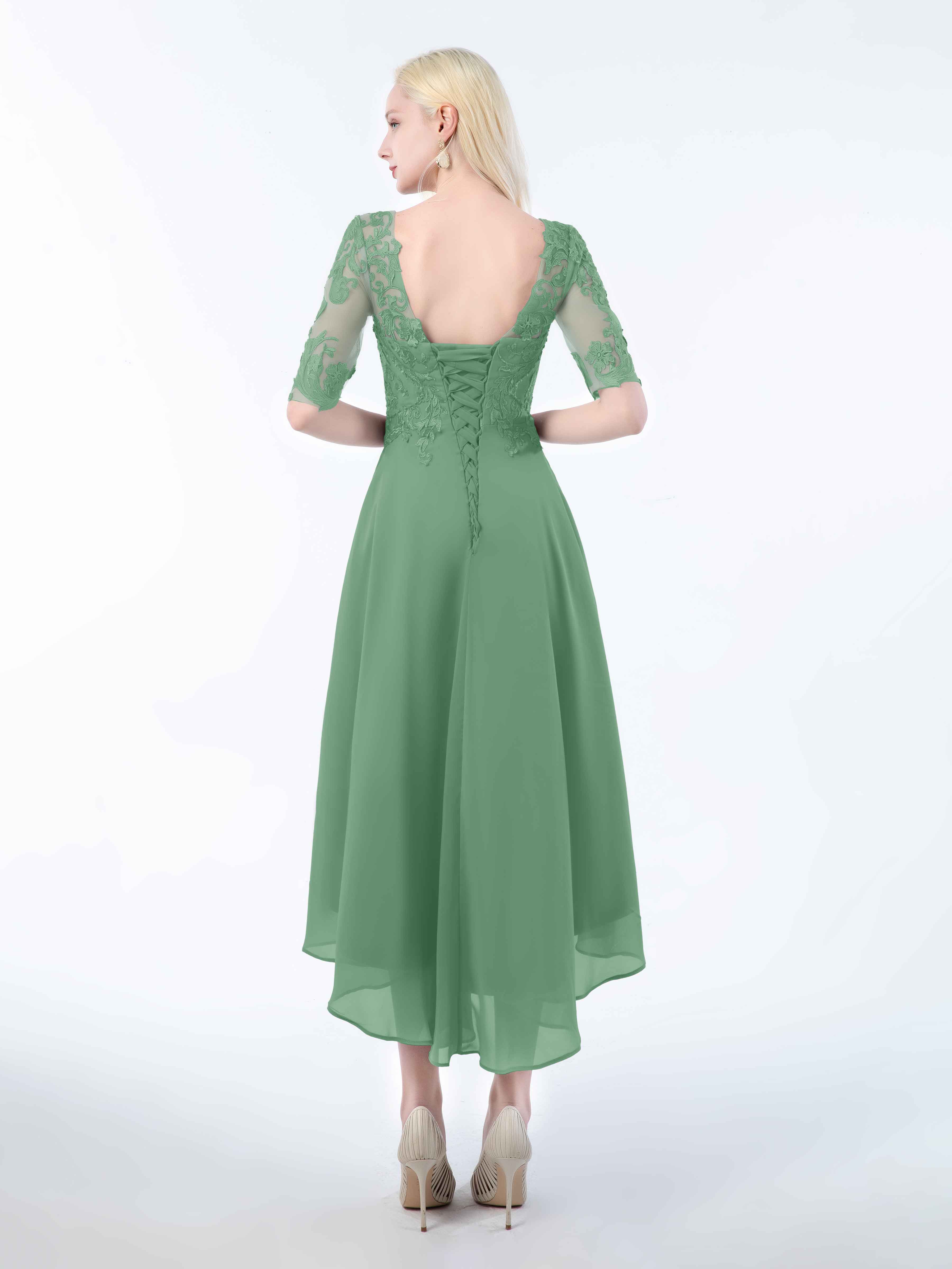 Brianna Elegant Half Sleeves Tea Length Lace Chiffon Bridesmaid Dresses