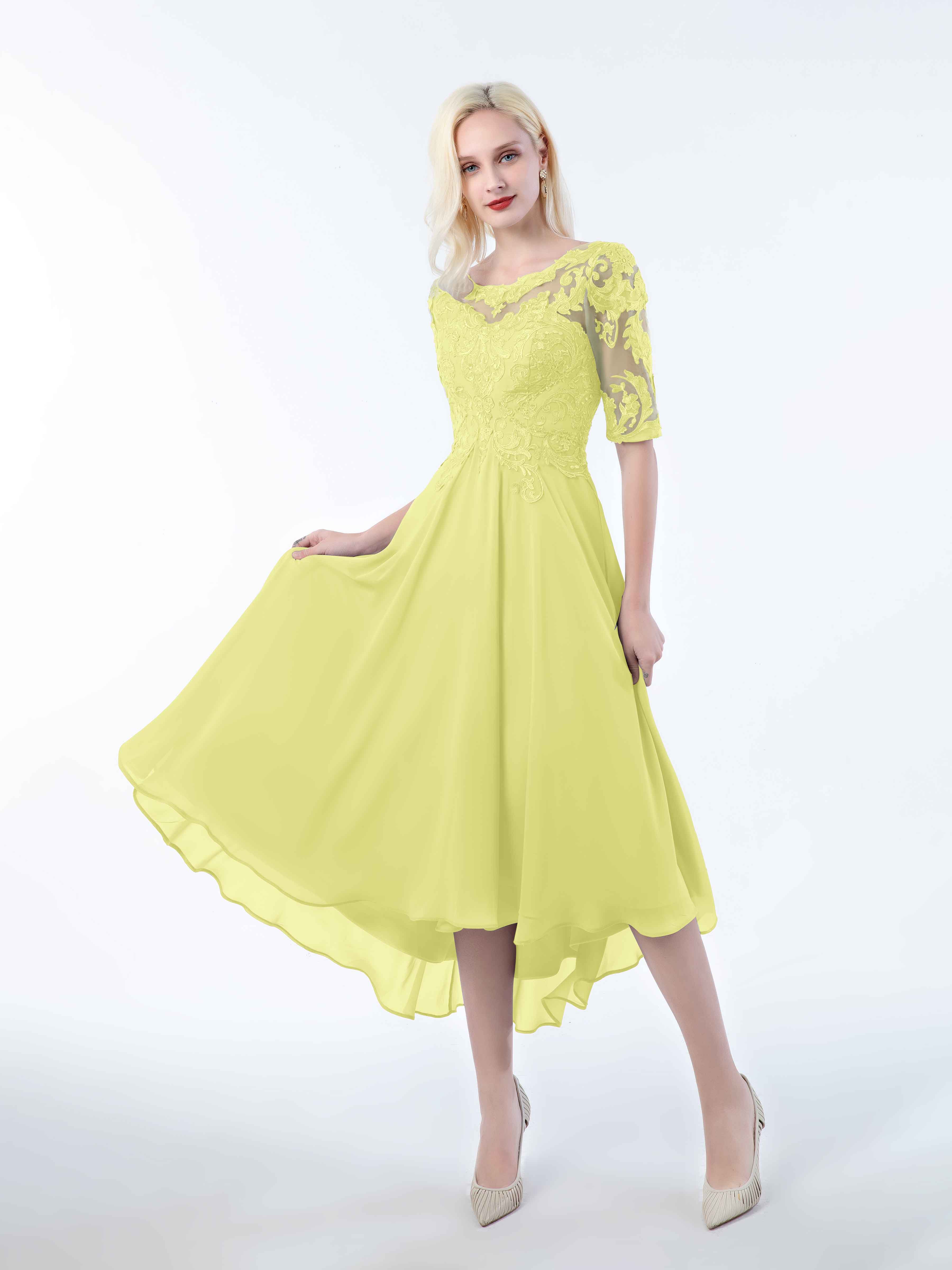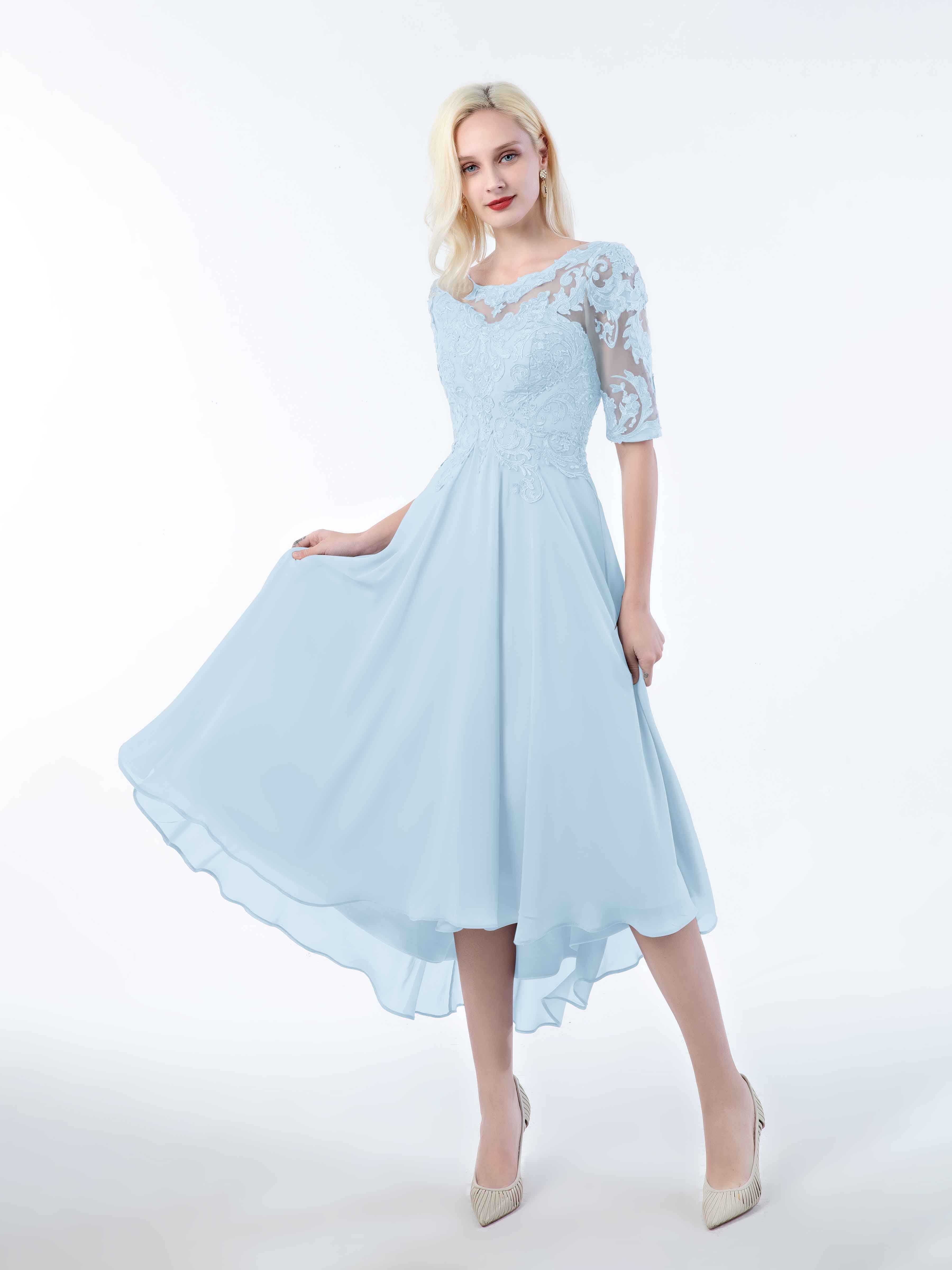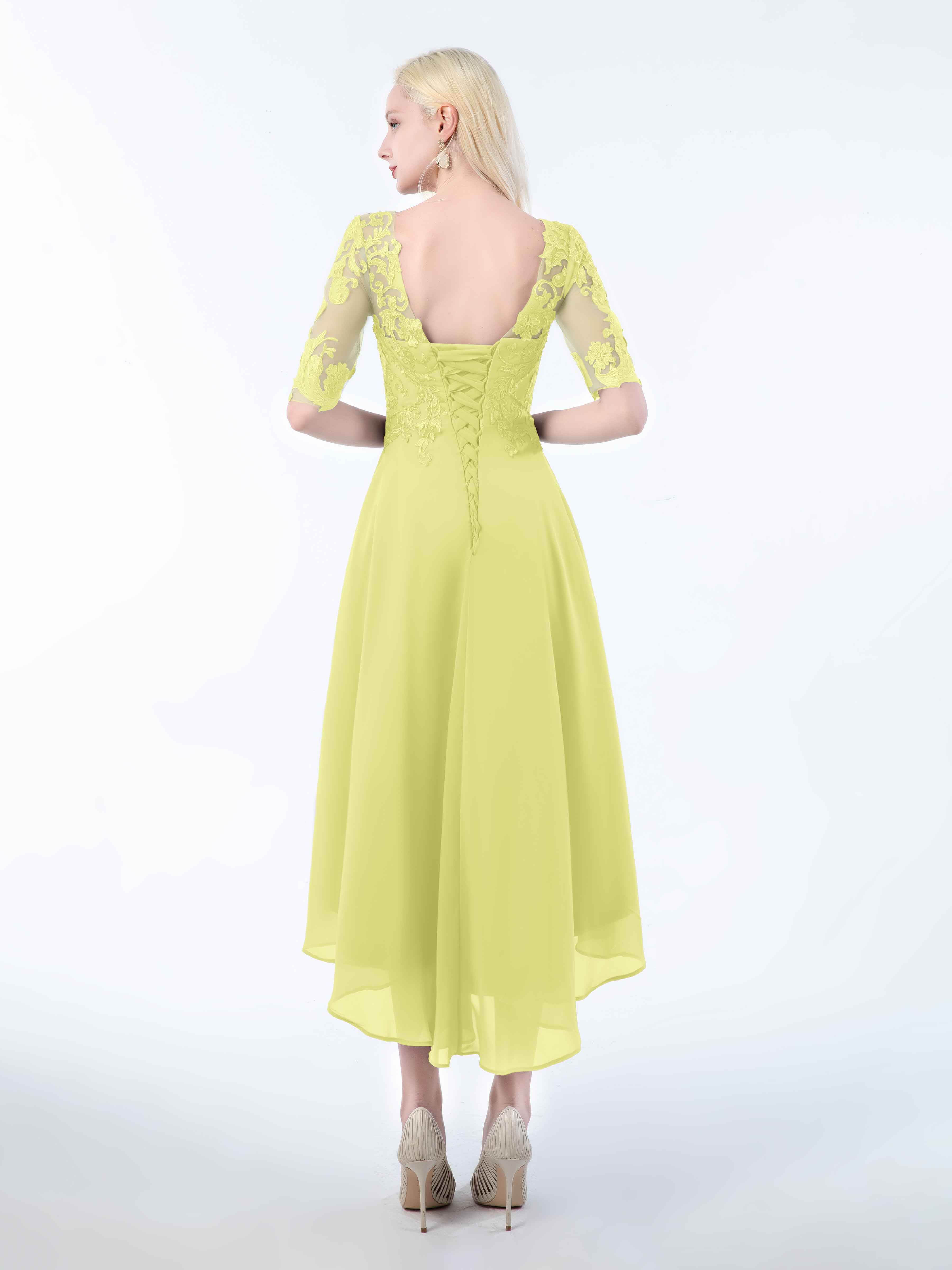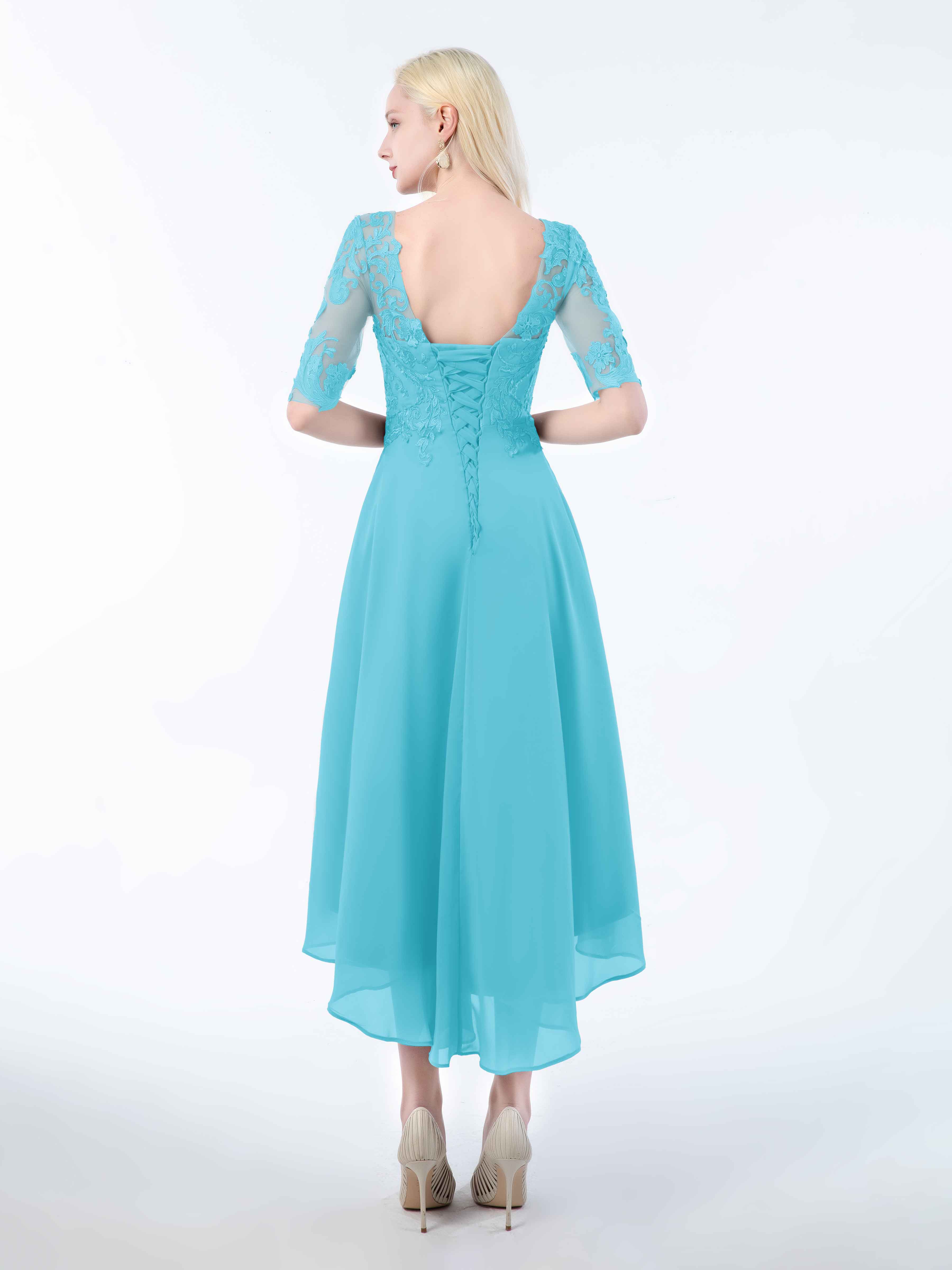 Brianna Elegant Half Sleeves Tea Length Lace Chiffon Bridesmaid Dresses