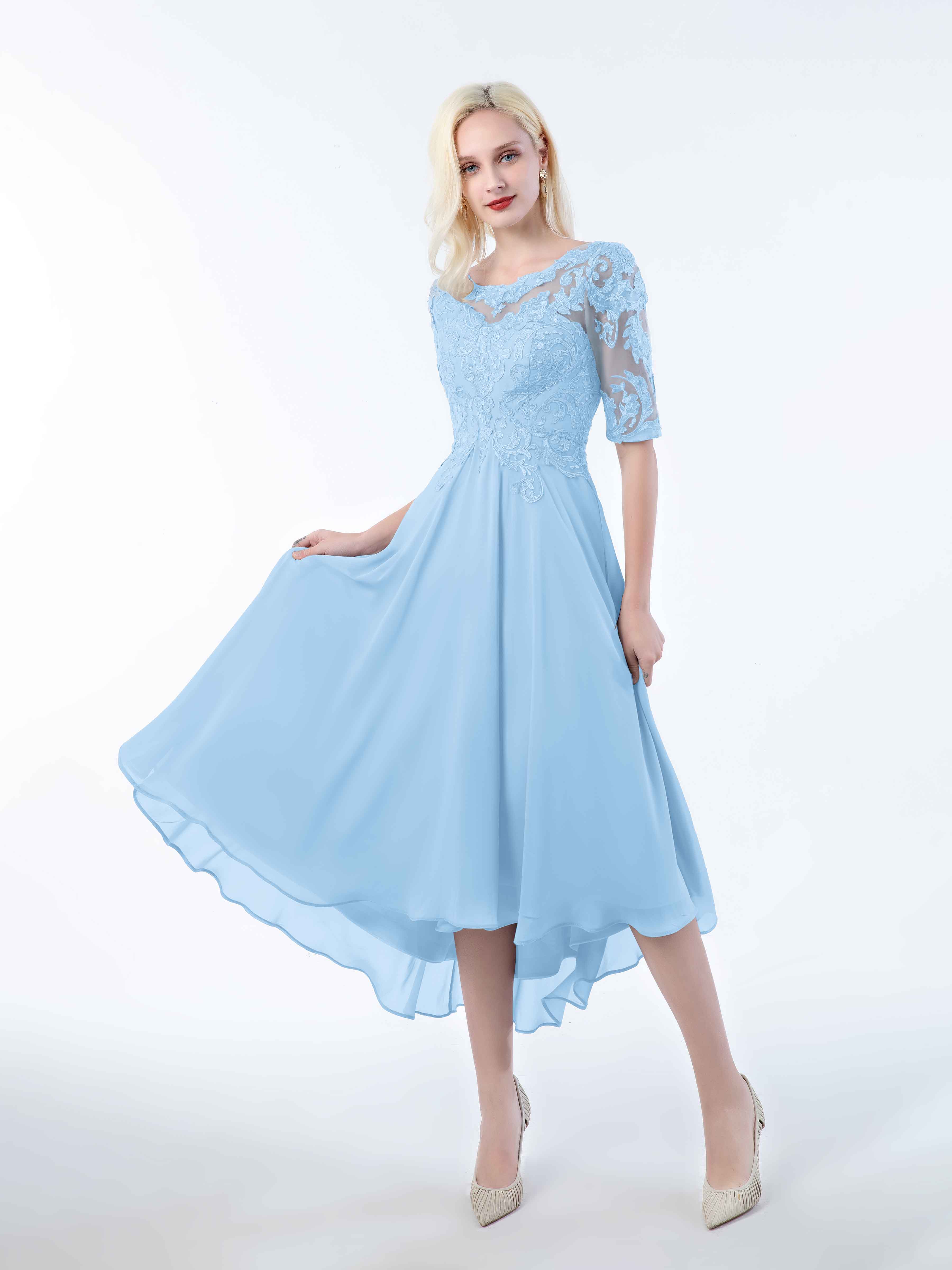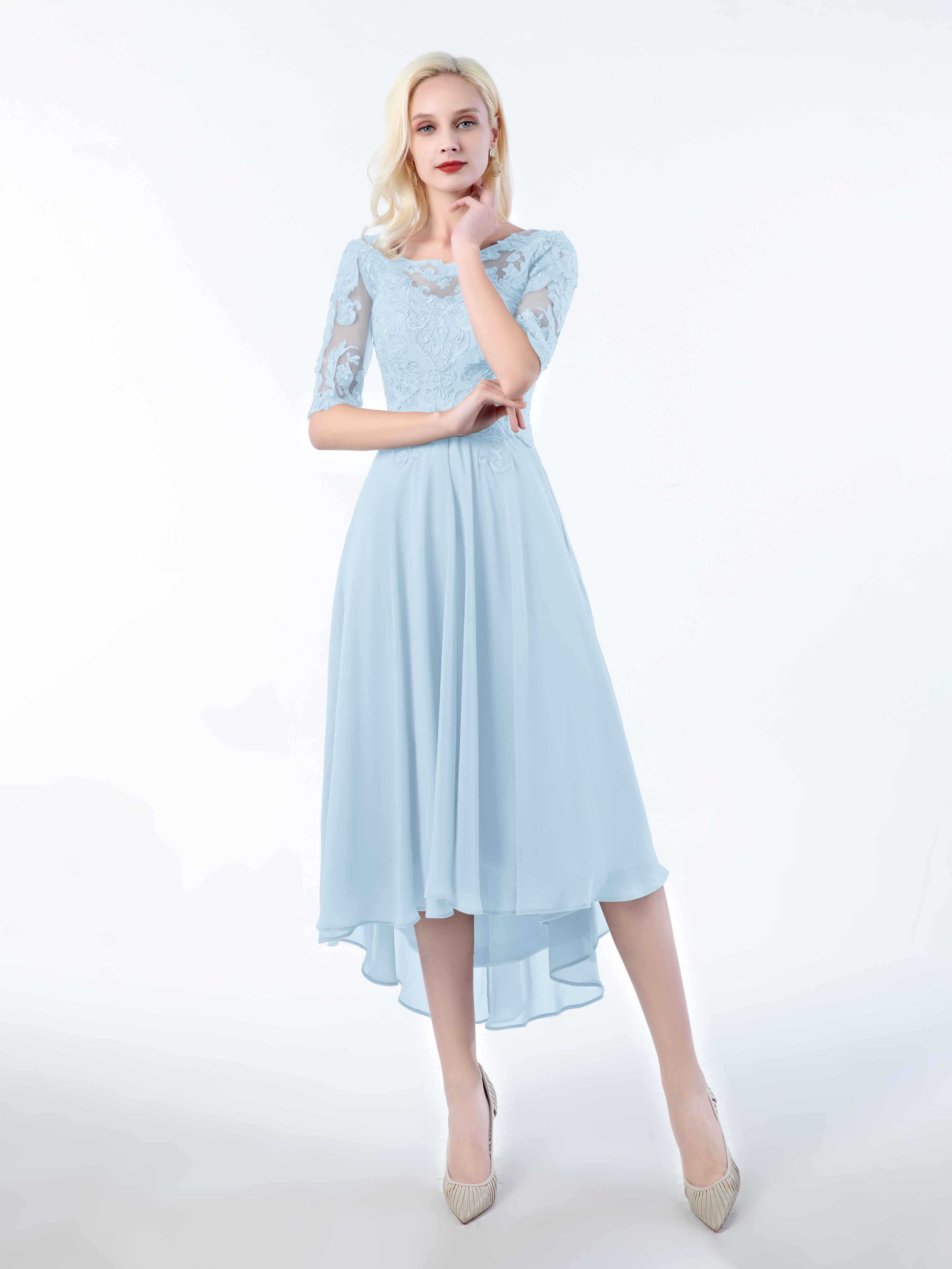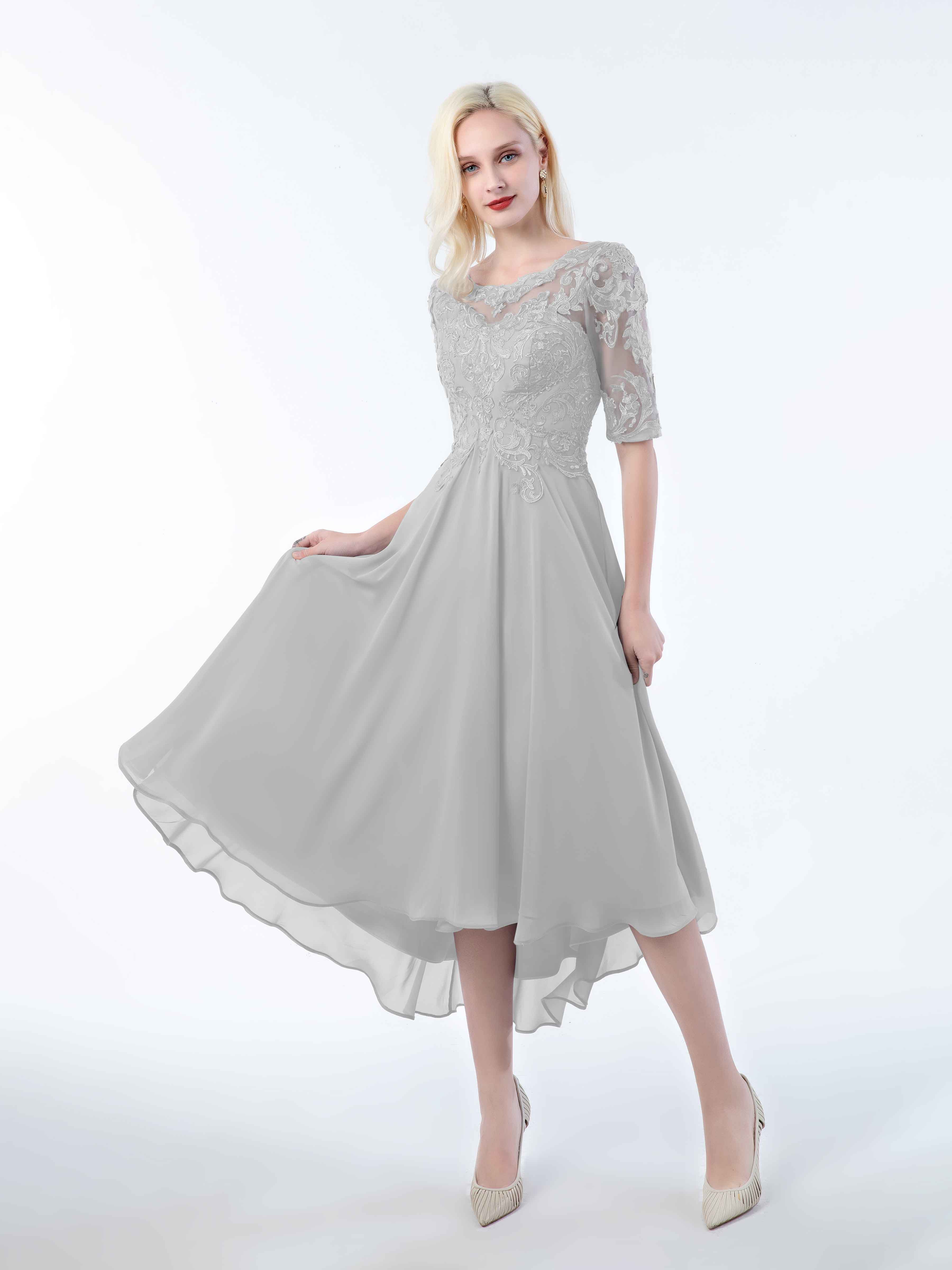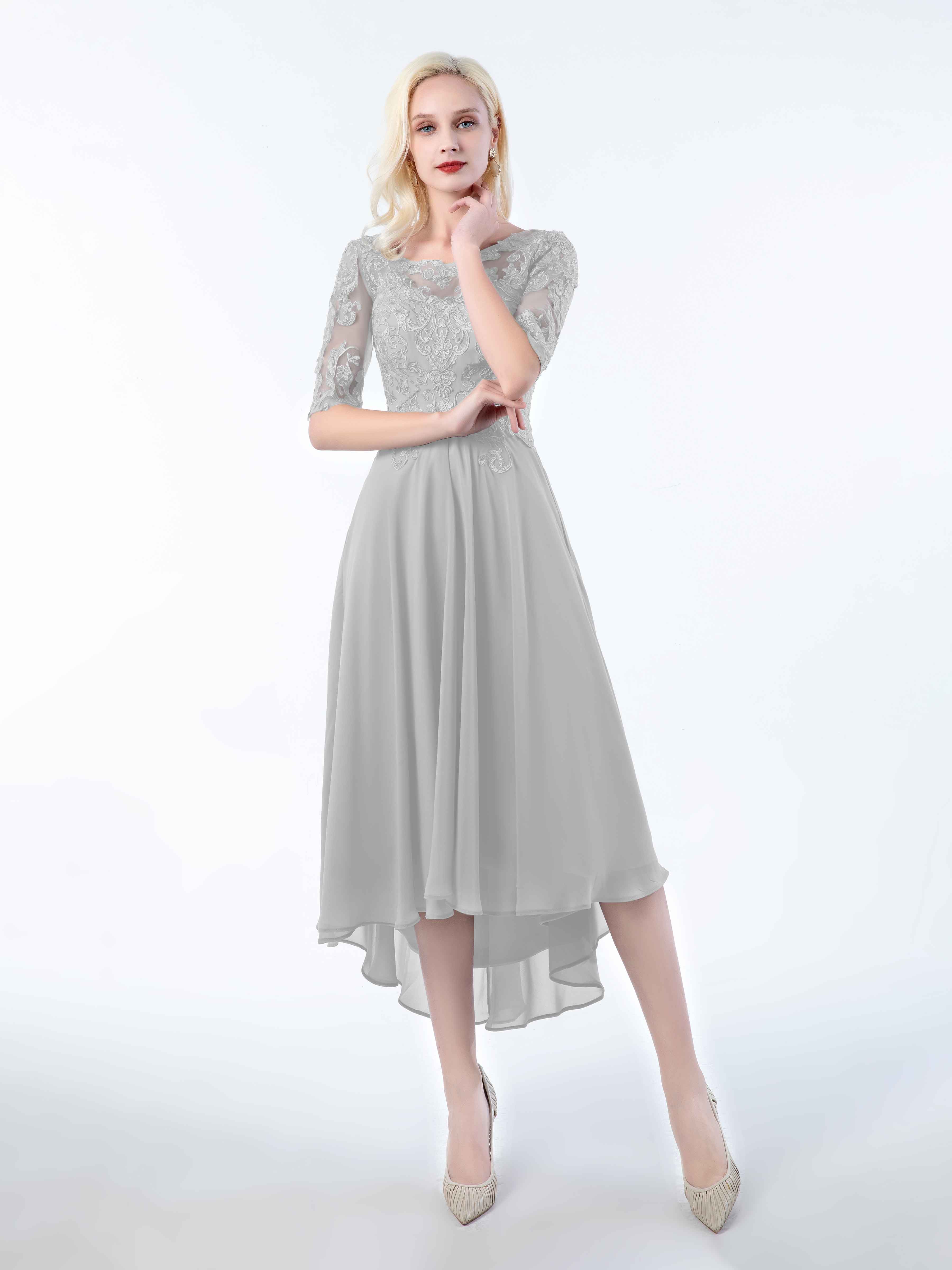 Brianna Elegant Half Sleeves Tea Length Lace Chiffon Bridesmaid Dresses