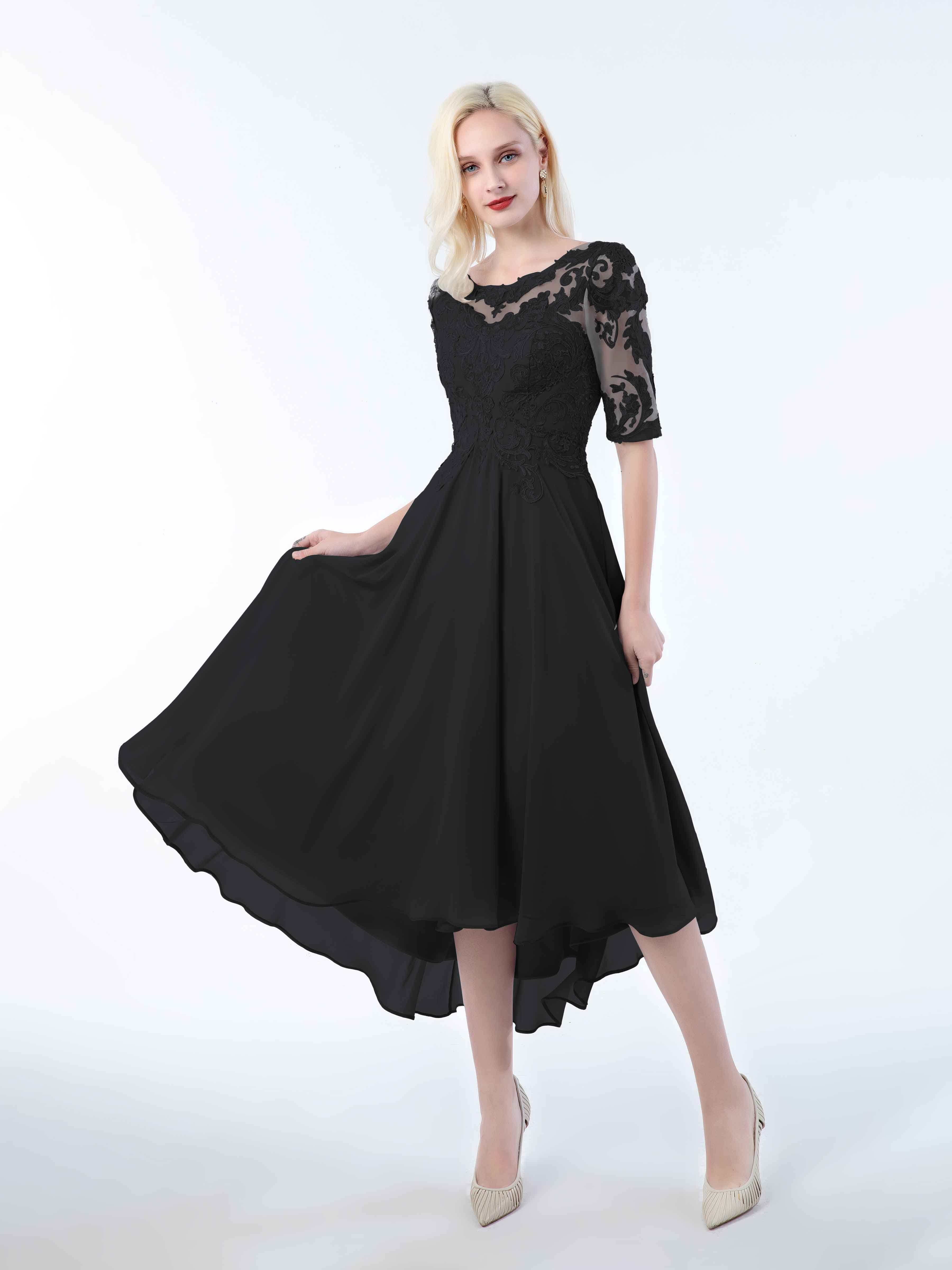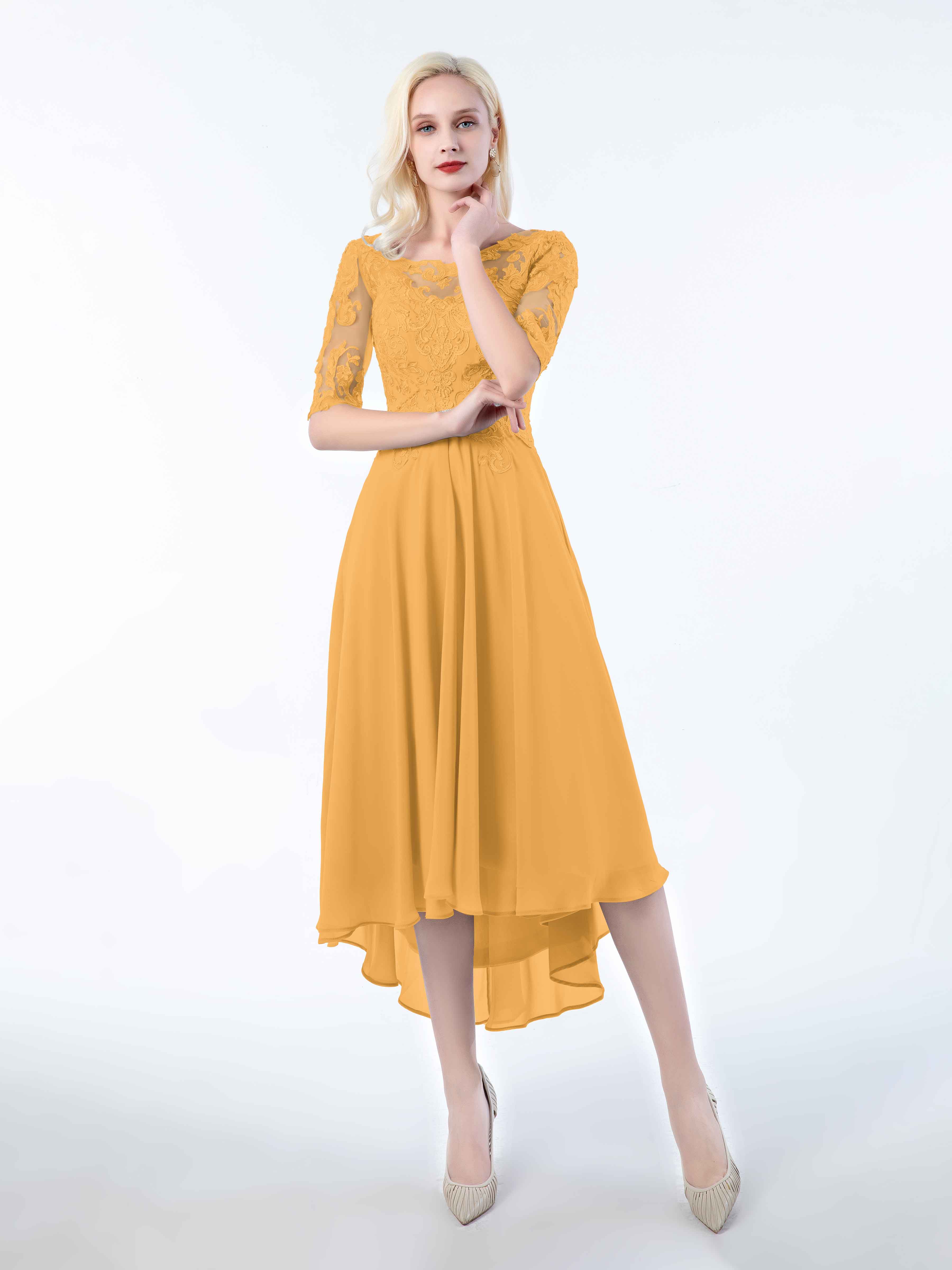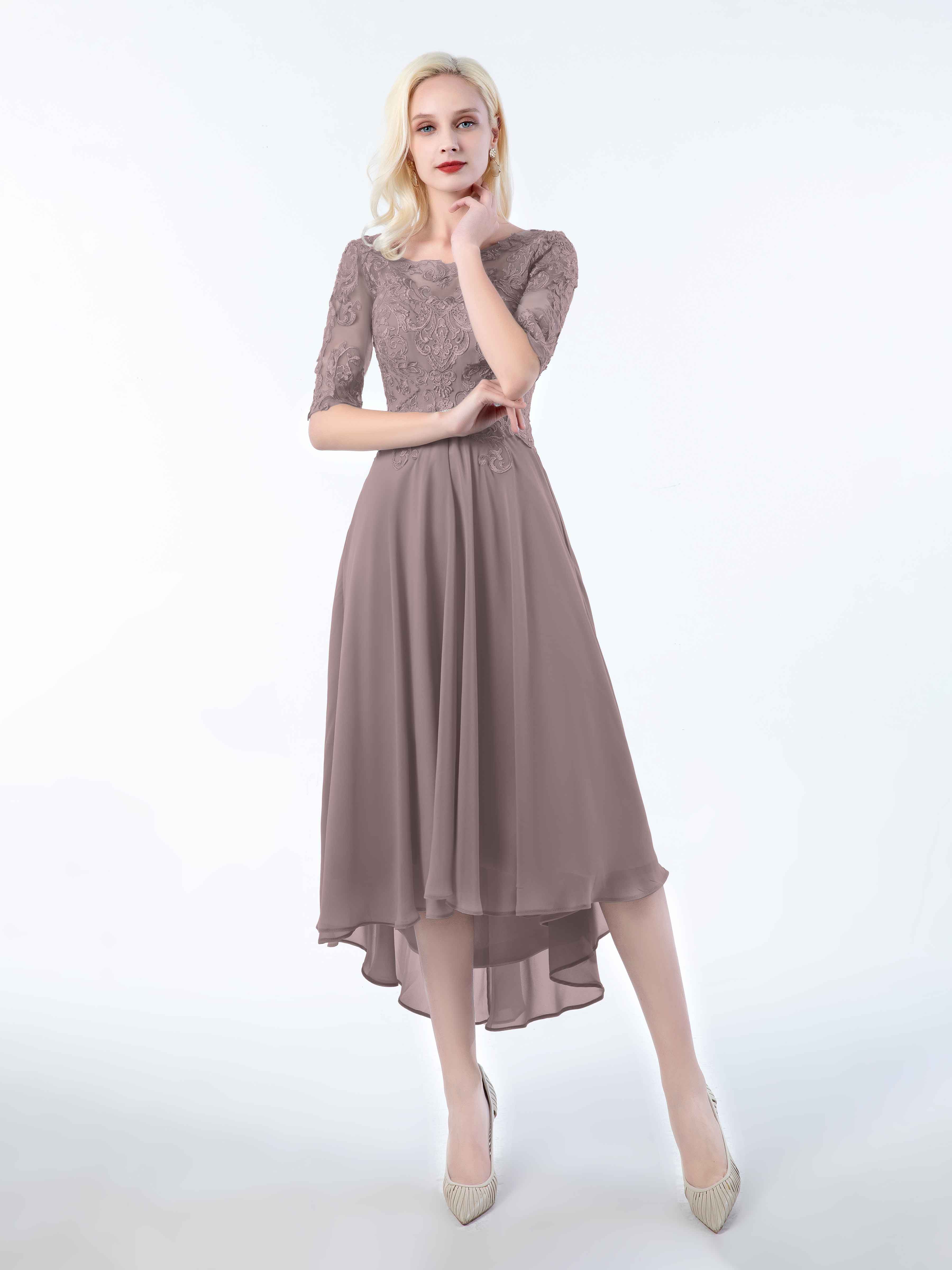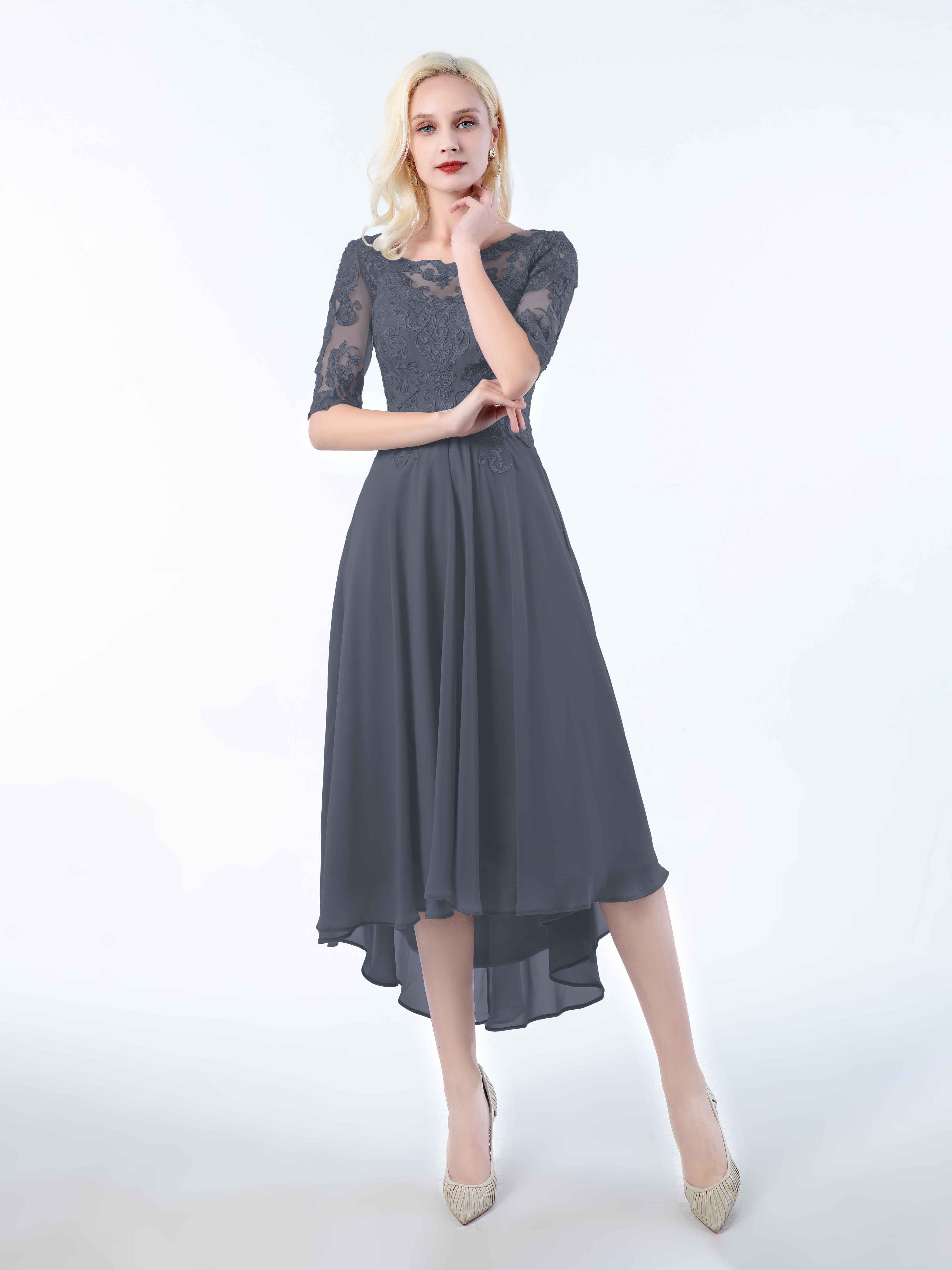 Brianna Elegant Half Sleeves Tea Length Lace Chiffon Bridesmaid Dresses