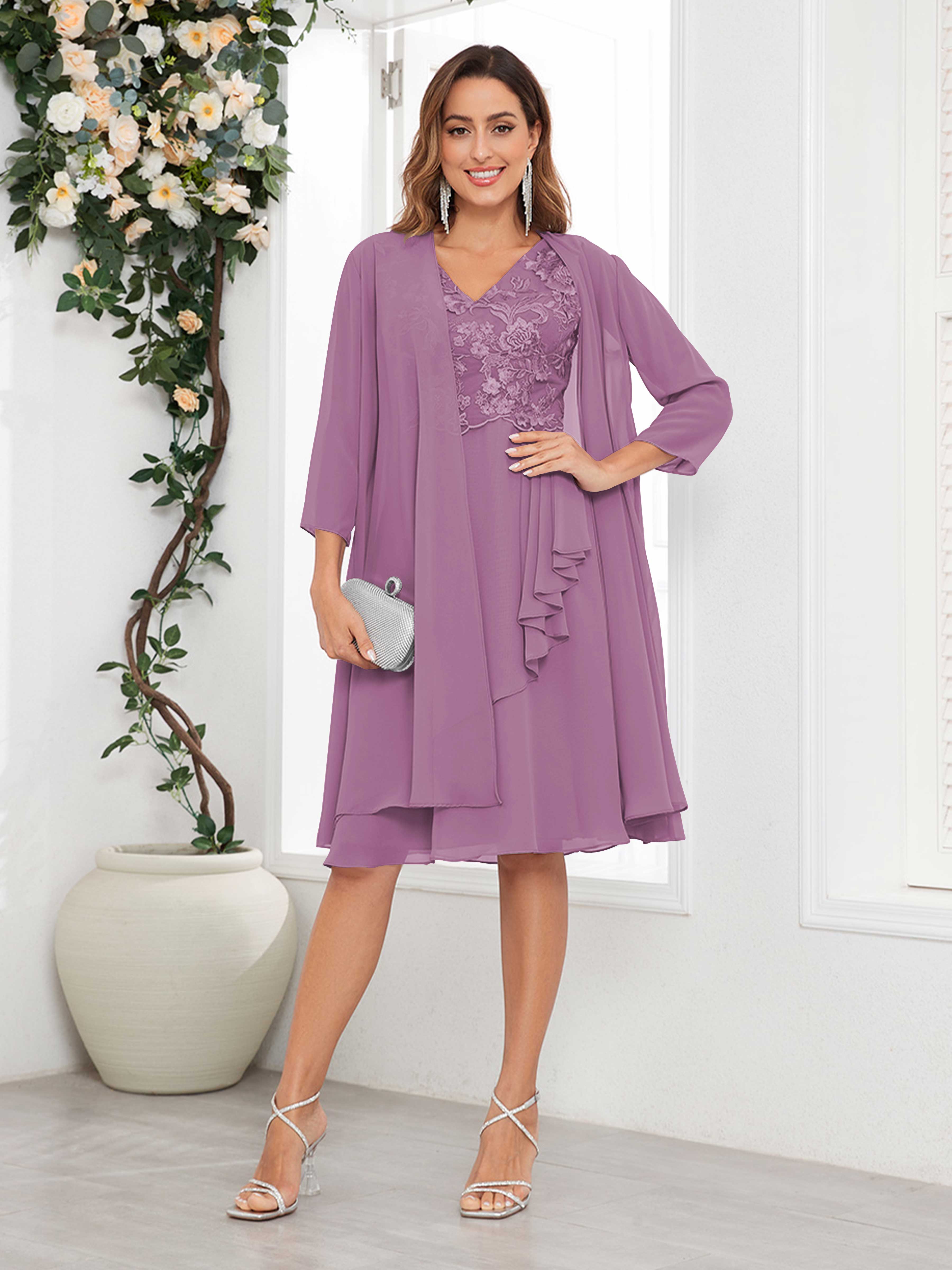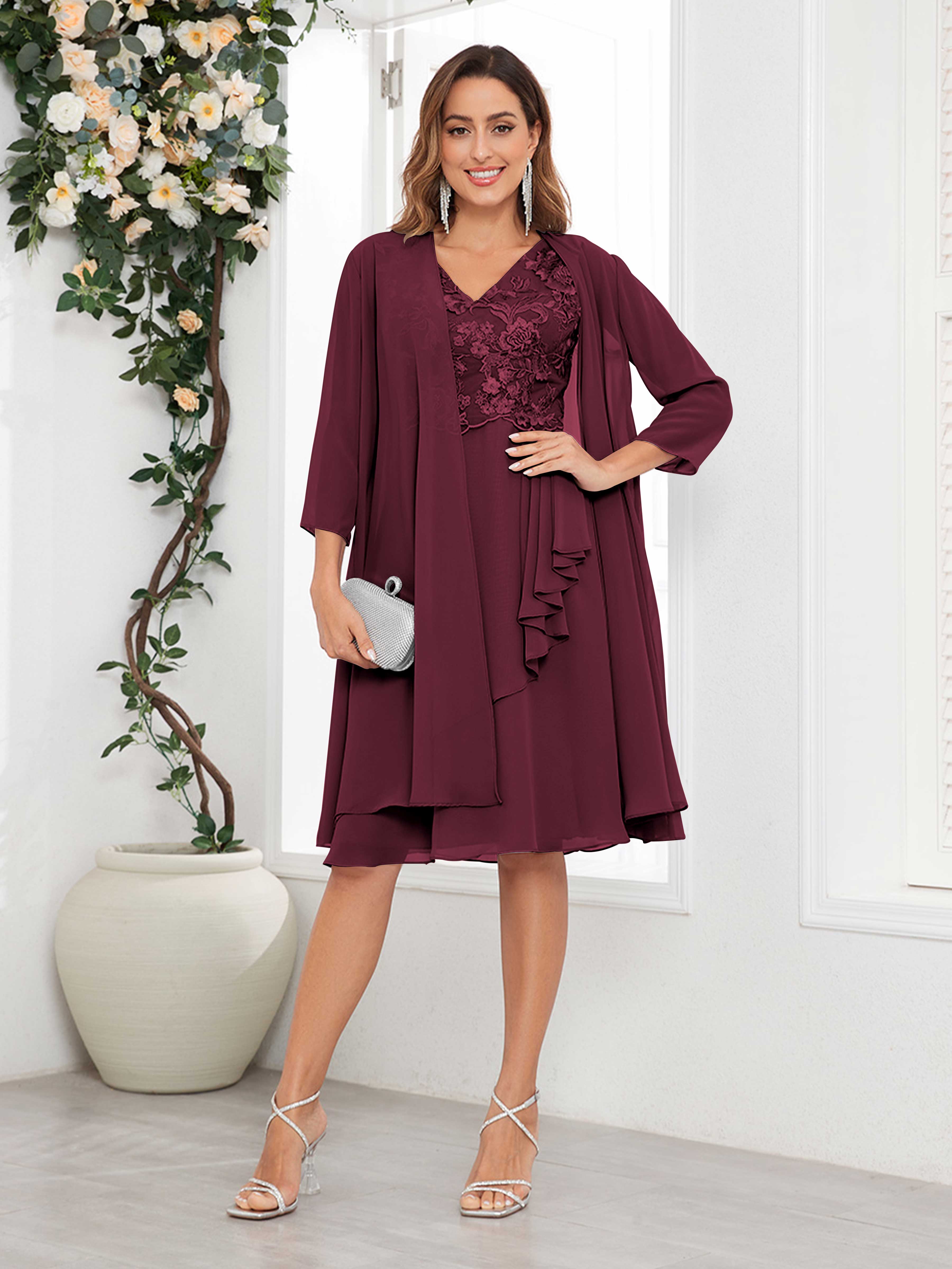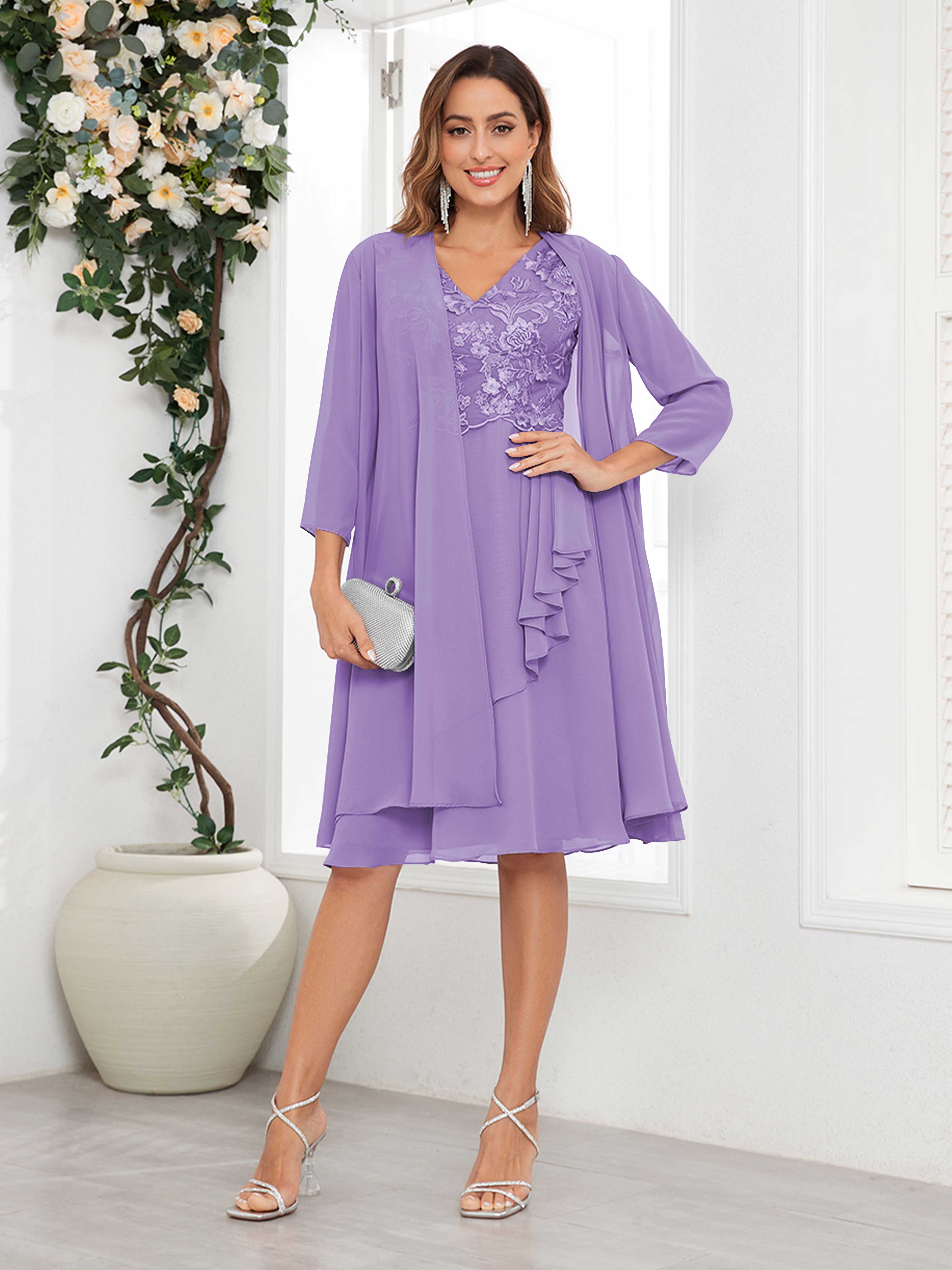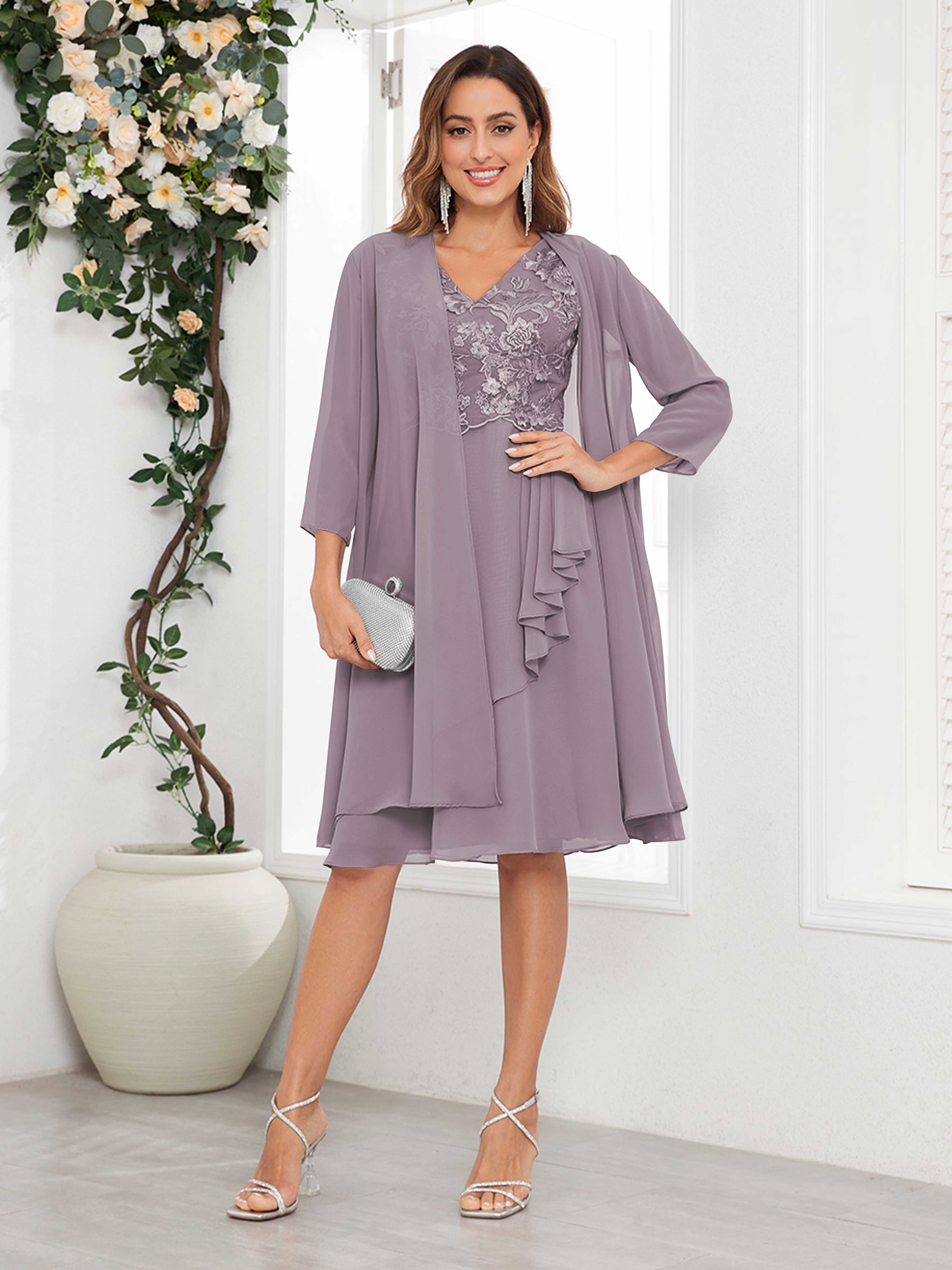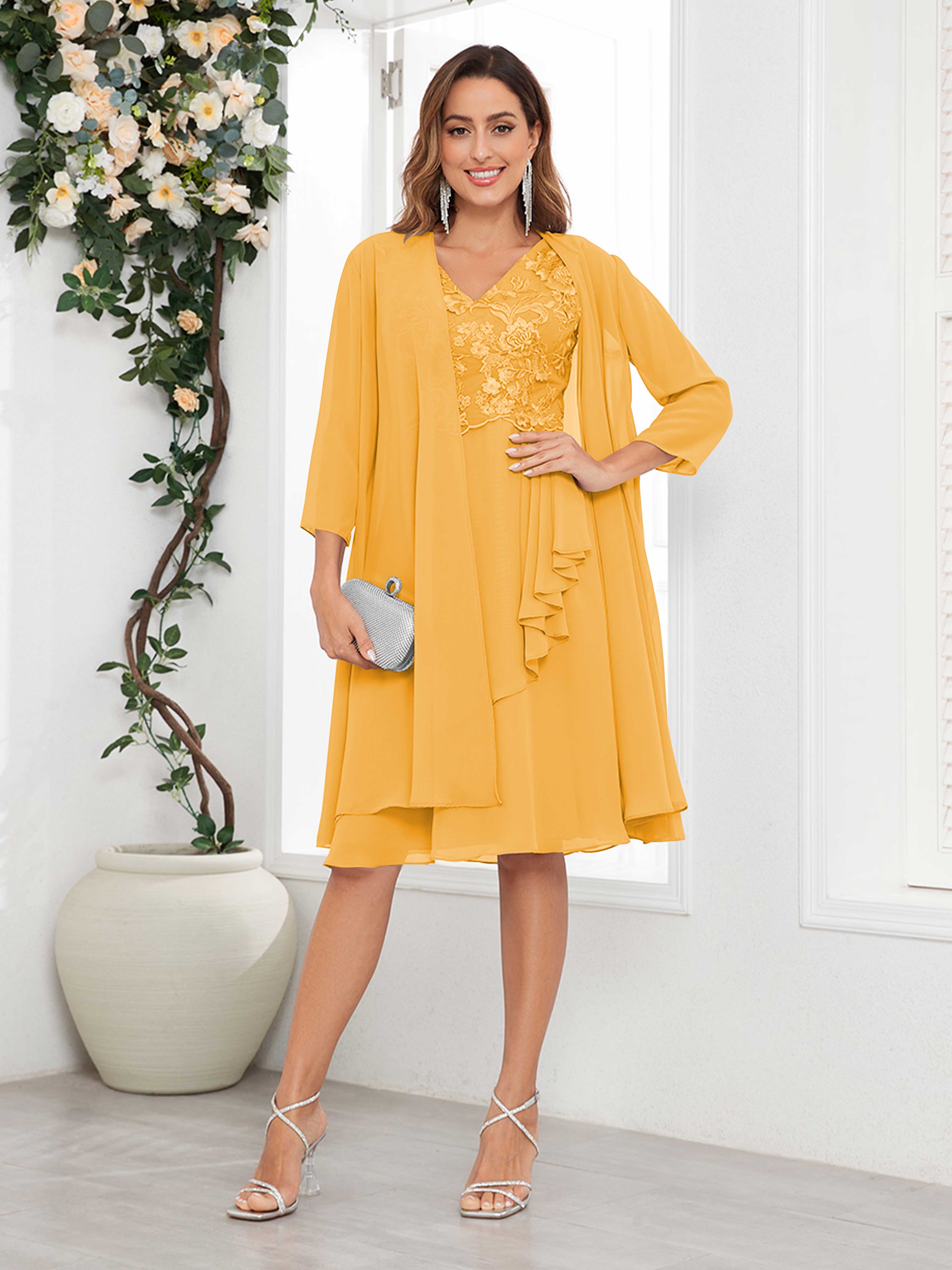 Carolina Chic Two Pieces V Neck Appliques Knee Length Chiffon Mother Of The Bride Dresses