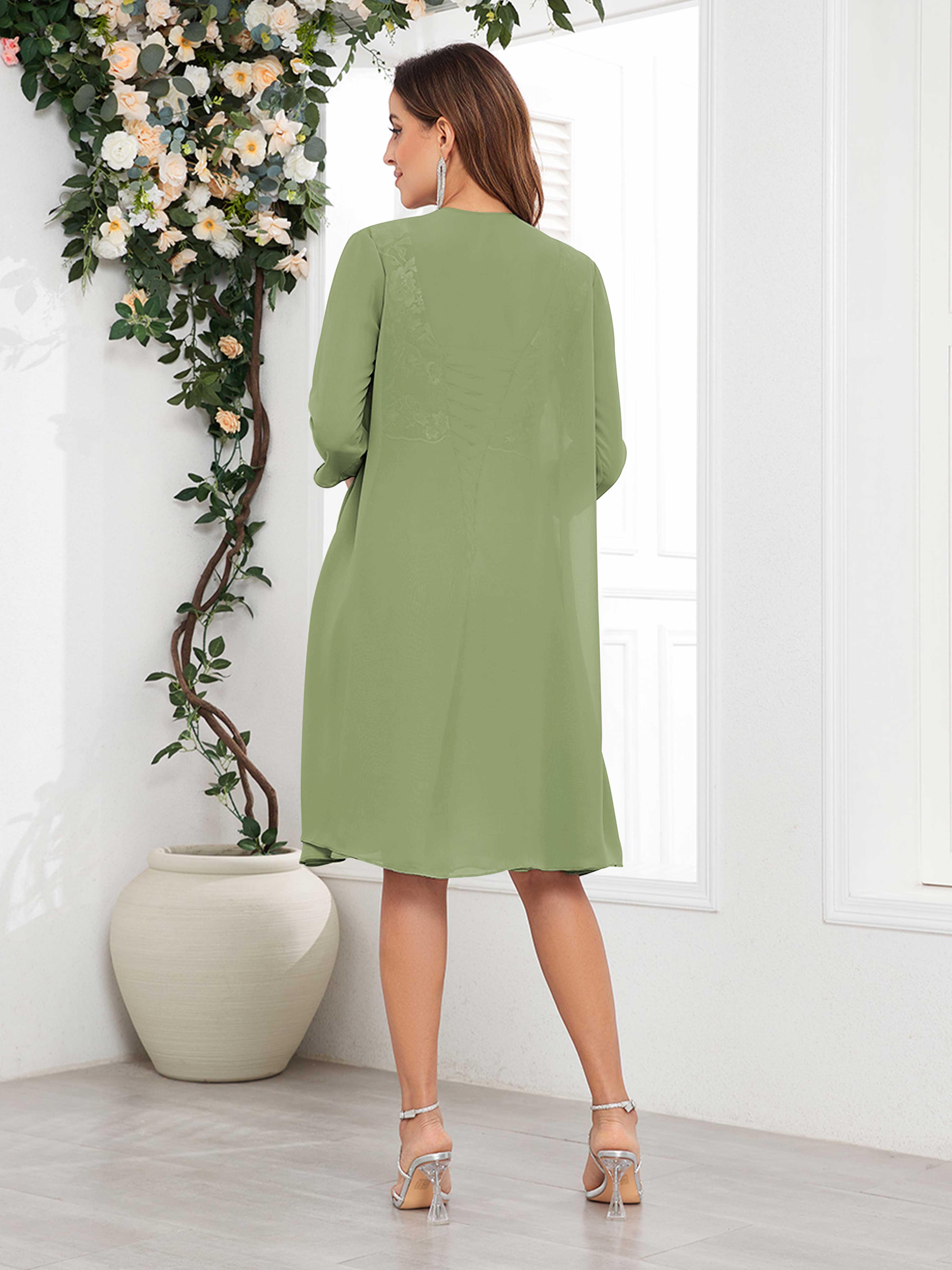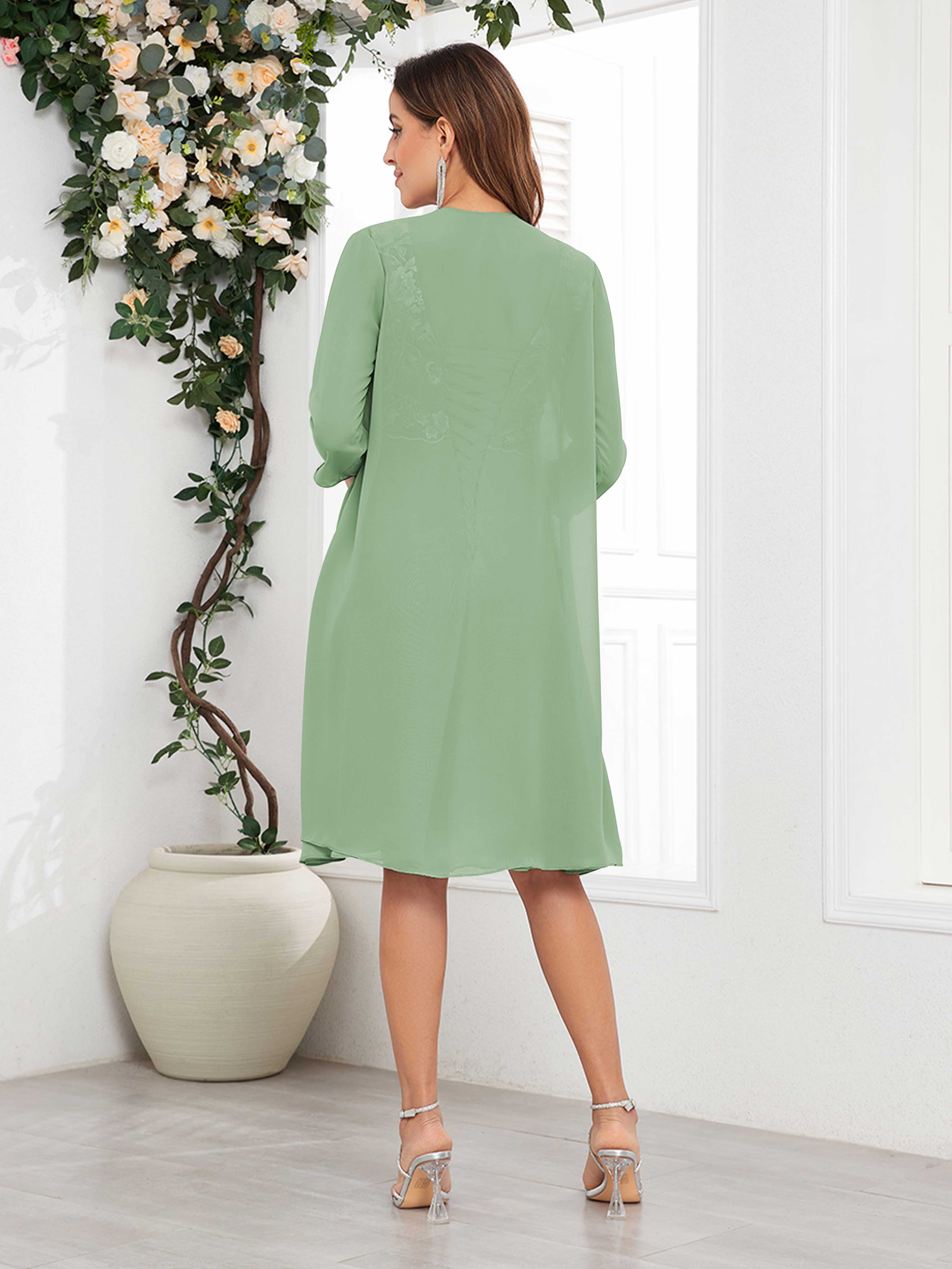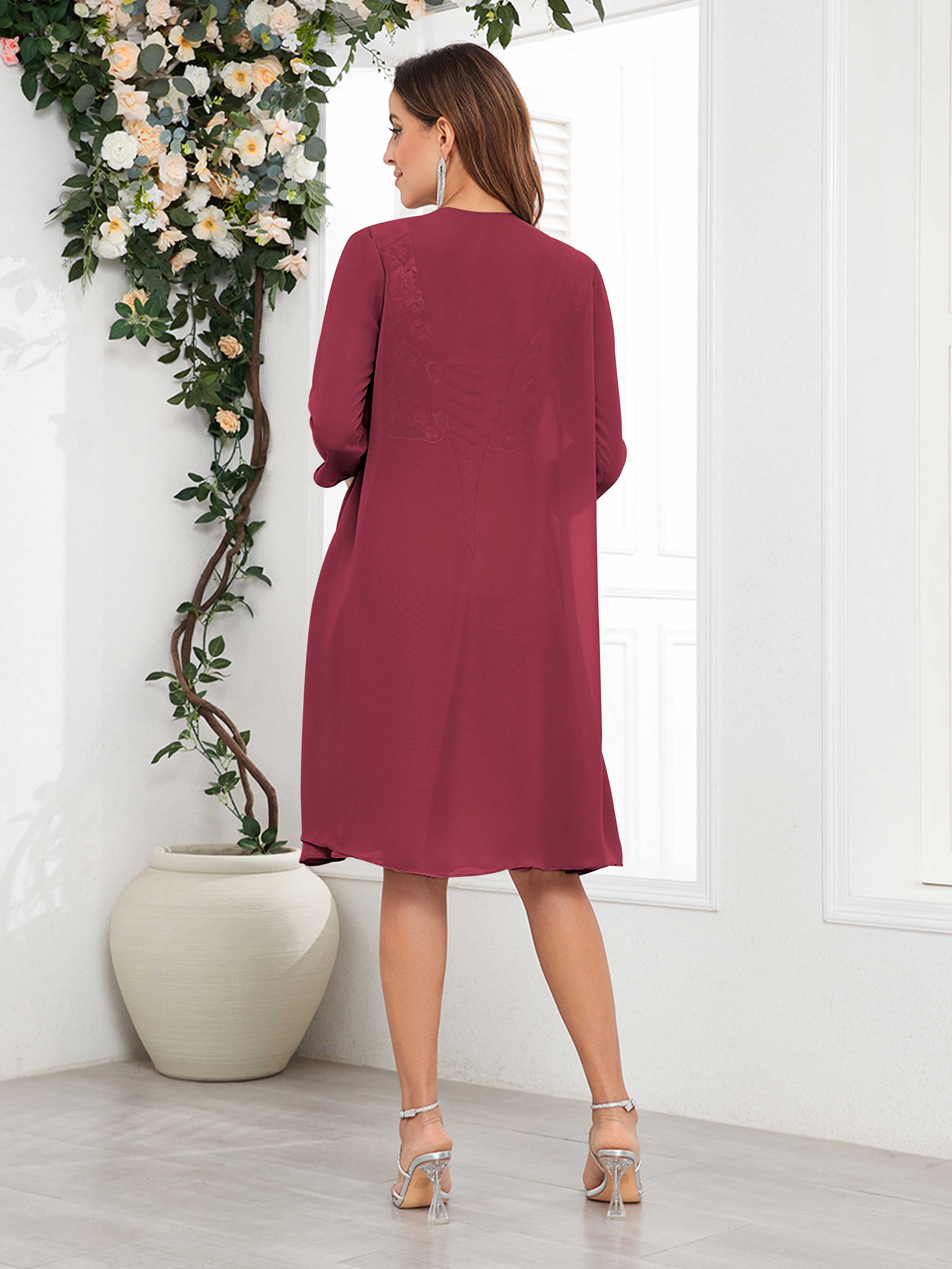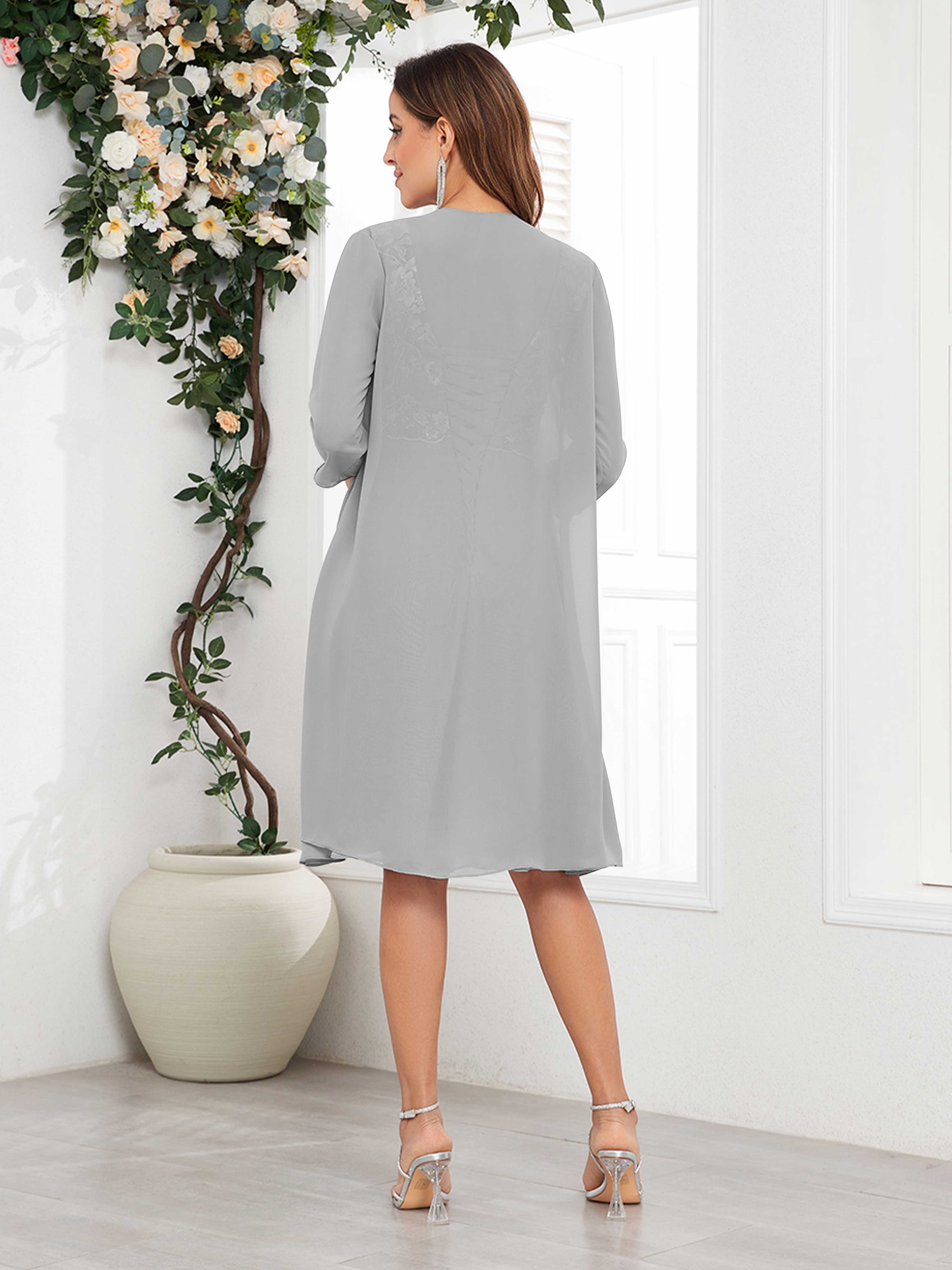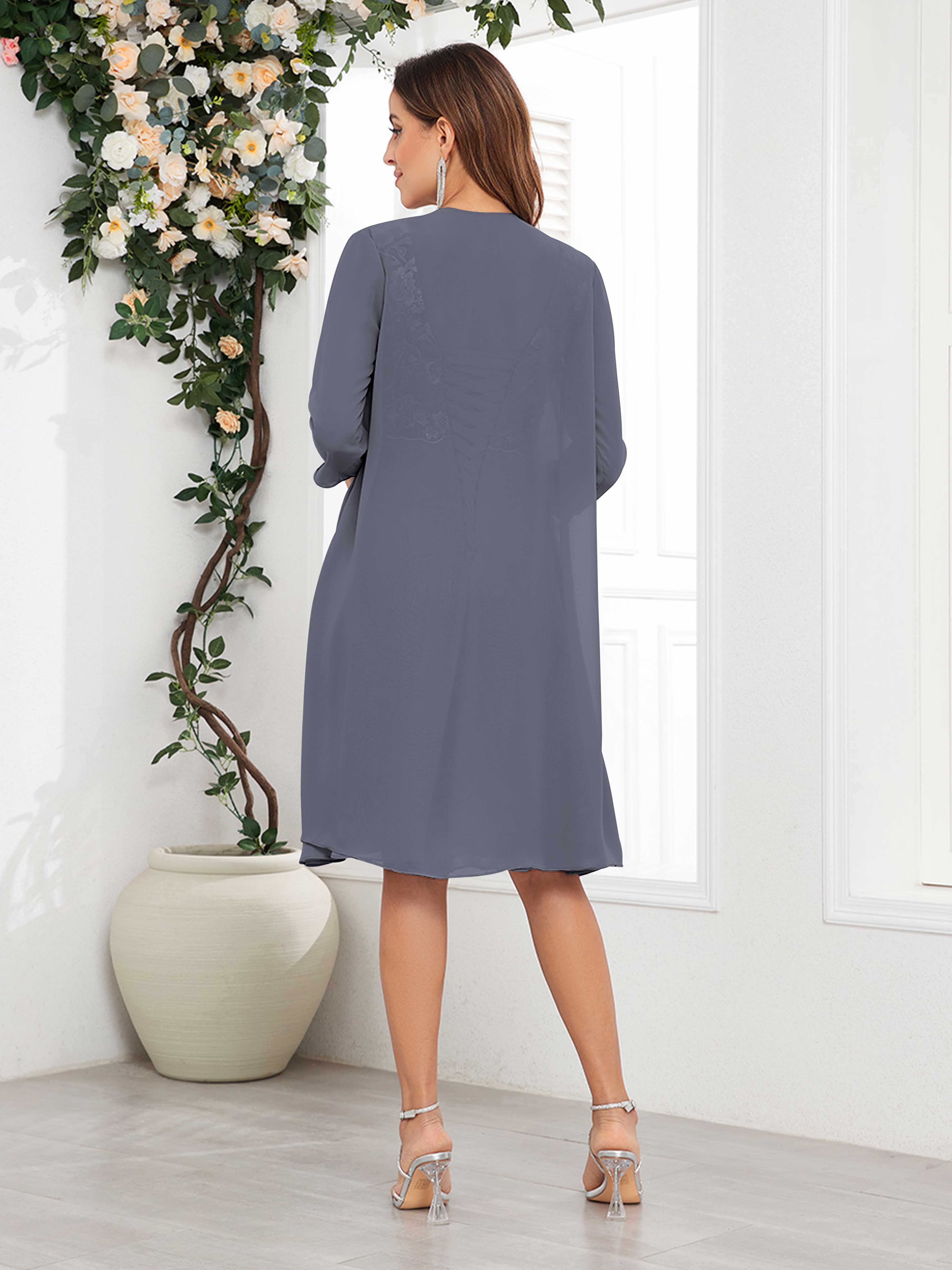 Carolina Chic Two Pieces V Neck Appliques Knee Length Chiffon Mother Of The Bride Dresses