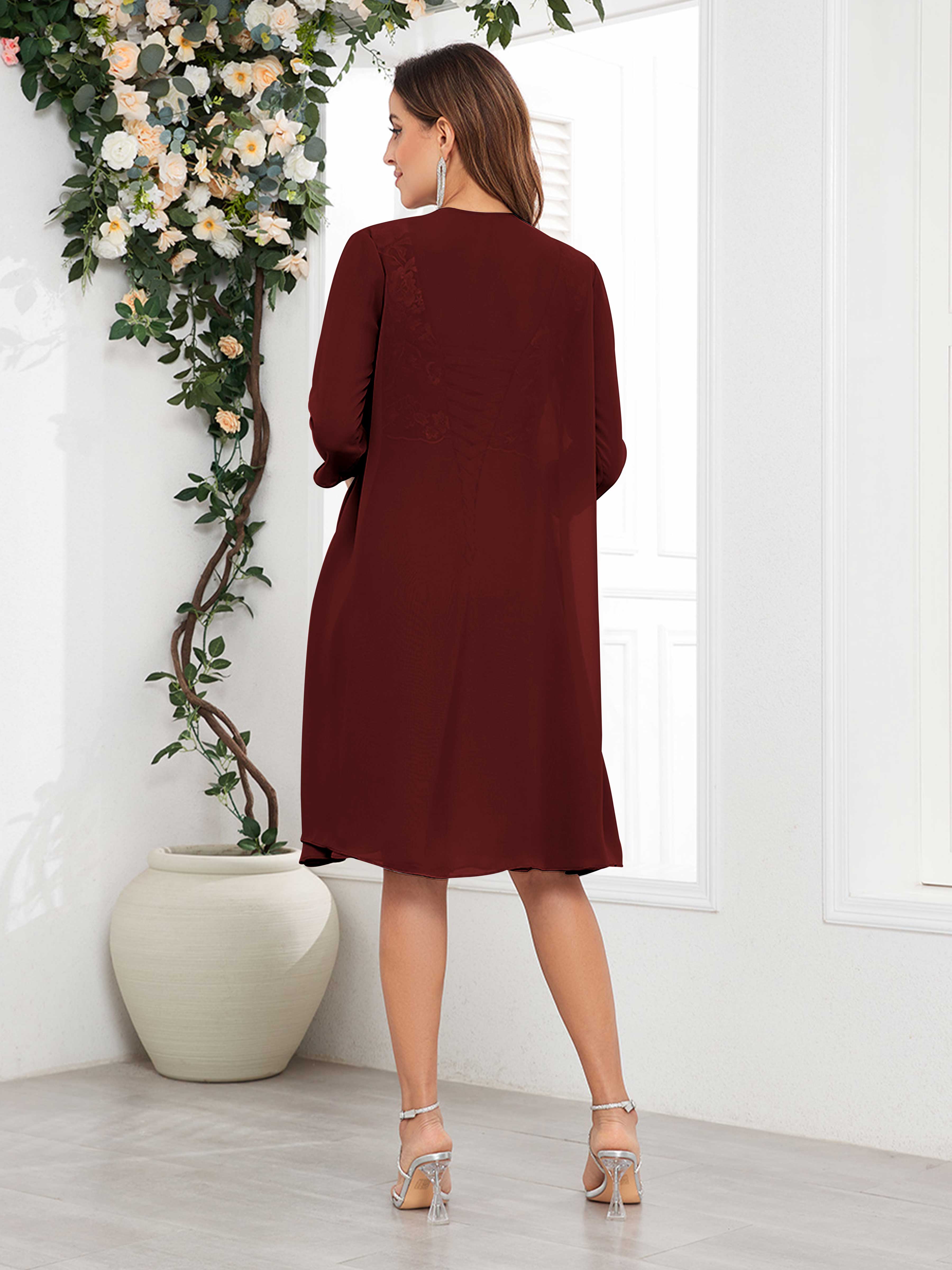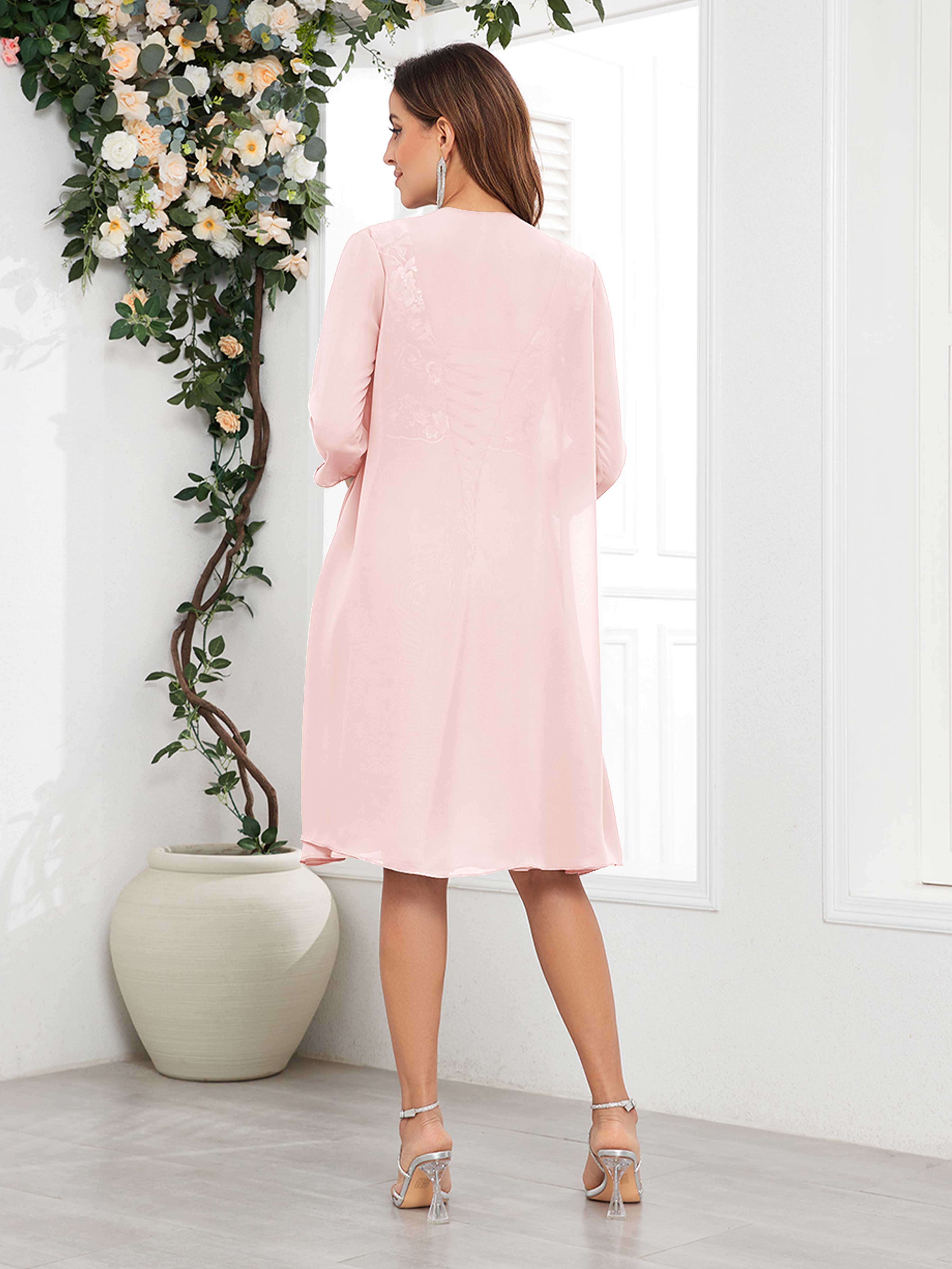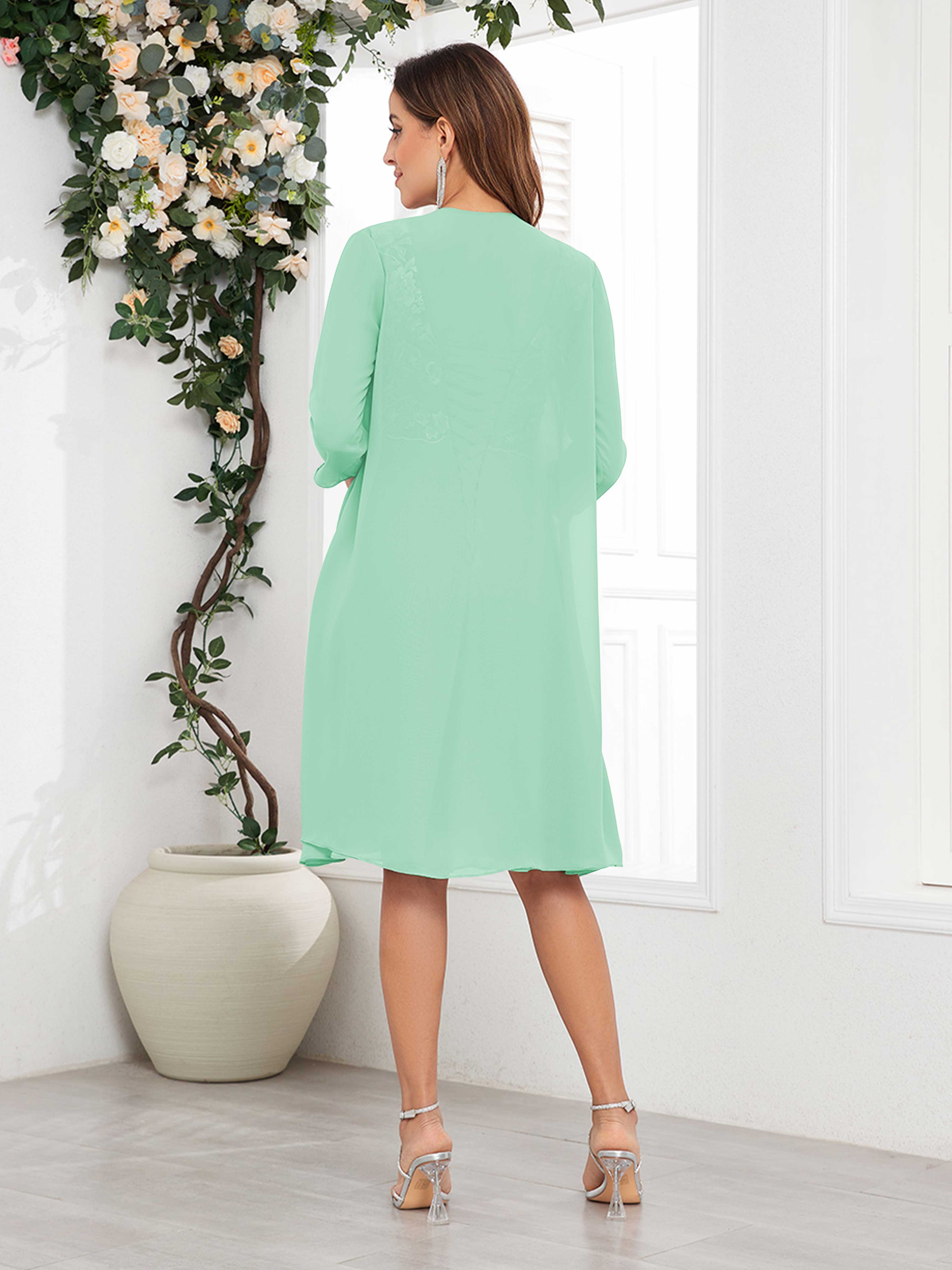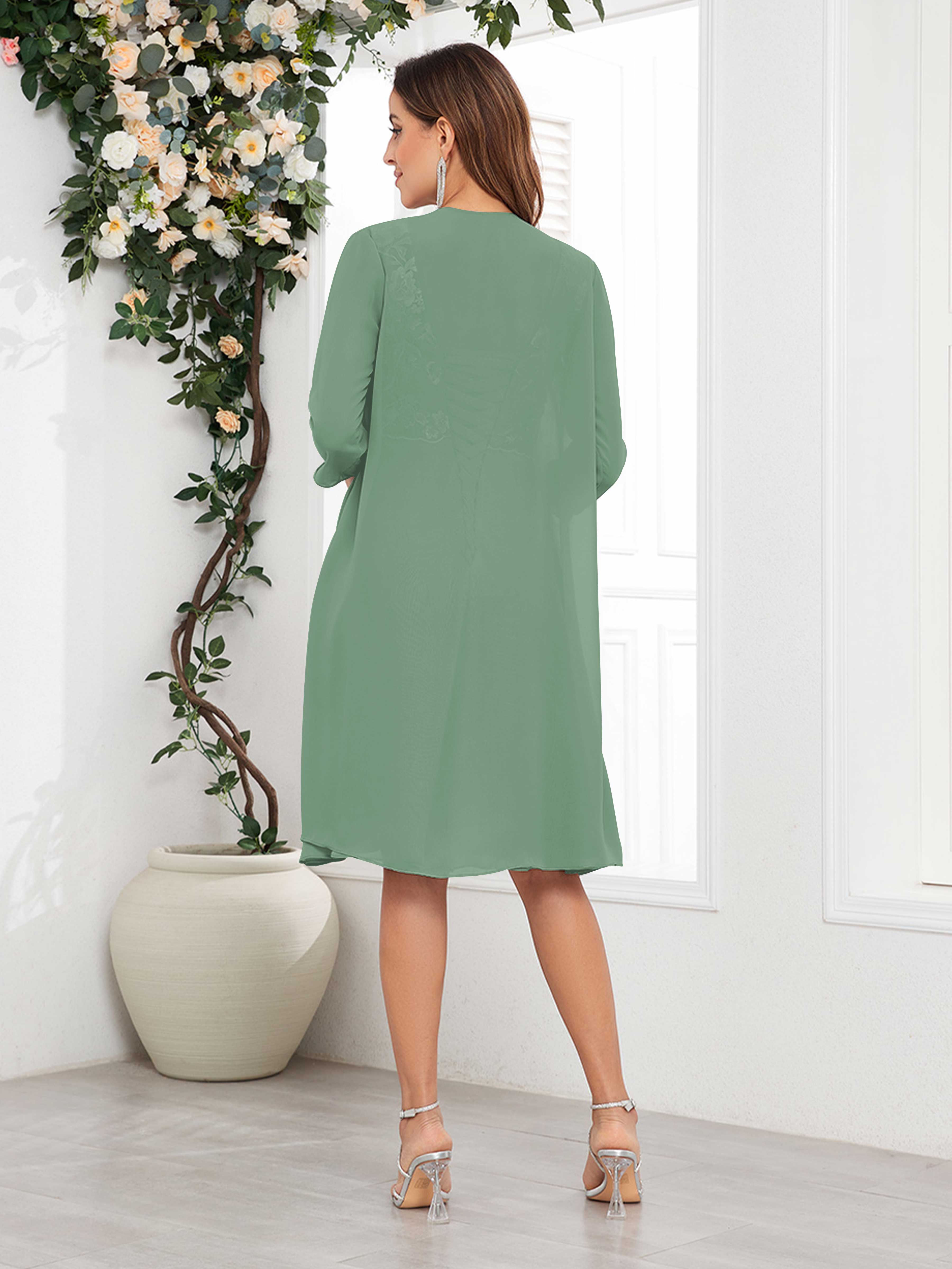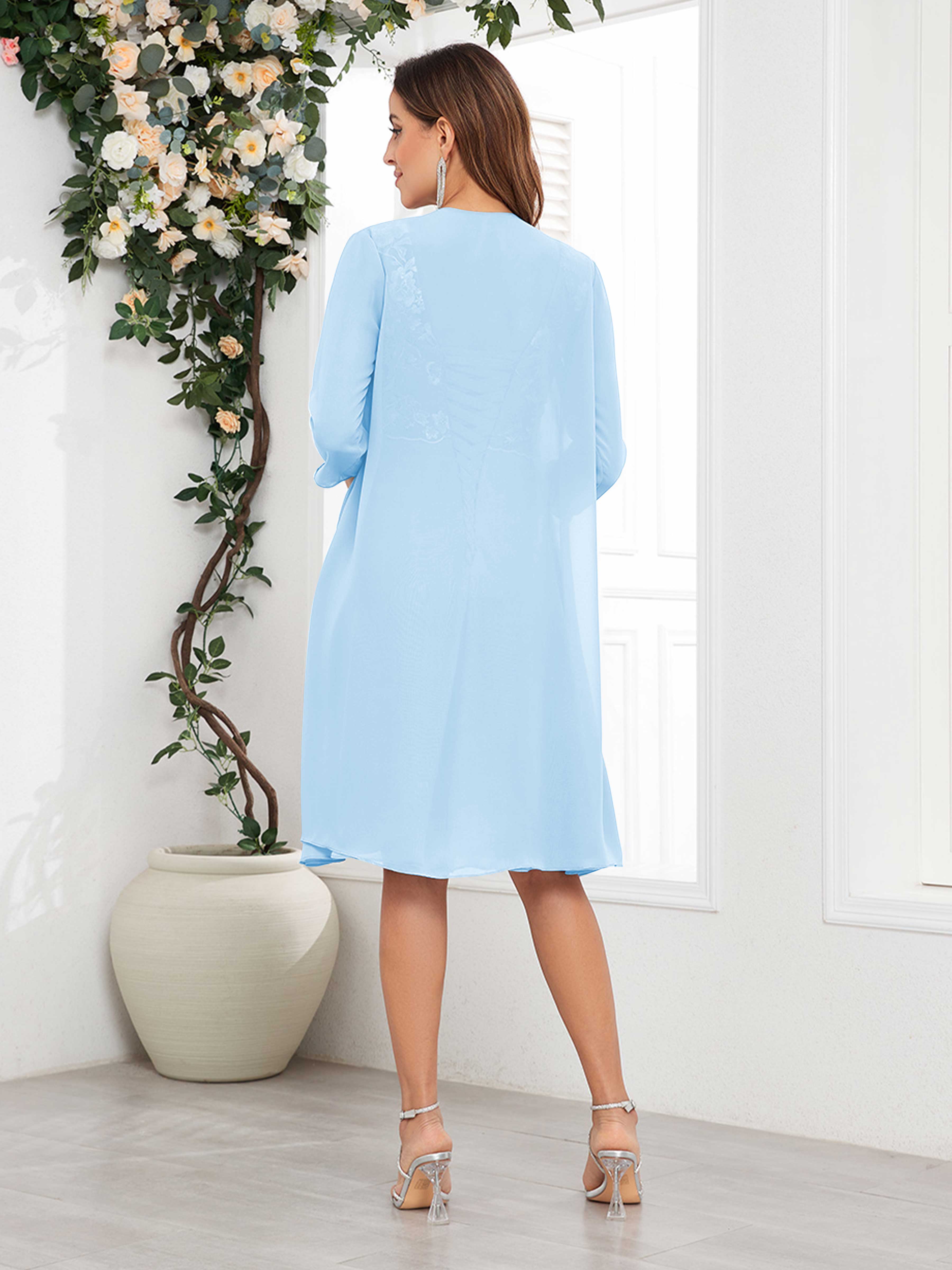 Carolina Chic Two Pieces V Neck Appliques Knee Length Chiffon Mother Of The Bride Dresses