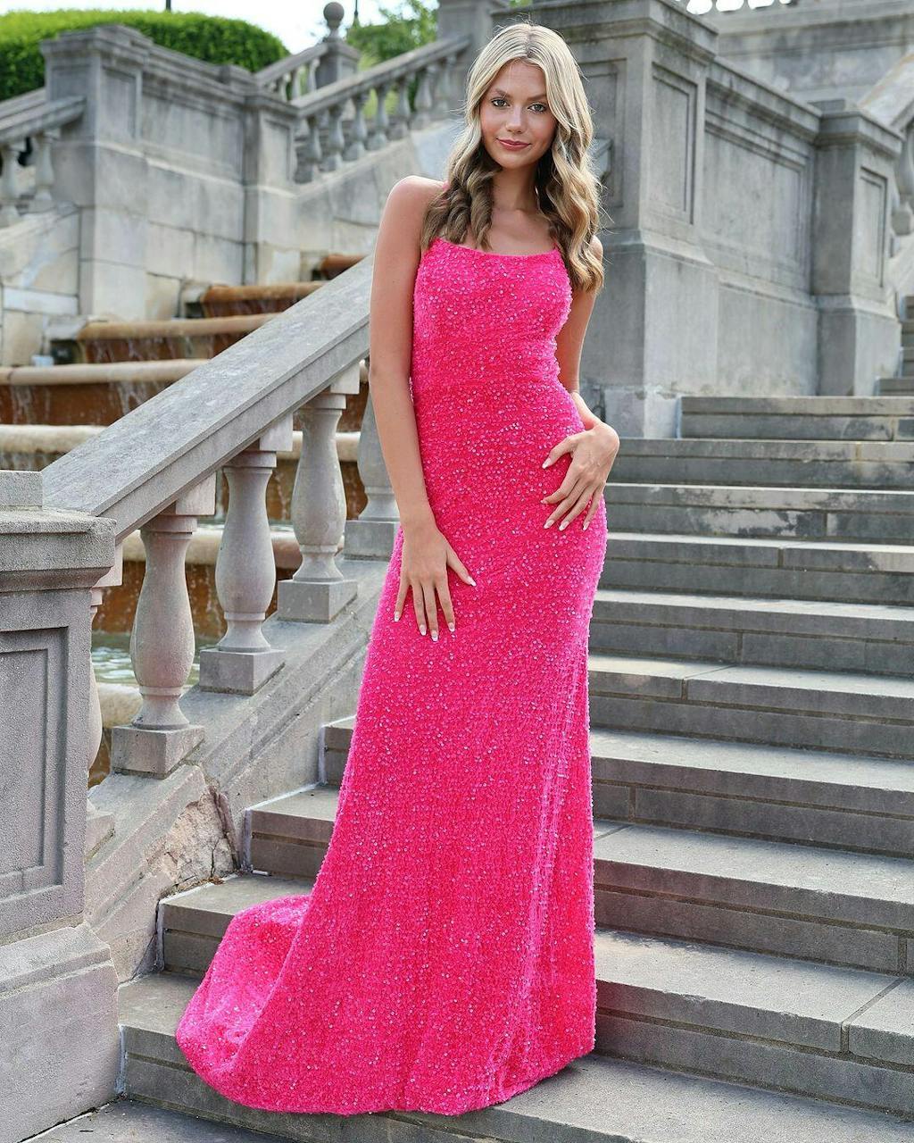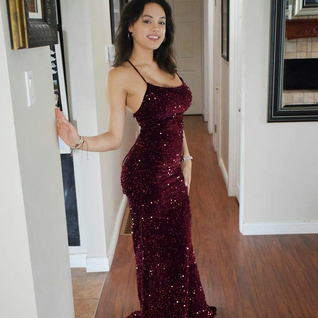 Cataleya Sexy Spaghetti Straps Corset Back Trumpet Sequins Formal Dresses