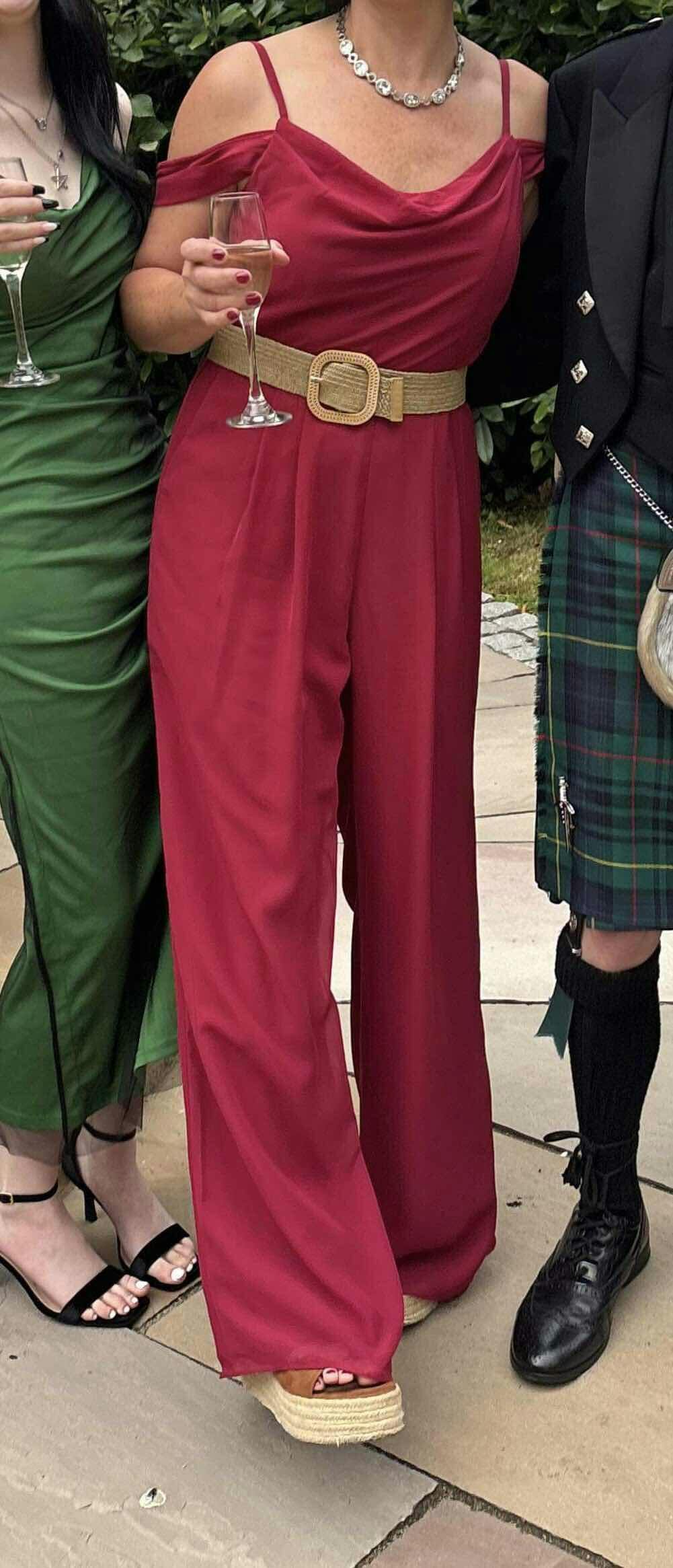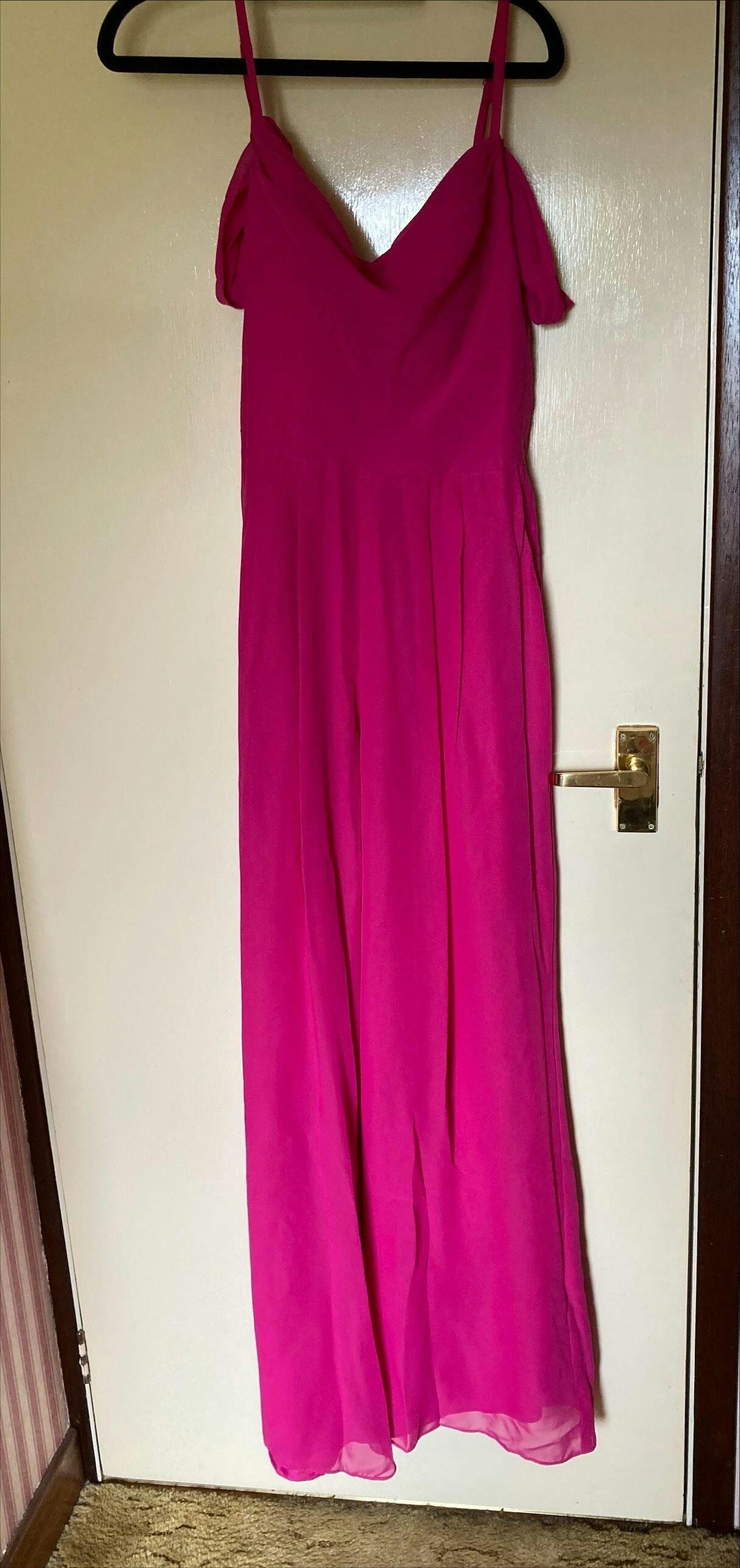 Chic Cold Shoulder Cowl Chiffon Jumpsuit For Bridesmaids With Pockets