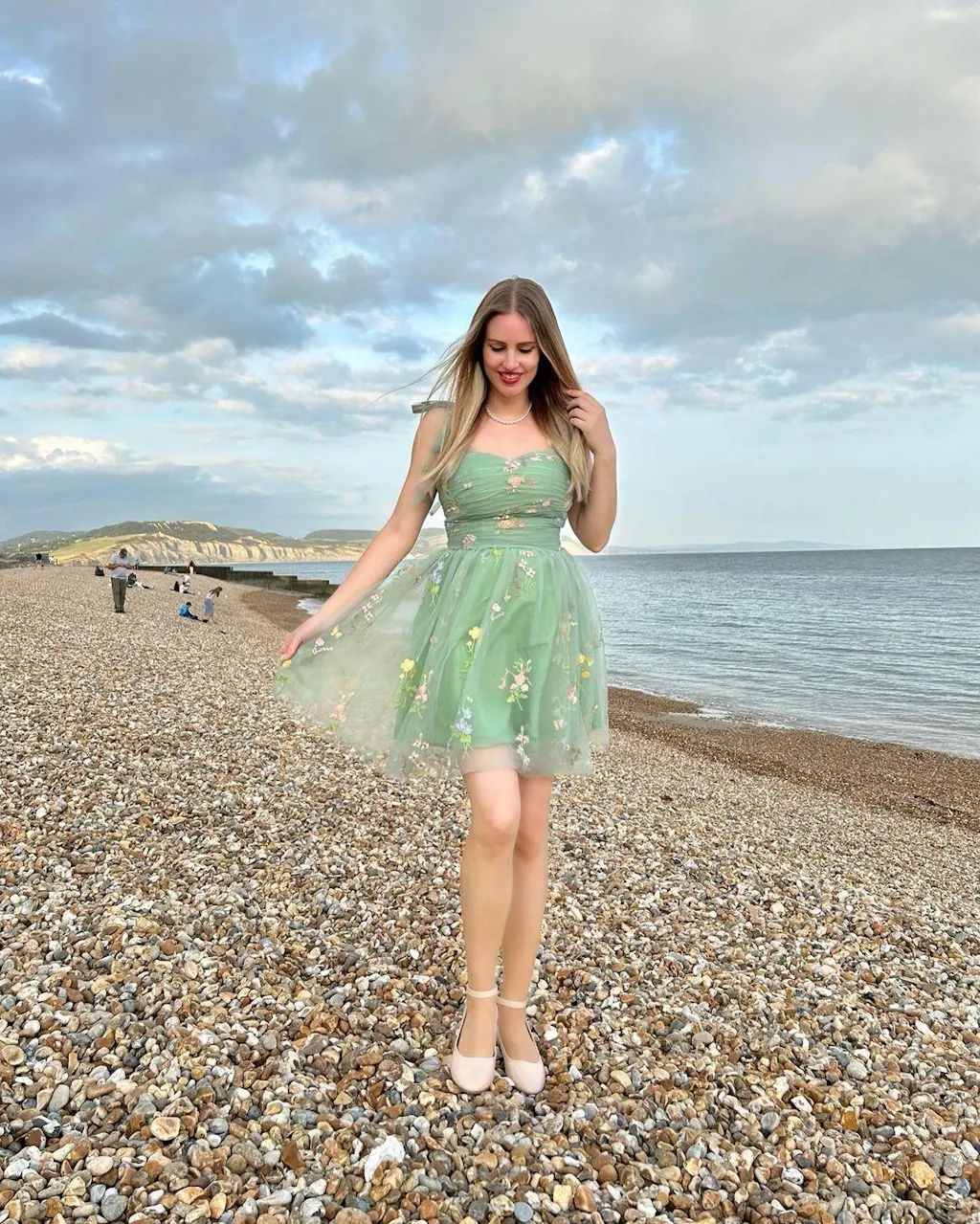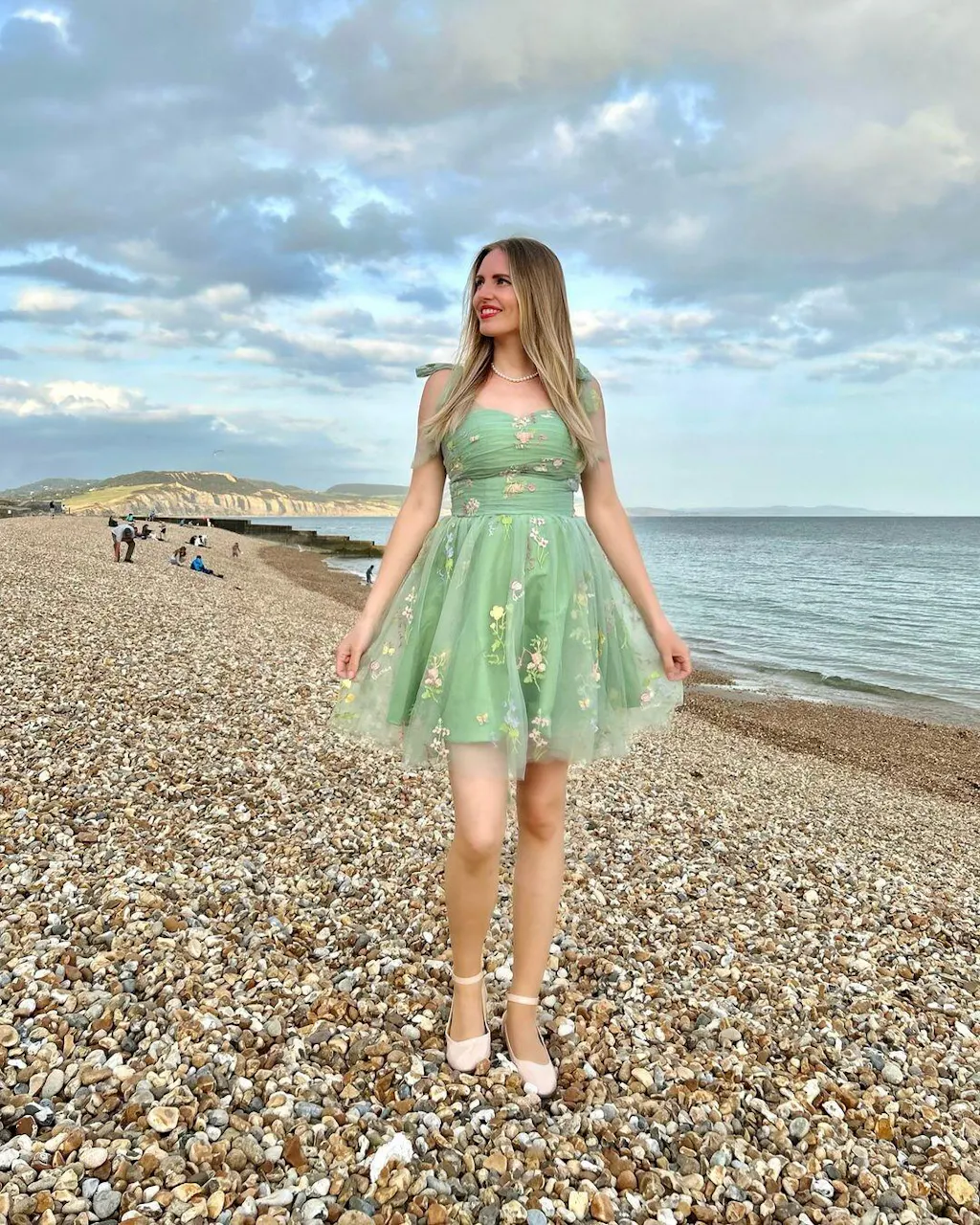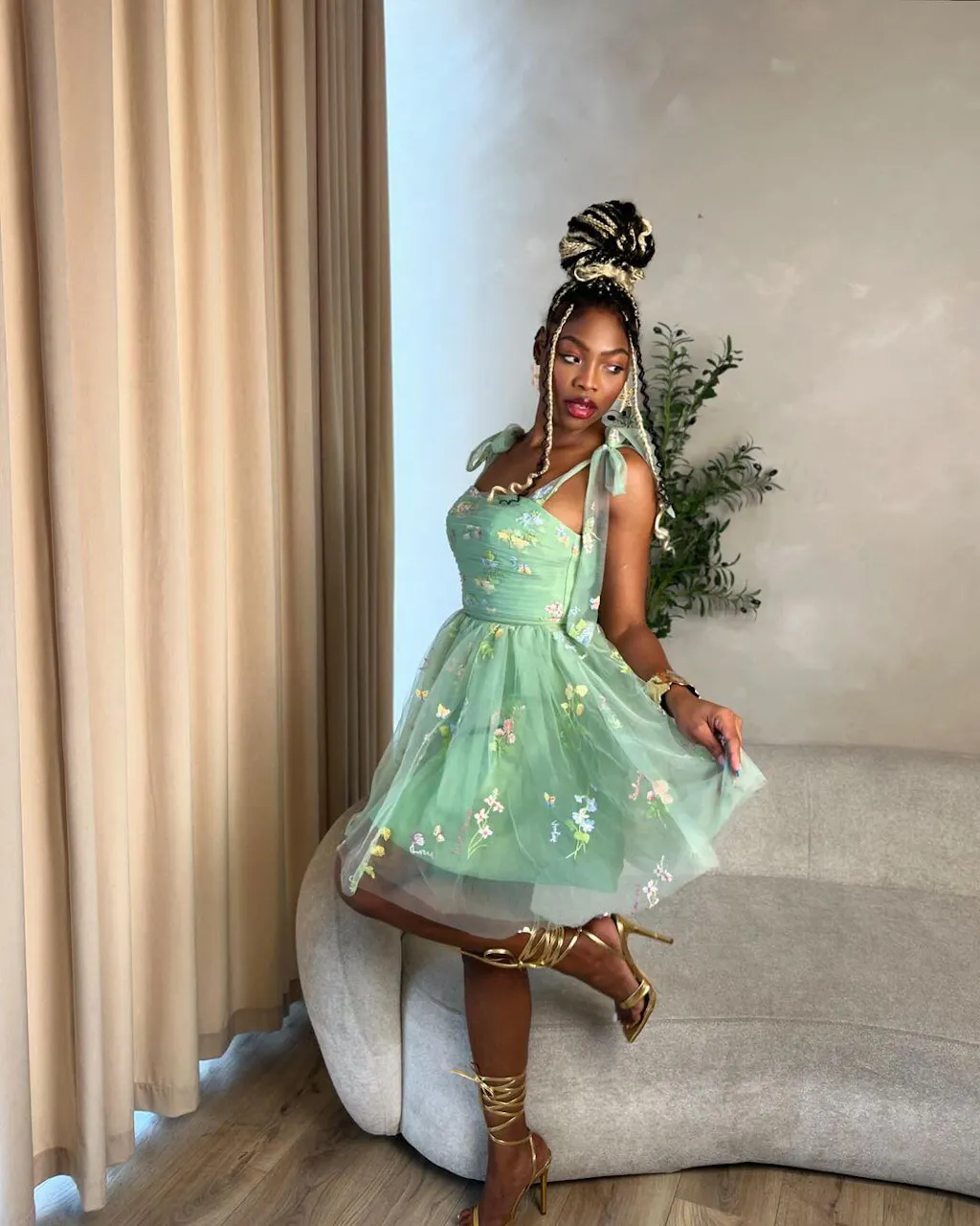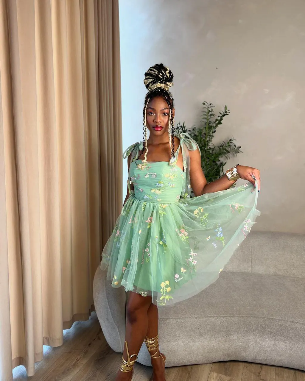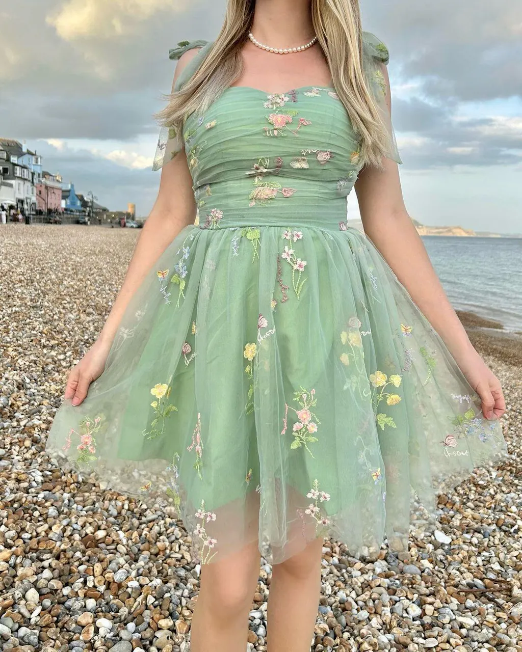 Hadley Trendy Flower Embroidery Short Tulle Homecoming Dresses