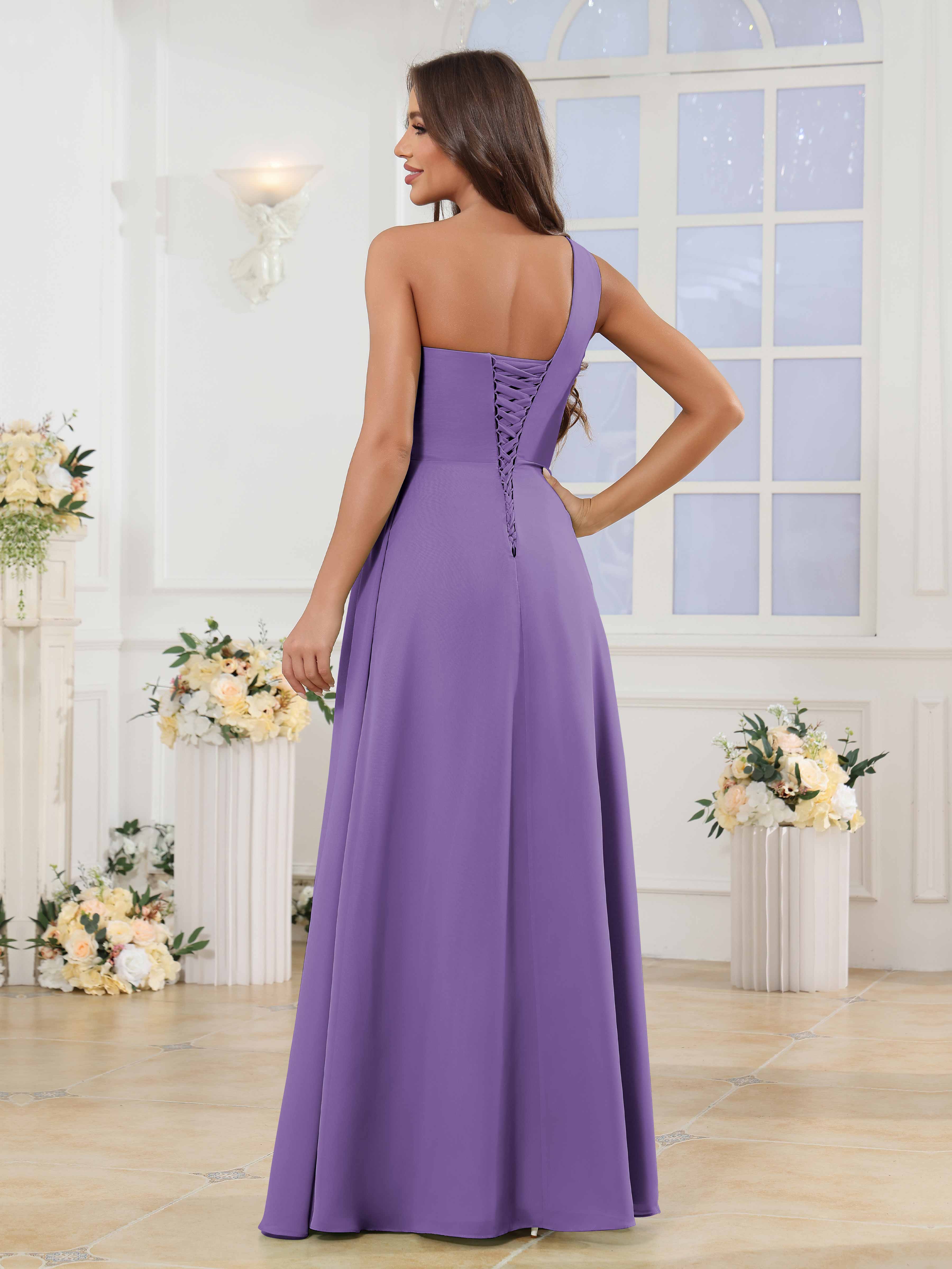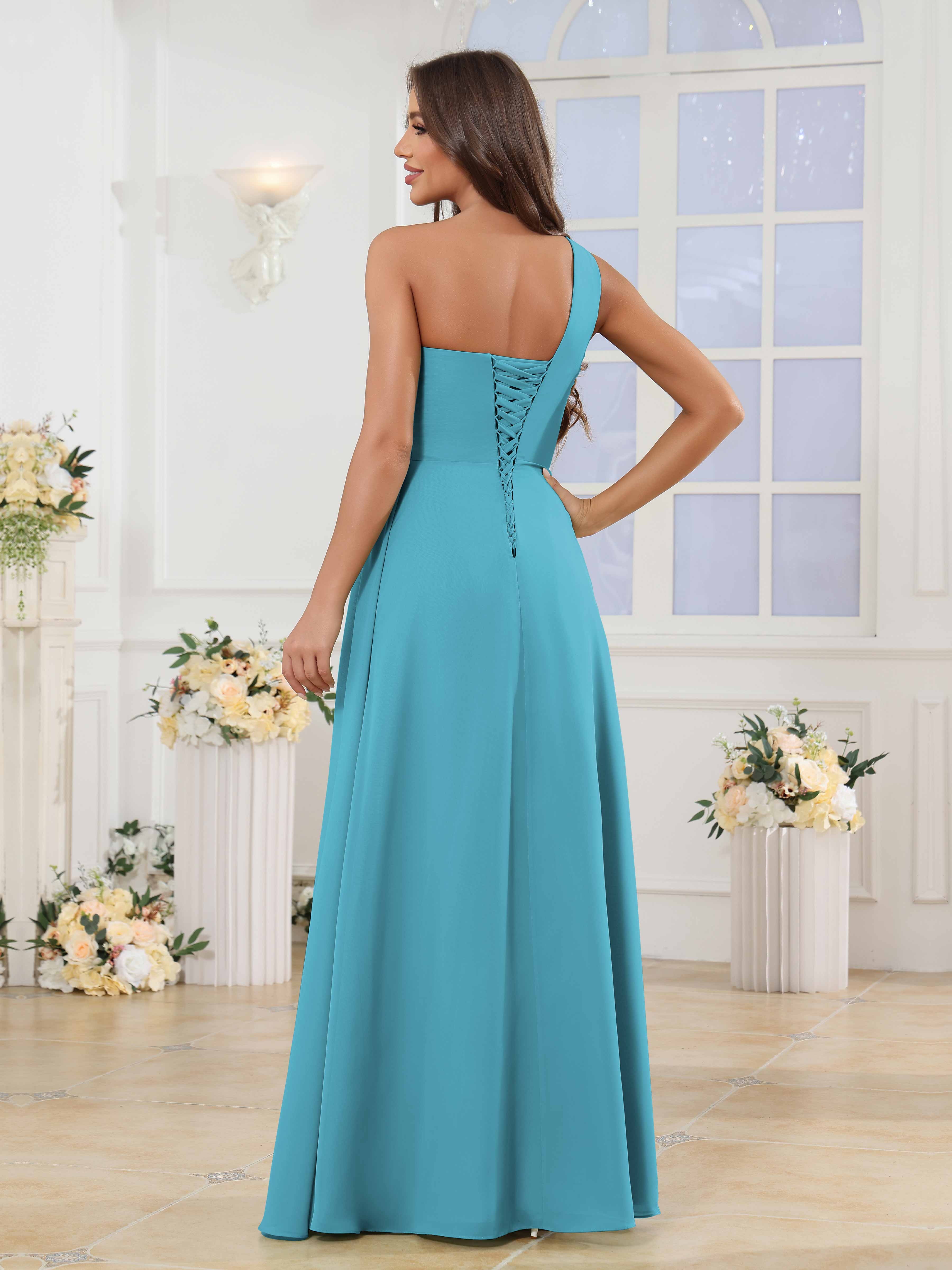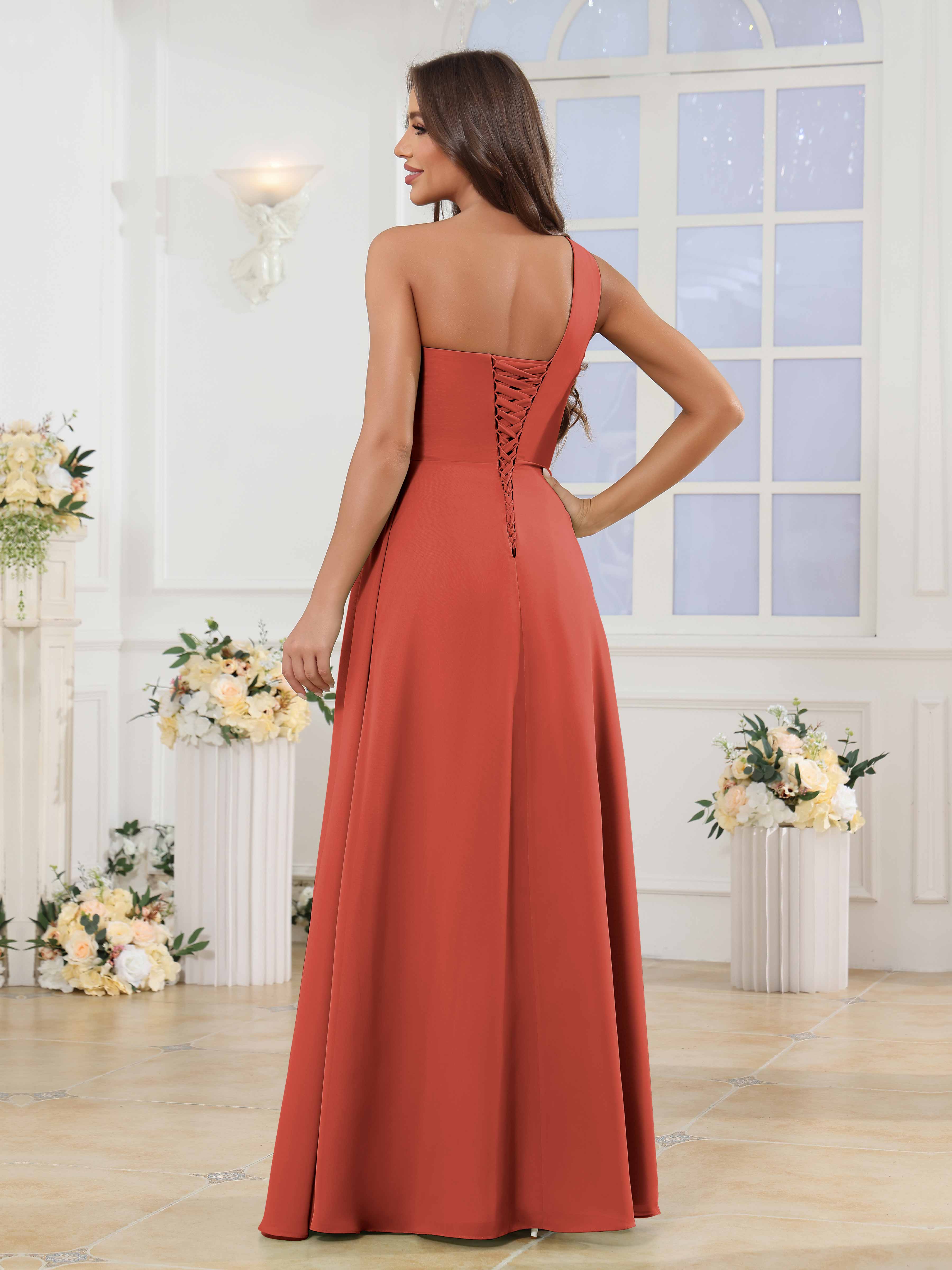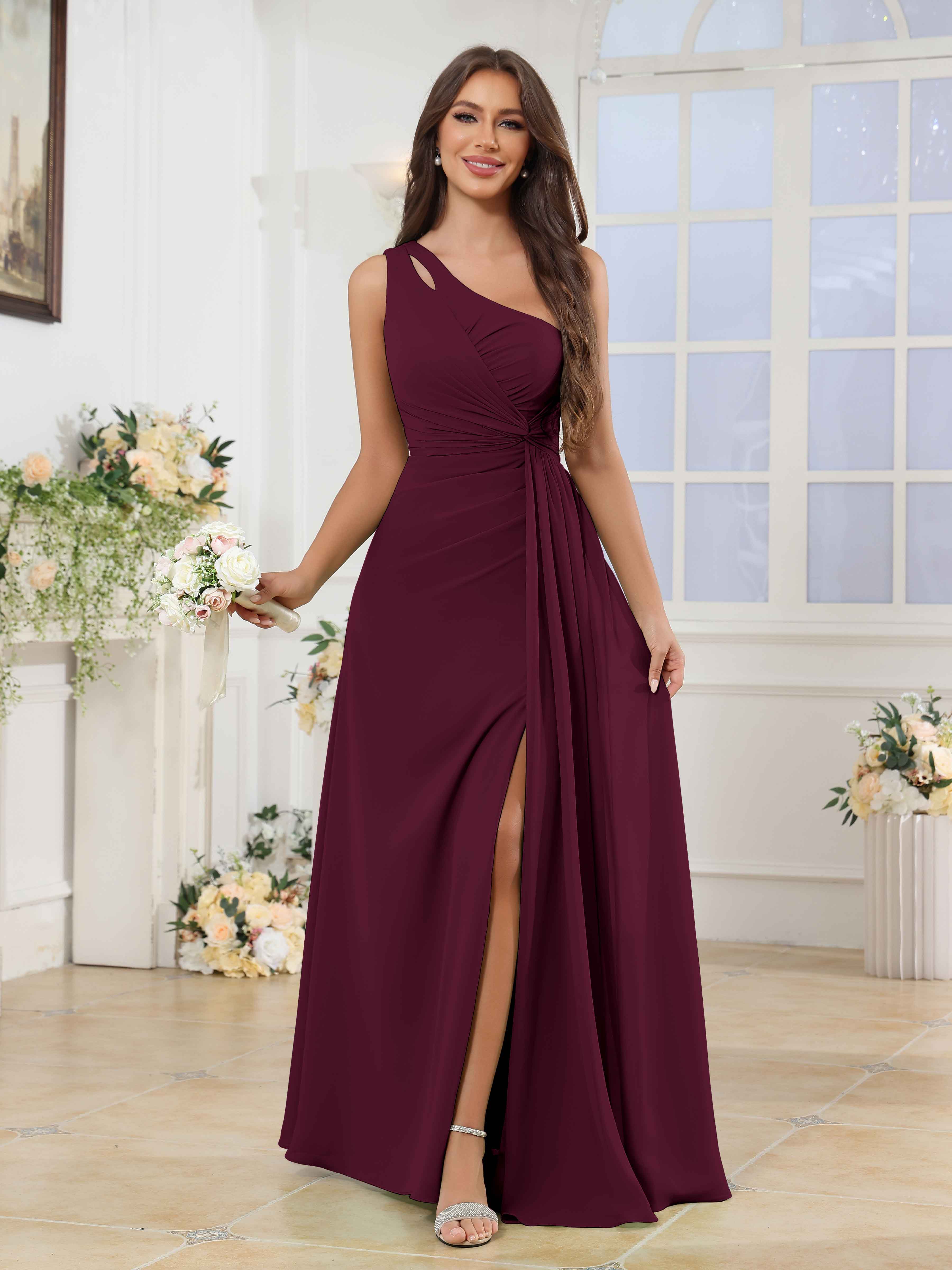 Halle Enchanting One Shoulder Ruched Slit Chiffon Bridesmaid Dresses