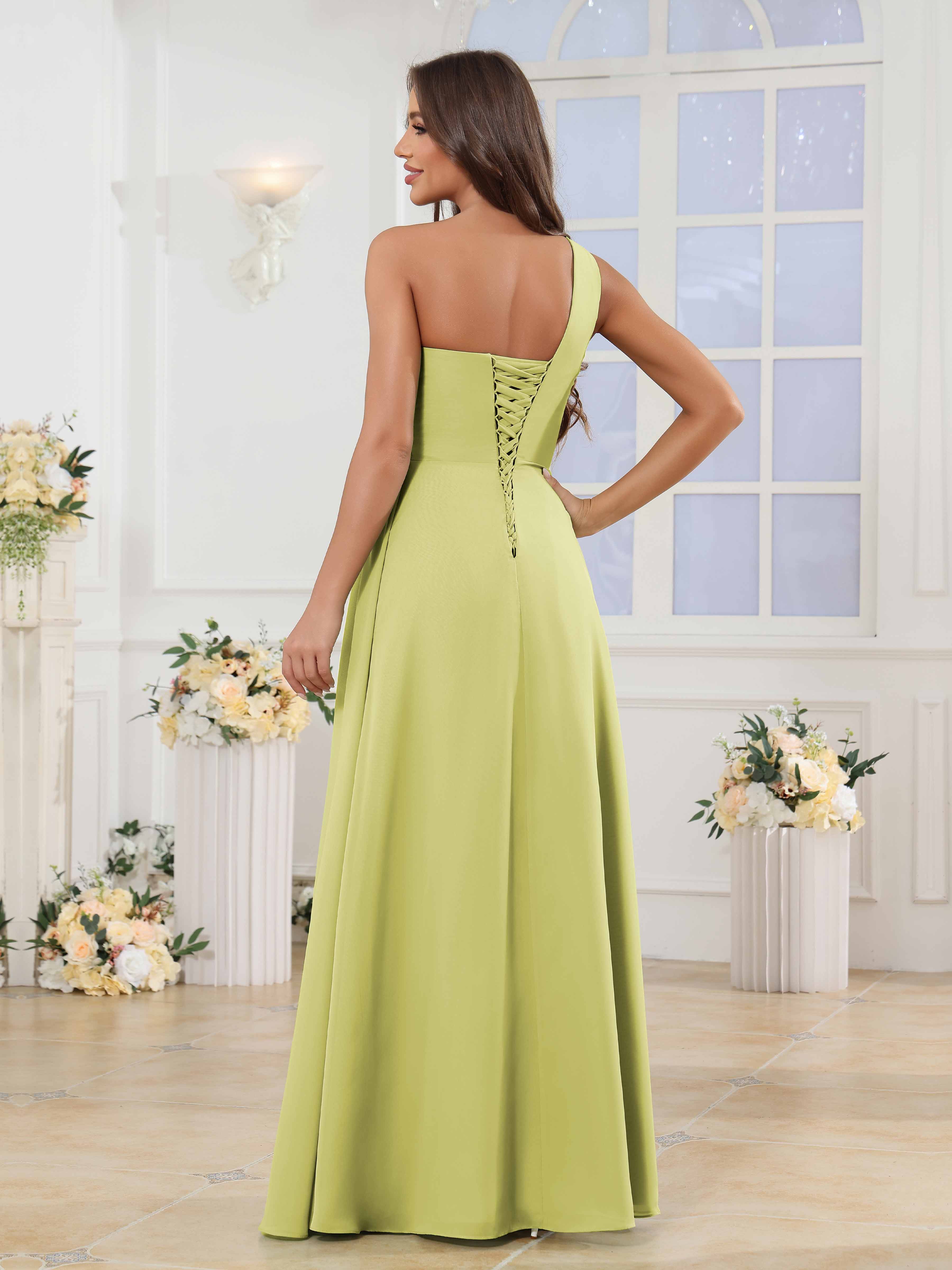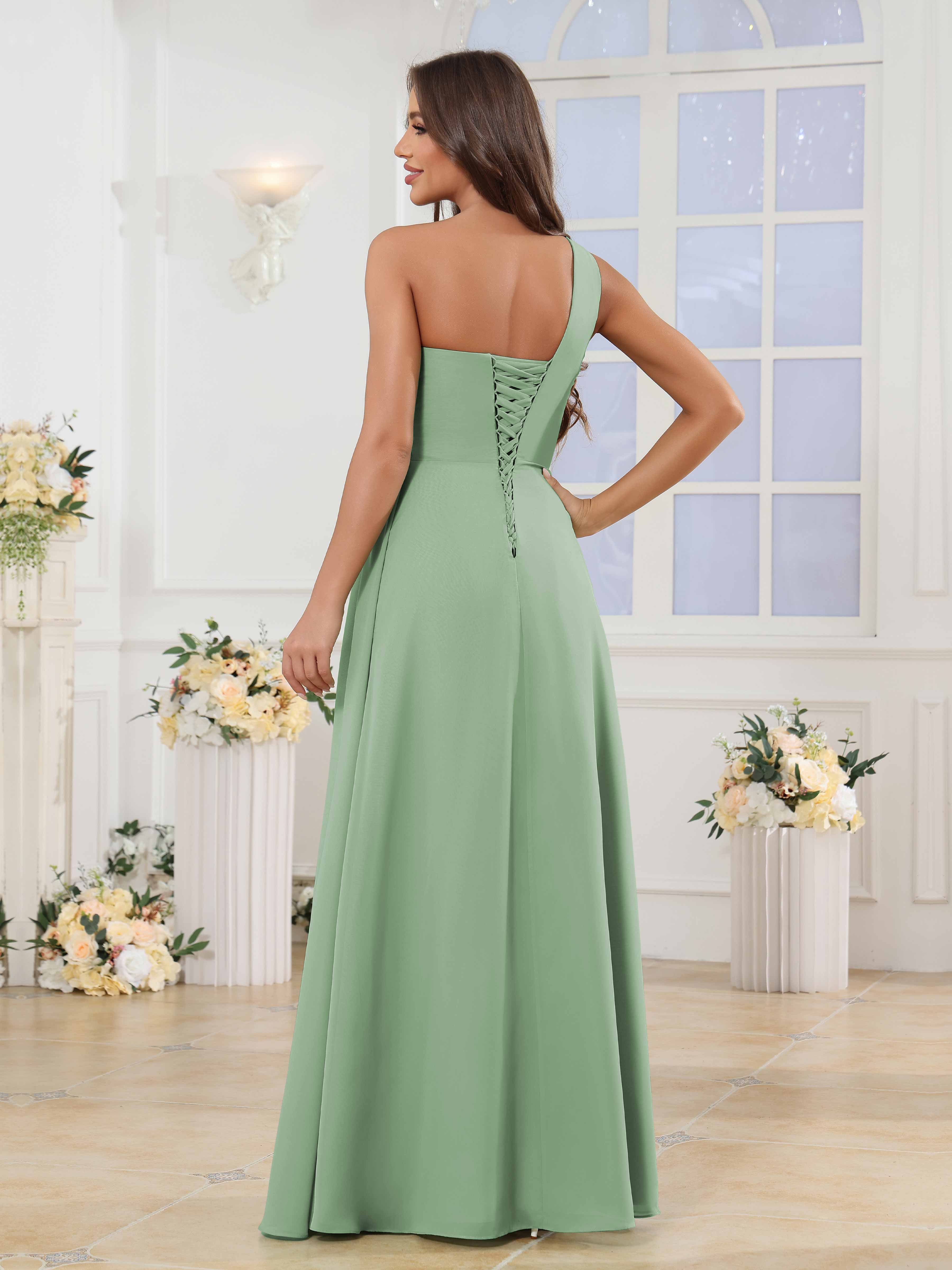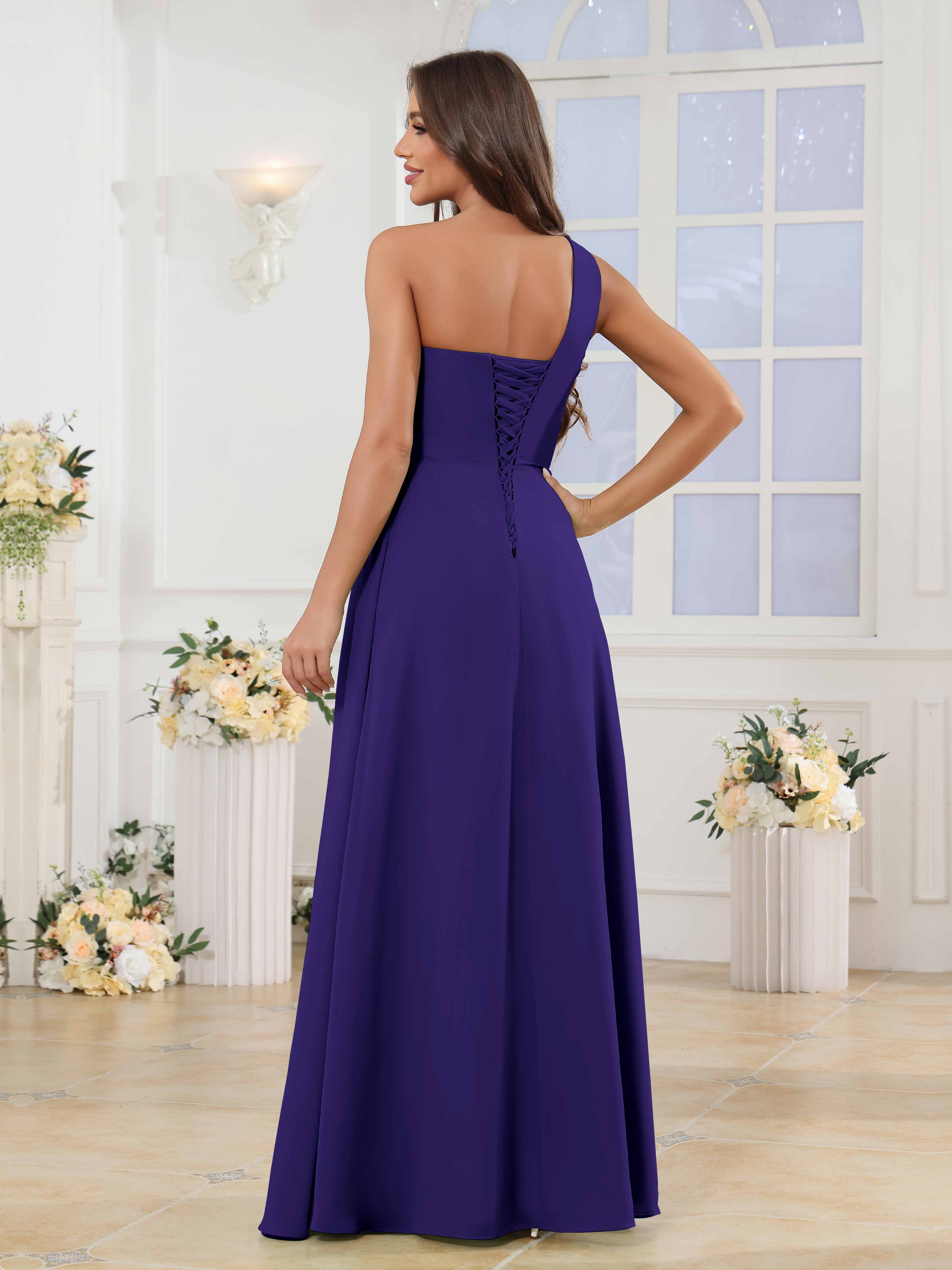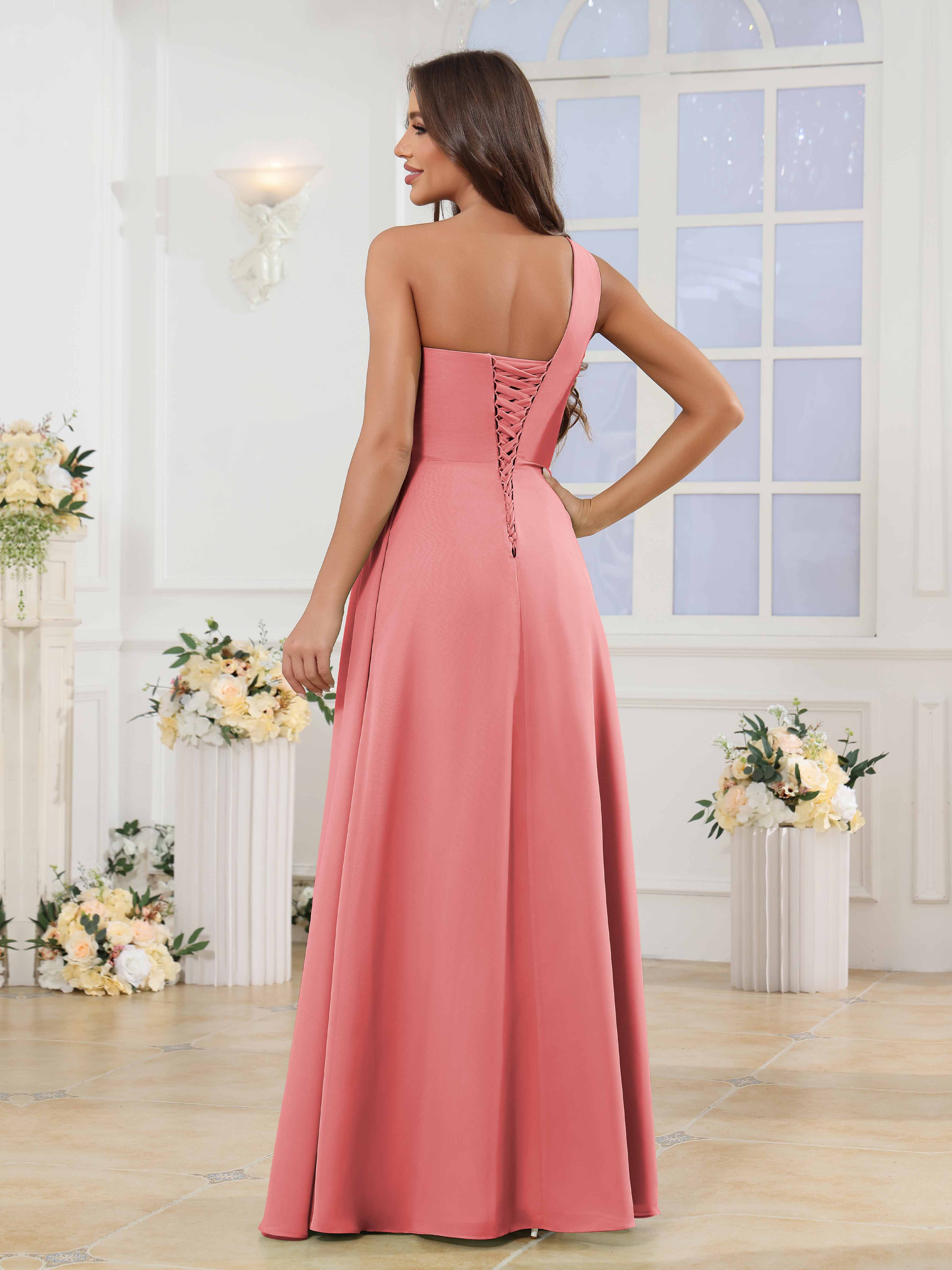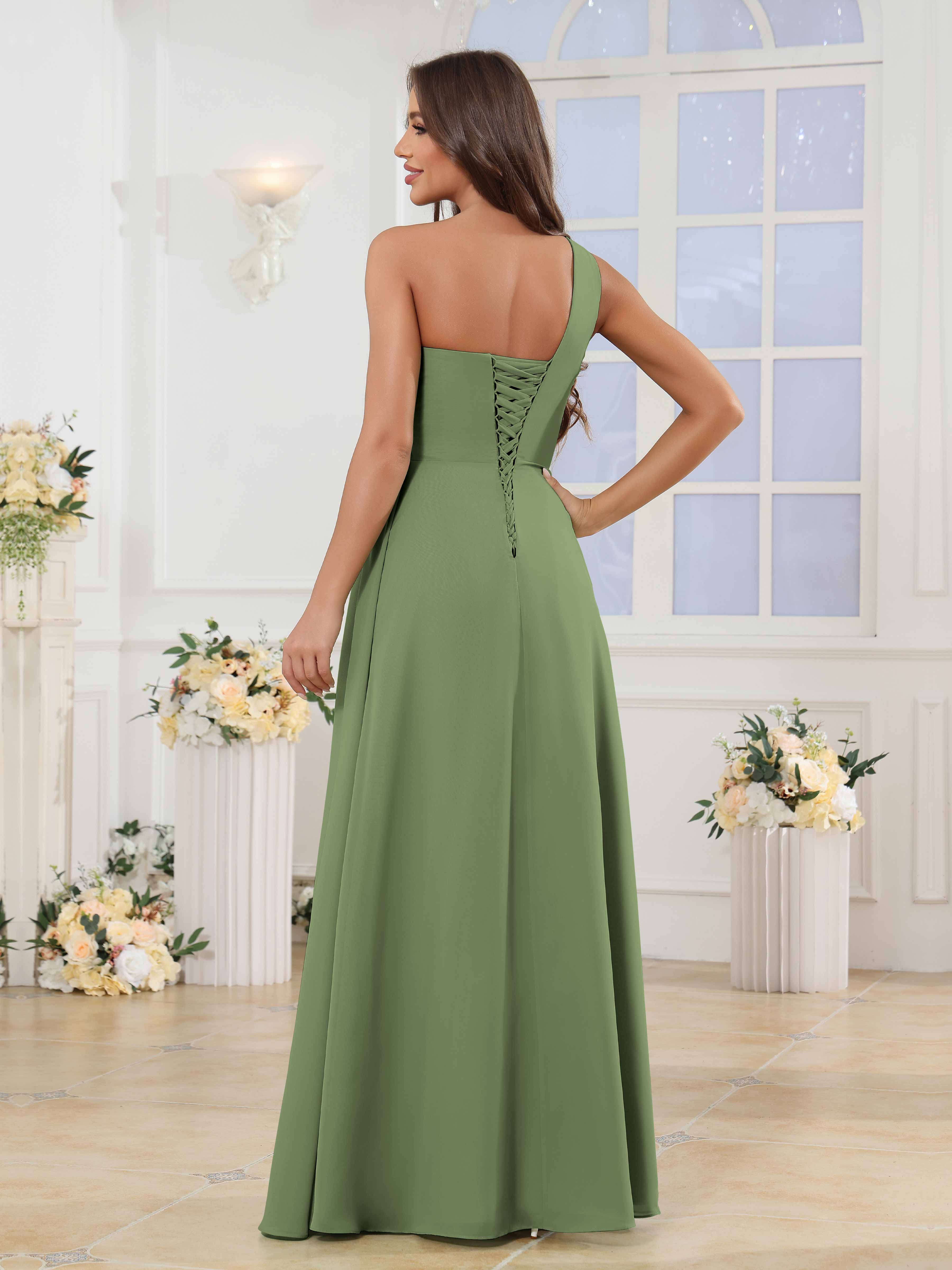 Halle Enchanting One Shoulder Ruched Slit Chiffon Bridesmaid Dresses