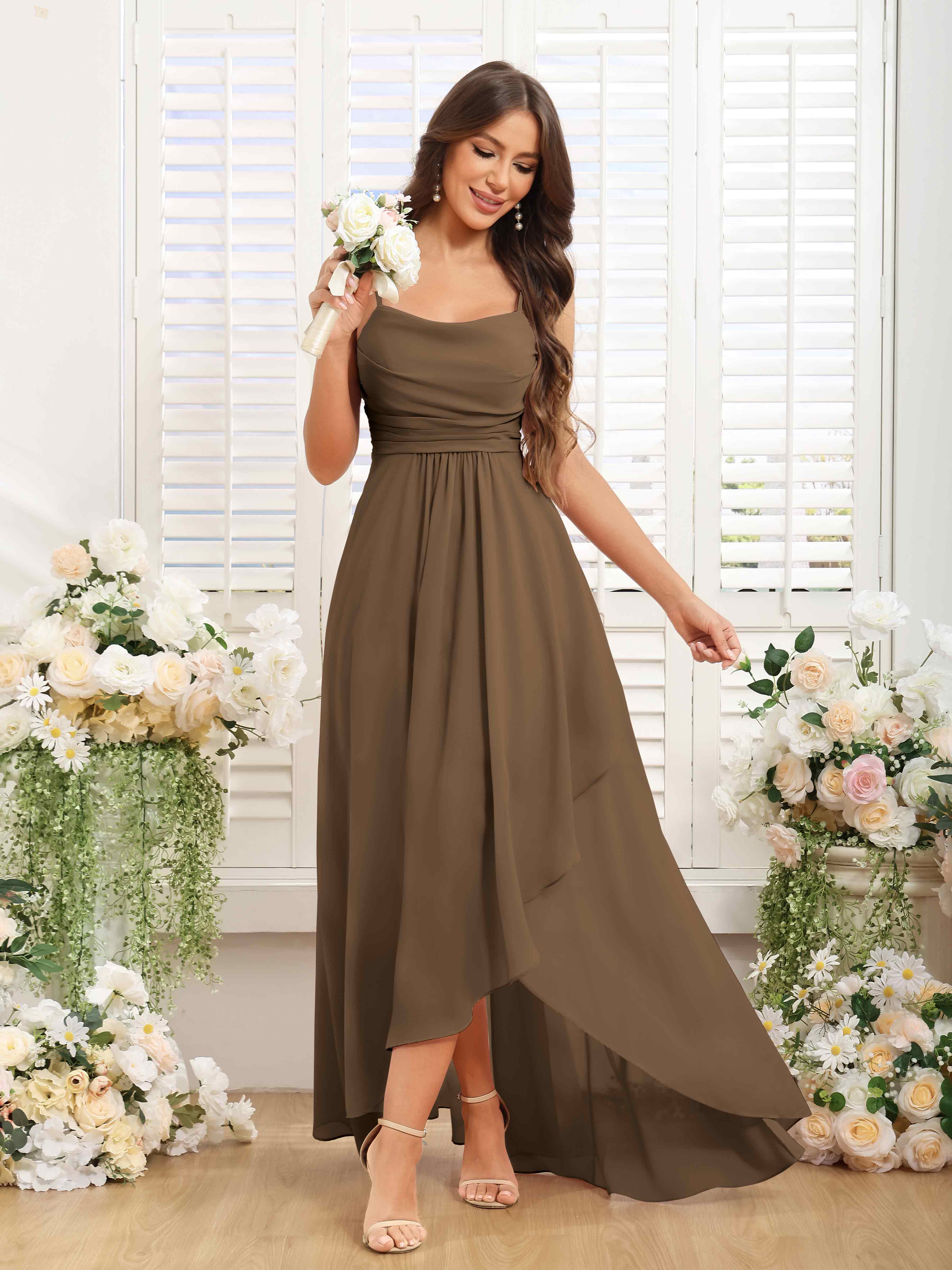 Kismet Affordable Spaghetti Straps Ruched Long Chiffon Bridesmaid Dresses
