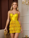 Leyla Gold Tiered Mini Party Dresses