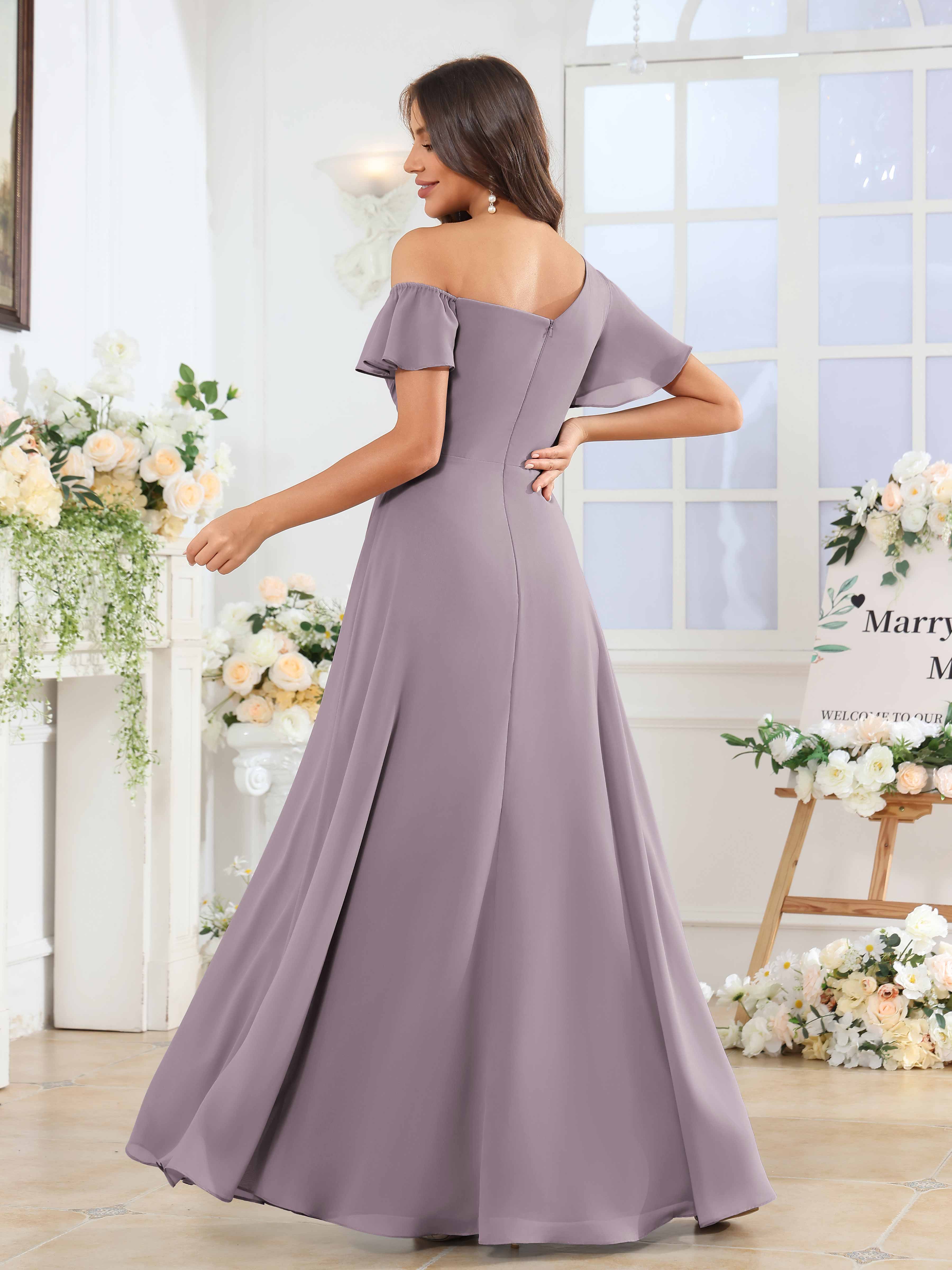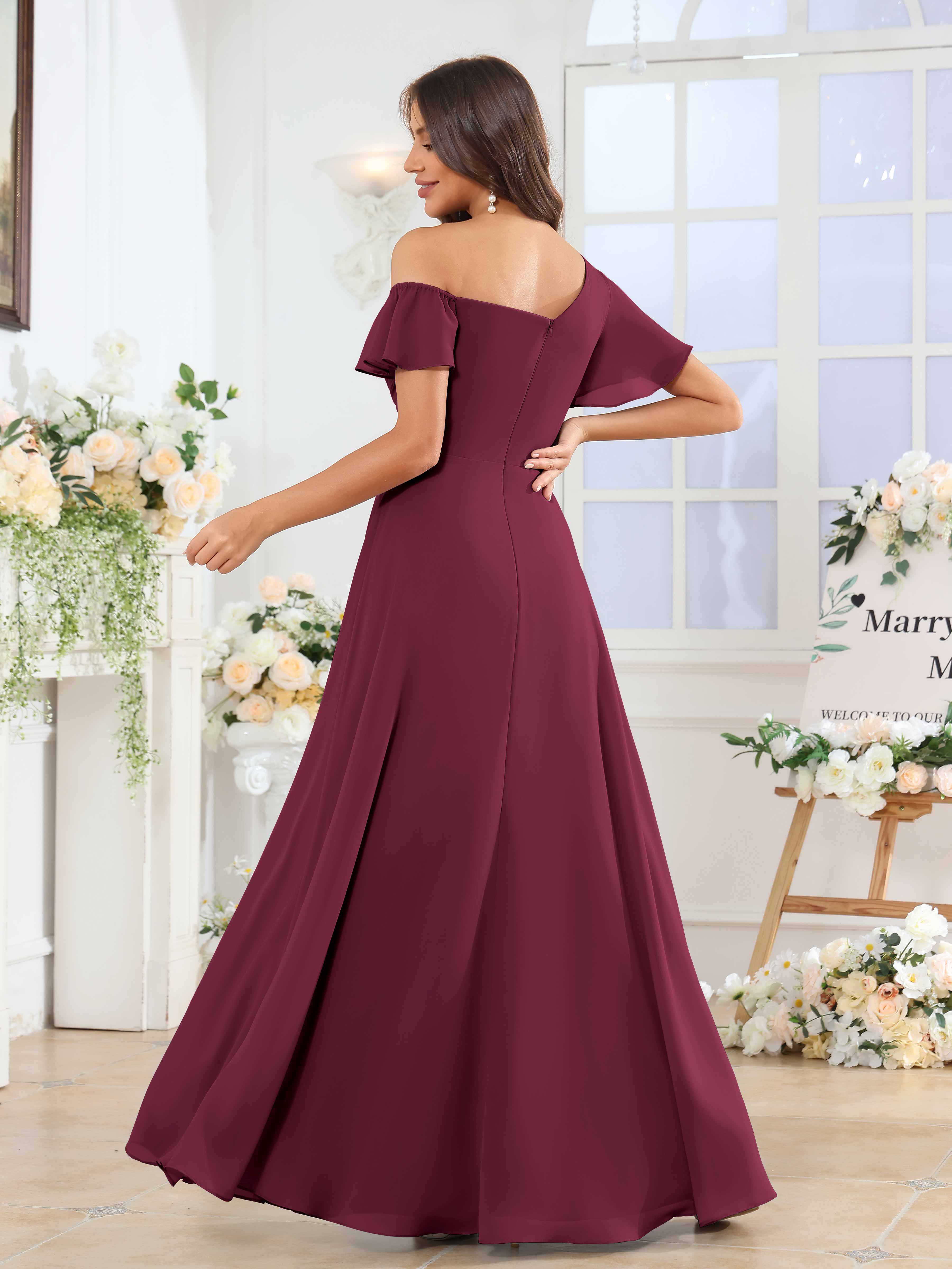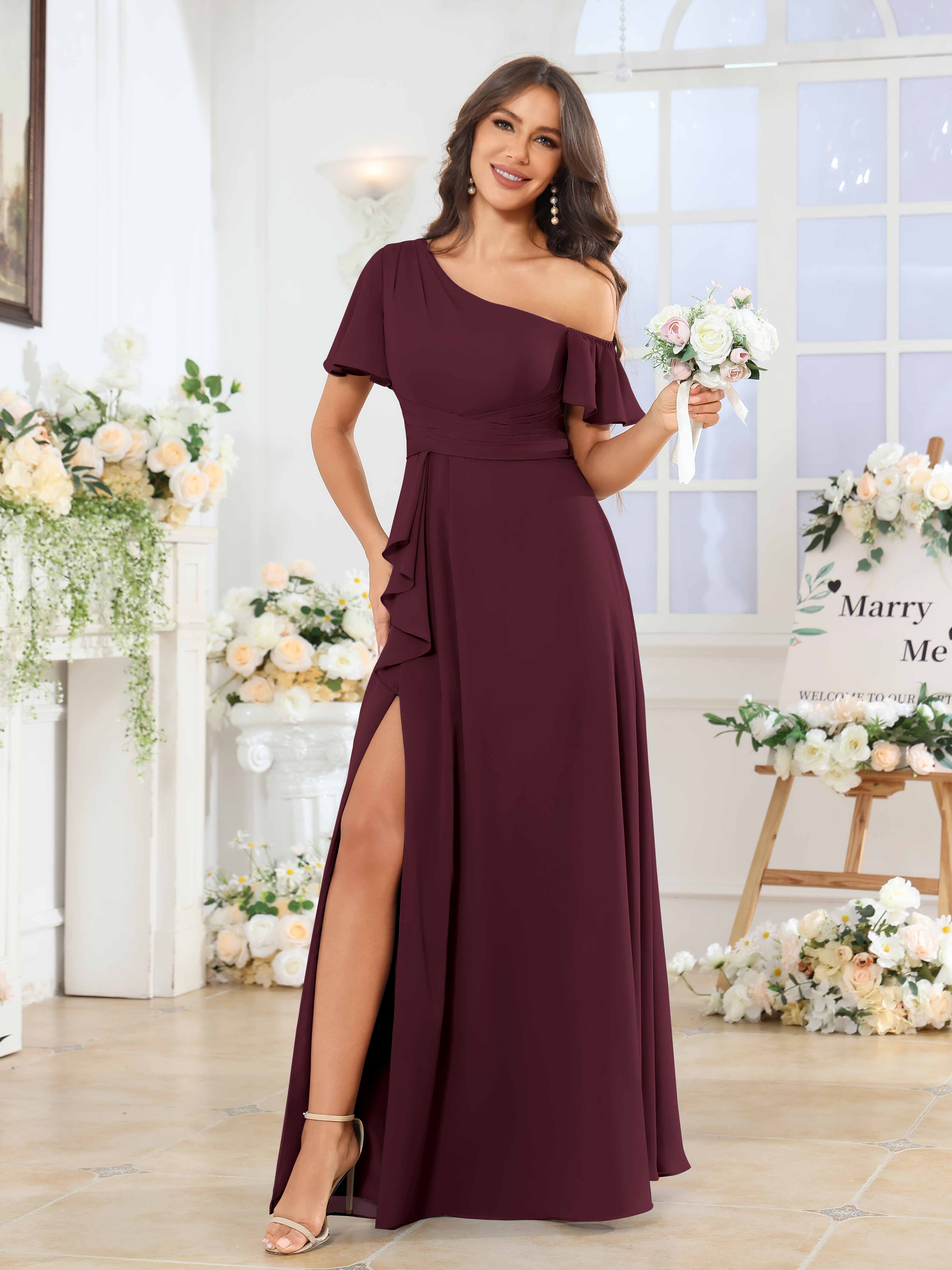 Lumen Stylish One Shoulder Ruffles Floor Length Chiffon Bridesmaid Dresses