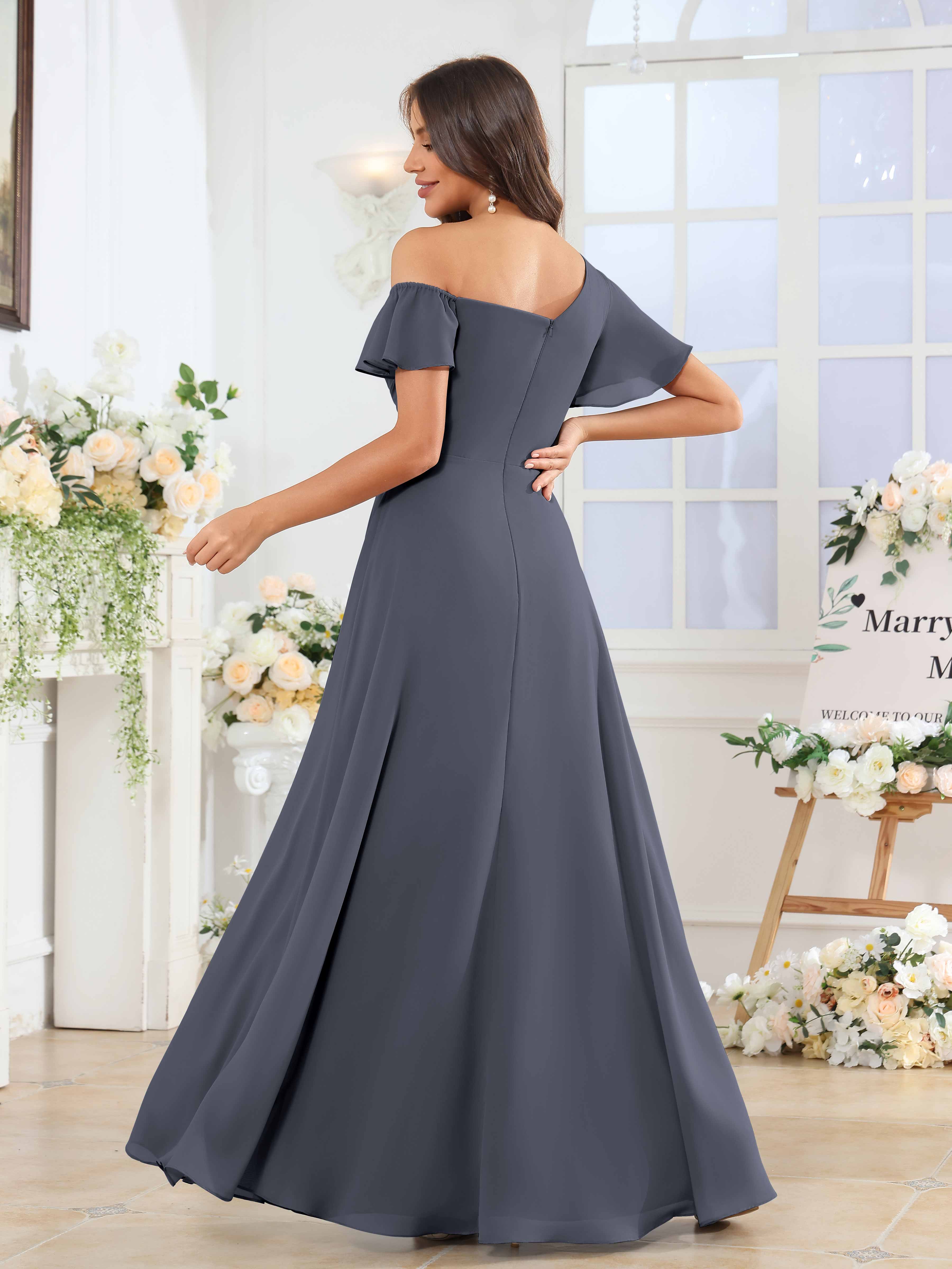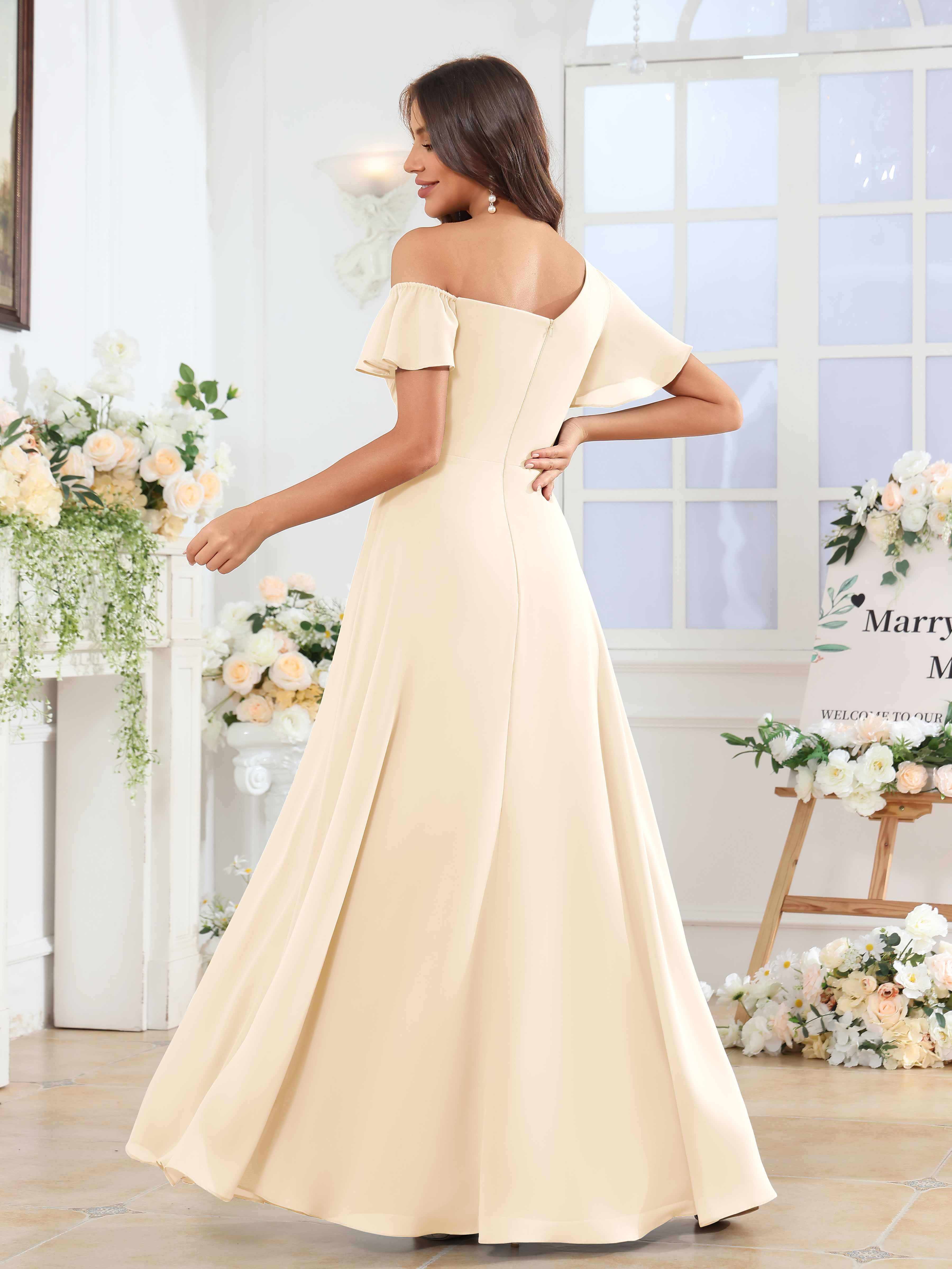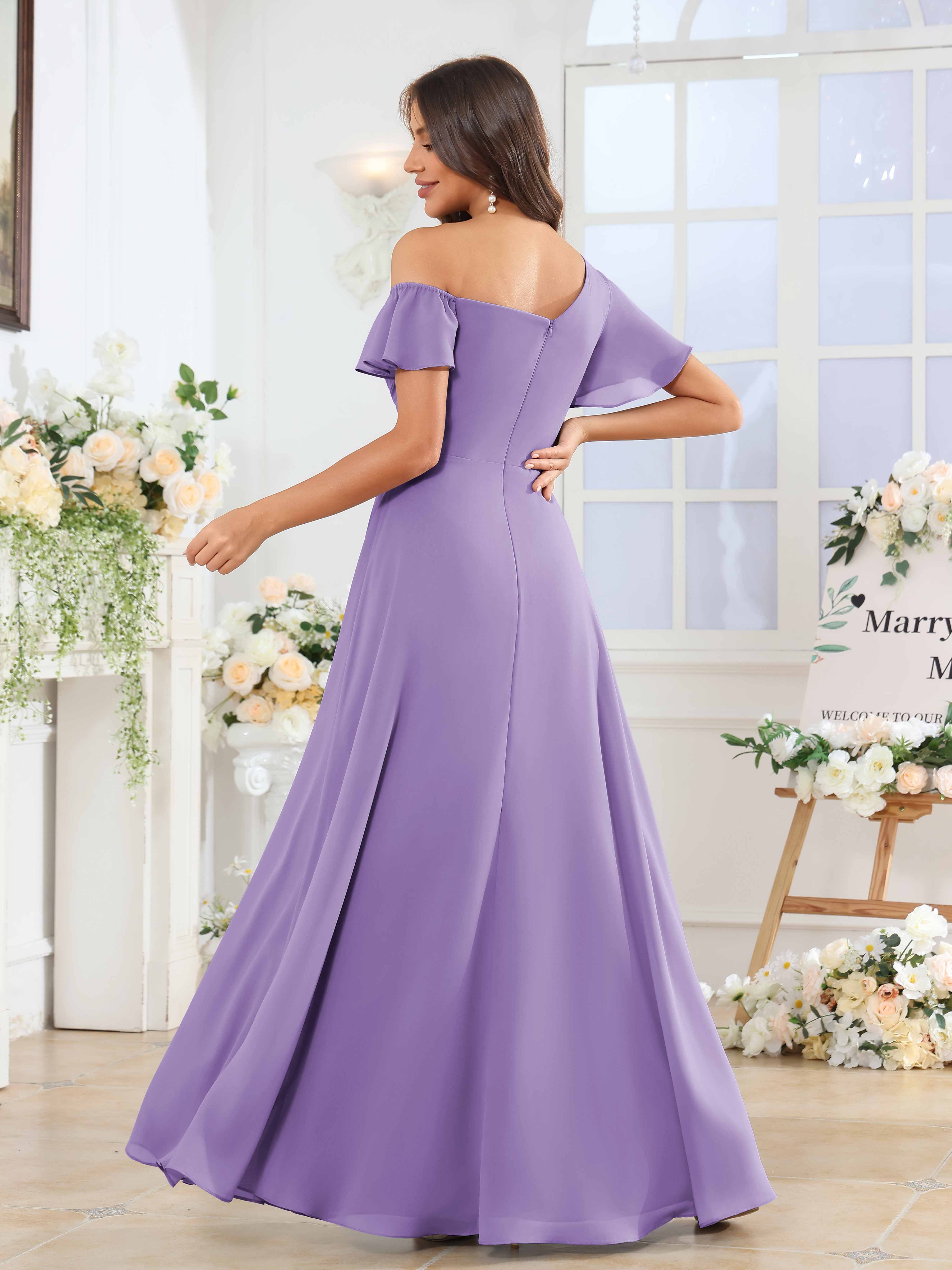 Lumen Stylish One Shoulder Ruffles Floor Length Chiffon Bridesmaid Dresses