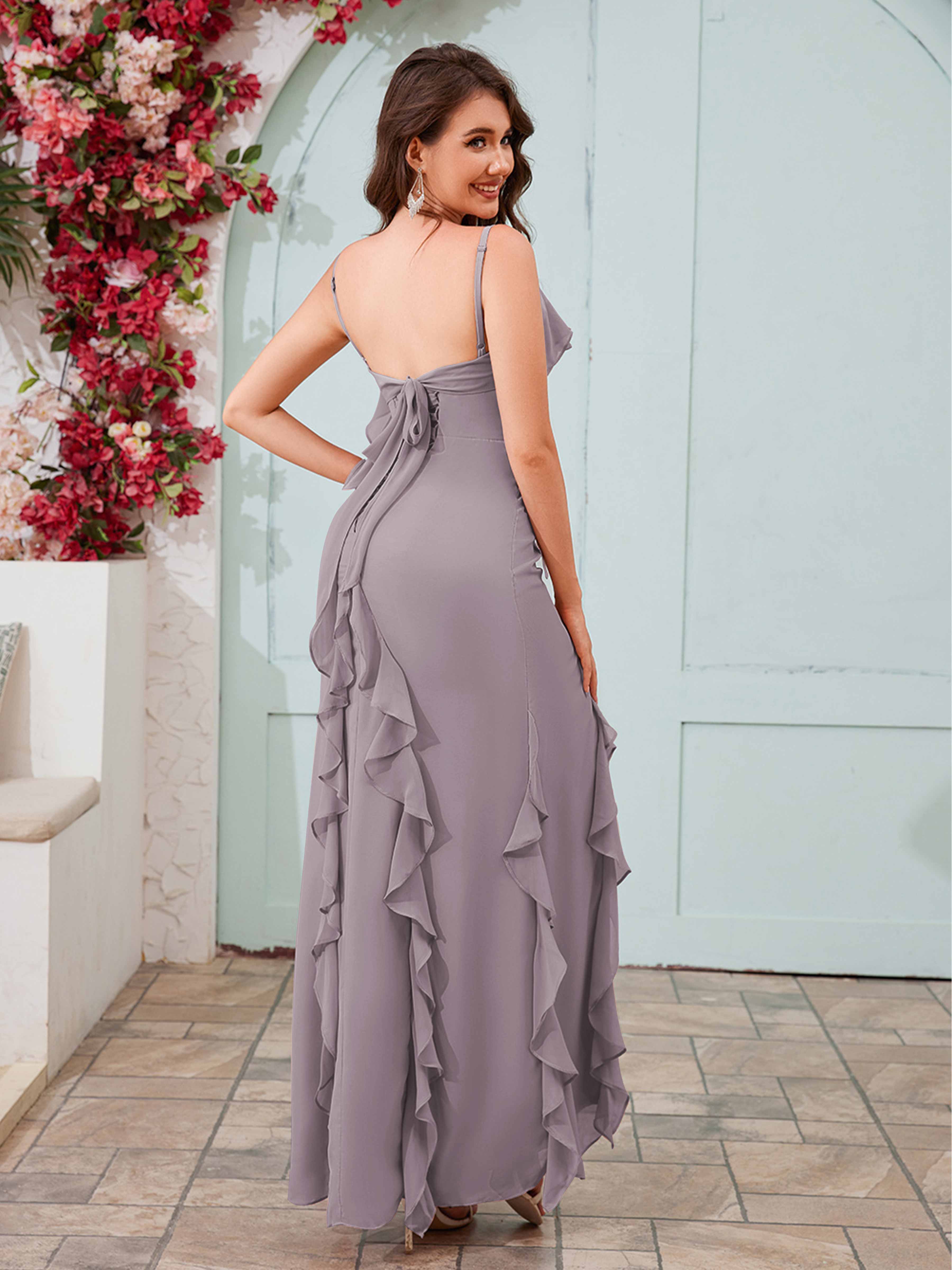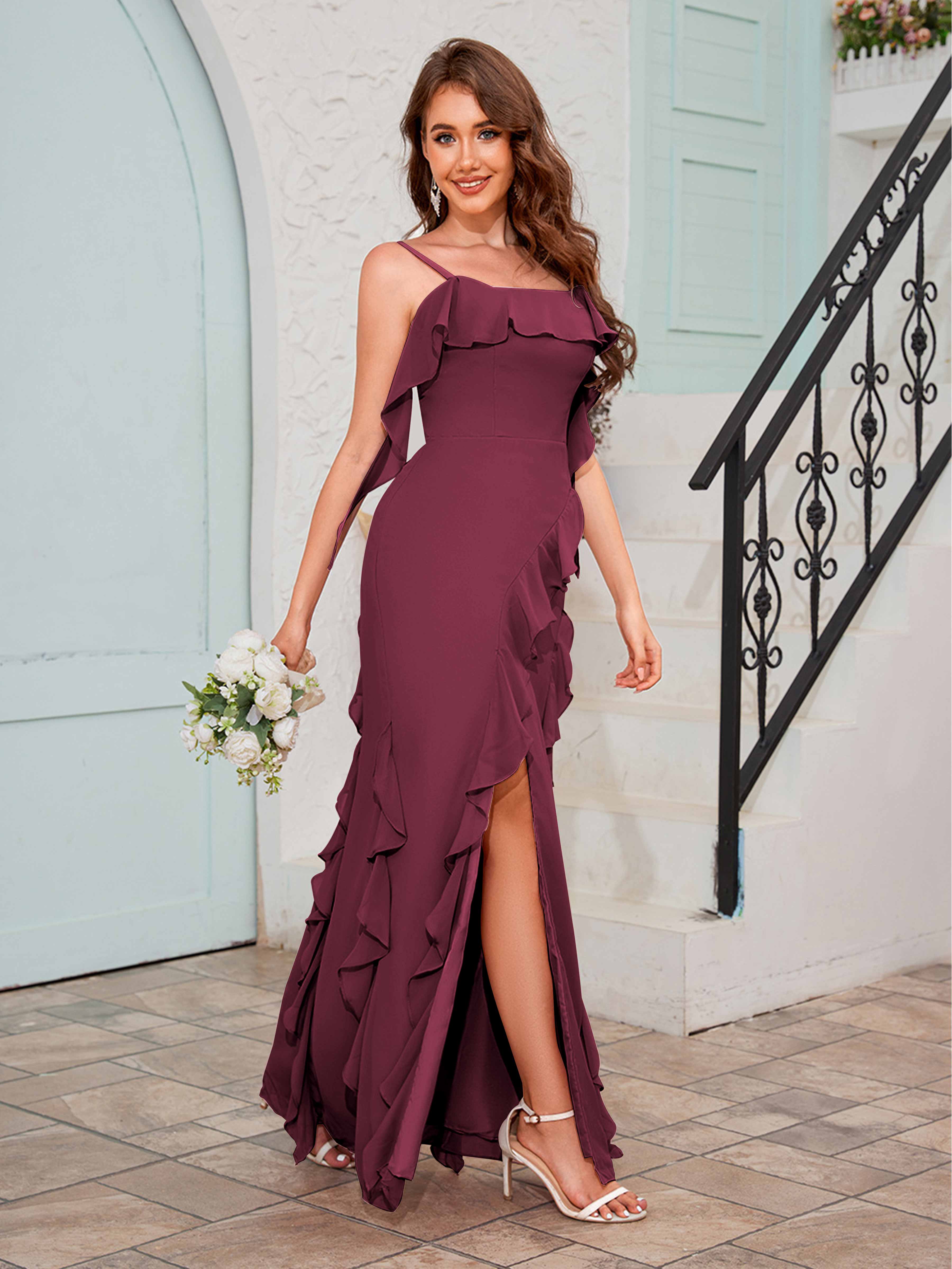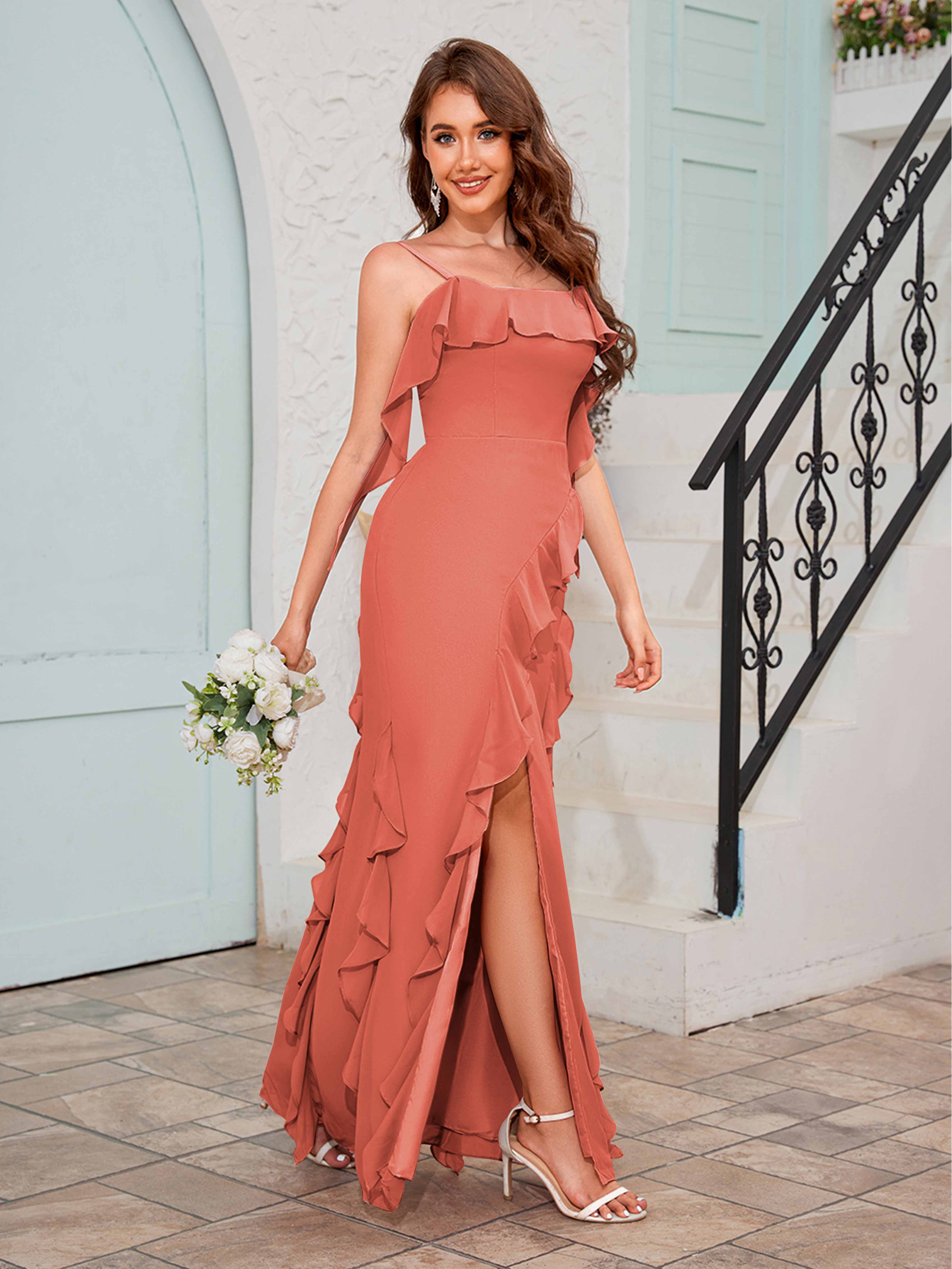 Maia Graceful Spaghetti Straps Ruffles Maxi Chiffon Bridesmaid Dresses