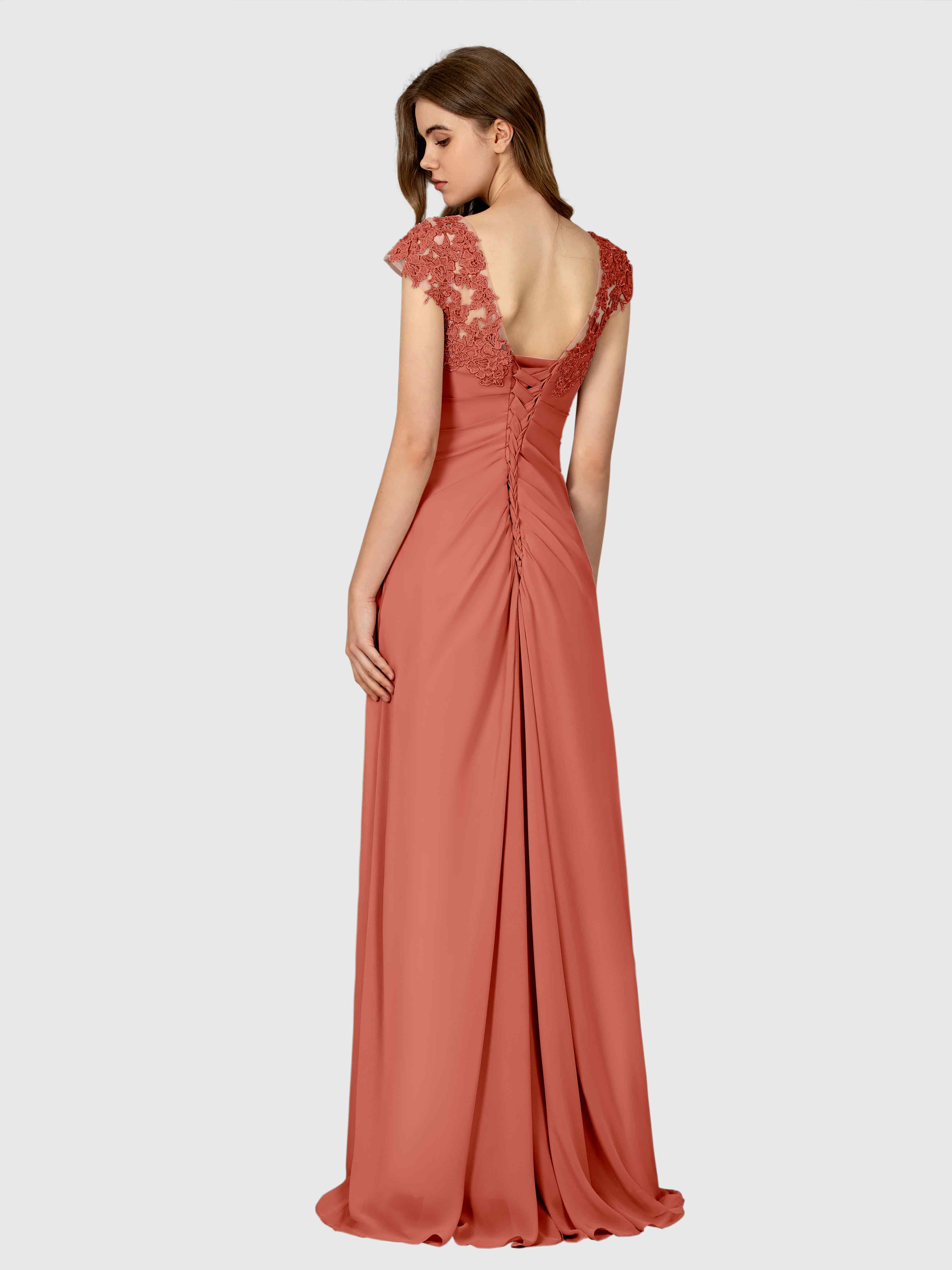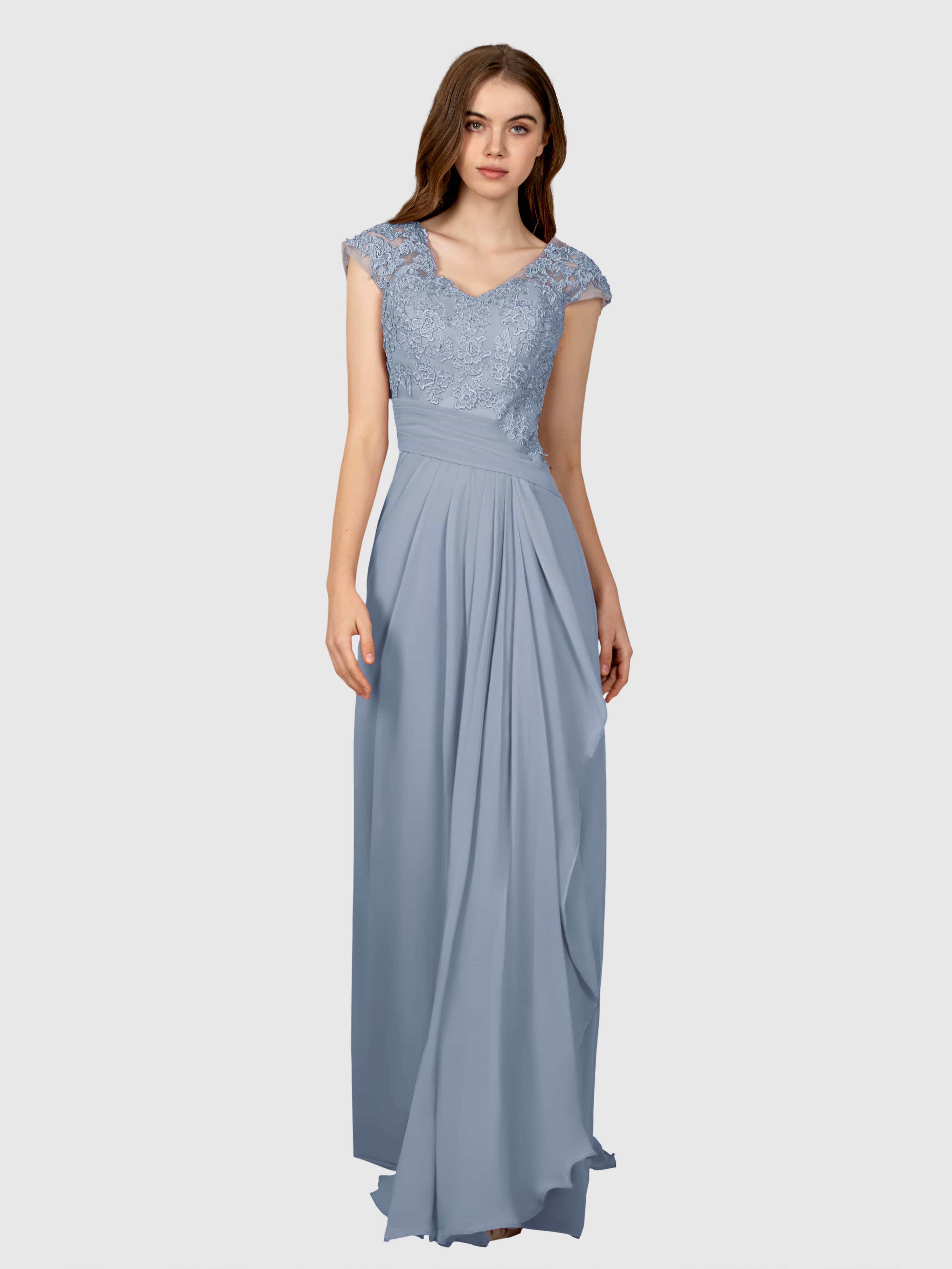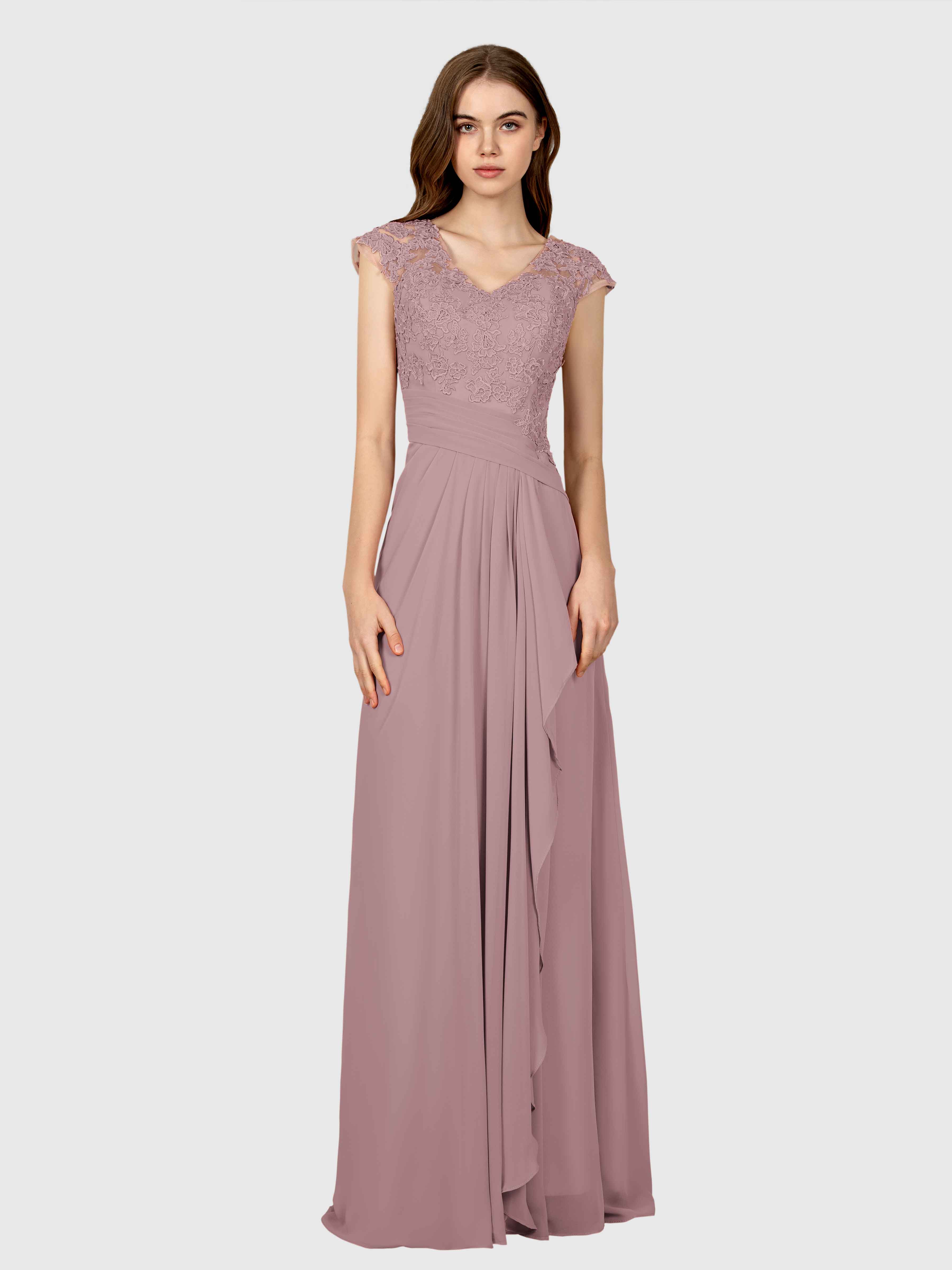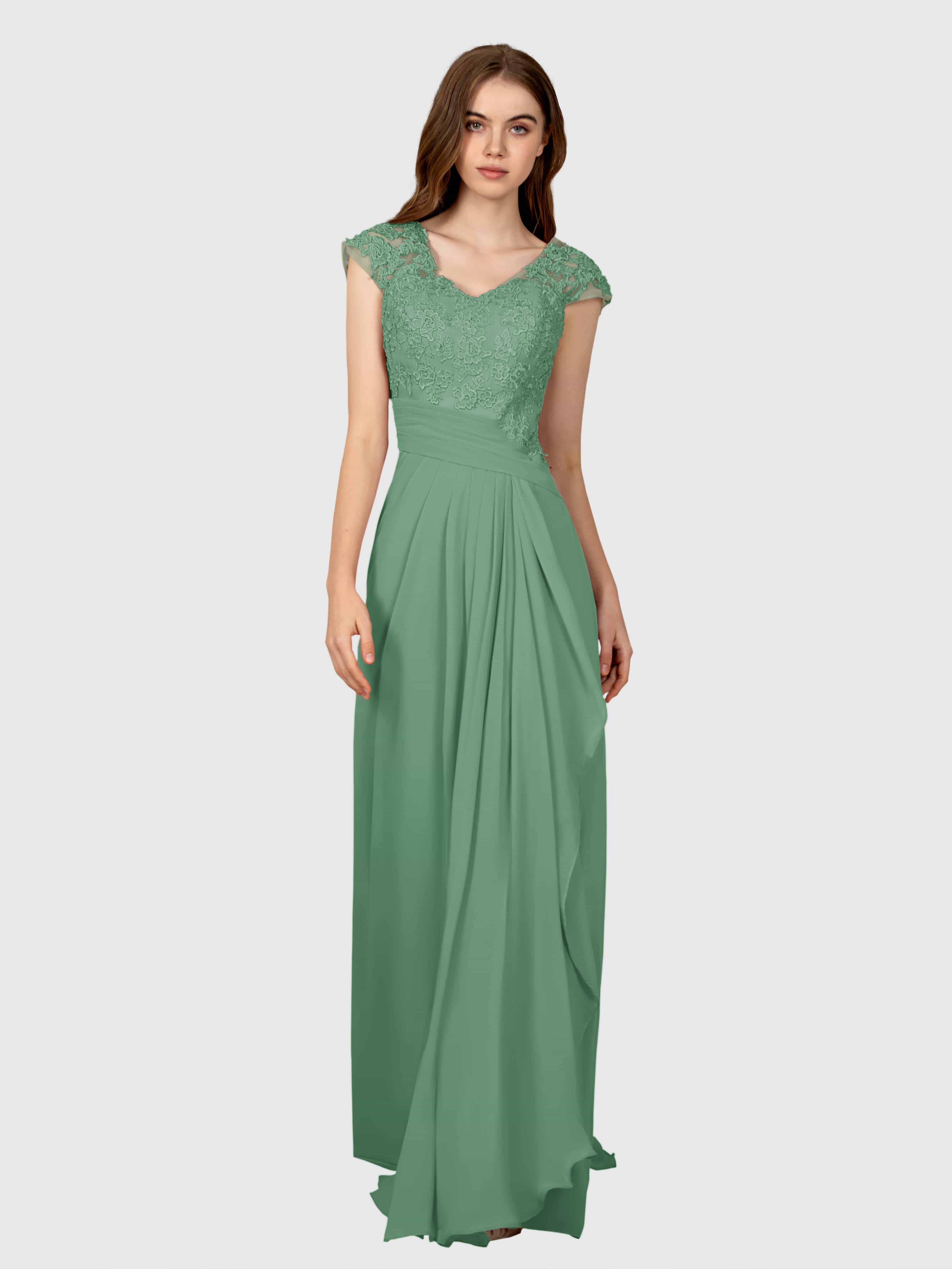 Mila V-Neck Ruched Short Sleeves Floor Length Bridesmaid Dresses