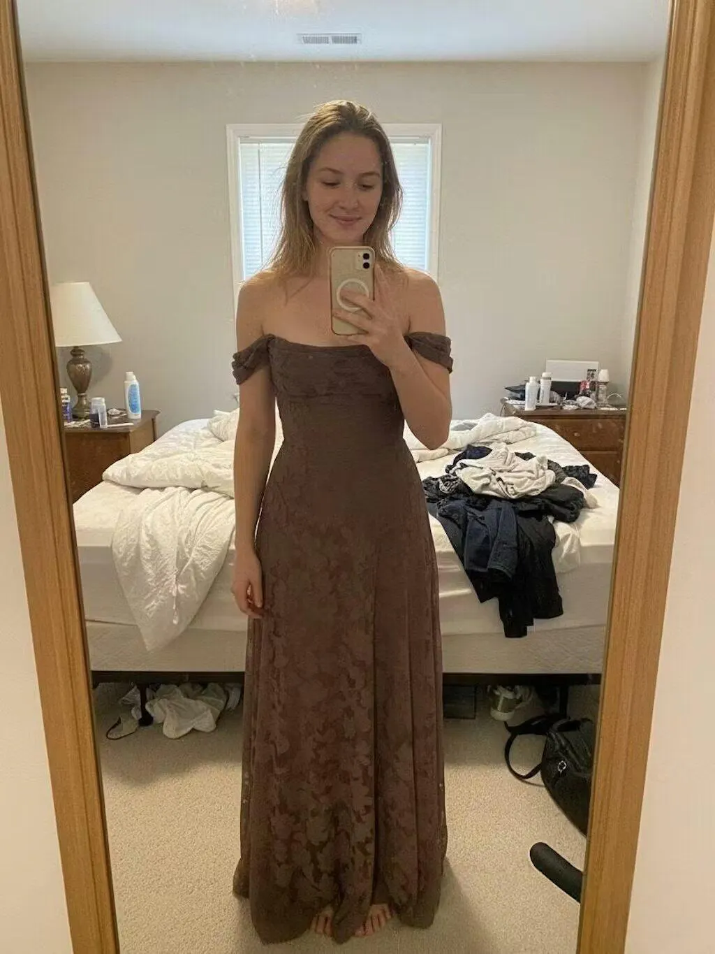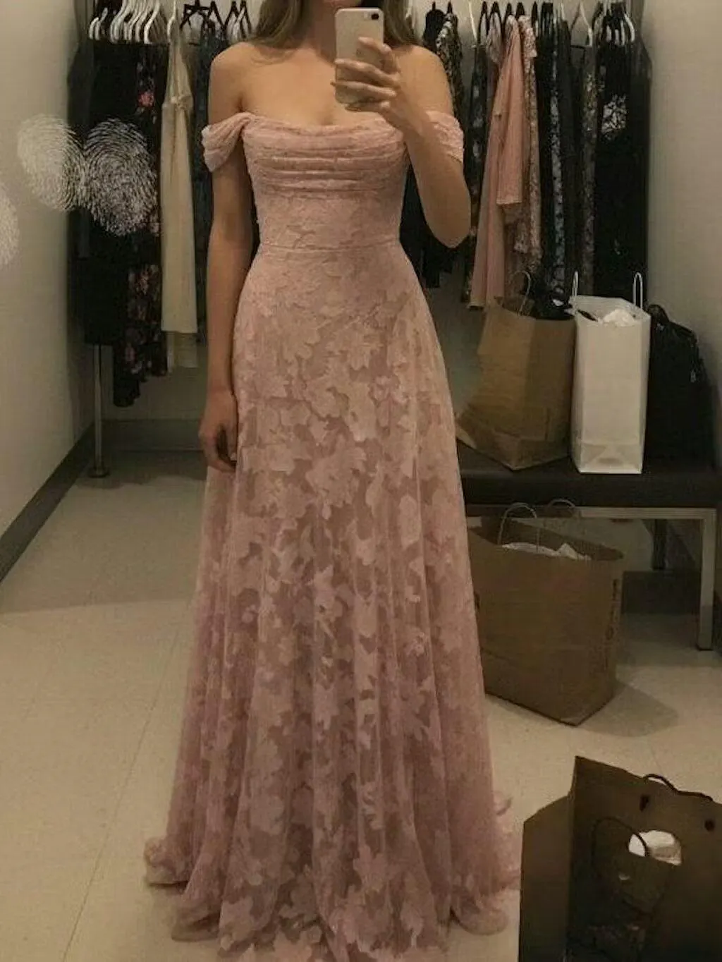 Oraelithra Charming A-Line Off the Shoulder Long Jacquard Bridesmaid Dresses