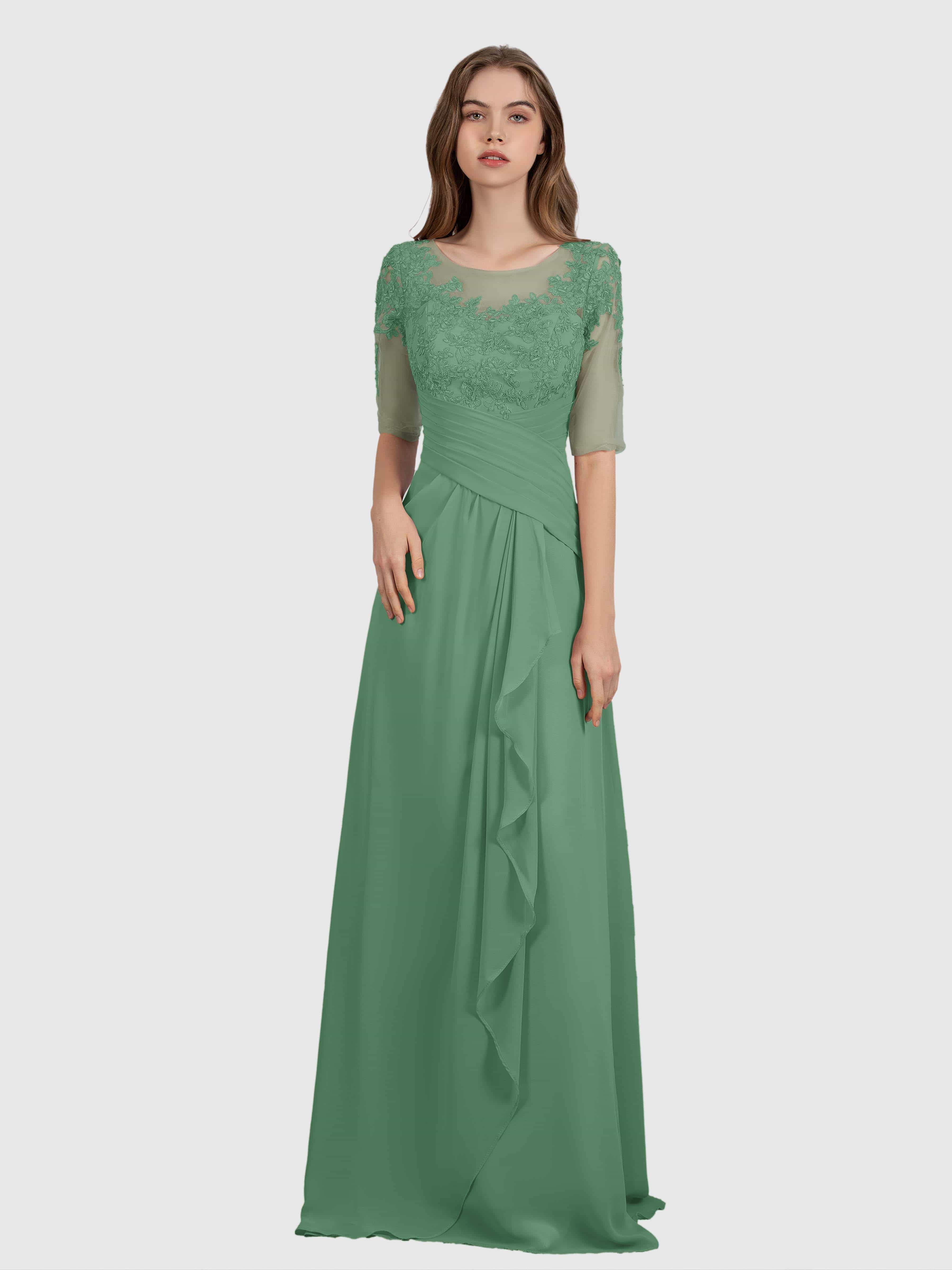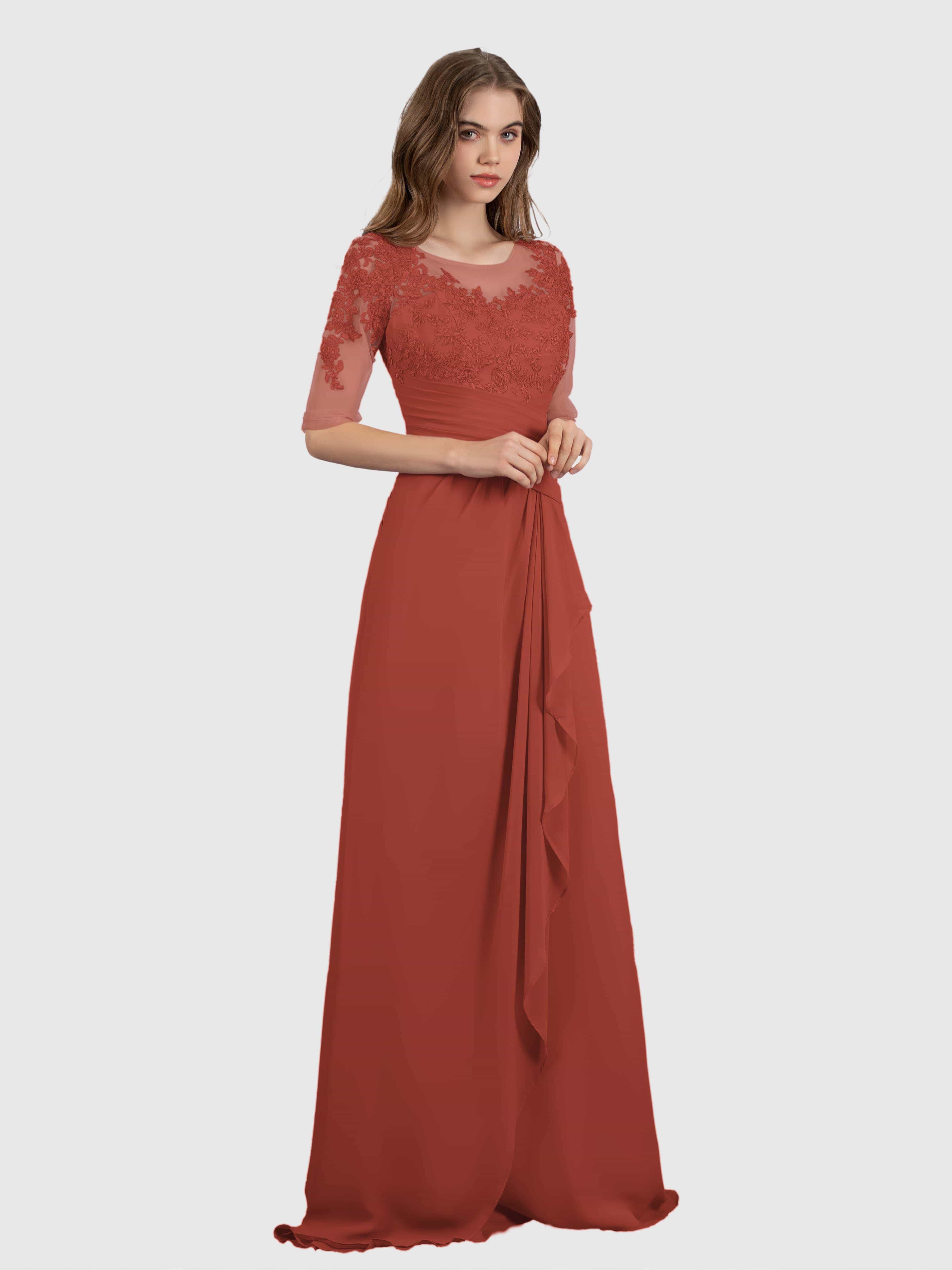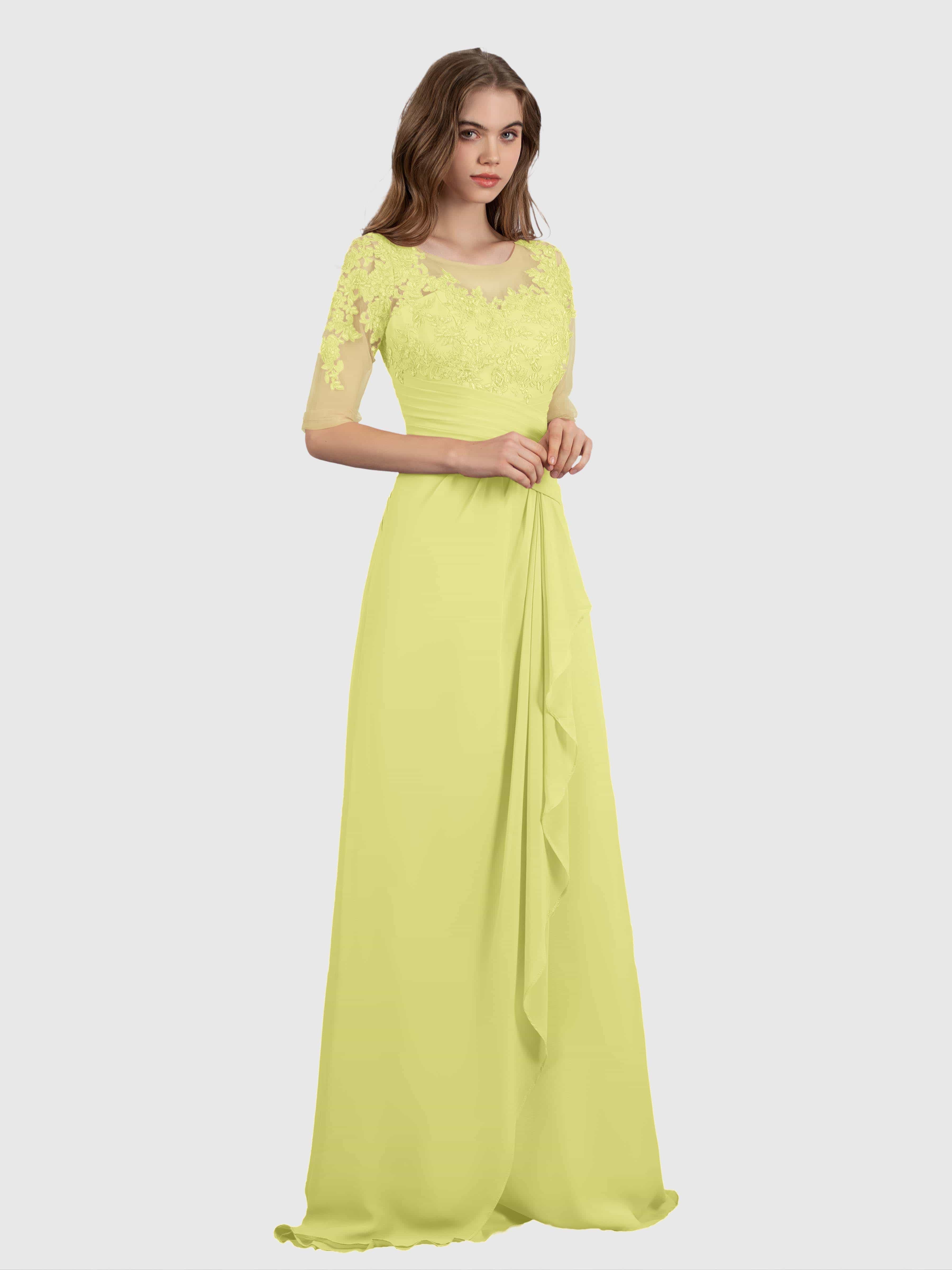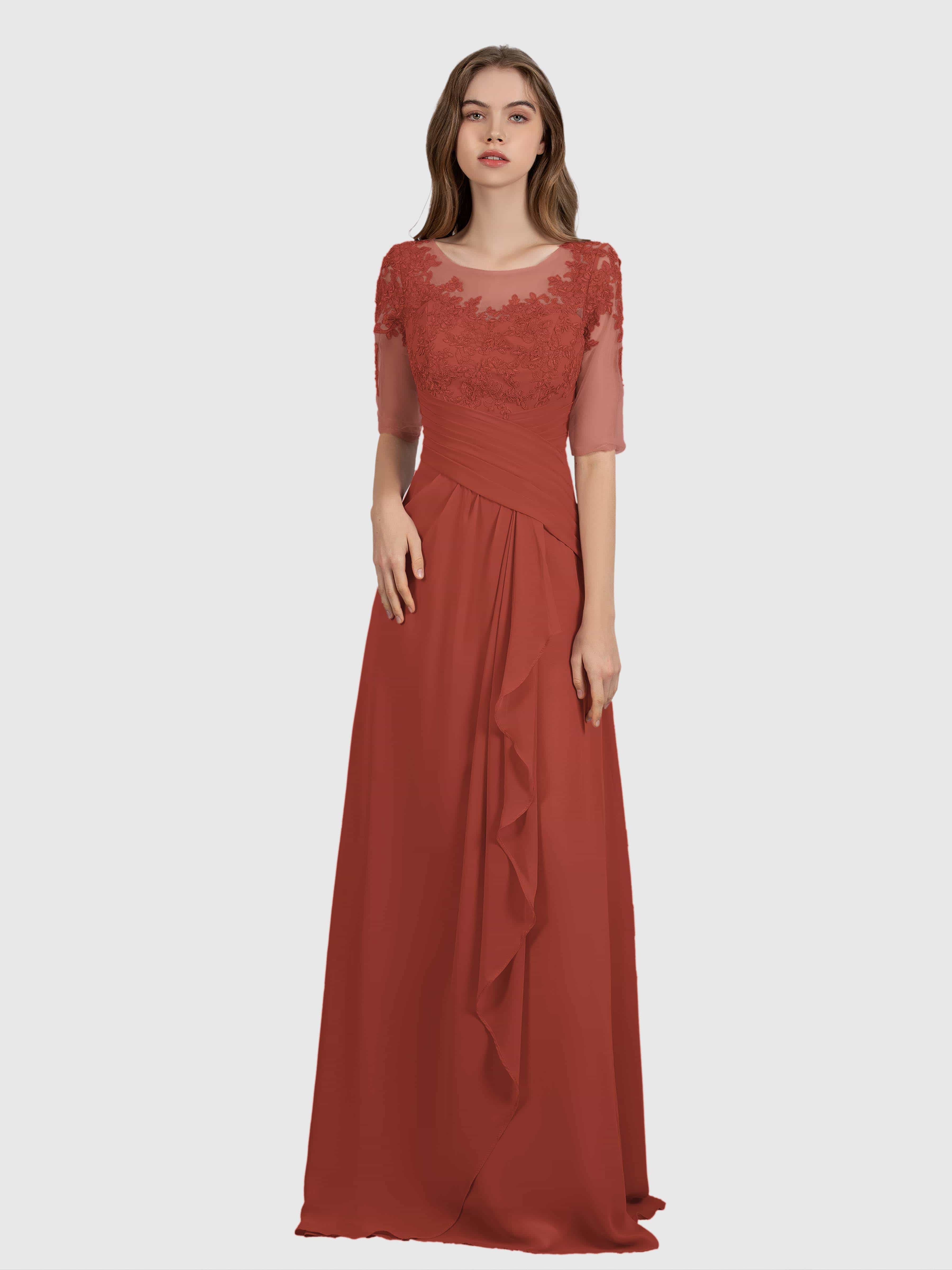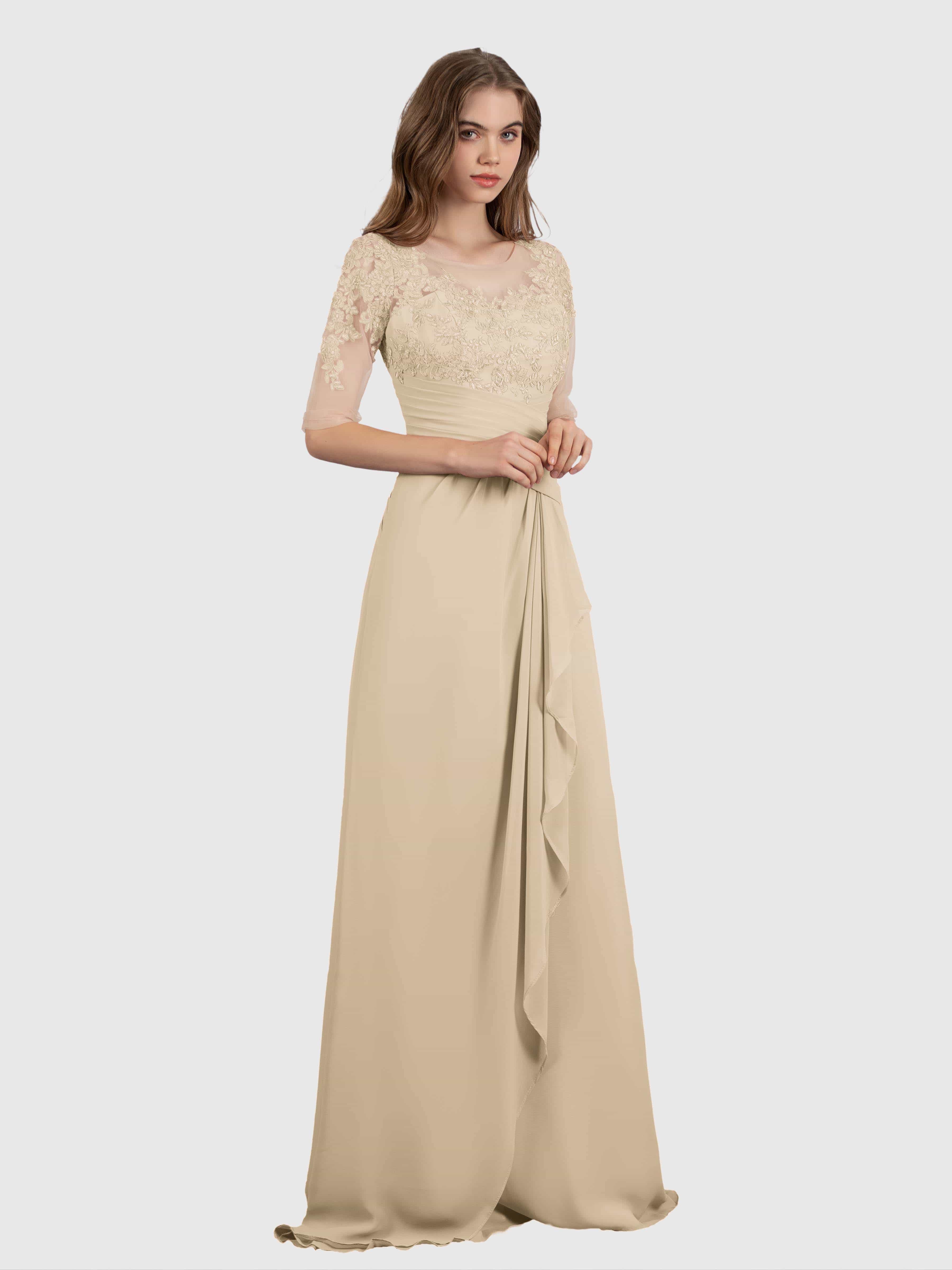 Penelope A-Line Illusion Ruffles Lace Floor Length Bridesmaid Dresses