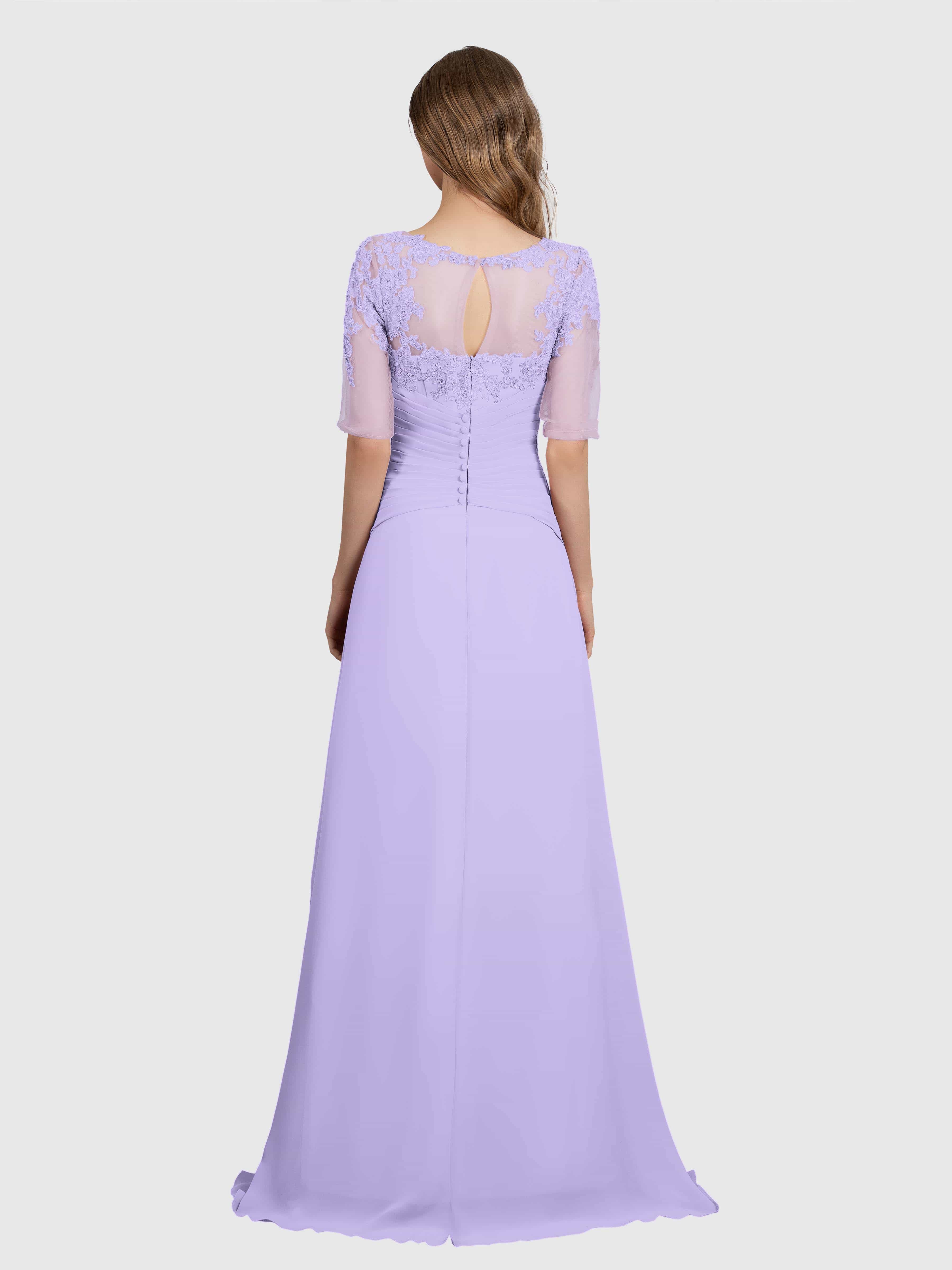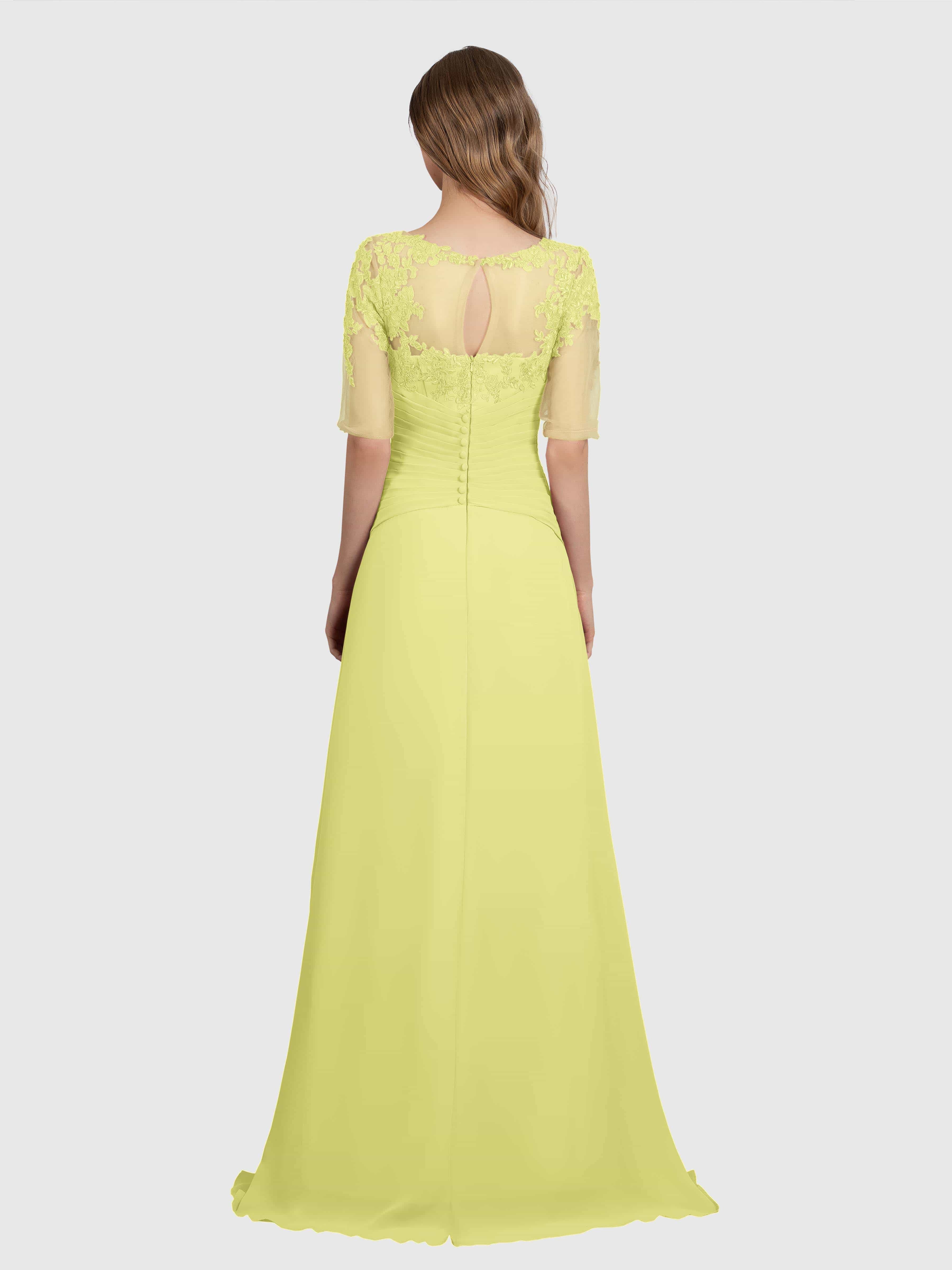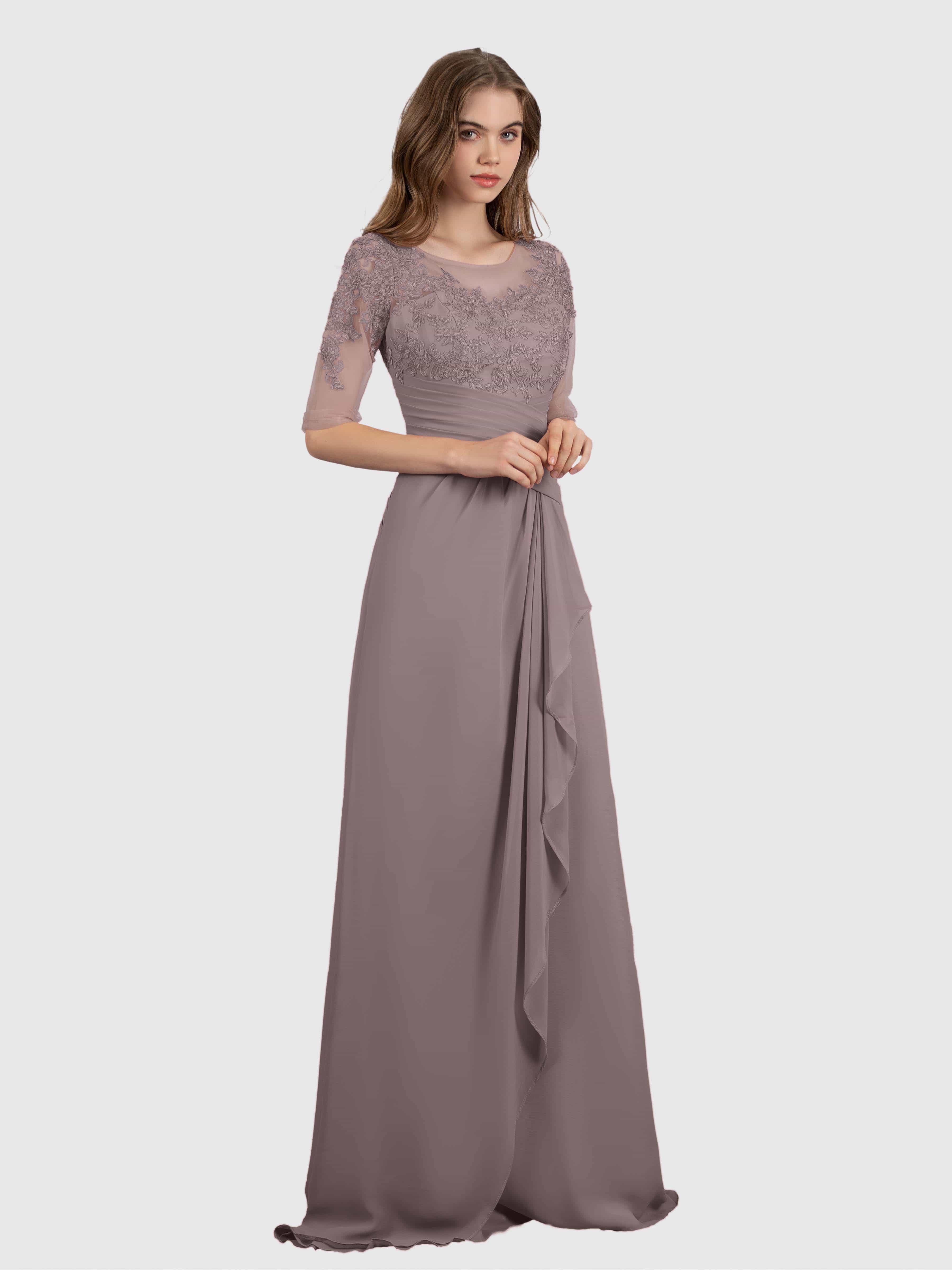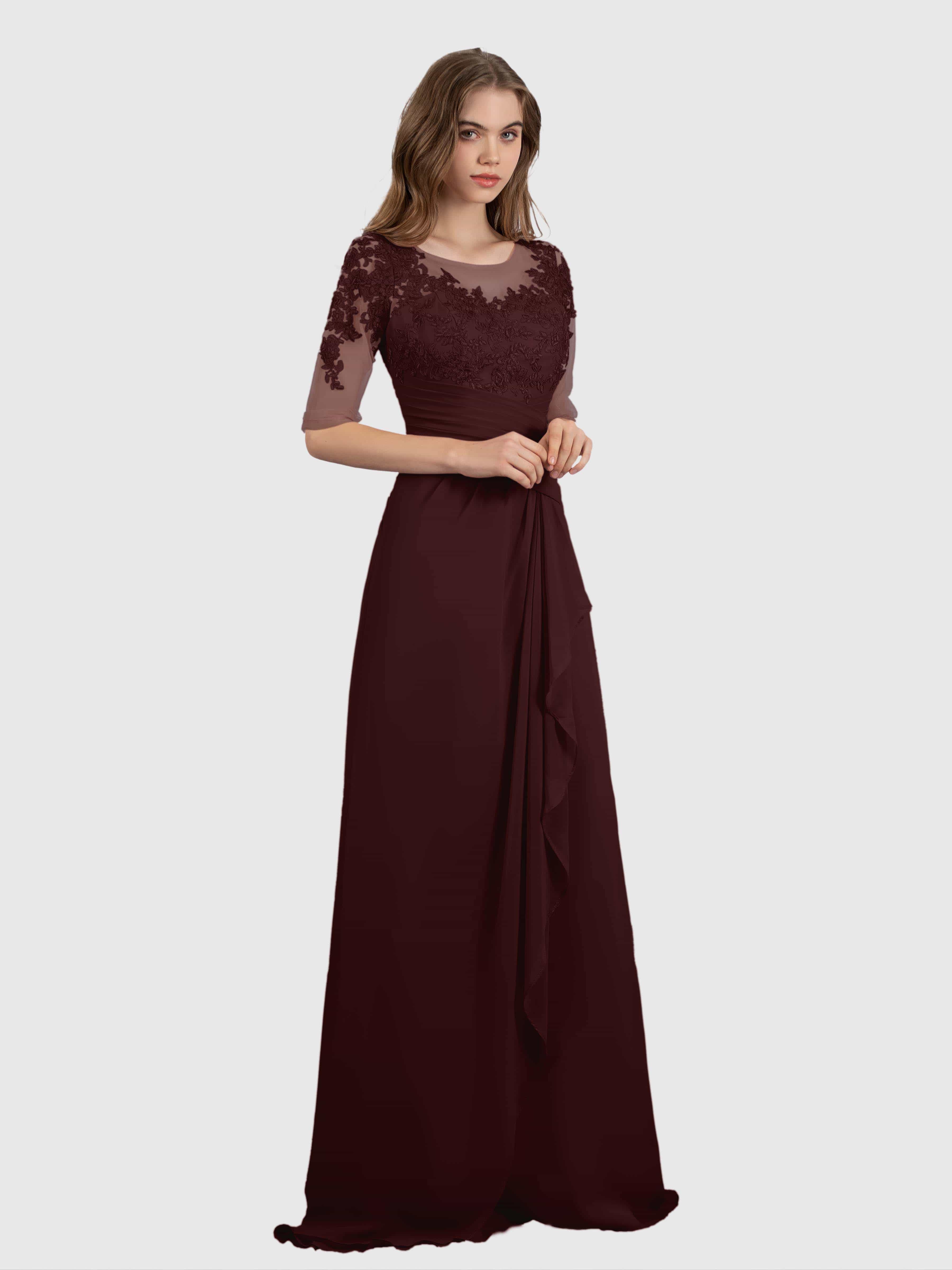 Penelope A-Line Illusion Ruffles Lace Floor Length Bridesmaid Dresses