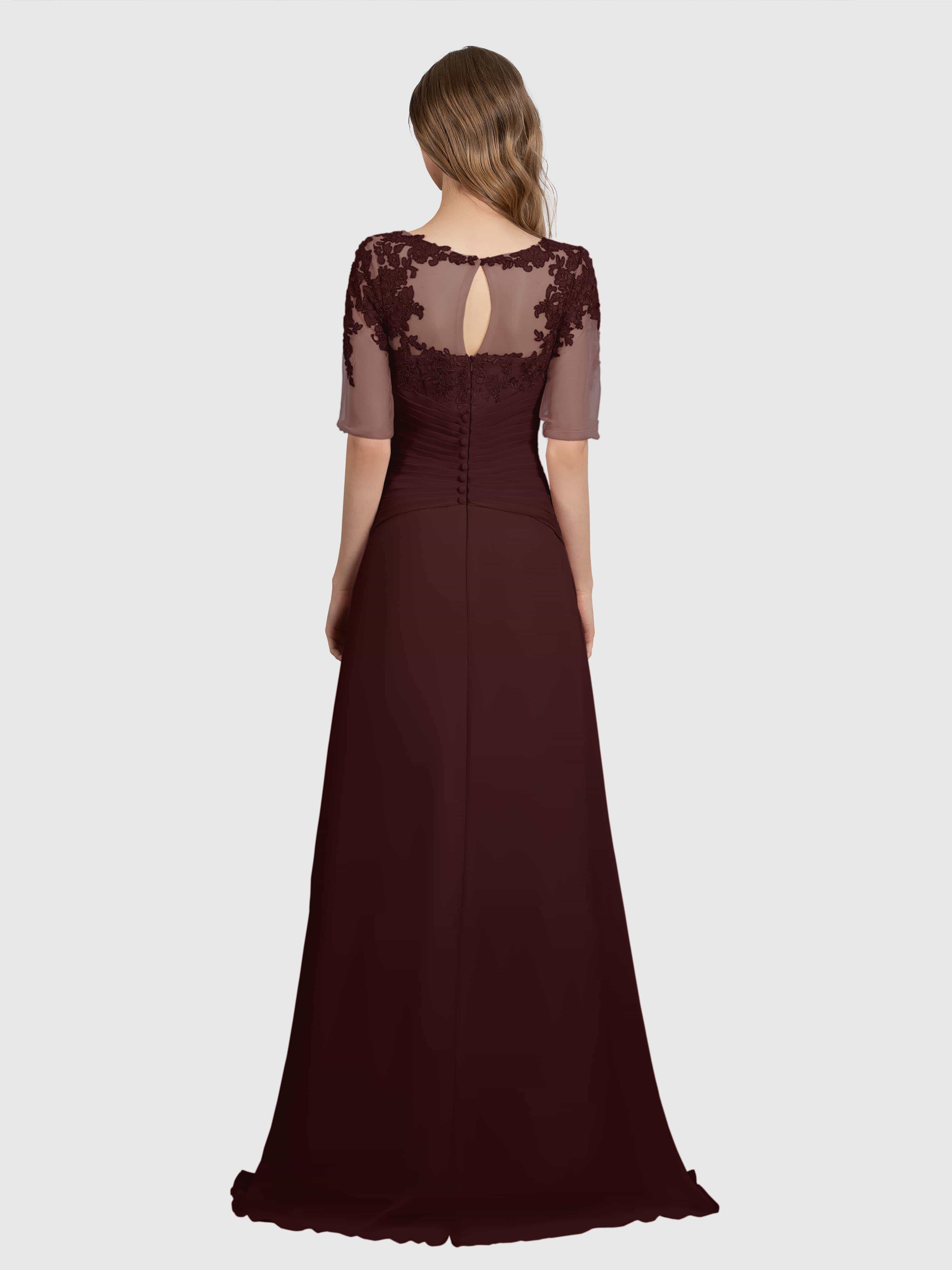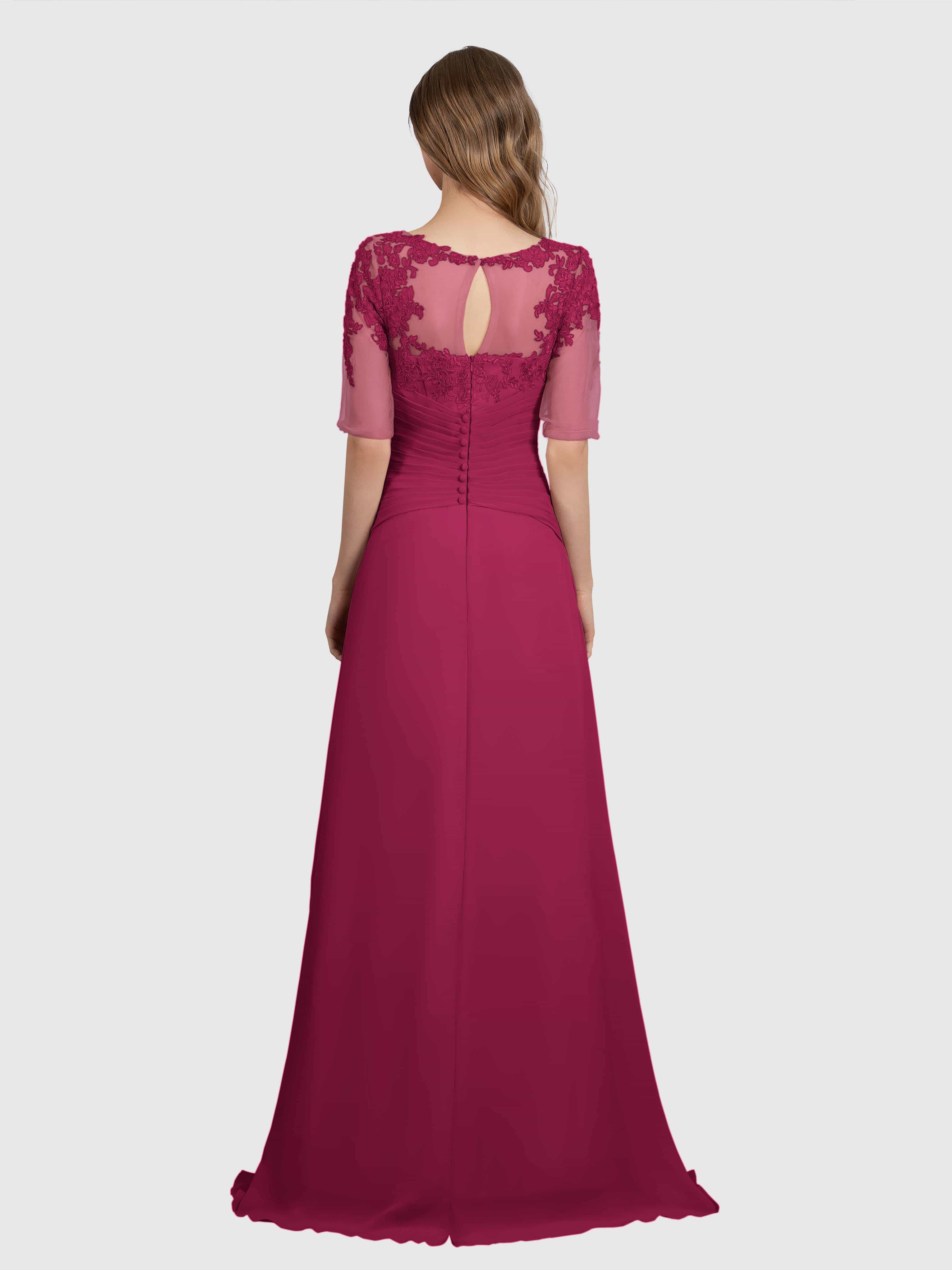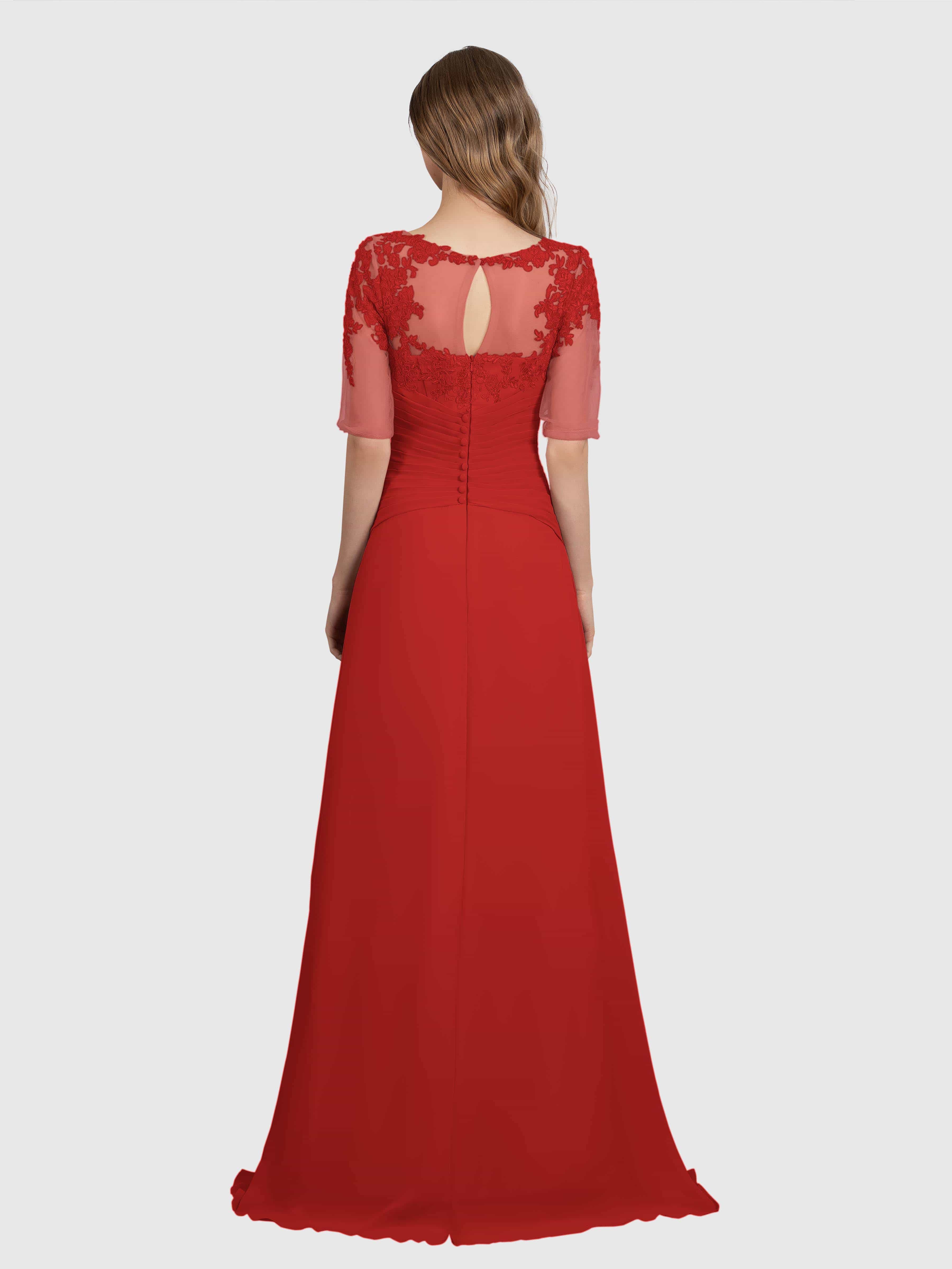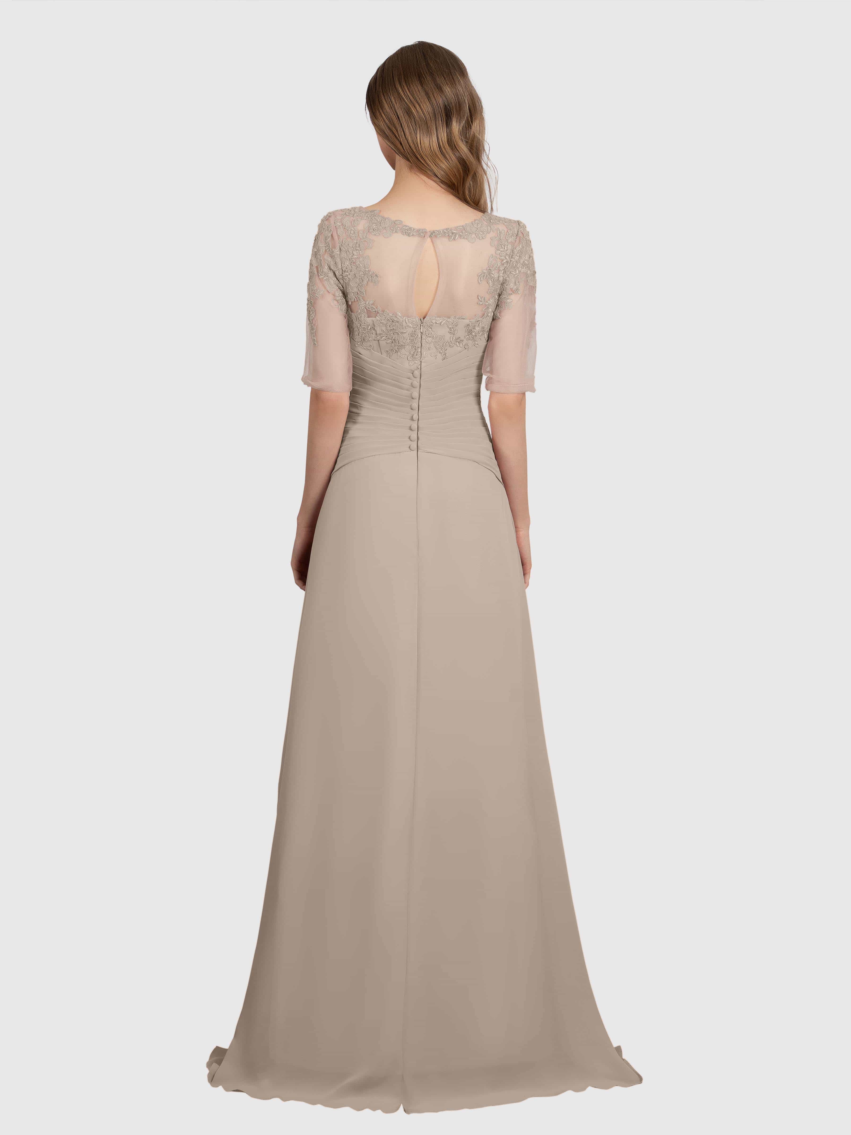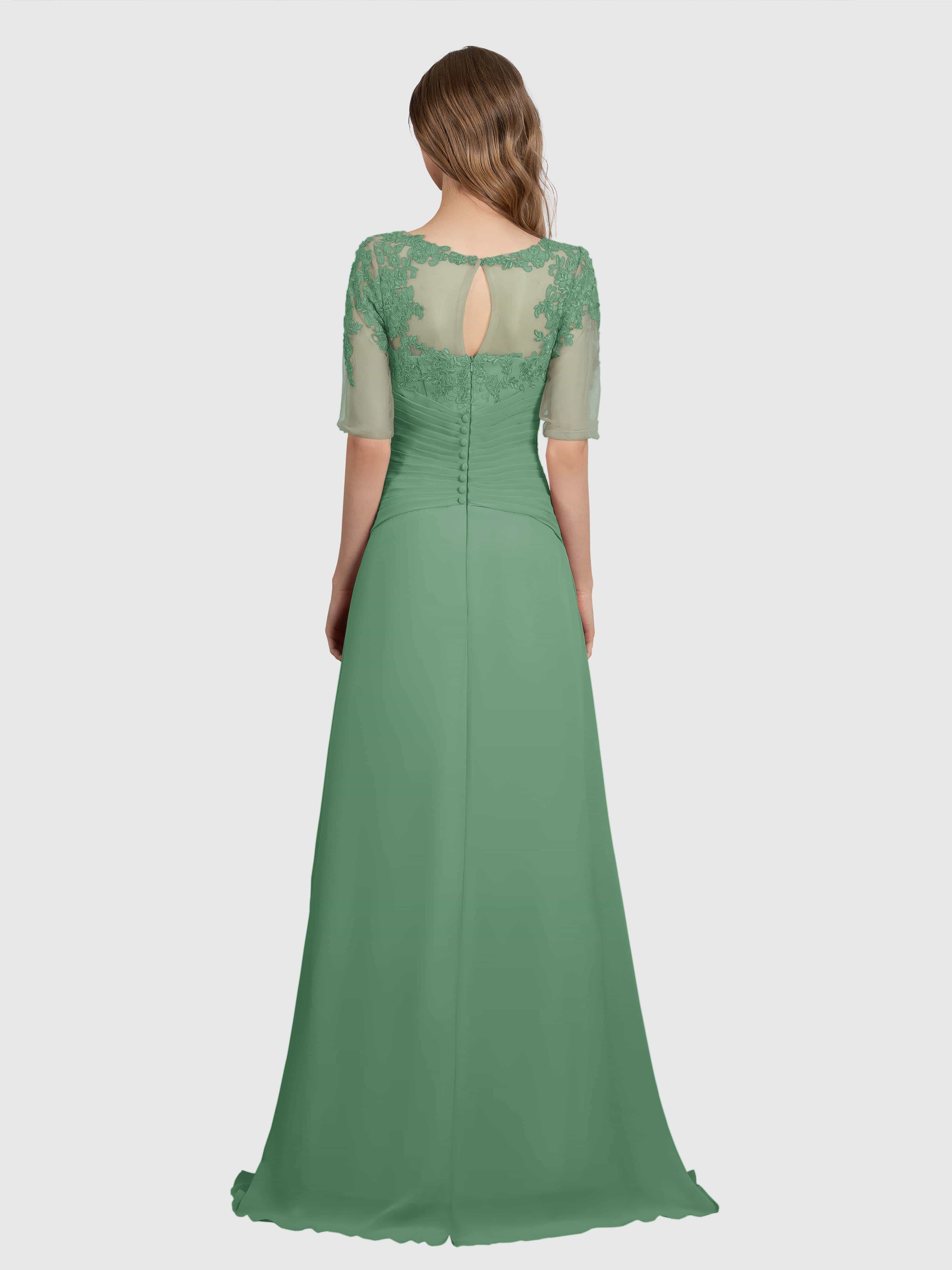 Penelope A-Line Illusion Ruffles Lace Floor Length Bridesmaid Dresses