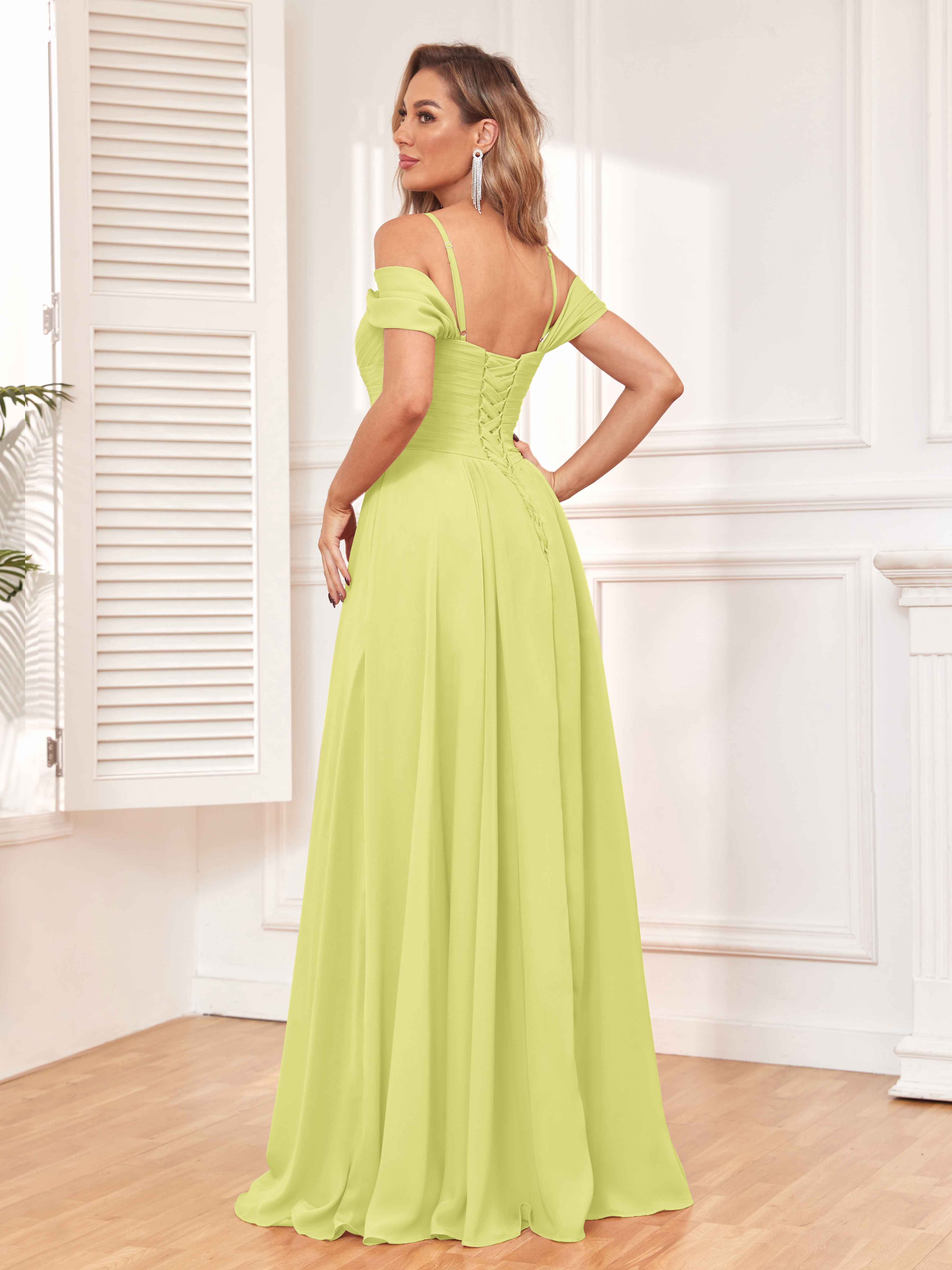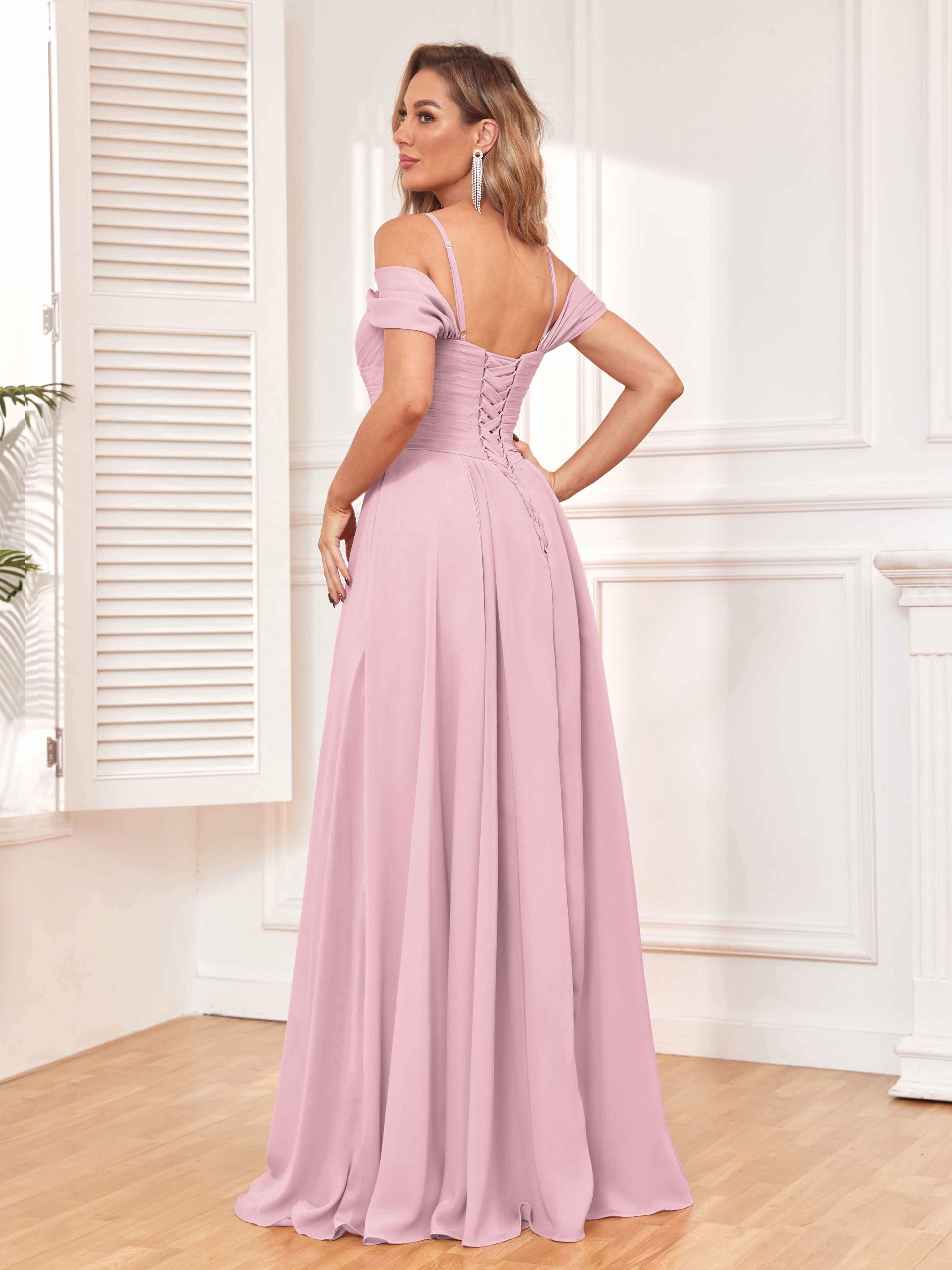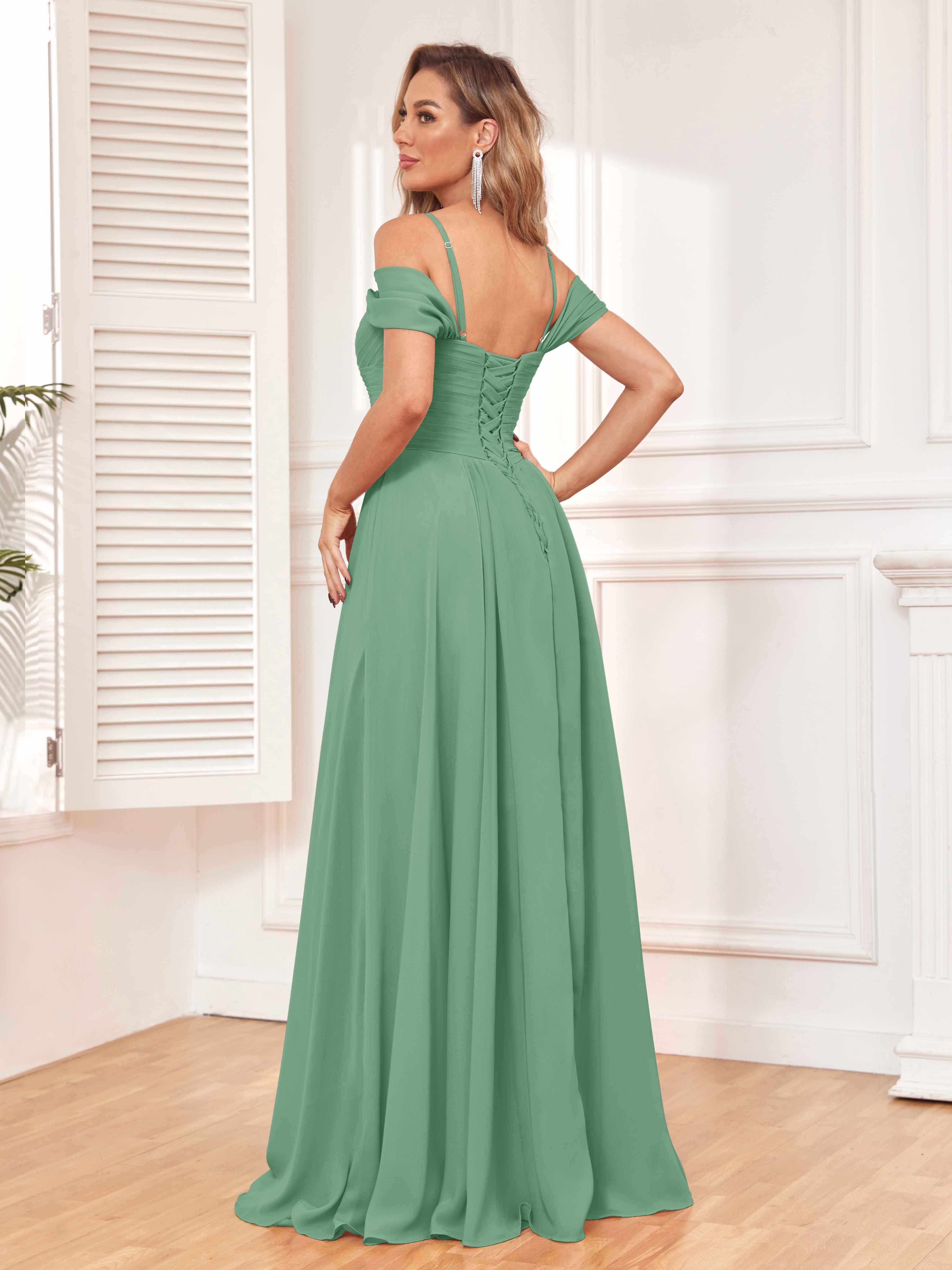 Ruby A-Line Draped Sleeves Slit Floor Length Bridesmaid Dresses