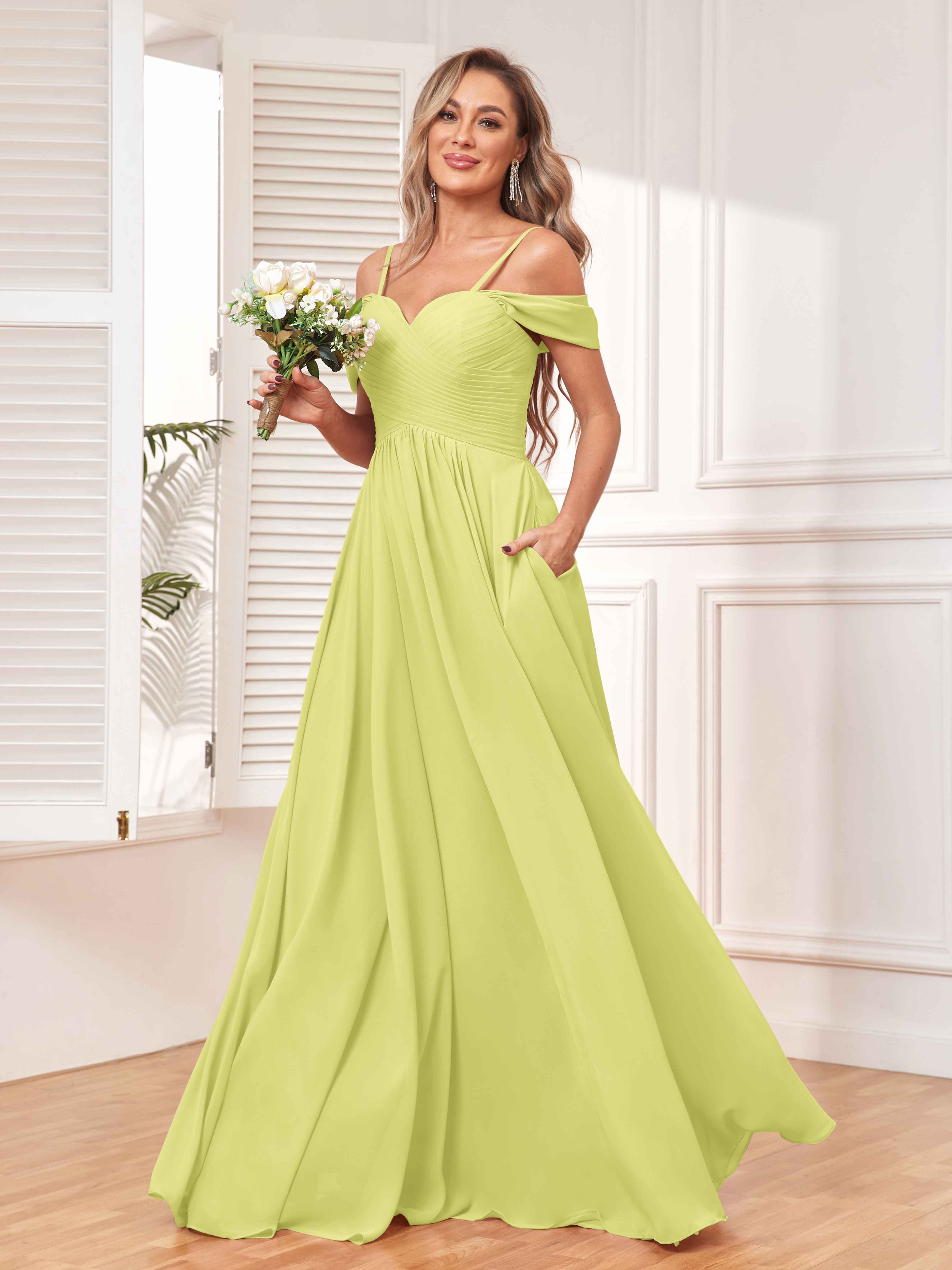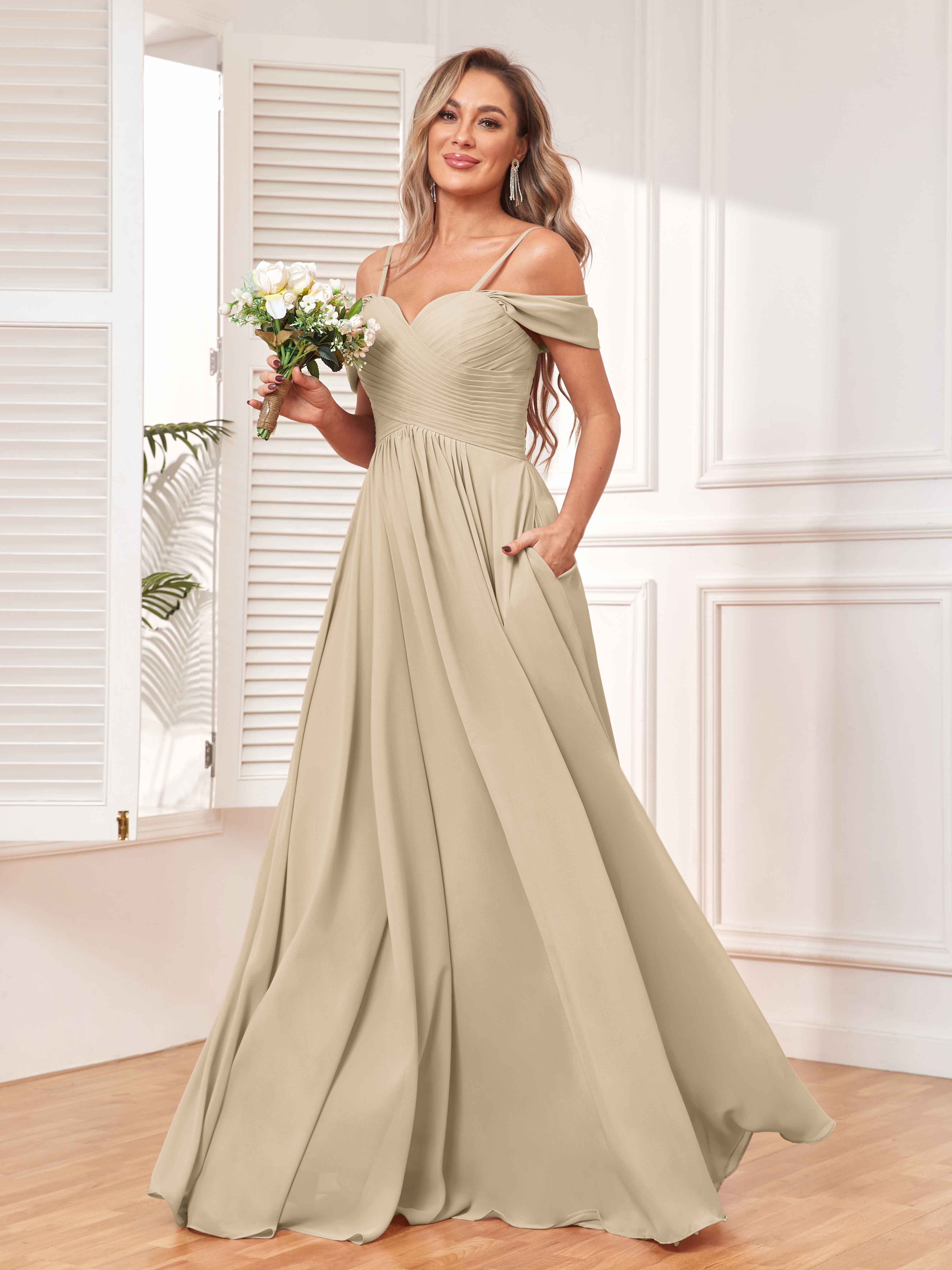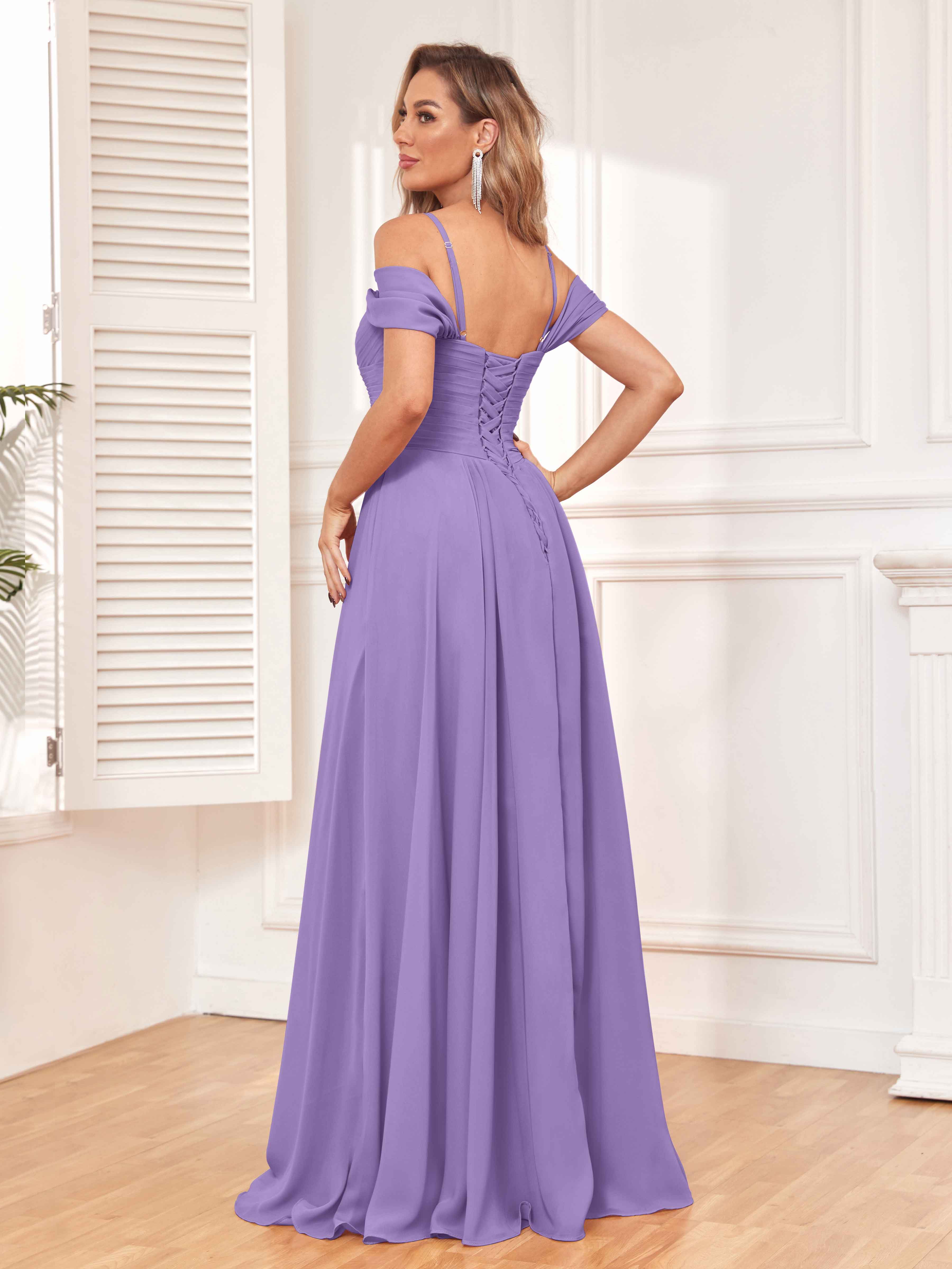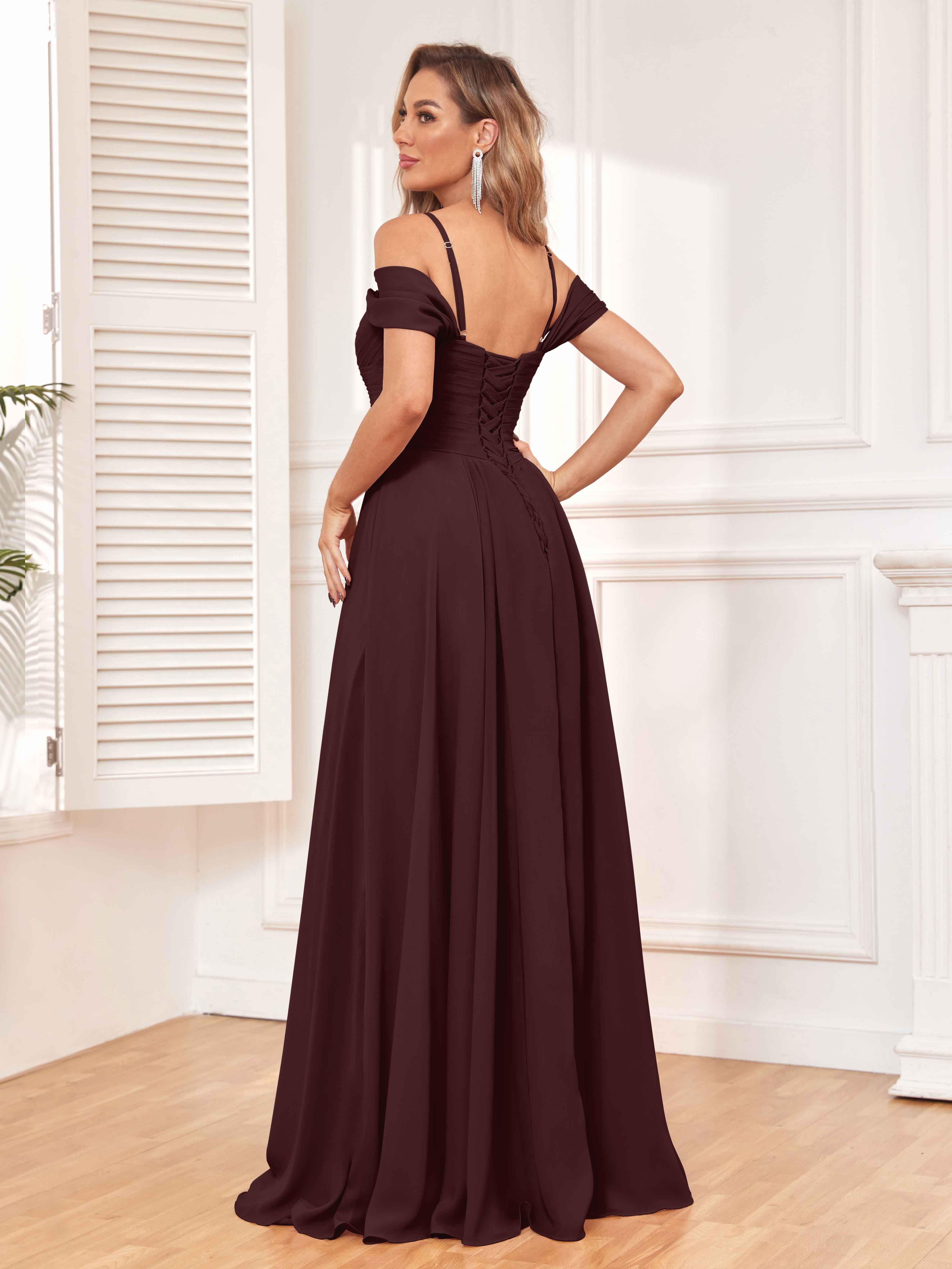 Ruby A-Line Draped Sleeves Slit Floor Length Bridesmaid Dresses