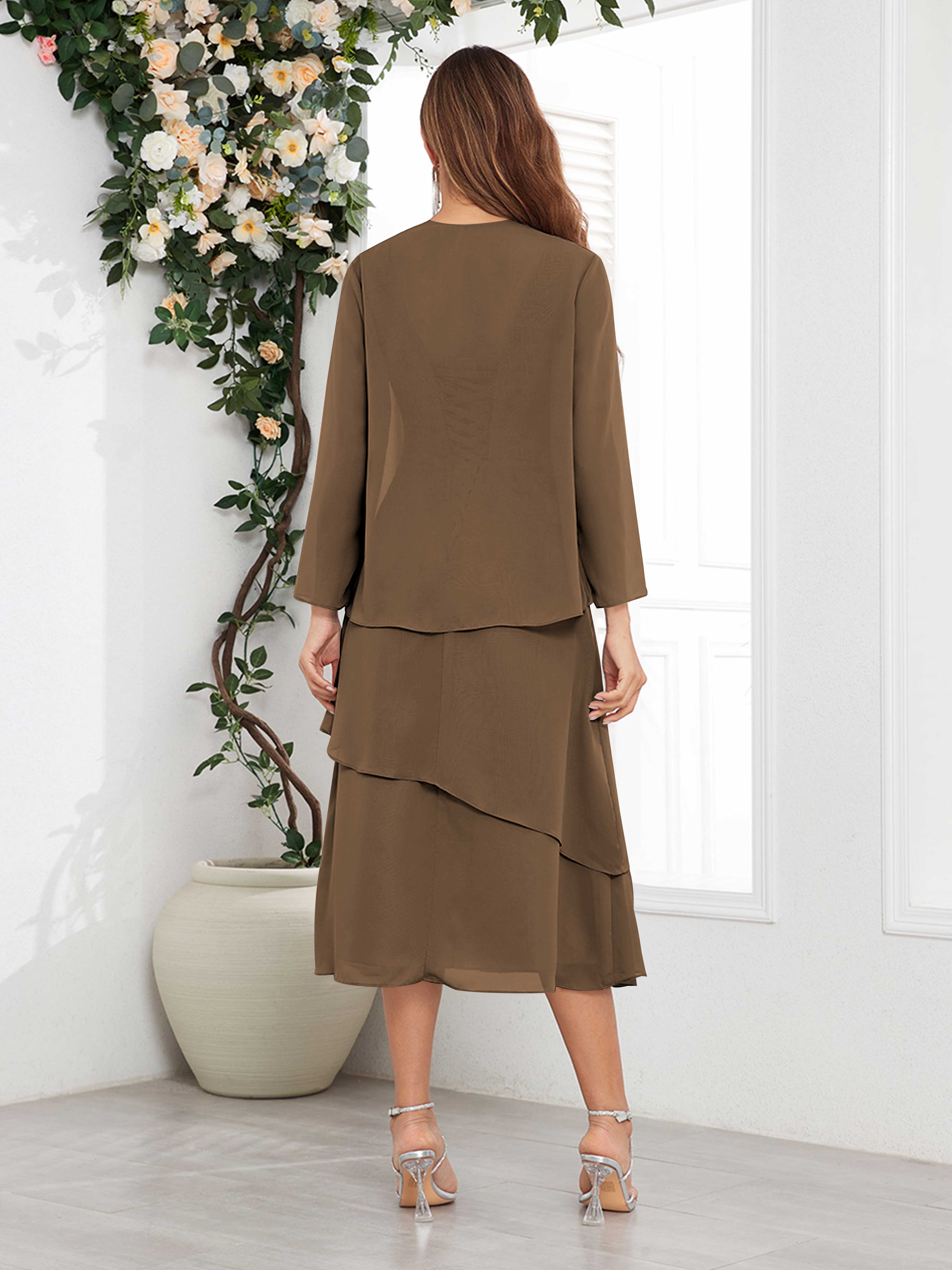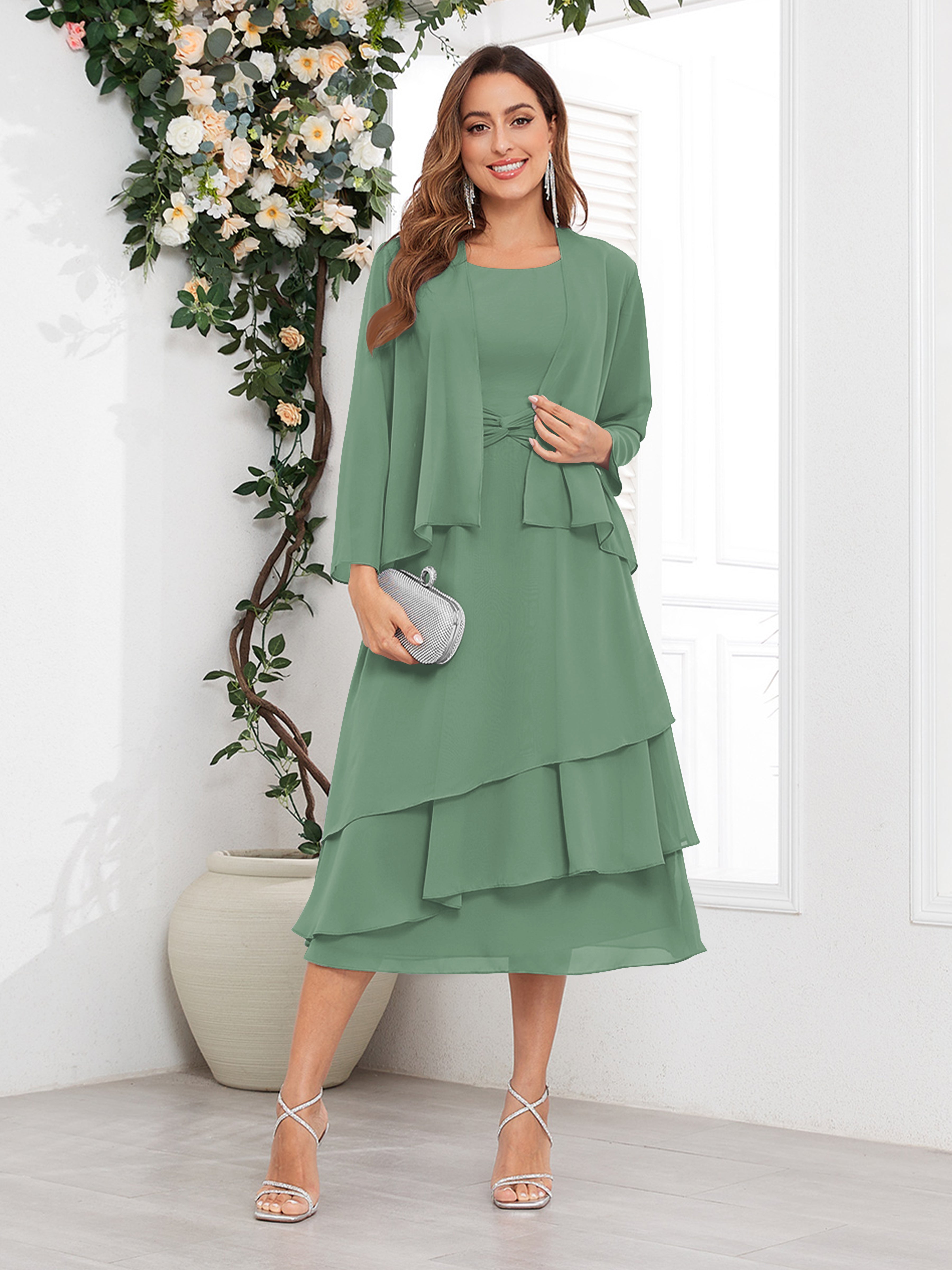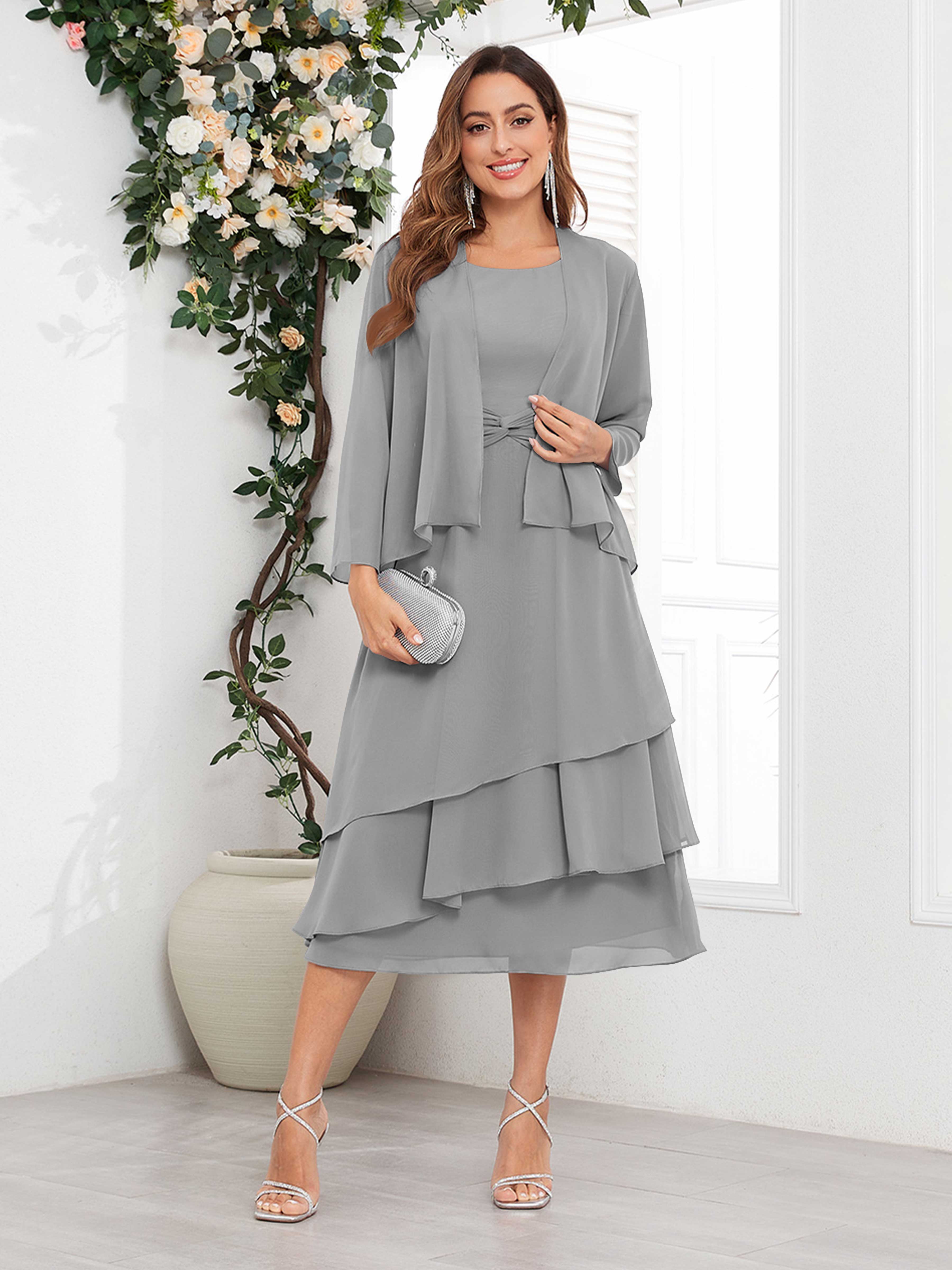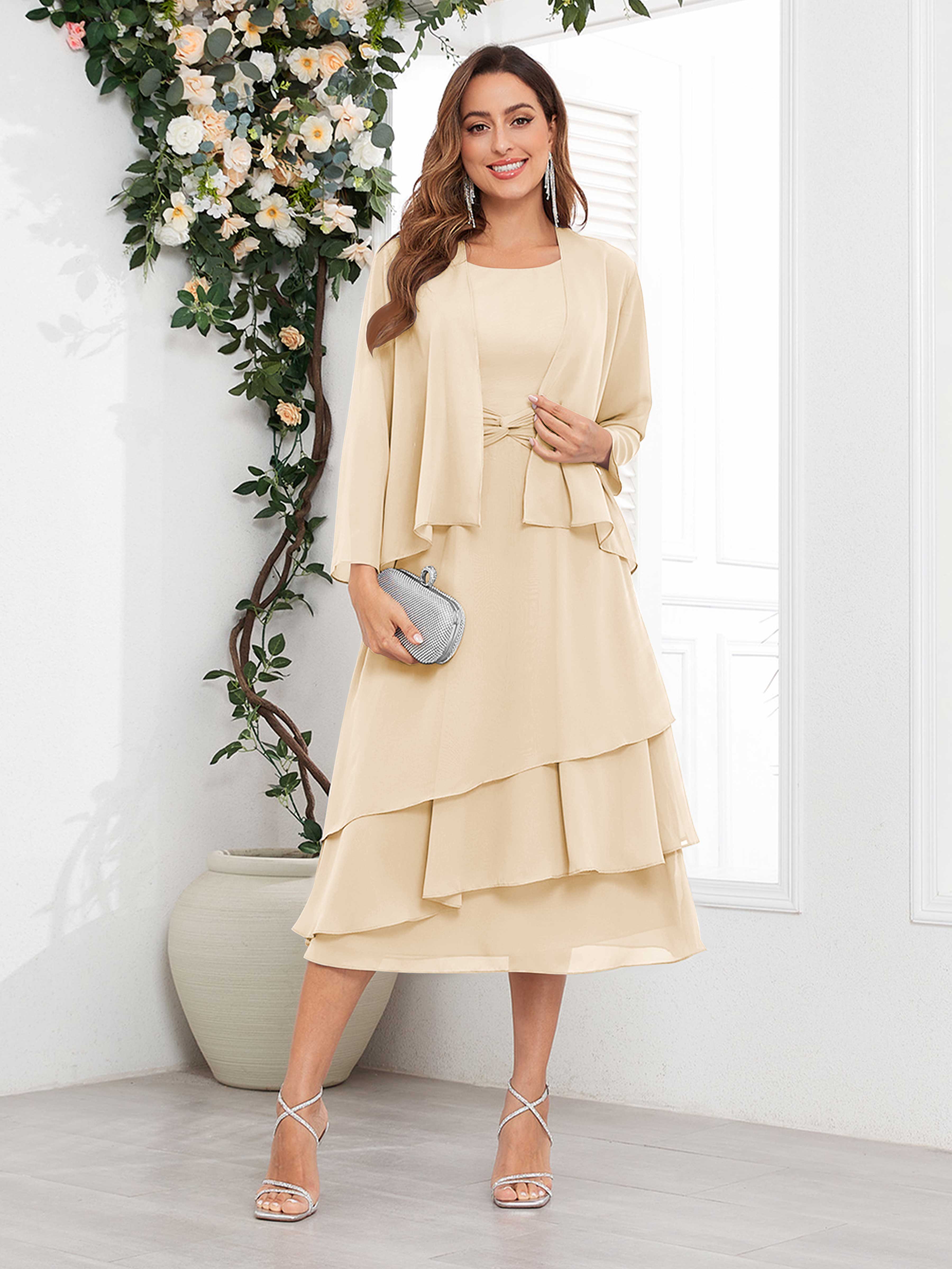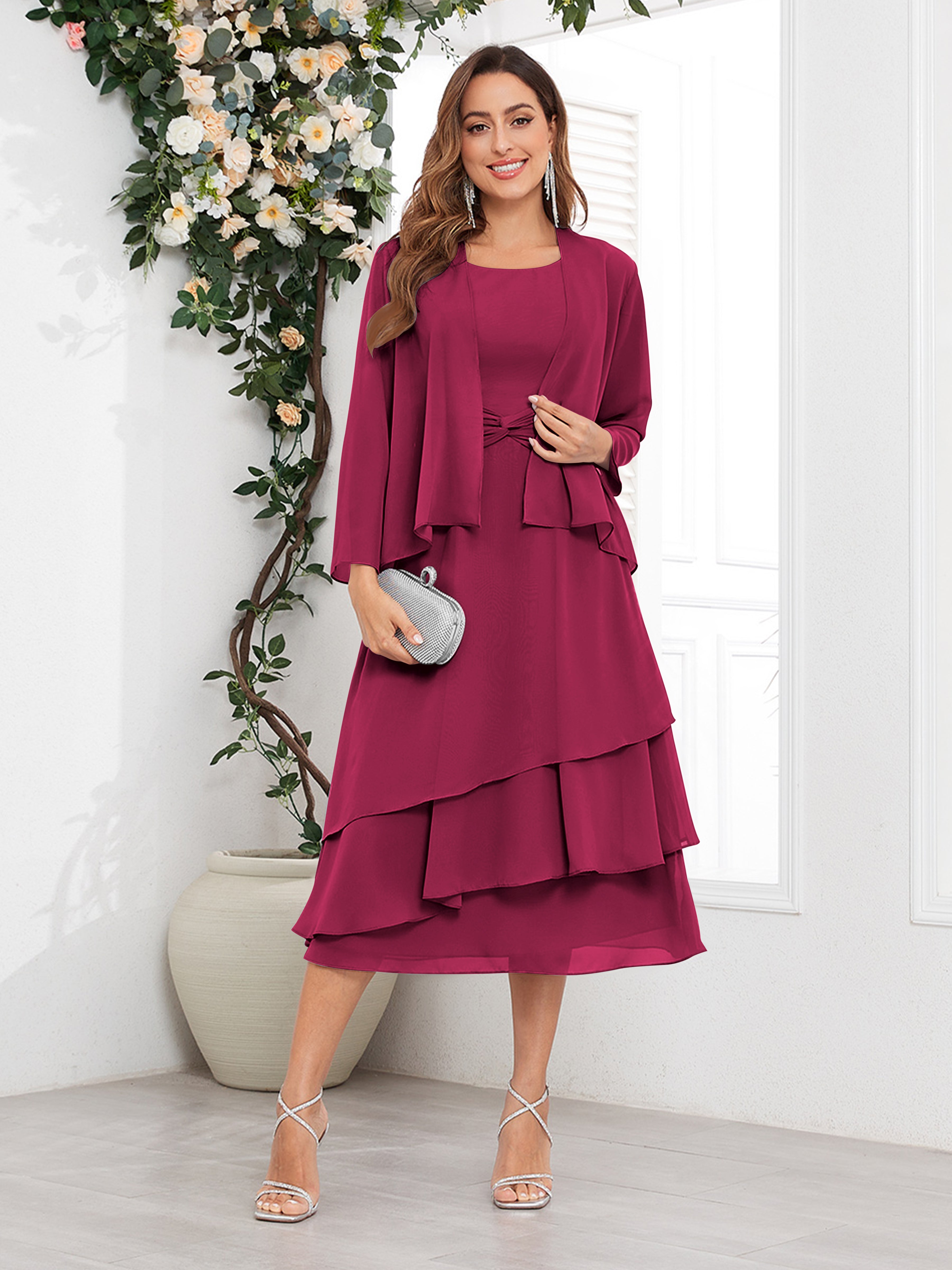 Salem Chic Two-Pieces Tiered Midi Chiffon Mother Of The Bride Dresses