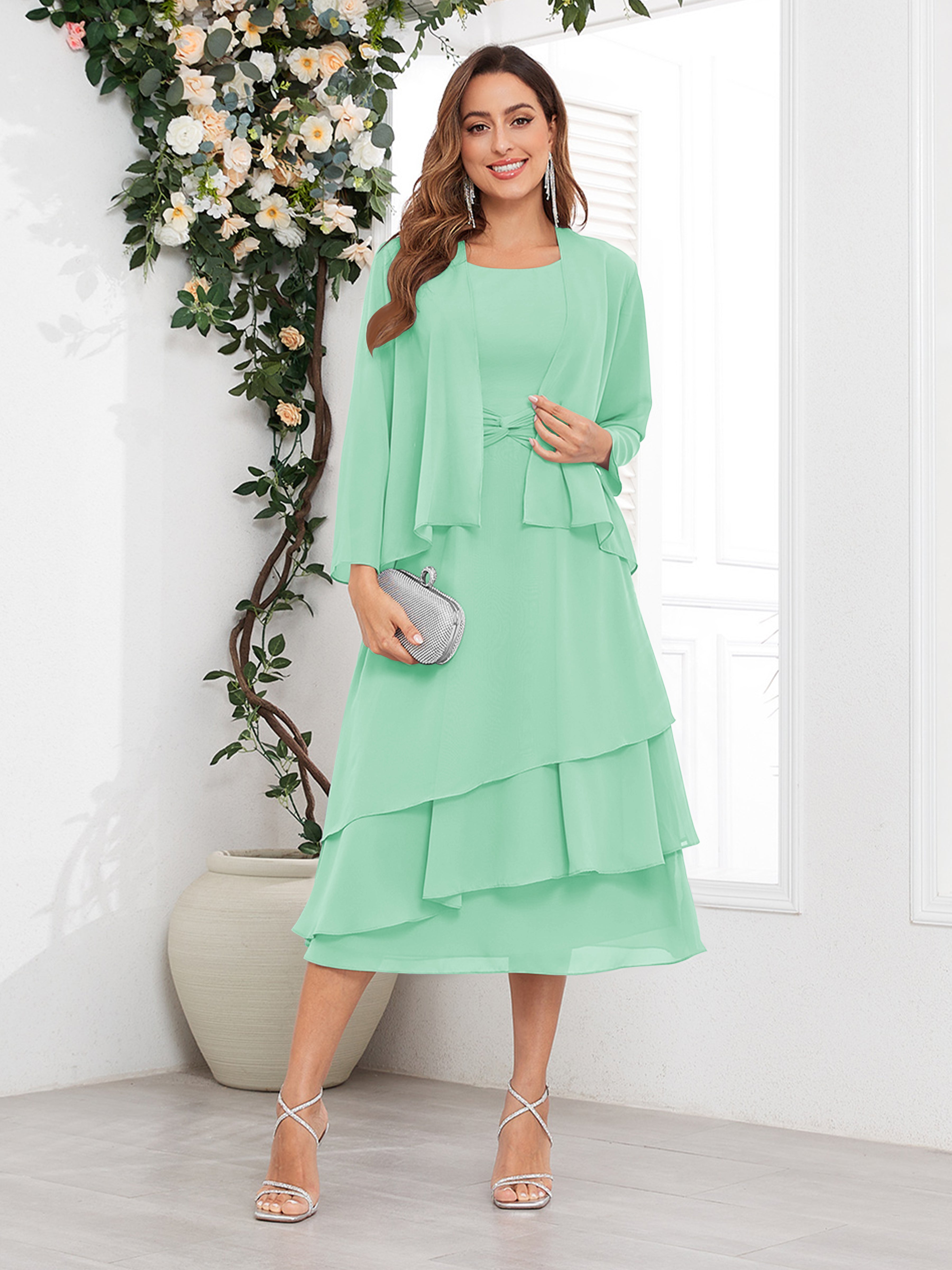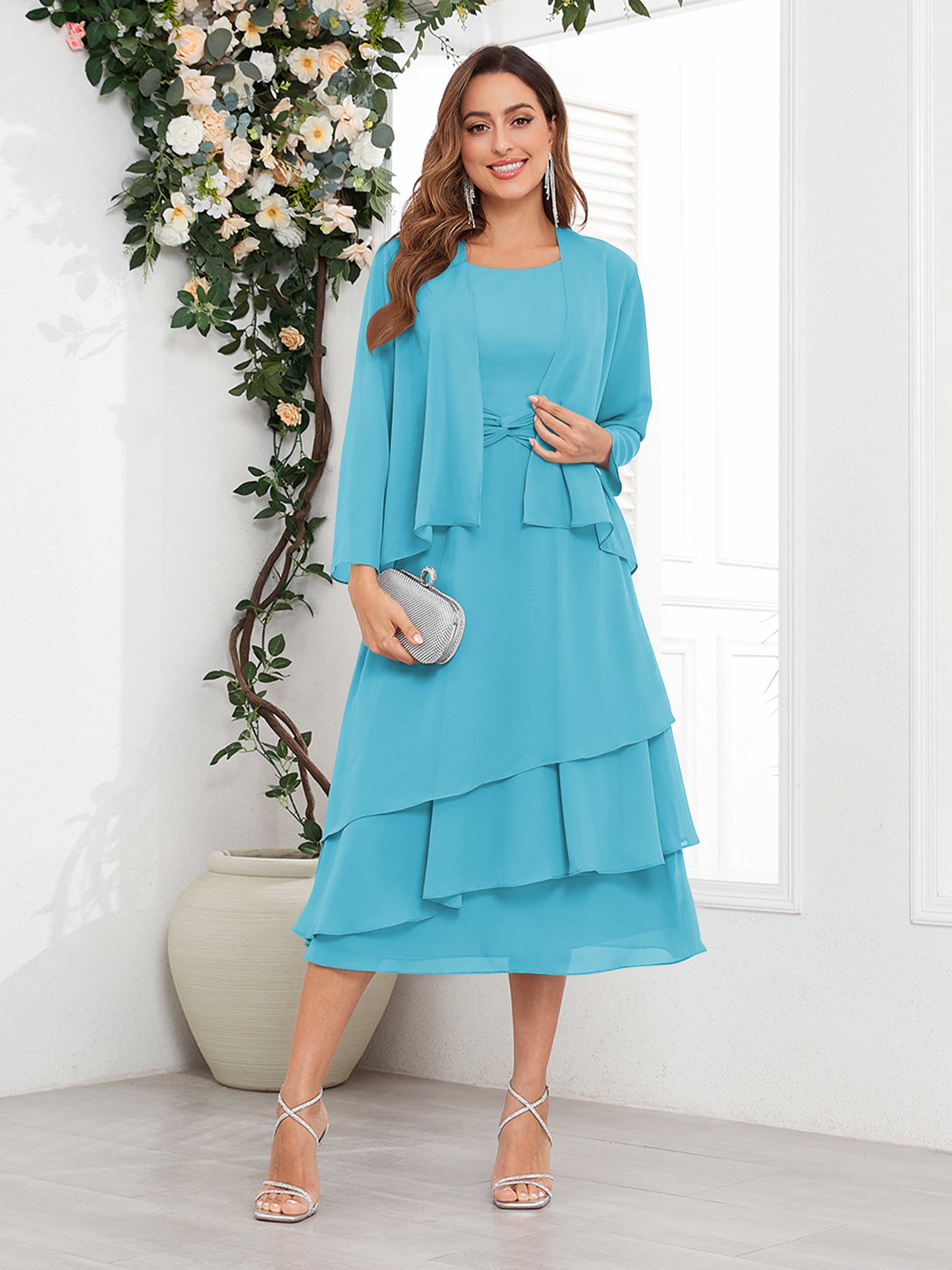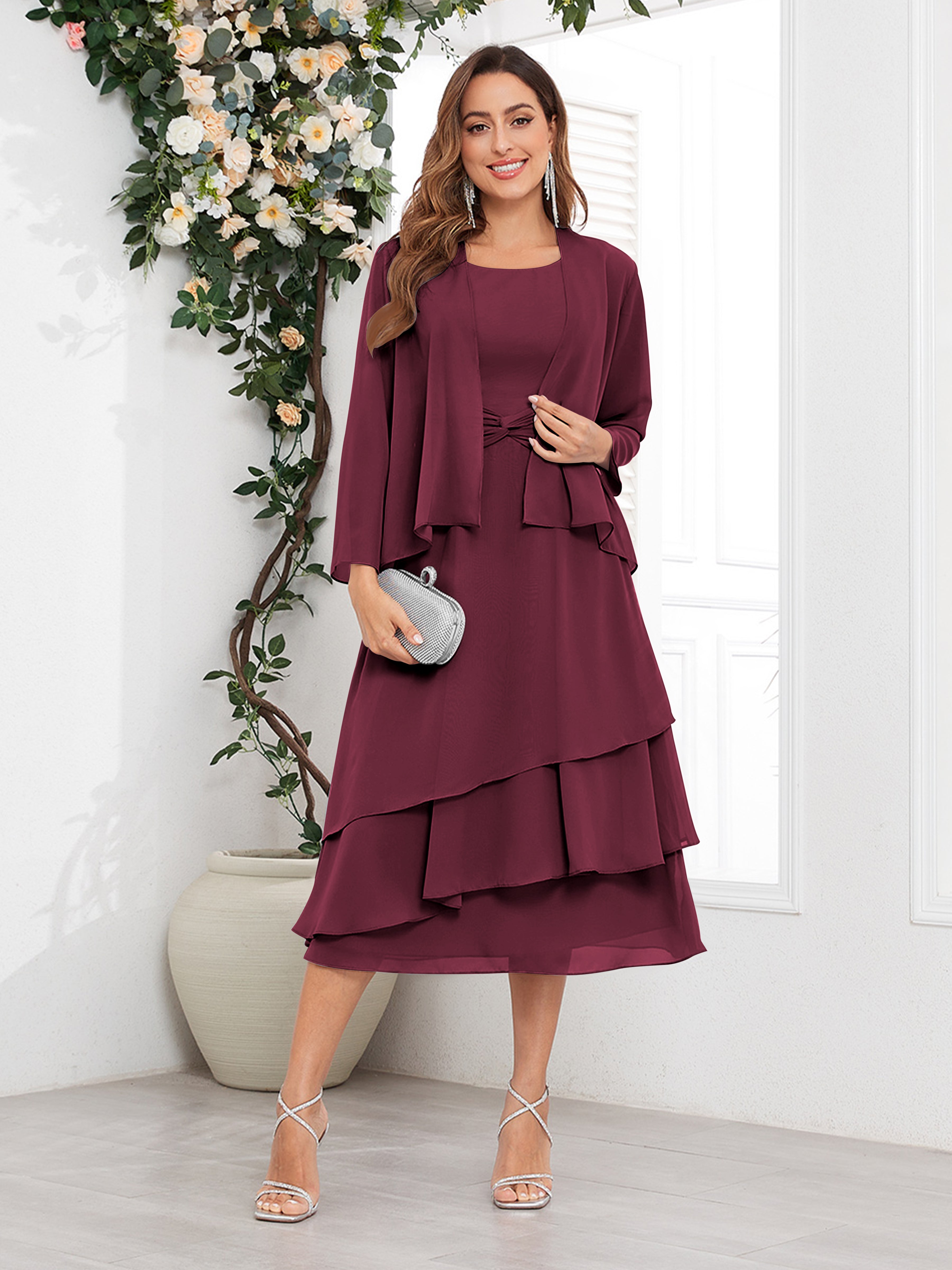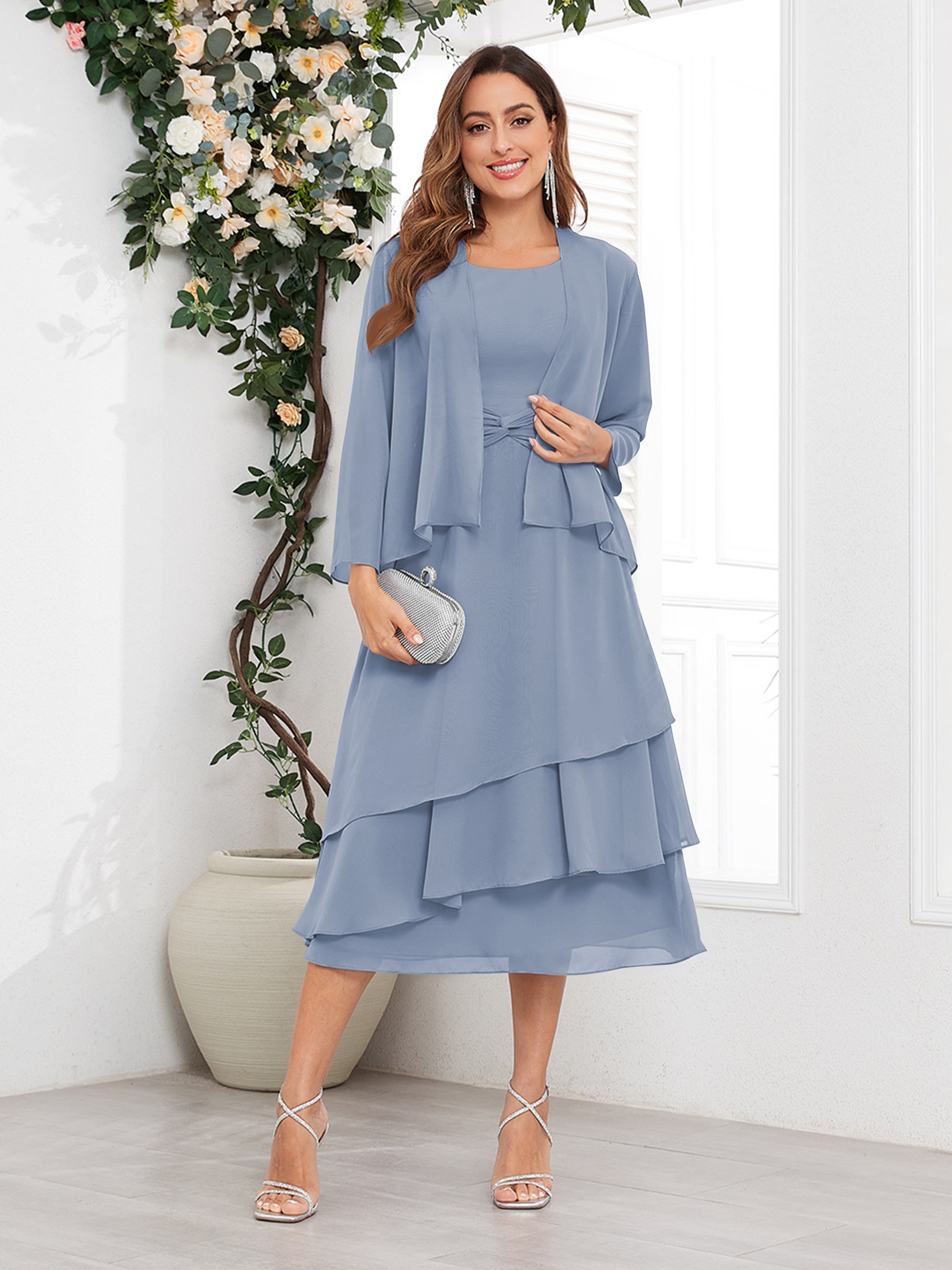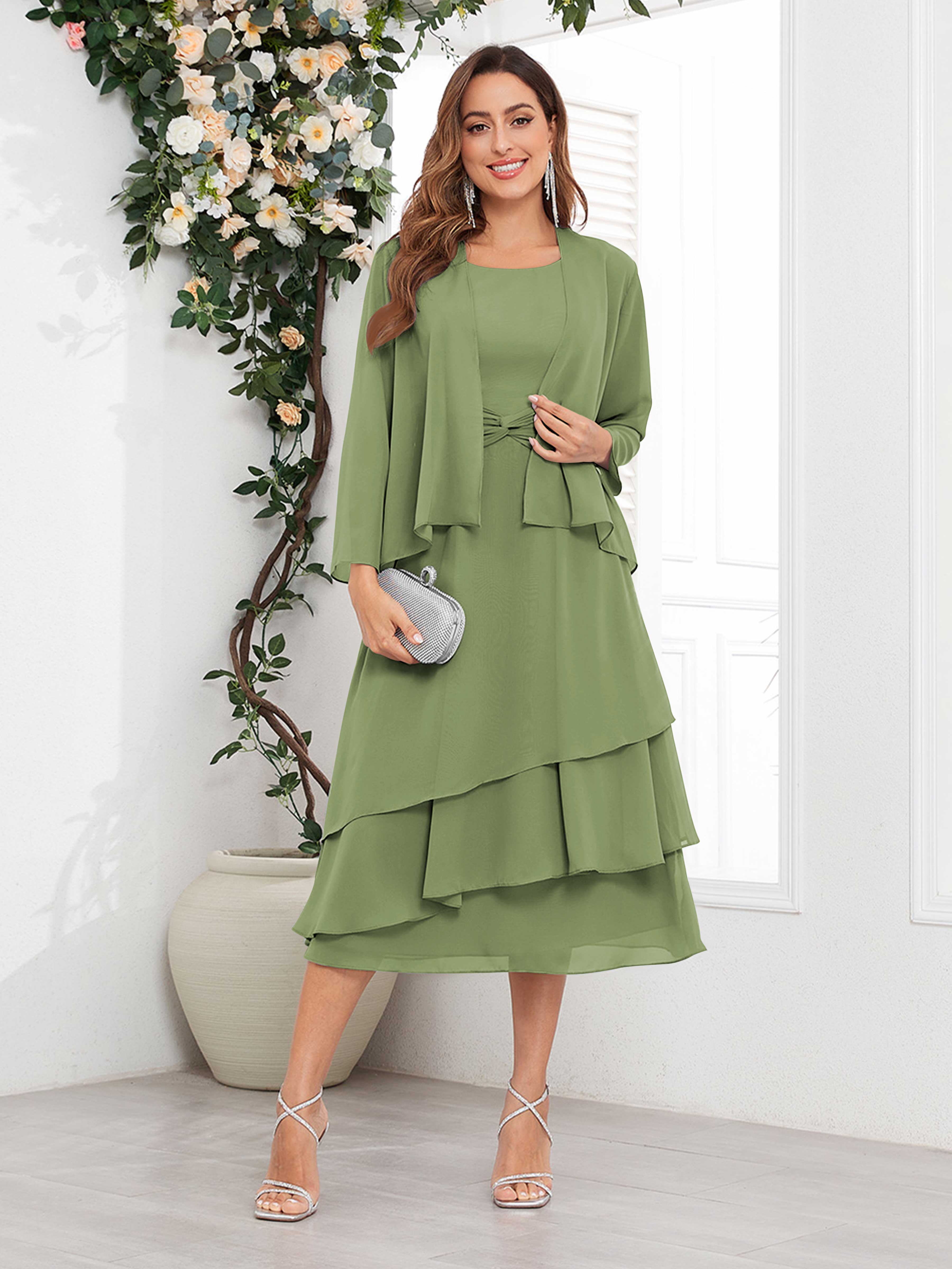Salem Chic Two-Pieces Tiered Midi Chiffon Mother Of The Bride Dresses