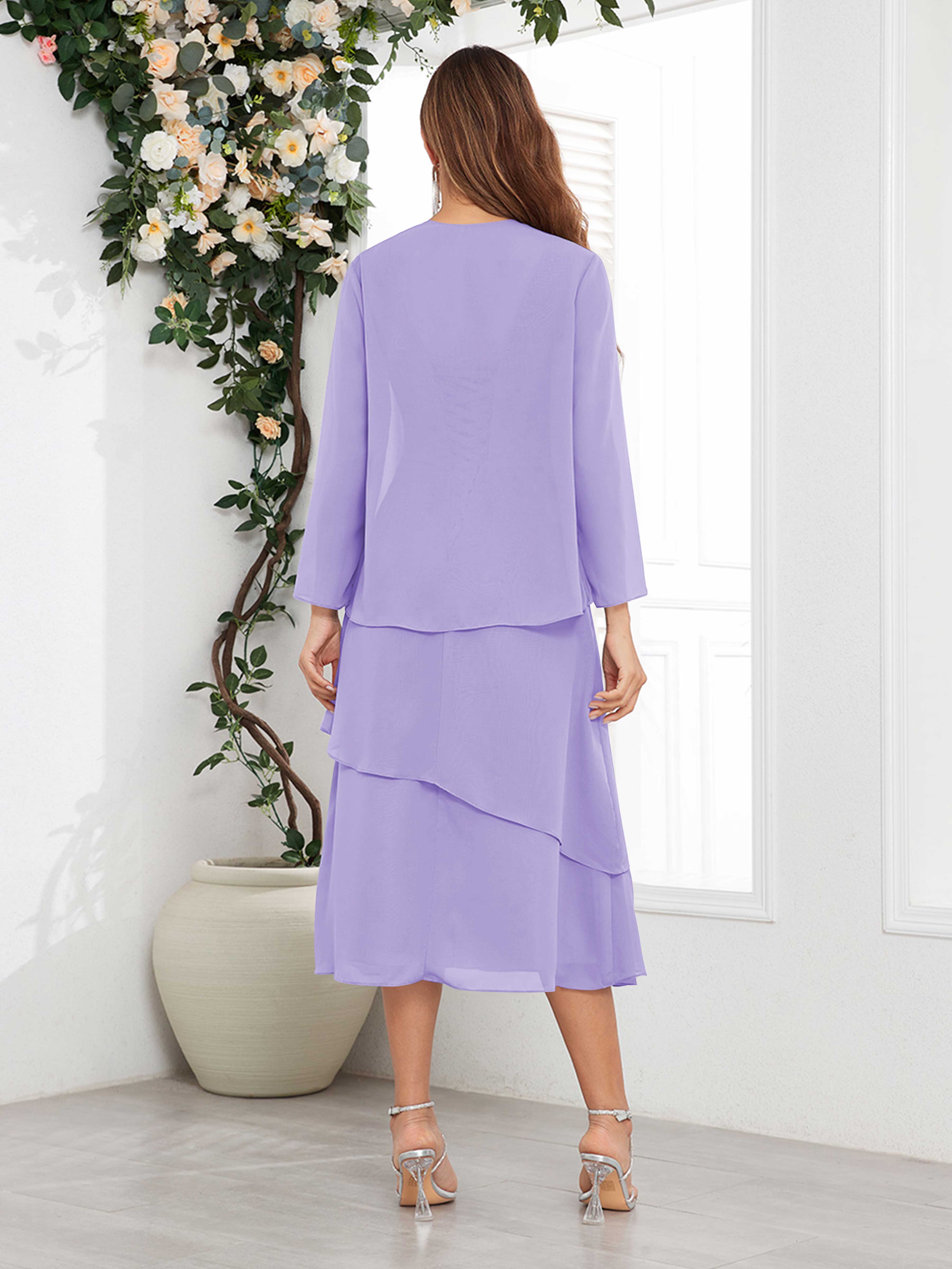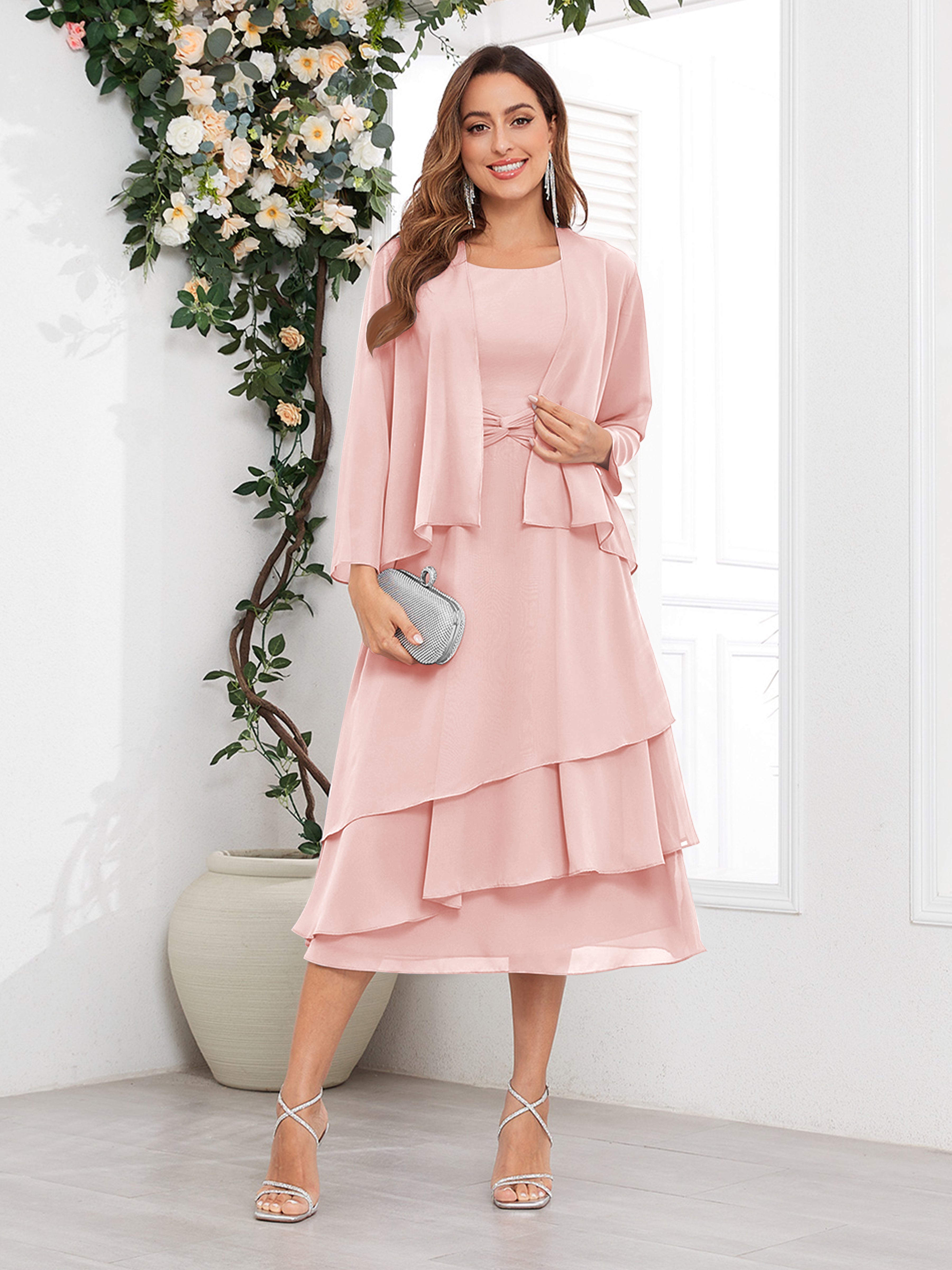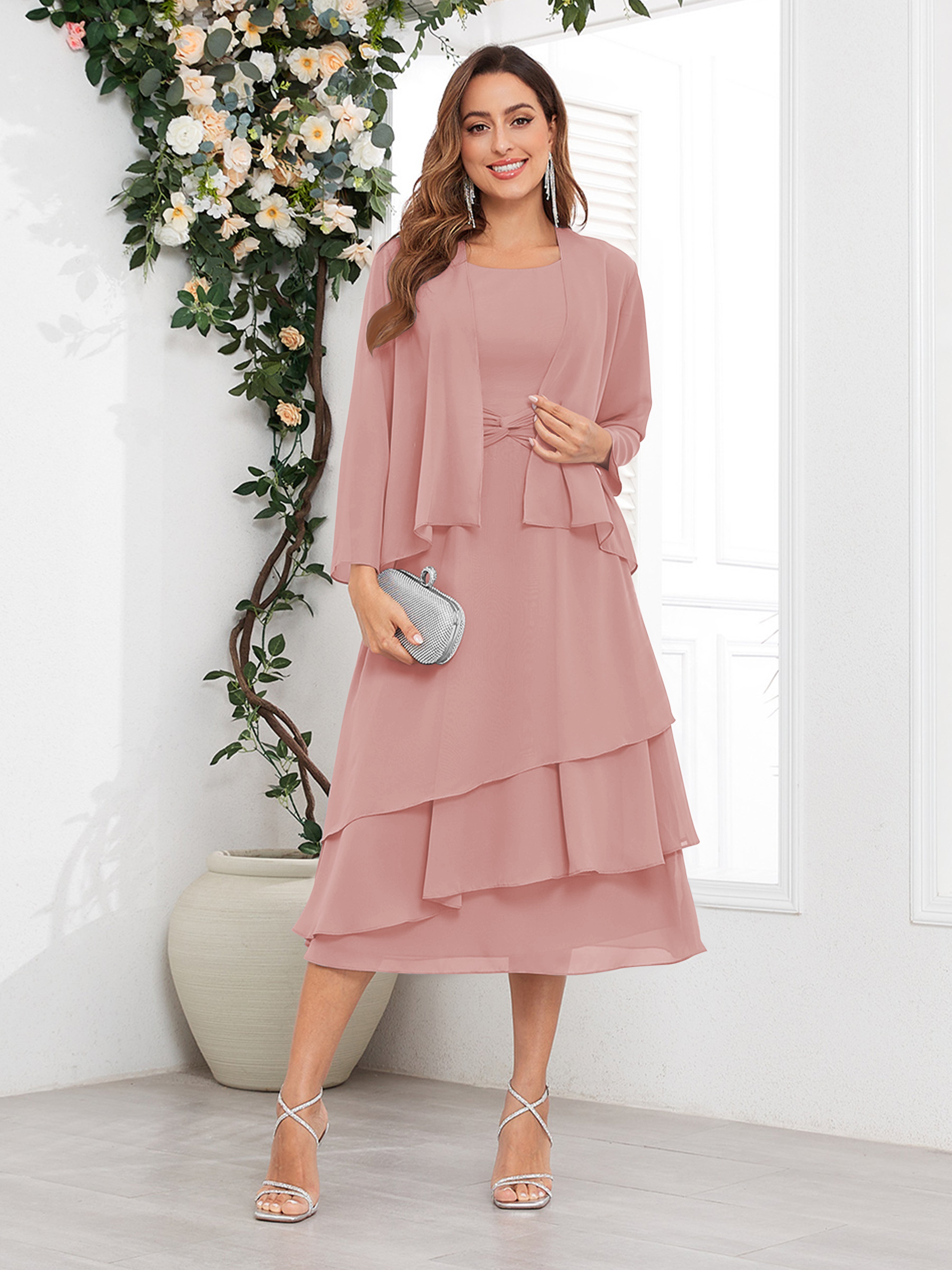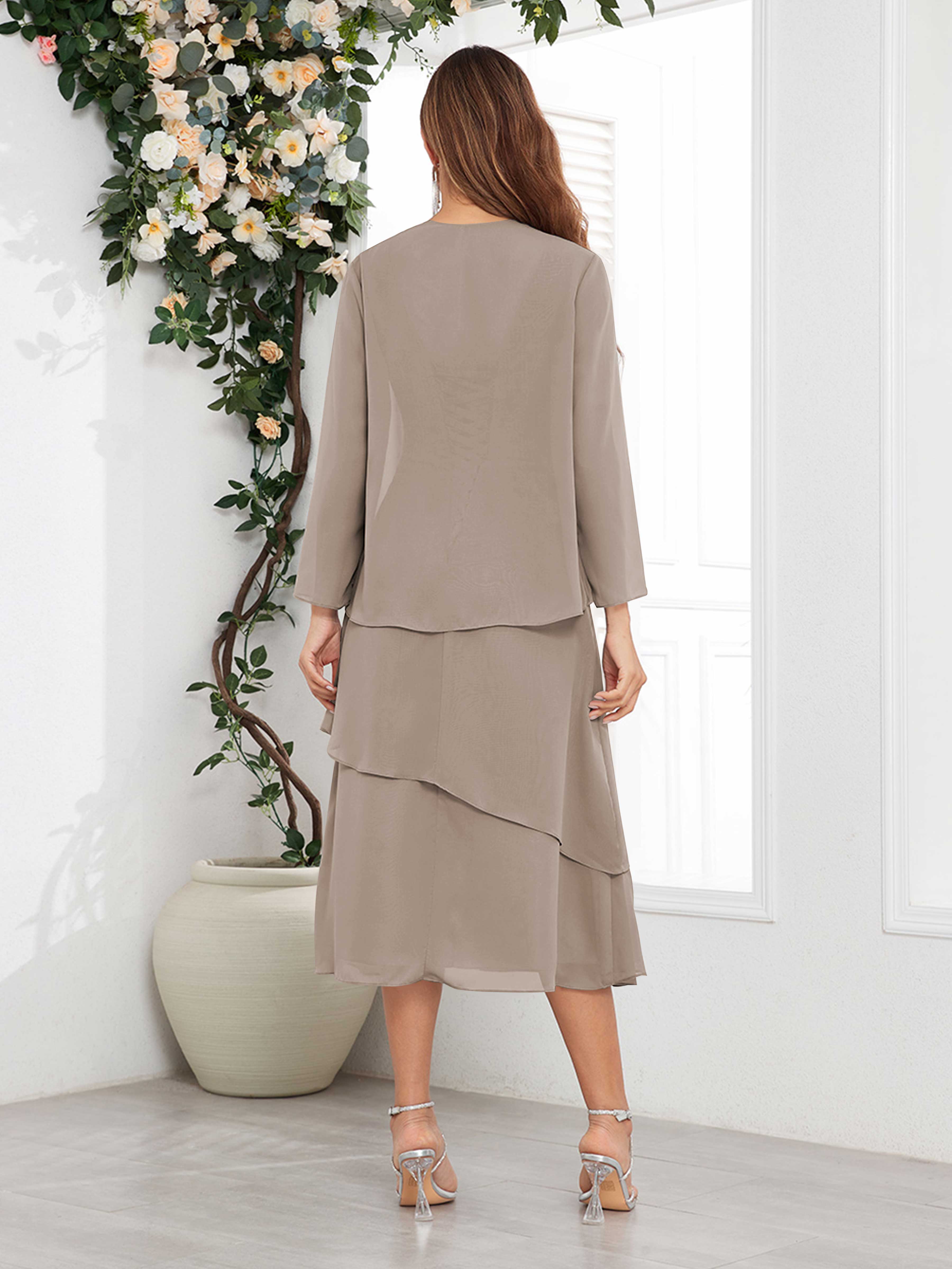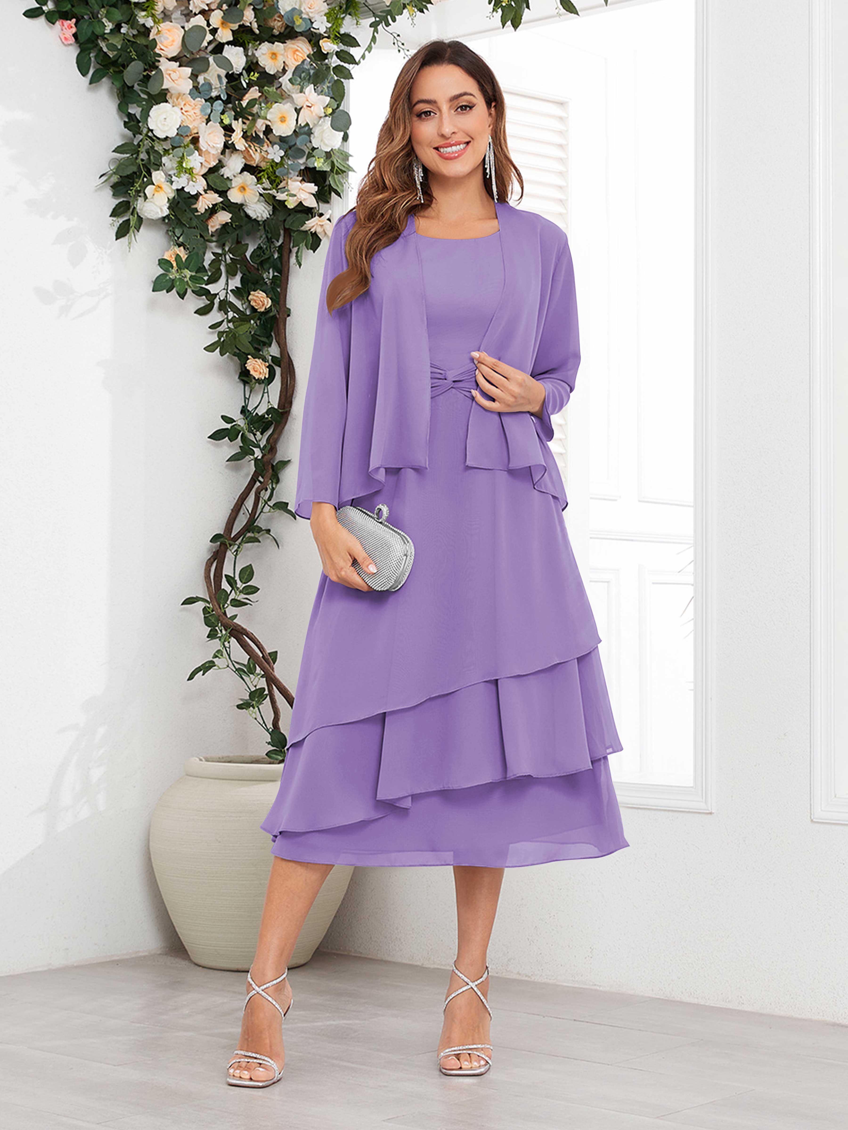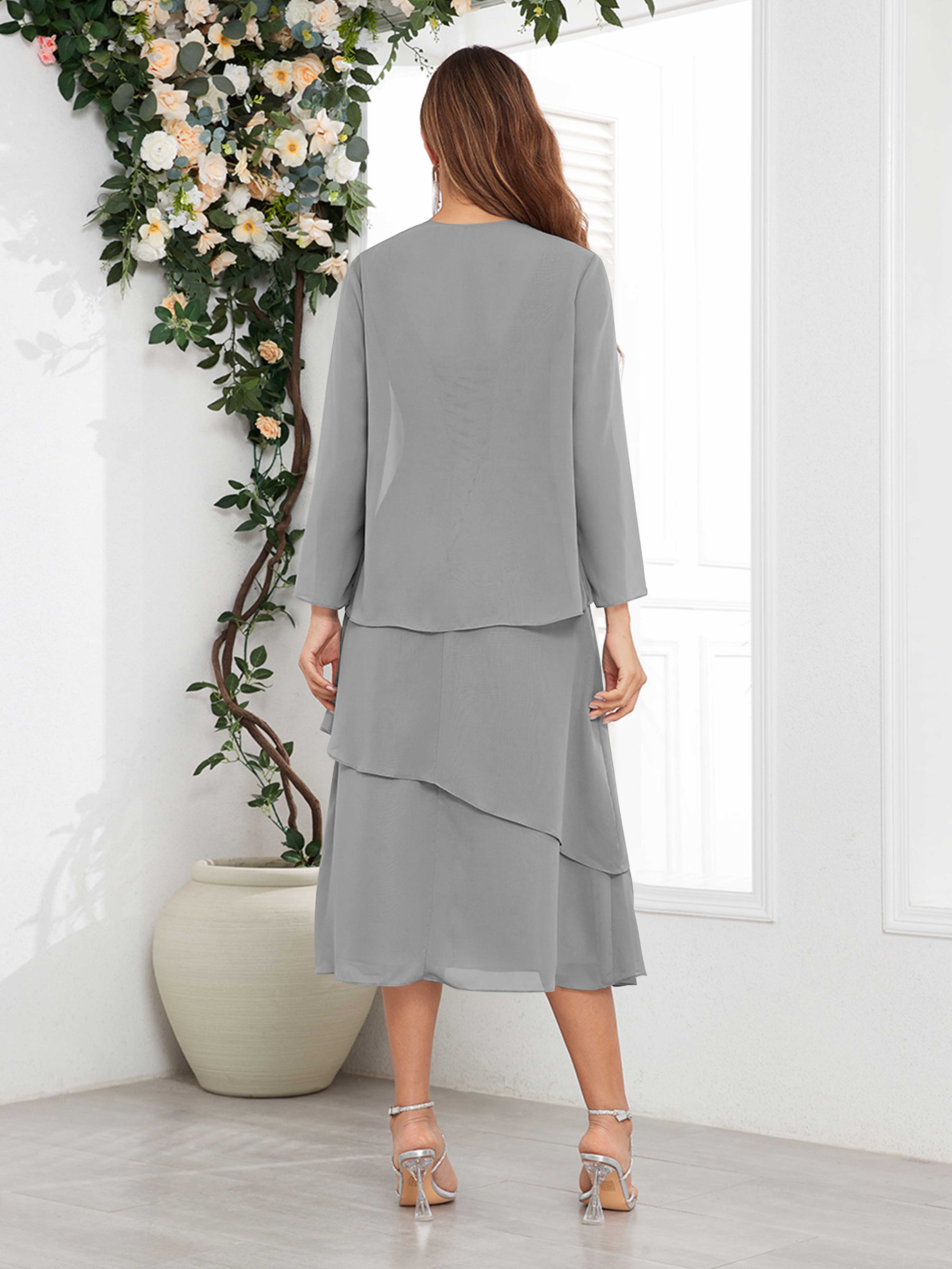 Salem Chic Two-Pieces Tiered Midi Chiffon Mother Of The Bride Dresses