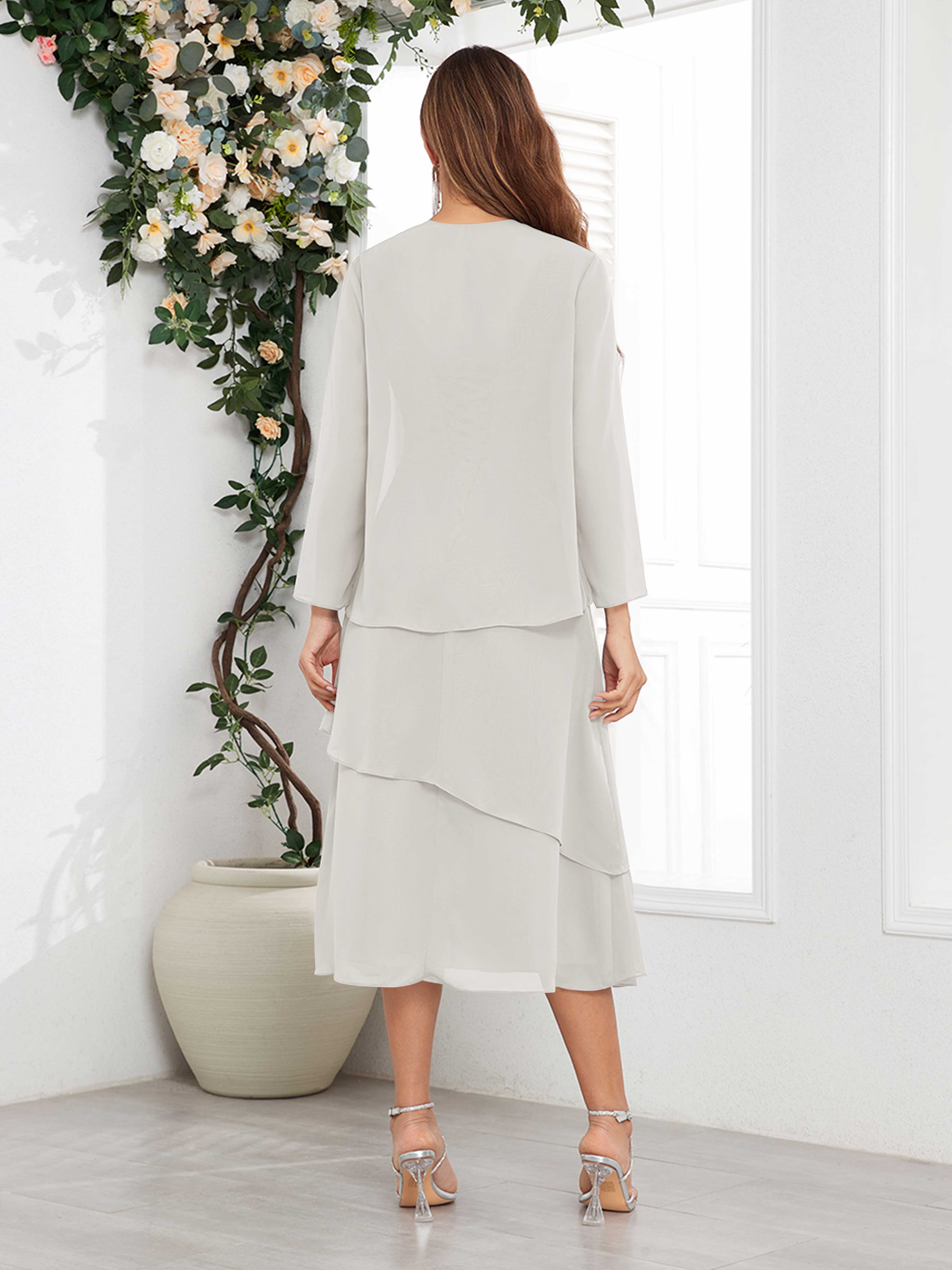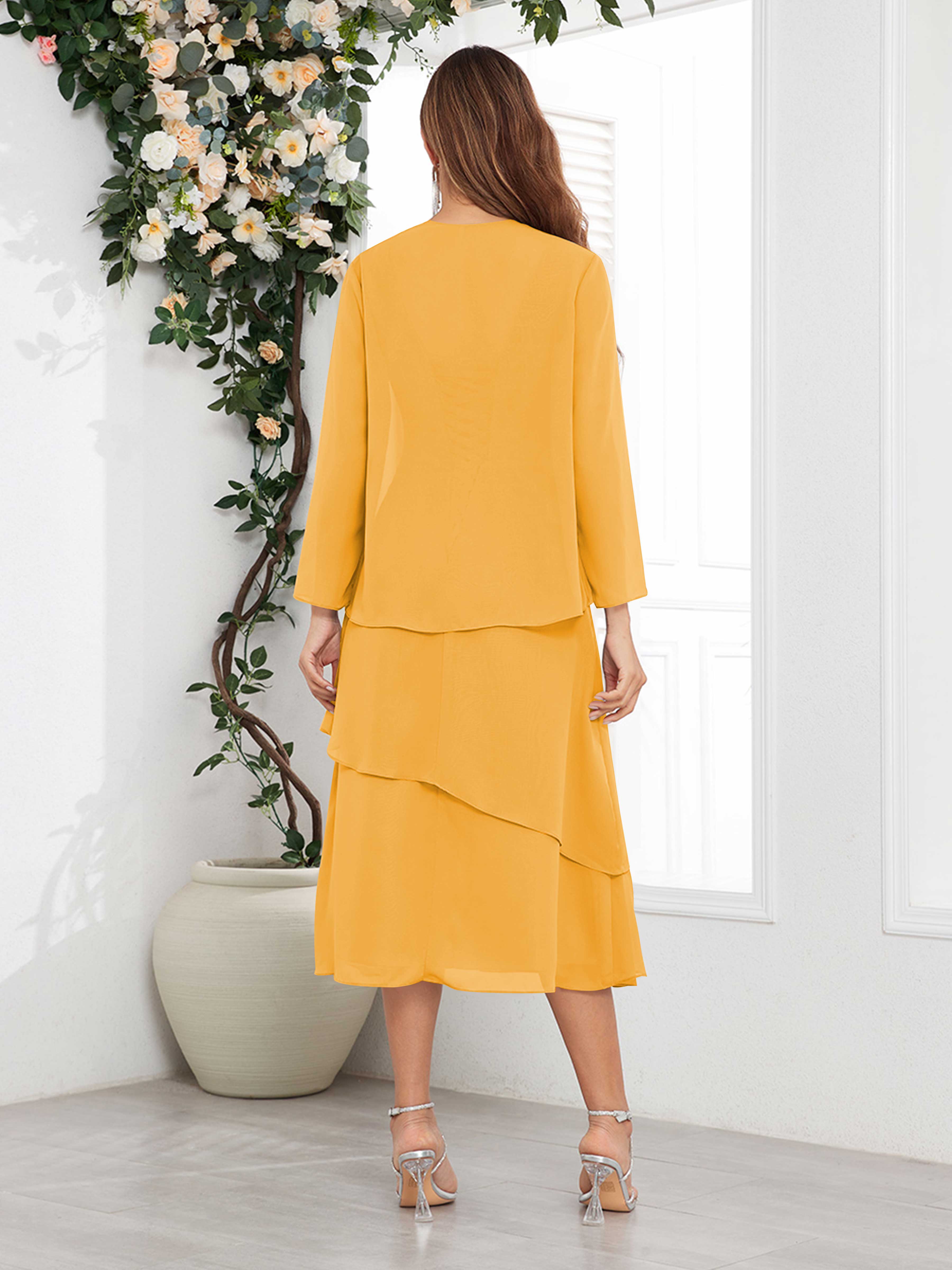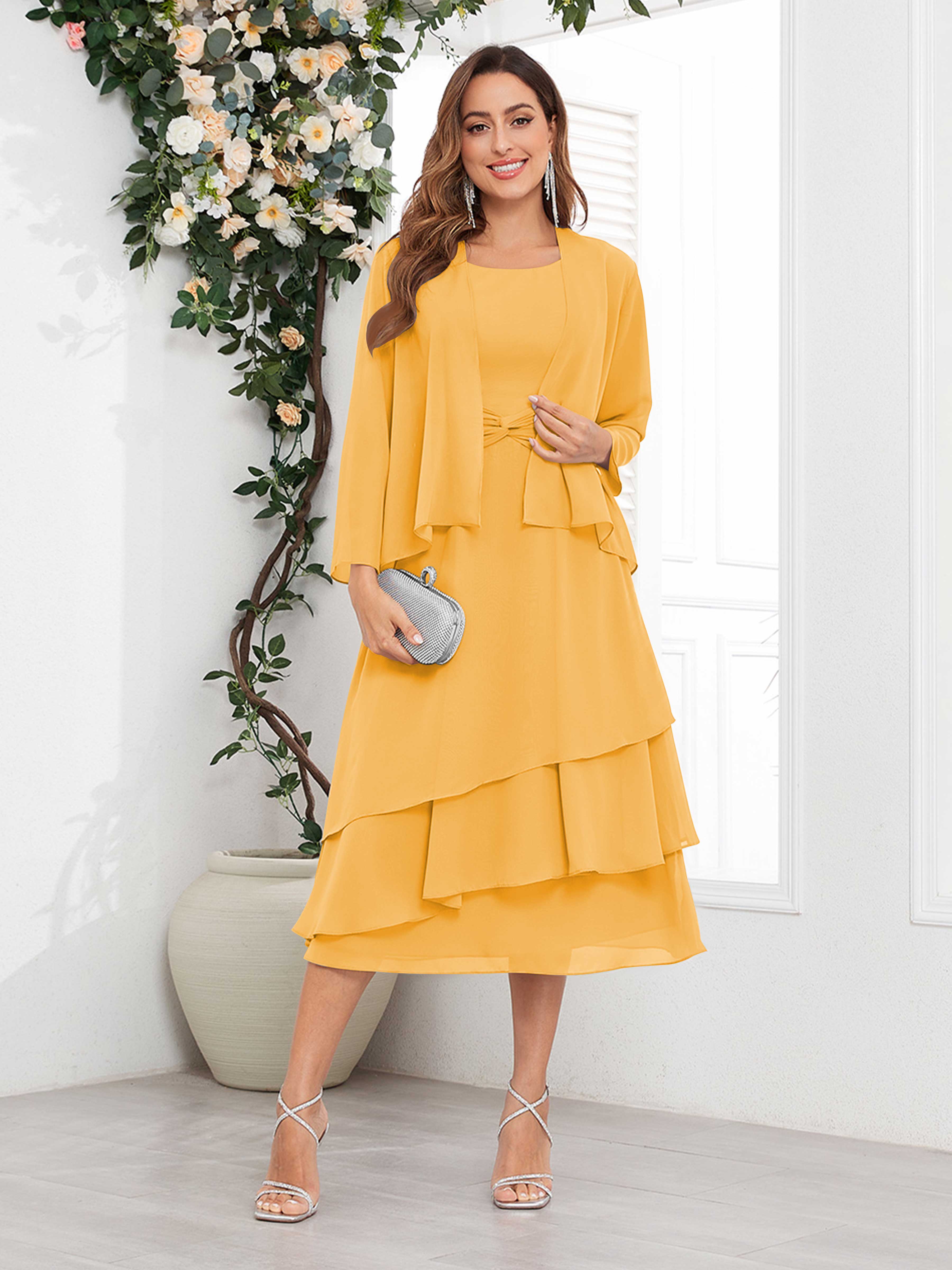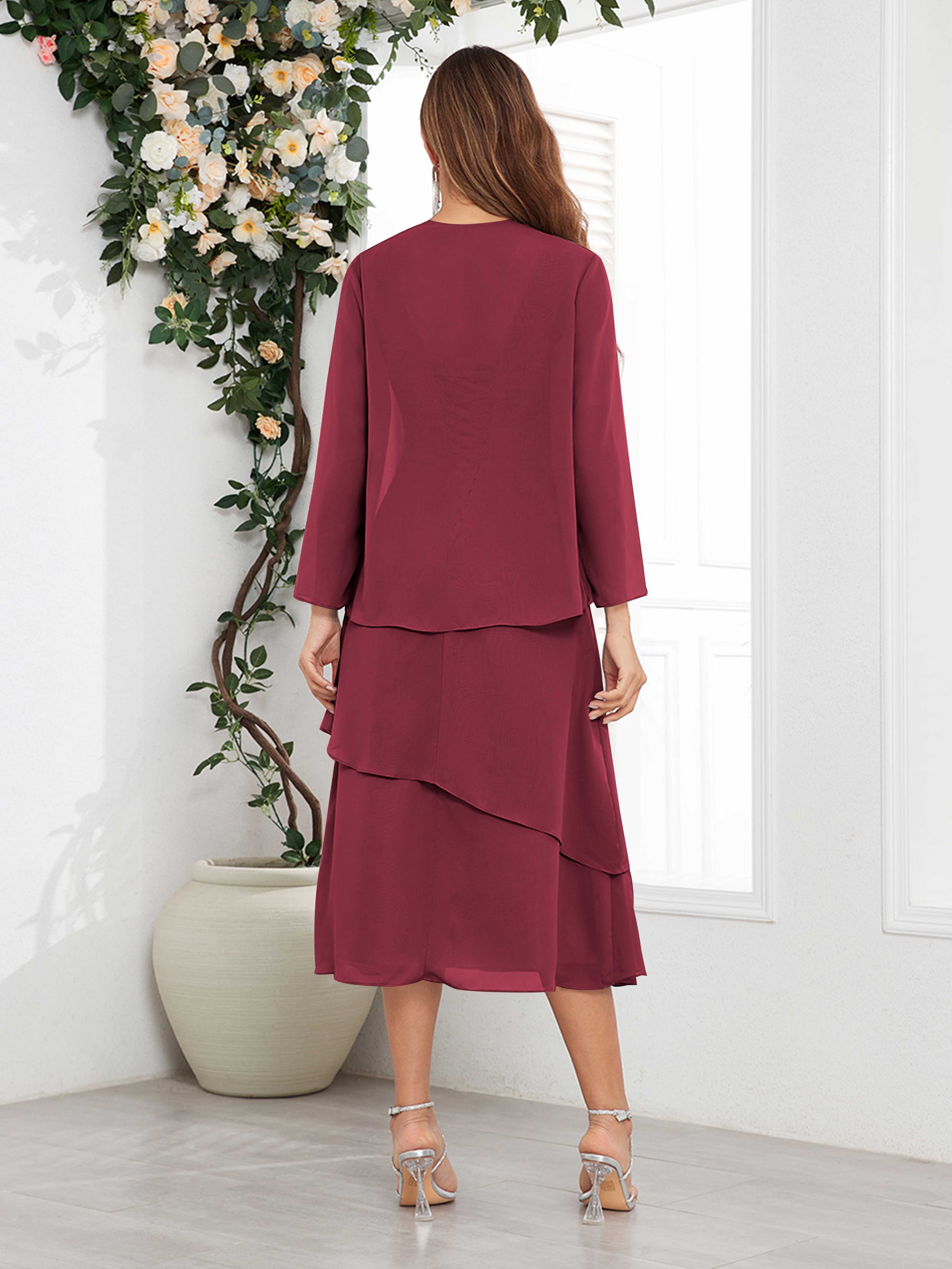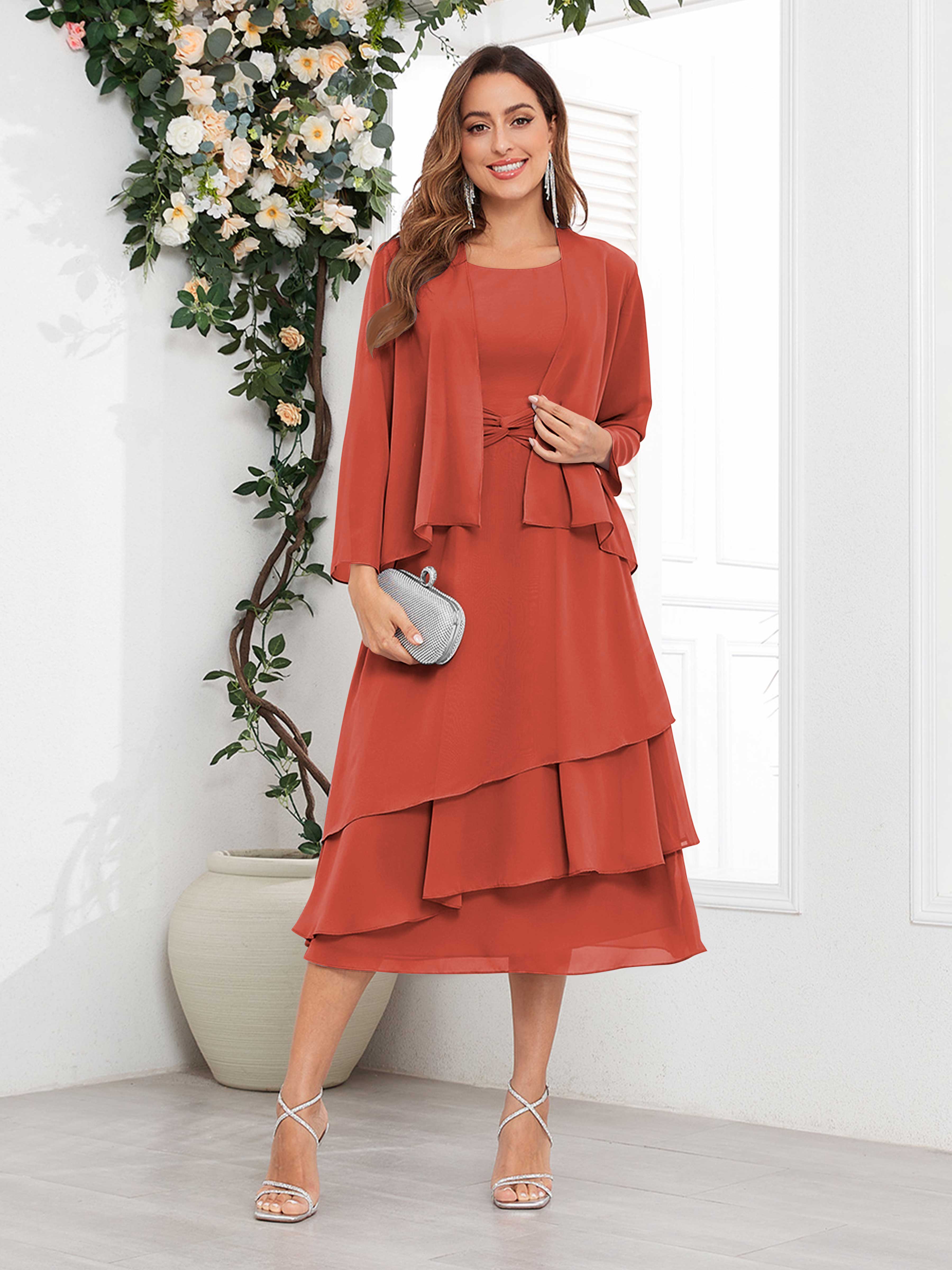 Salem Chic Two-Pieces Tiered Midi Chiffon Mother Of The Bride Dresses