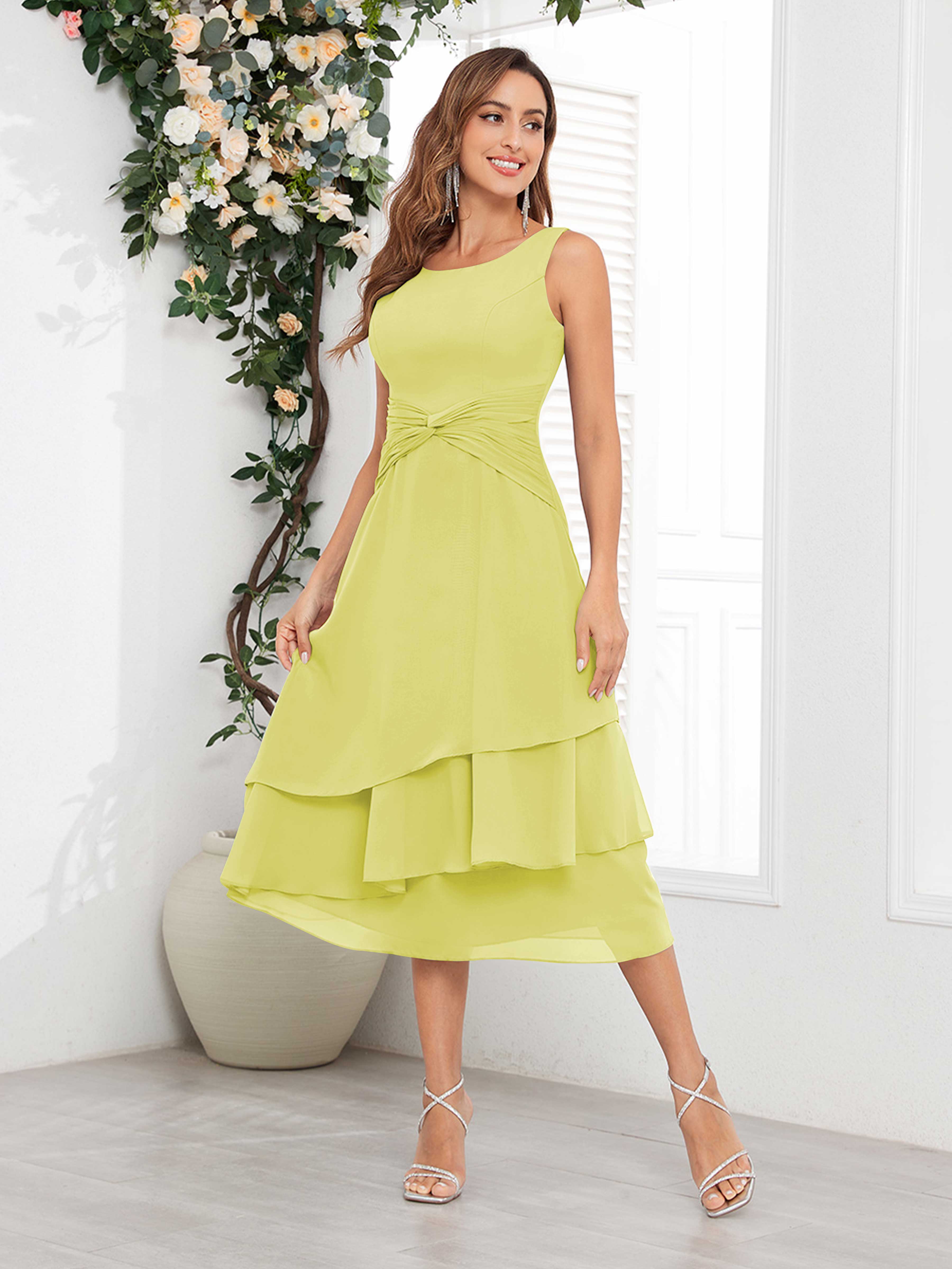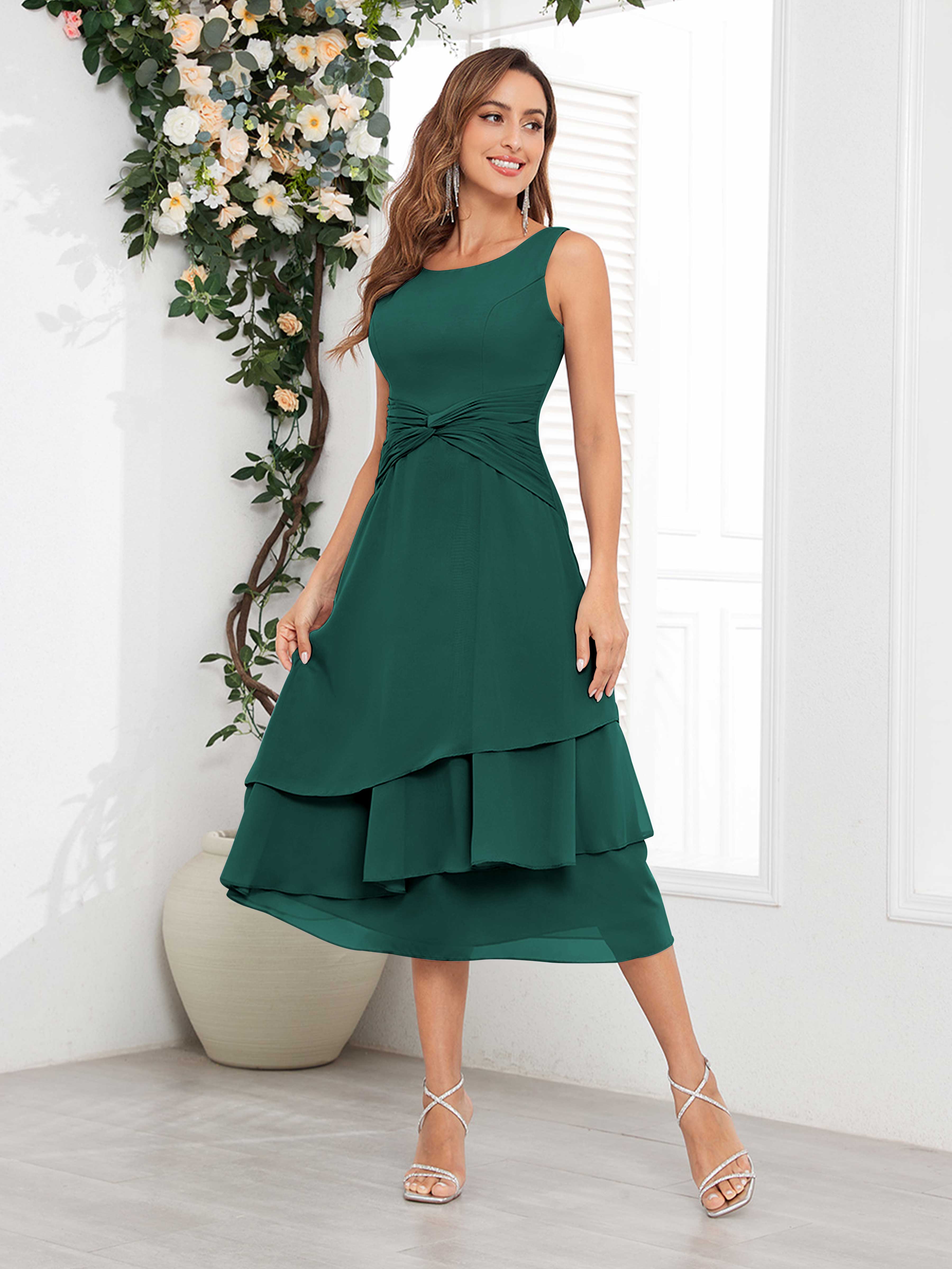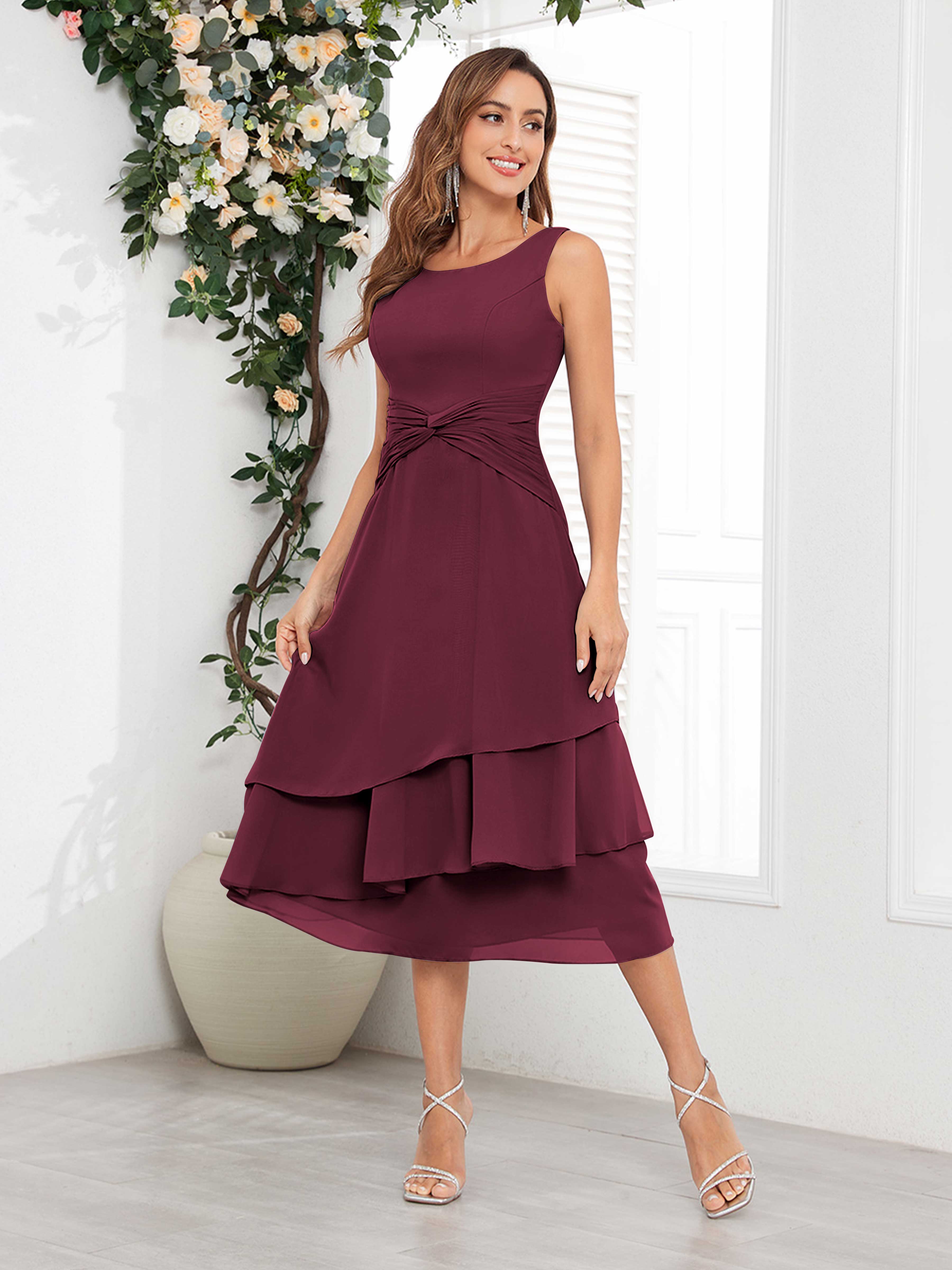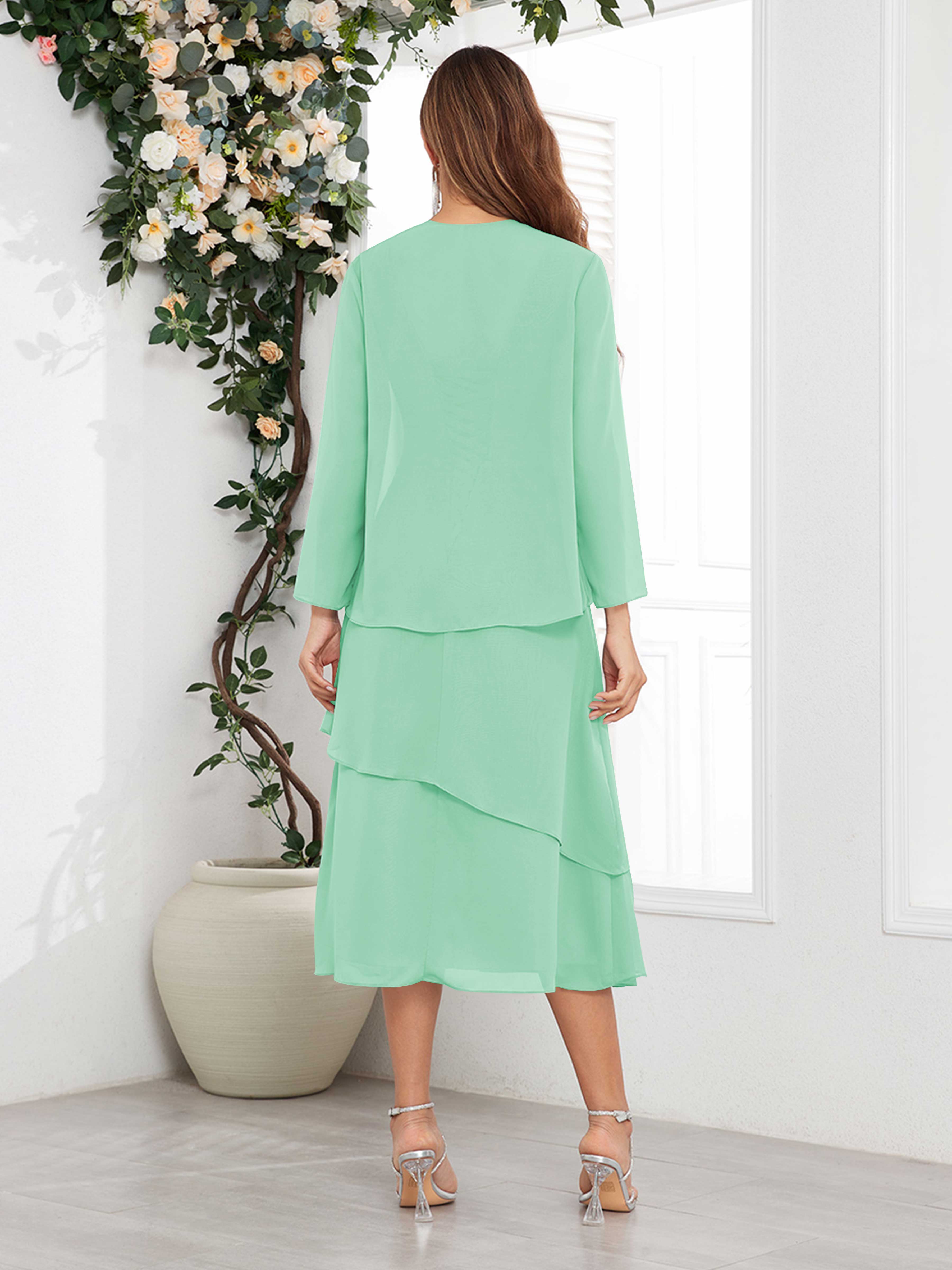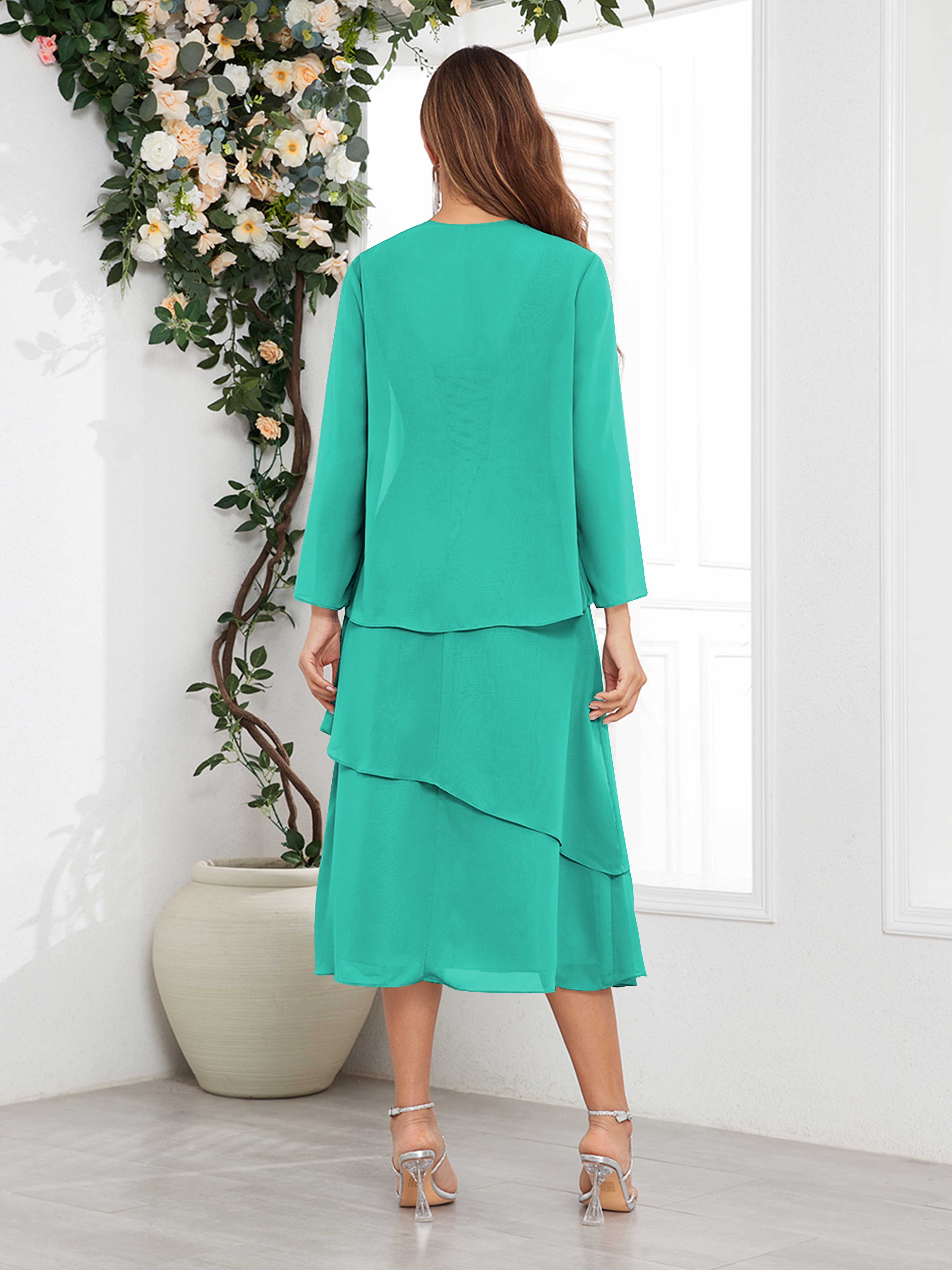 Salem Chic Two-Pieces Tiered Midi Chiffon Mother Of The Bride Dresses