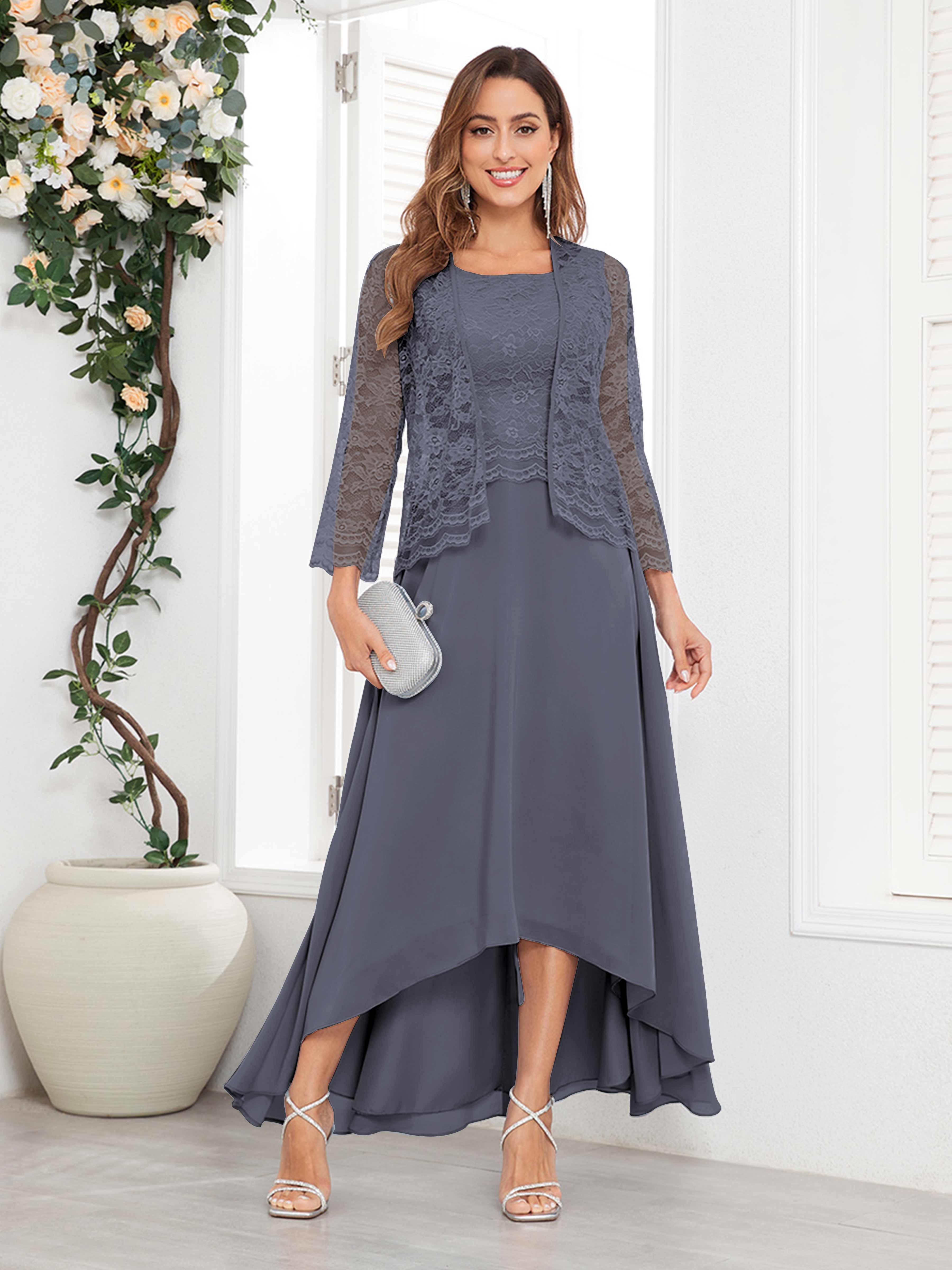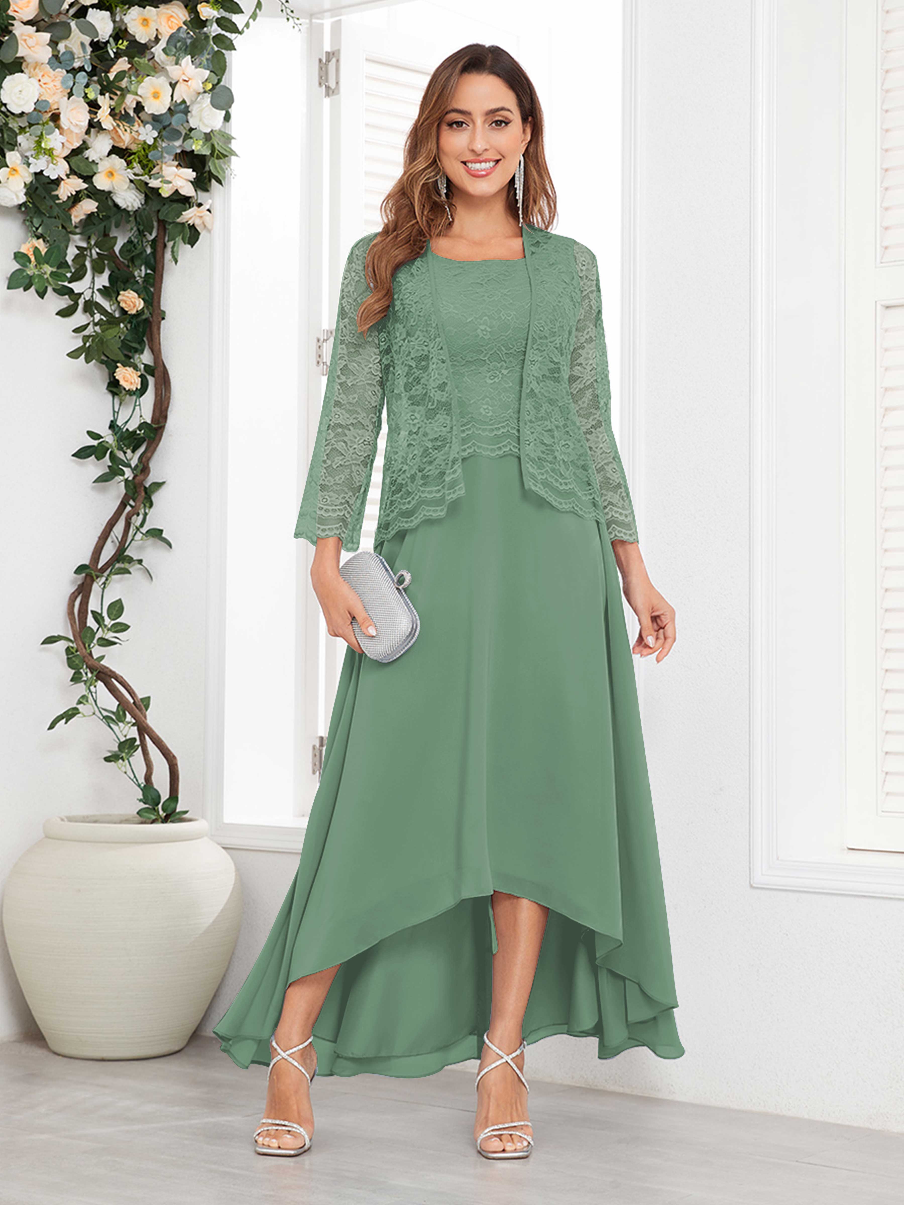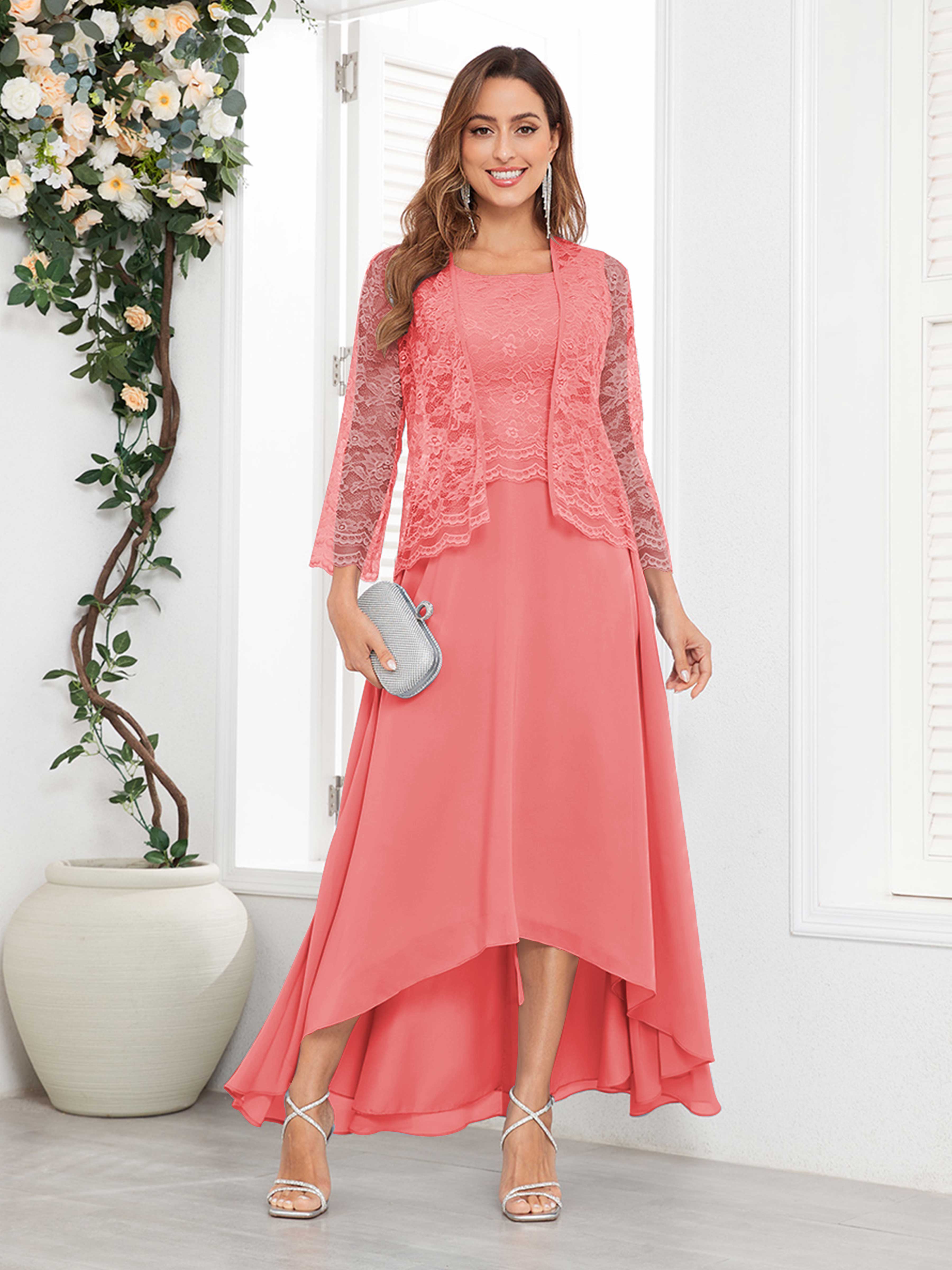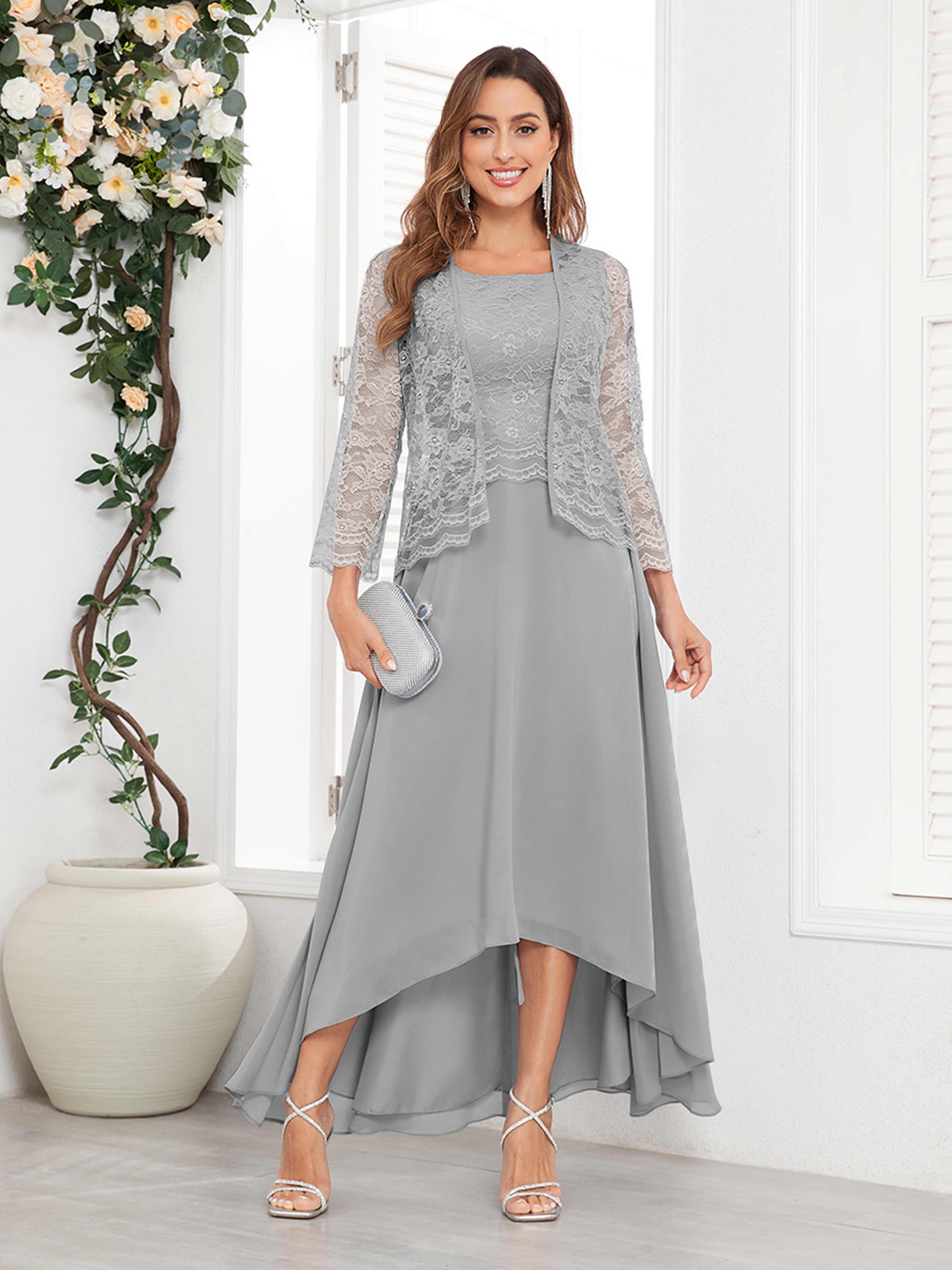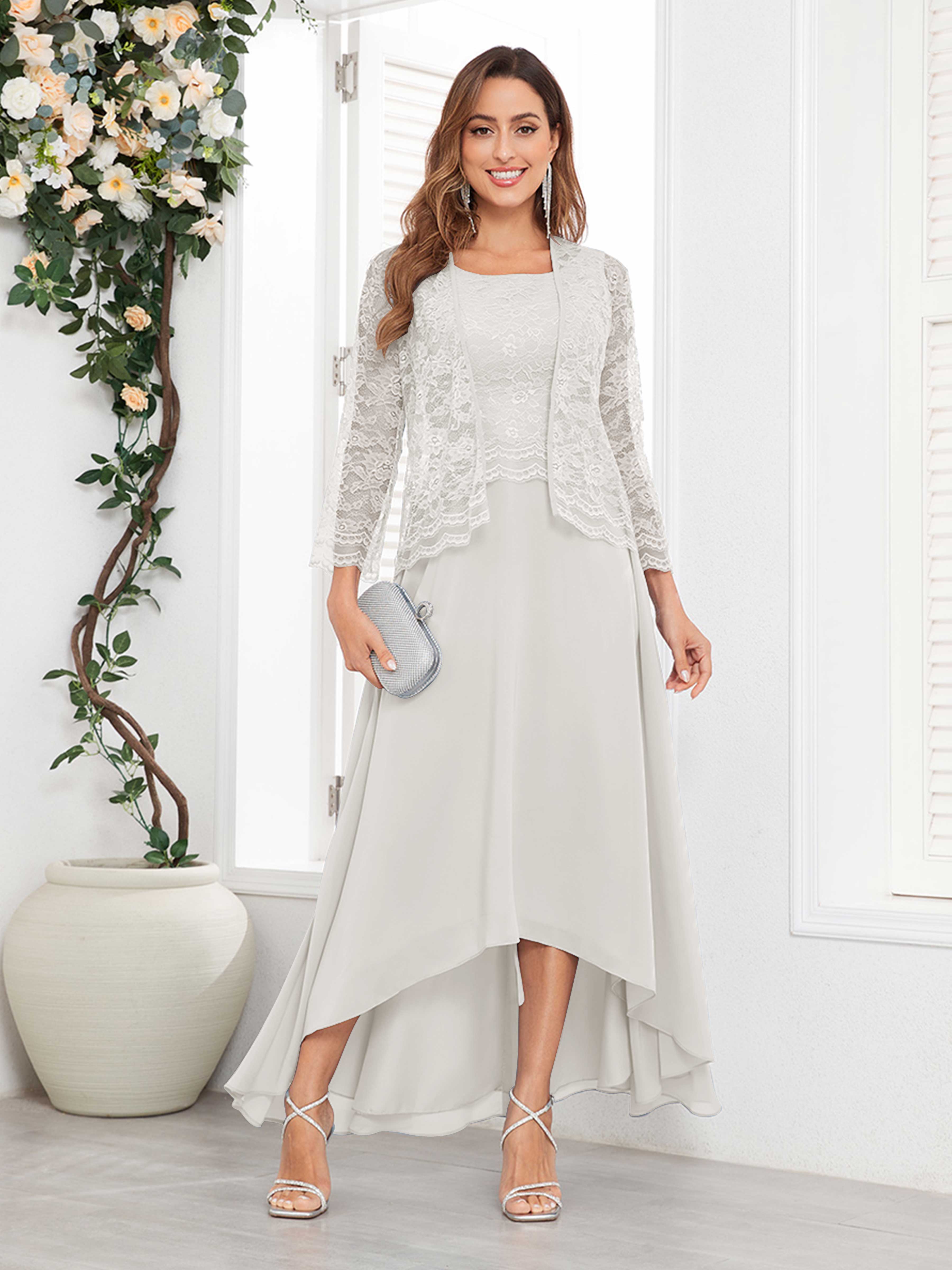 Sierra Delicate Two Pieces Lace Appliques High Low Chiffon Mother Of The Bride Dresses
