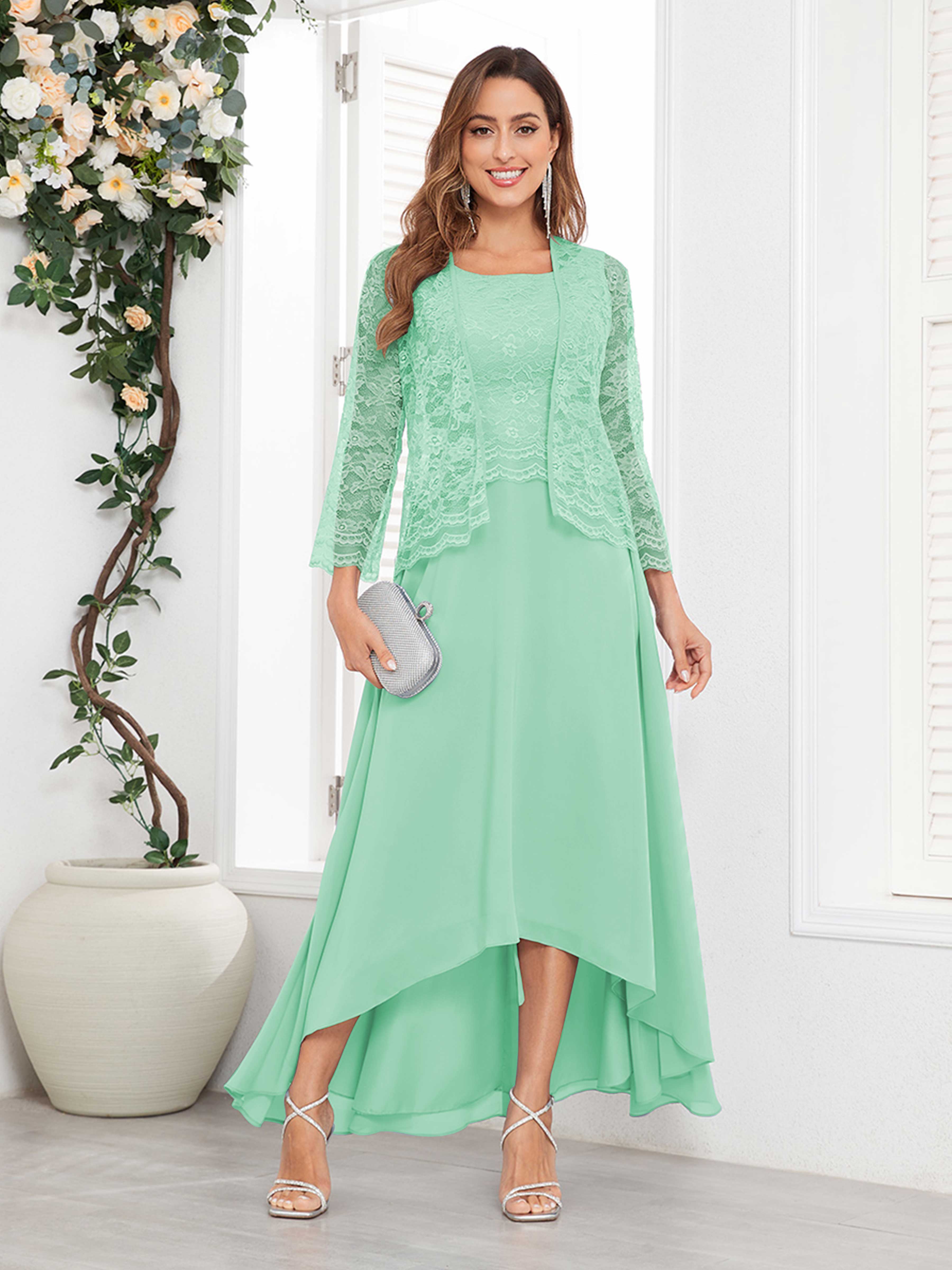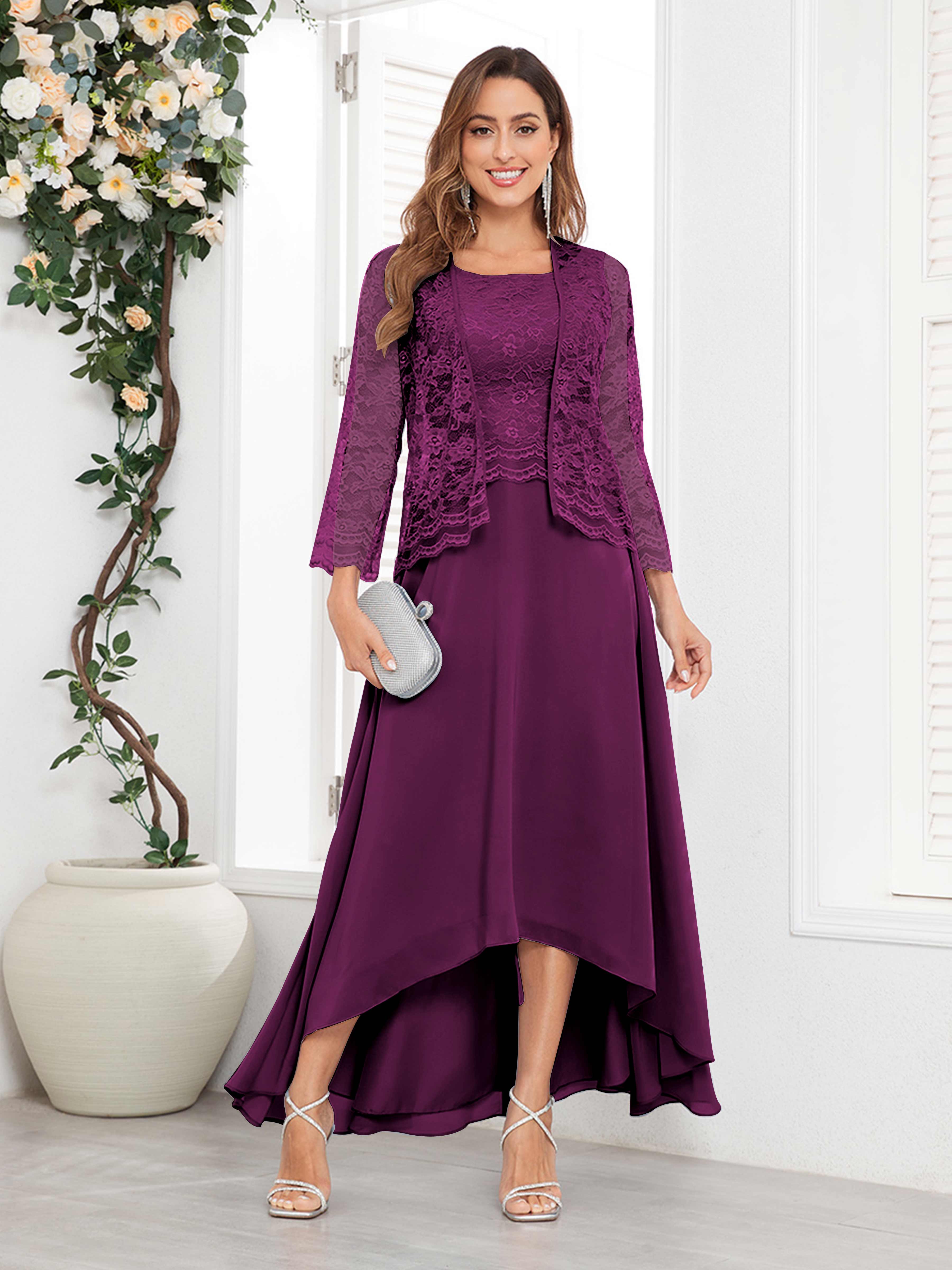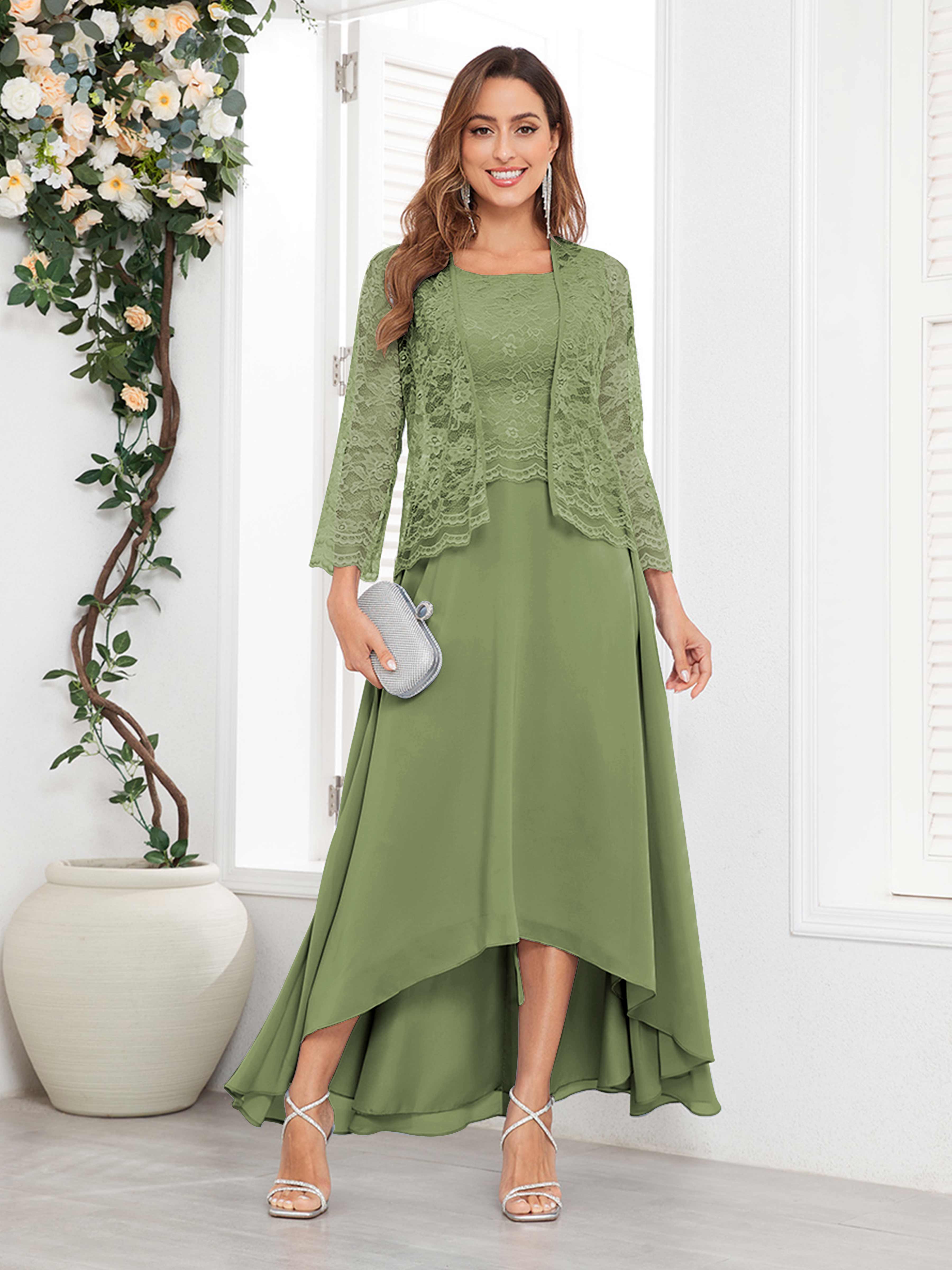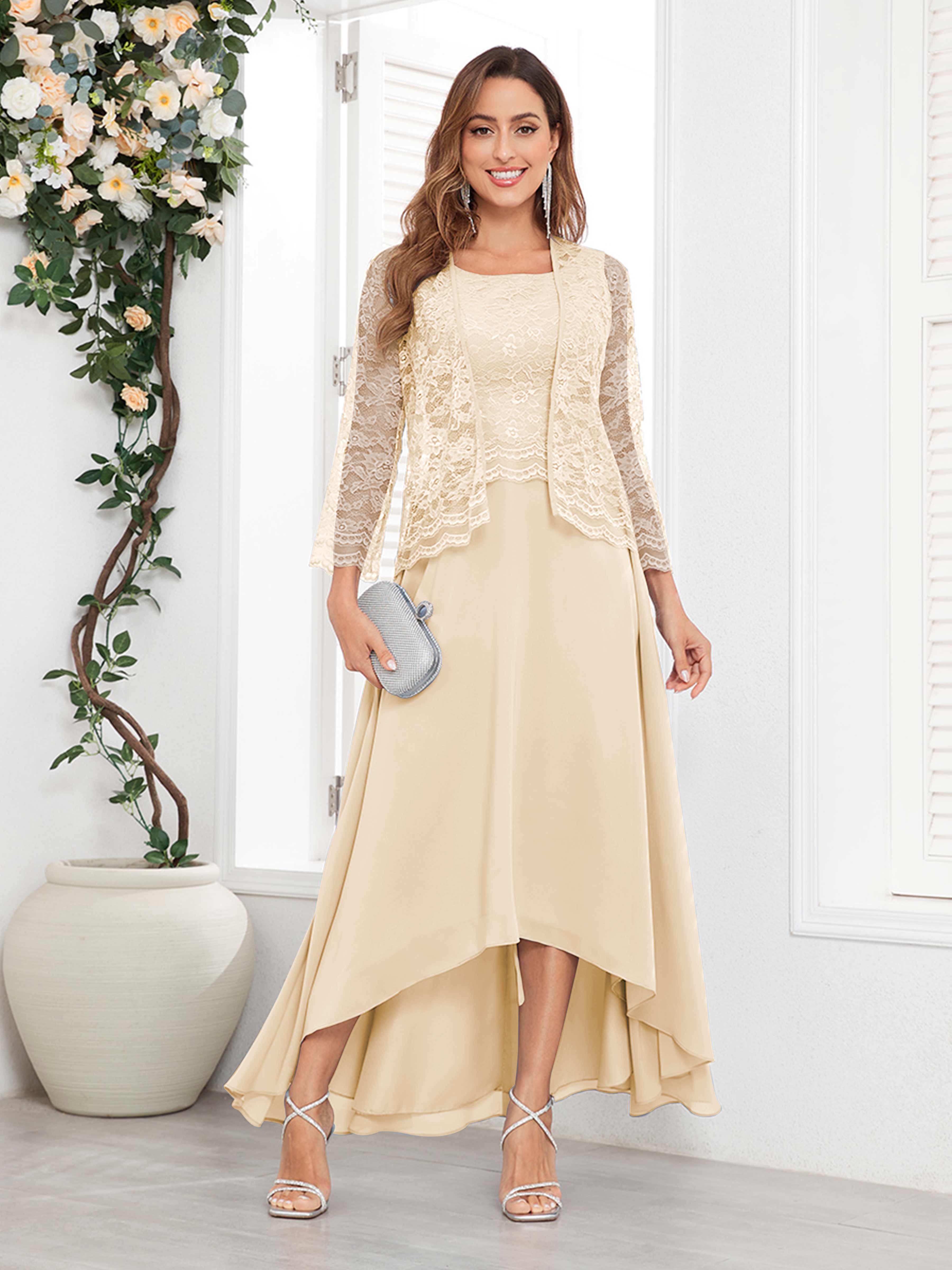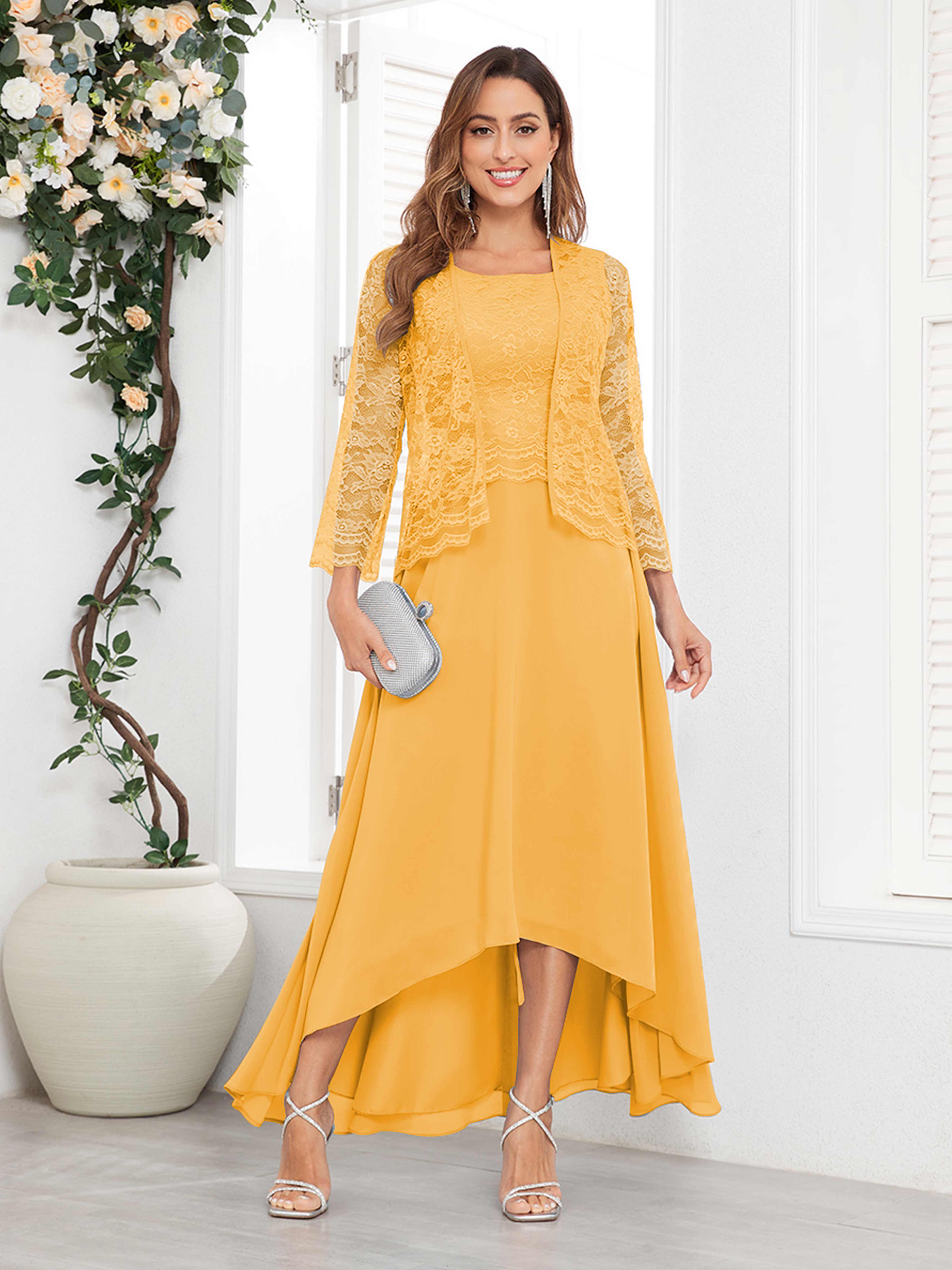 Sierra Delicate Two Pieces Lace Appliques High Low Chiffon Mother Of The Bride Dresses