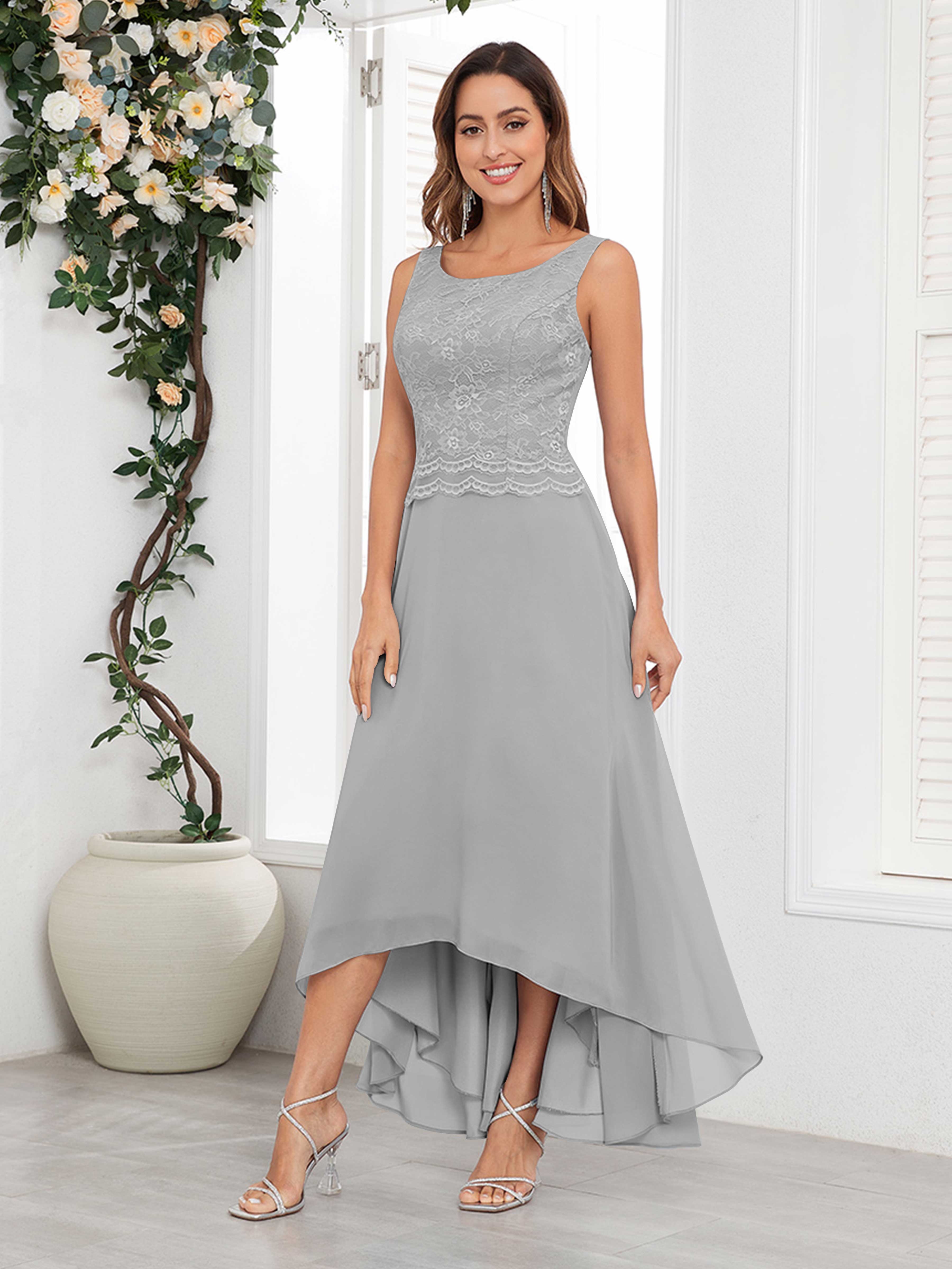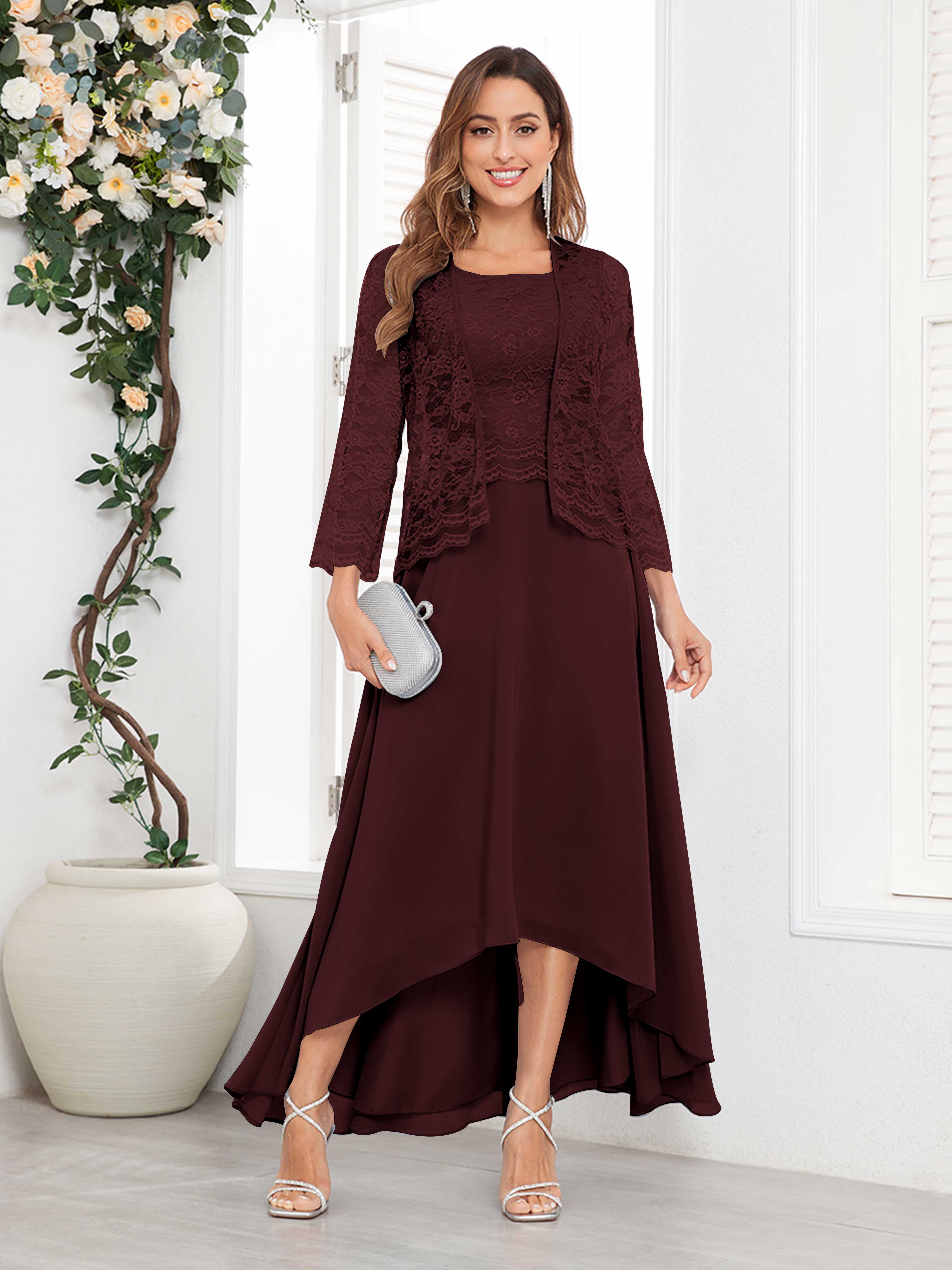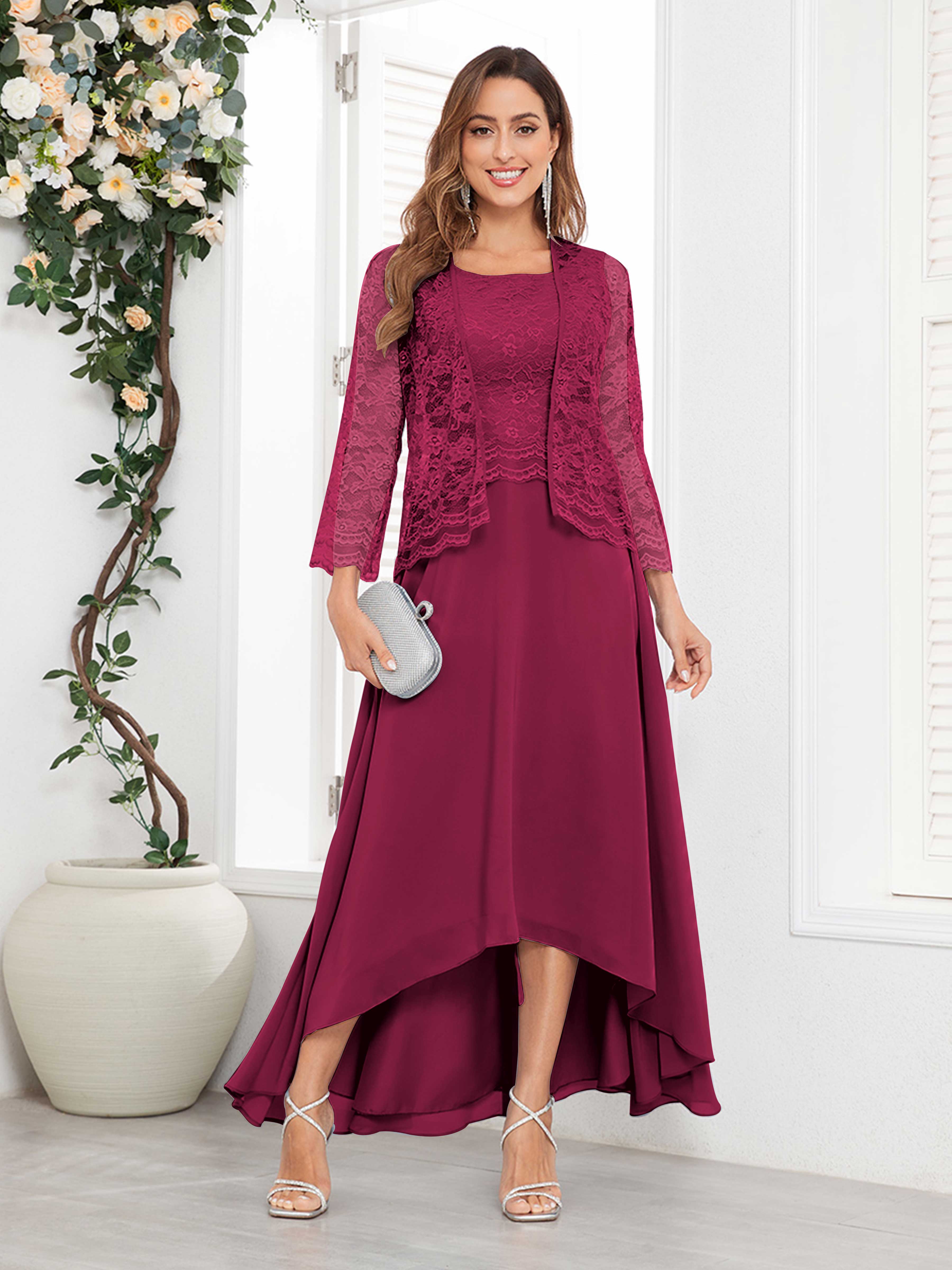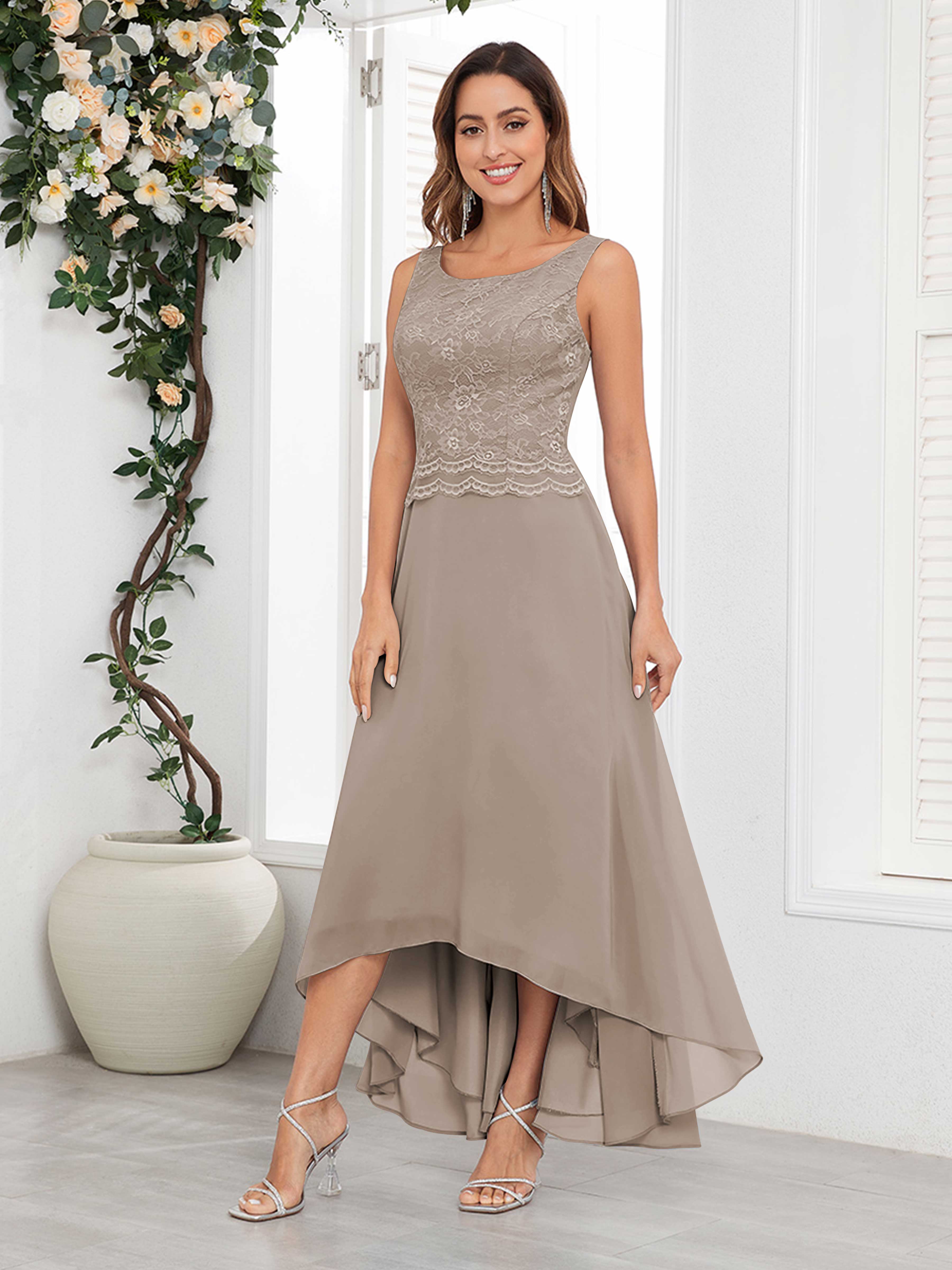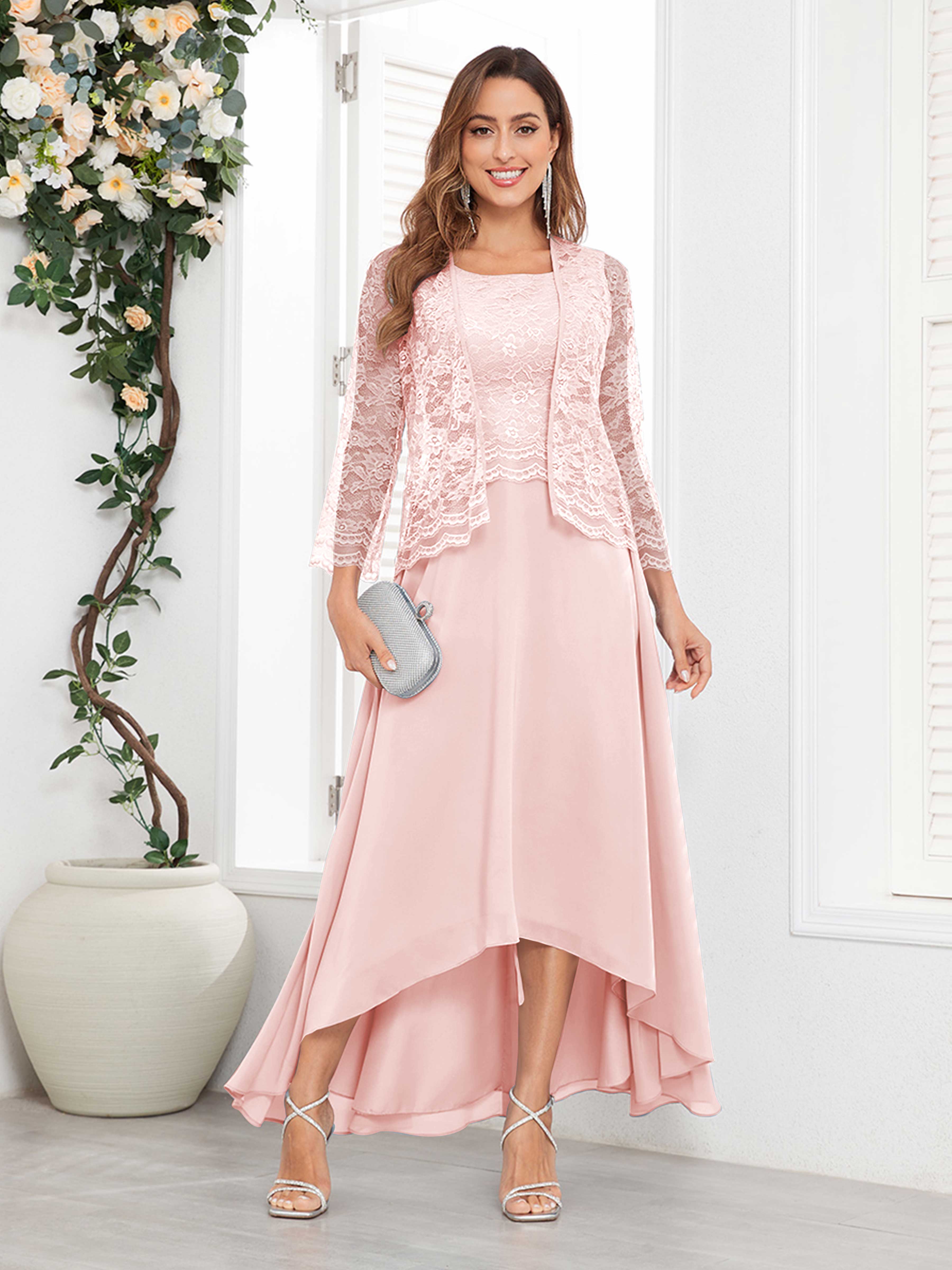Sierra Delicate Two Pieces Lace Appliques High Low Chiffon Mother Of The Bride Dresses