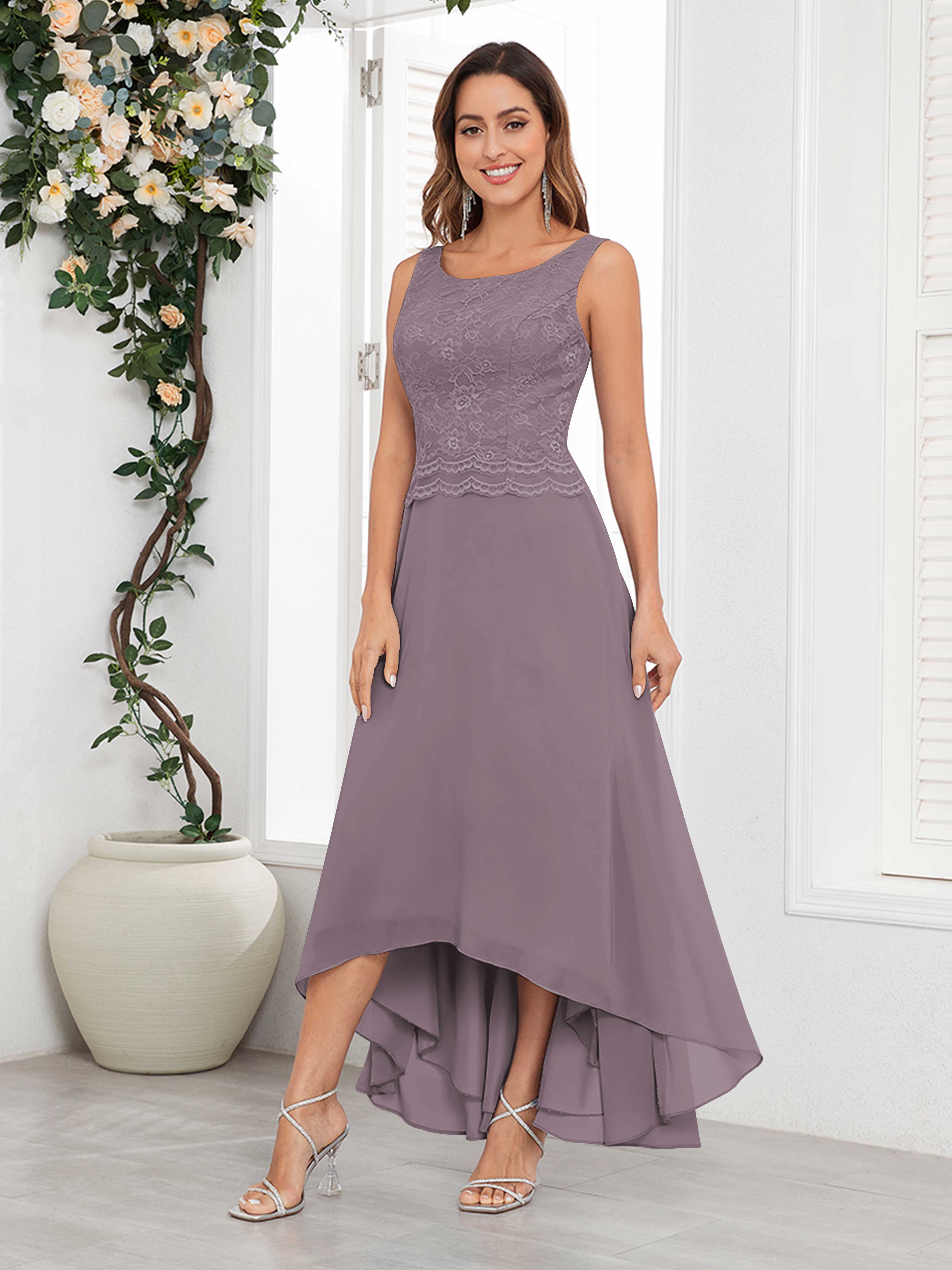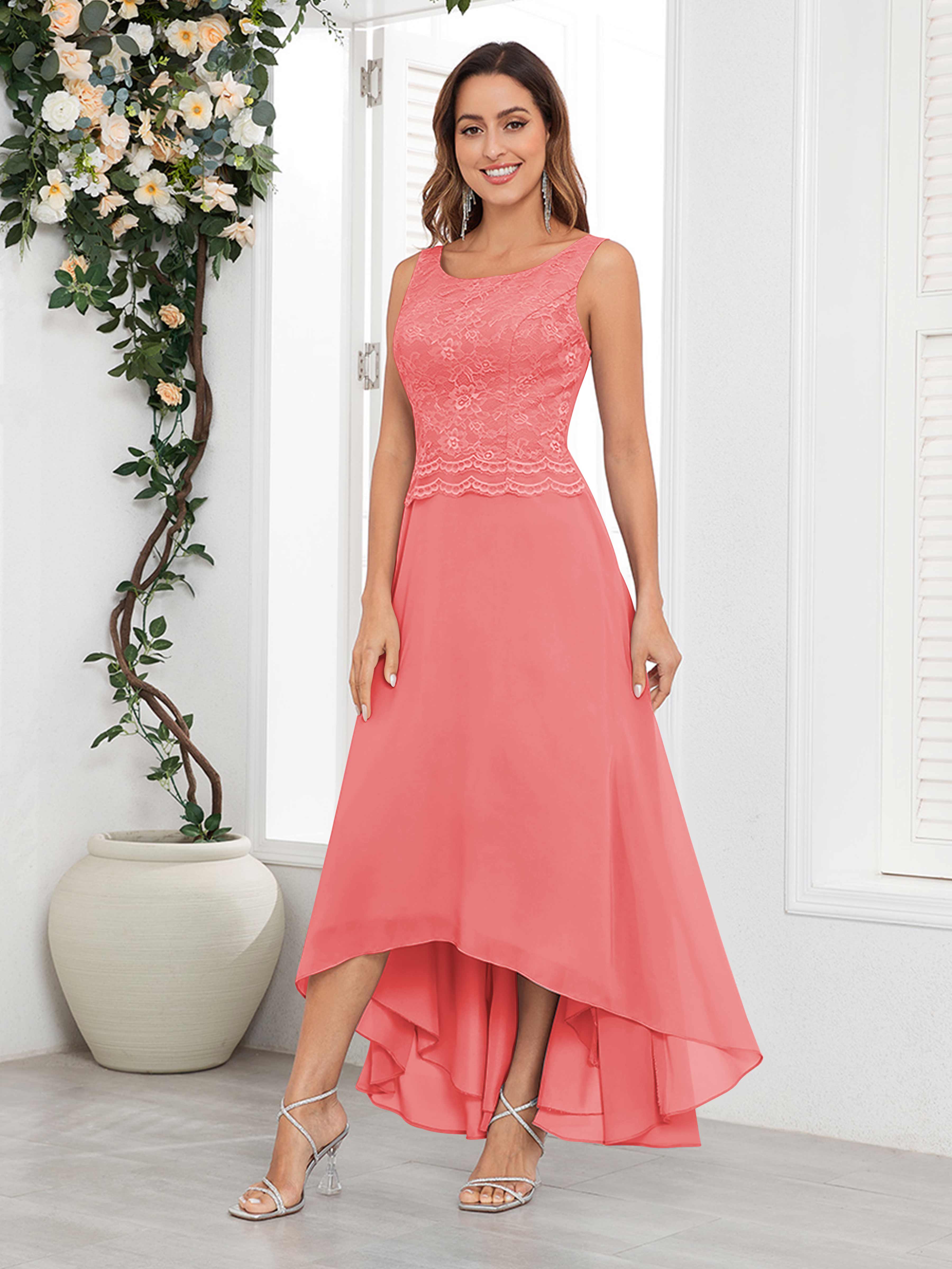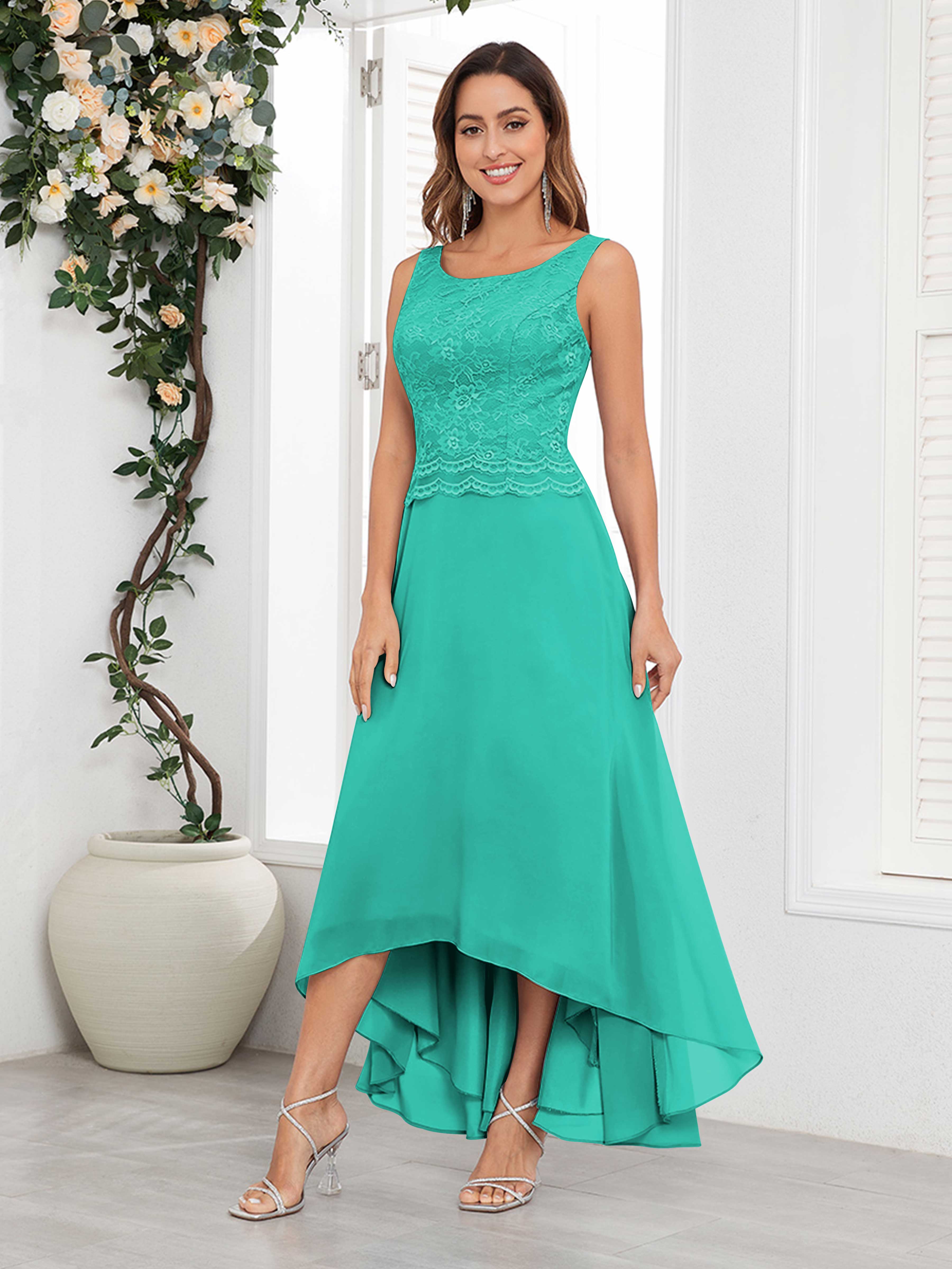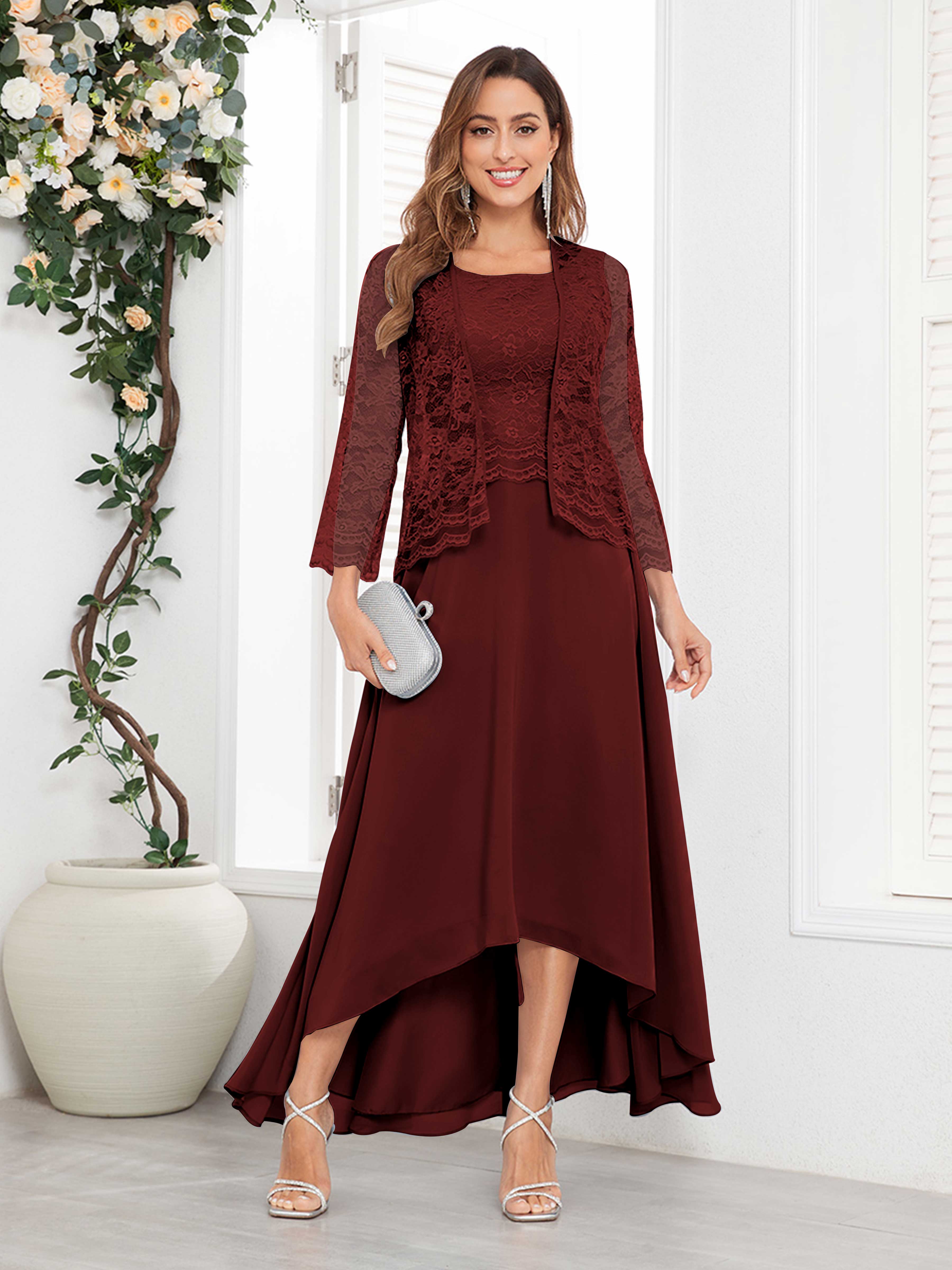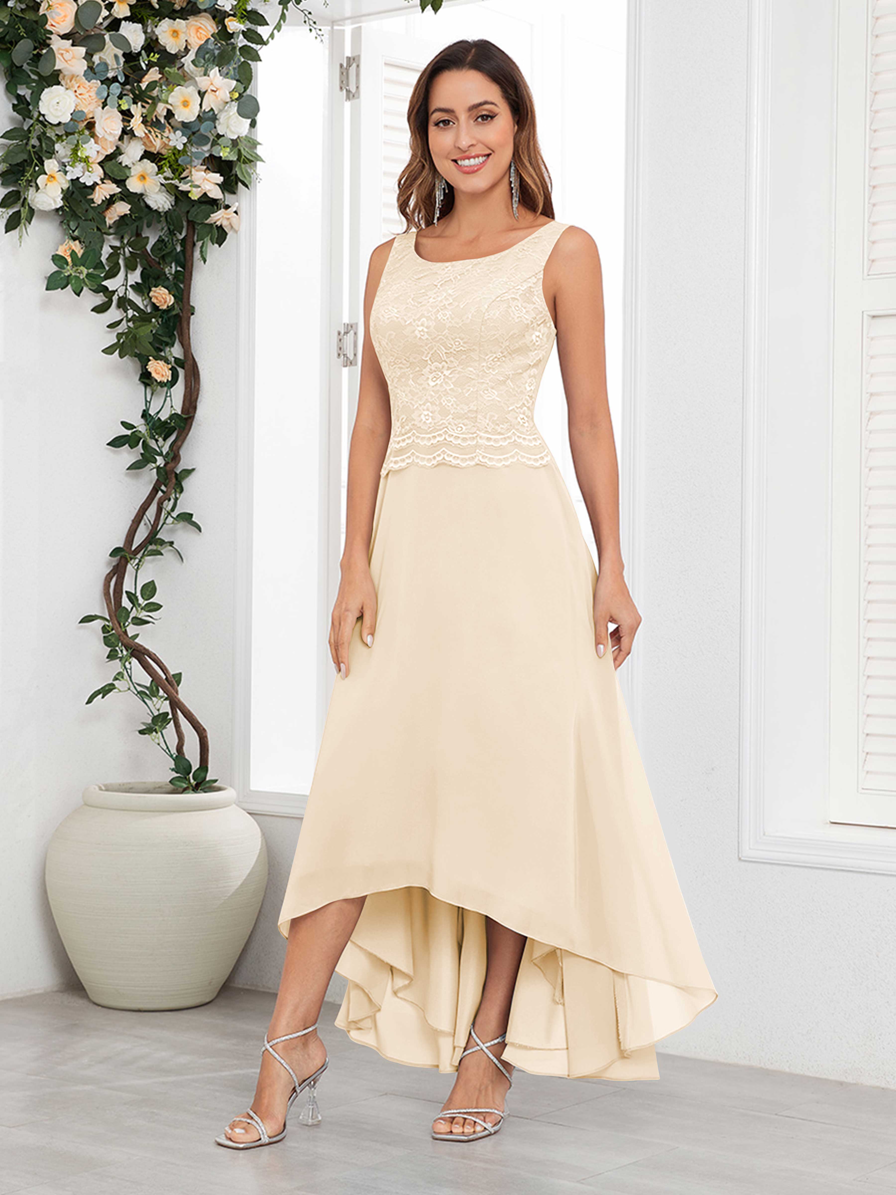 Sierra Delicate Two Pieces Lace Appliques High Low Chiffon Mother Of The Bride Dresses
